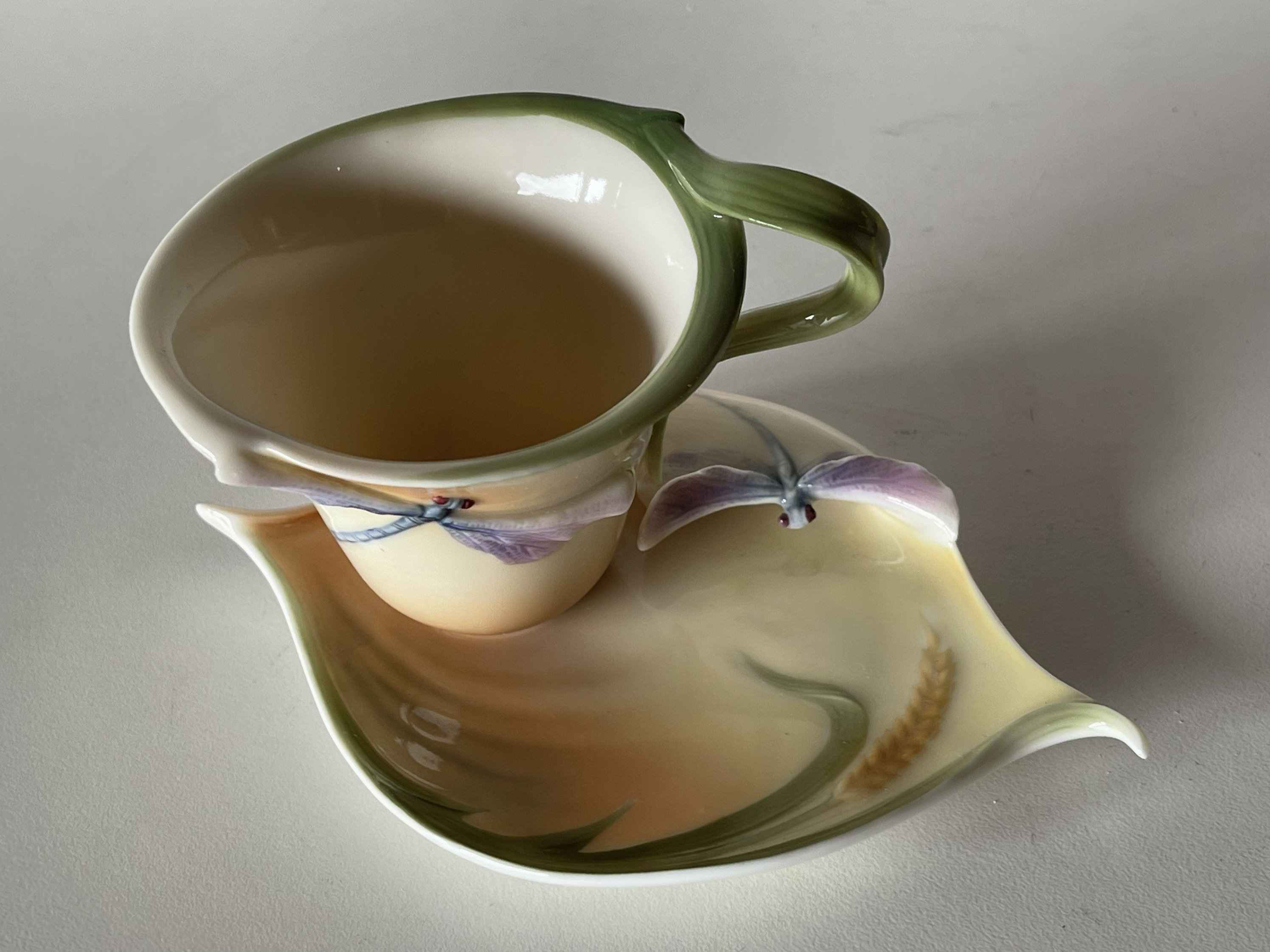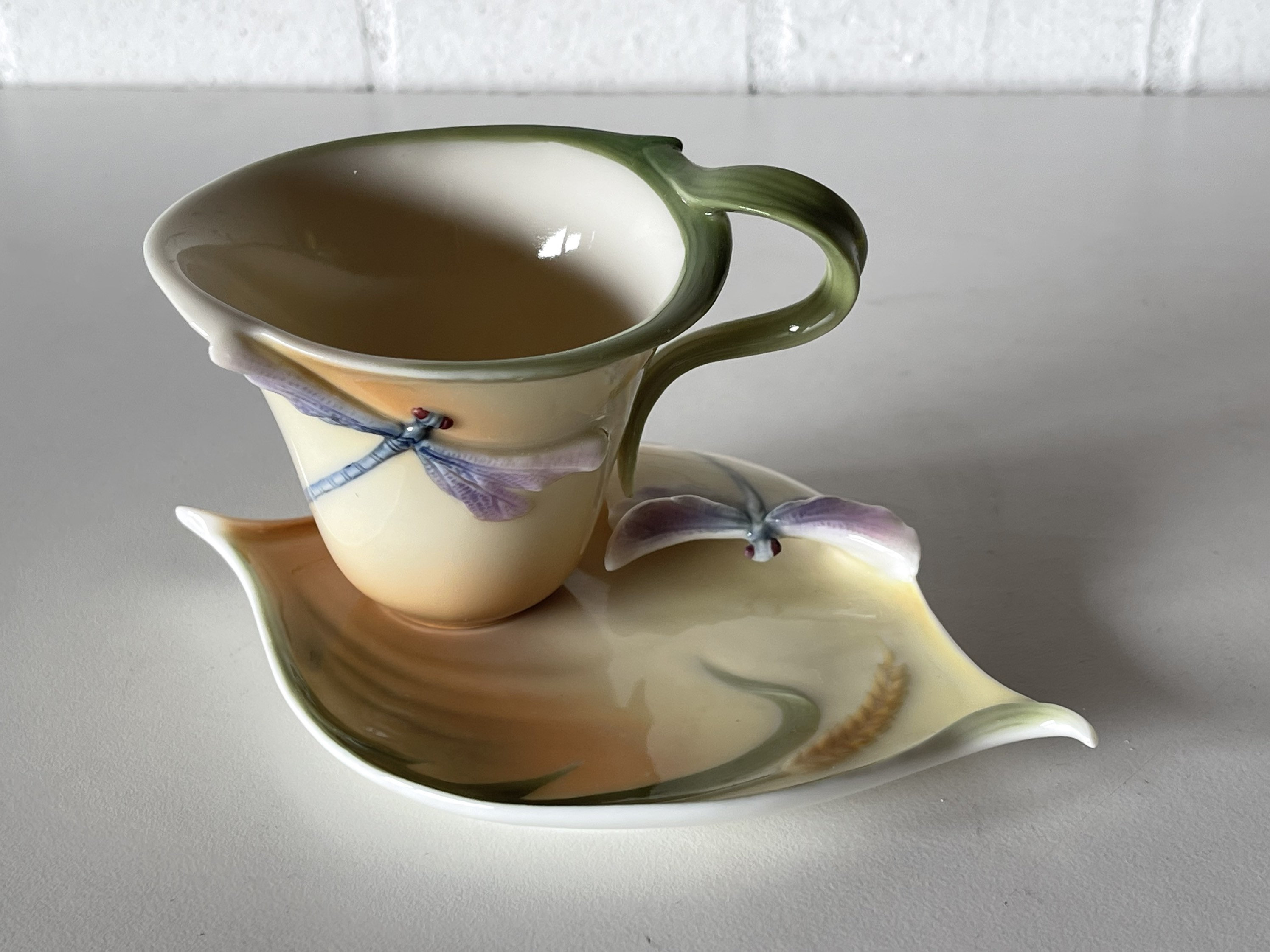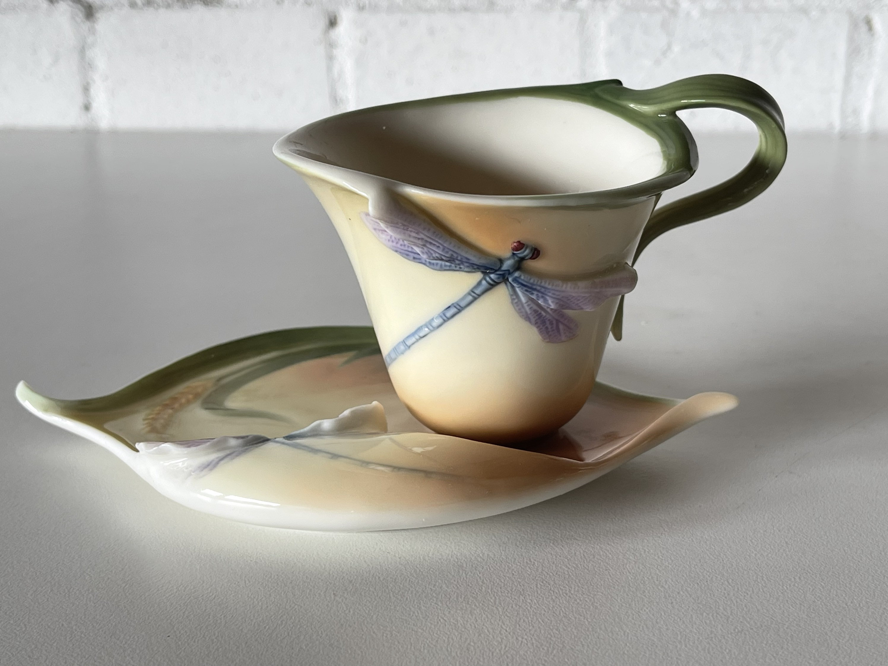 Beautiful Franz Porcelain Dragonfly Cup and Saucer, Designed By Jenny Woo. FZ00028