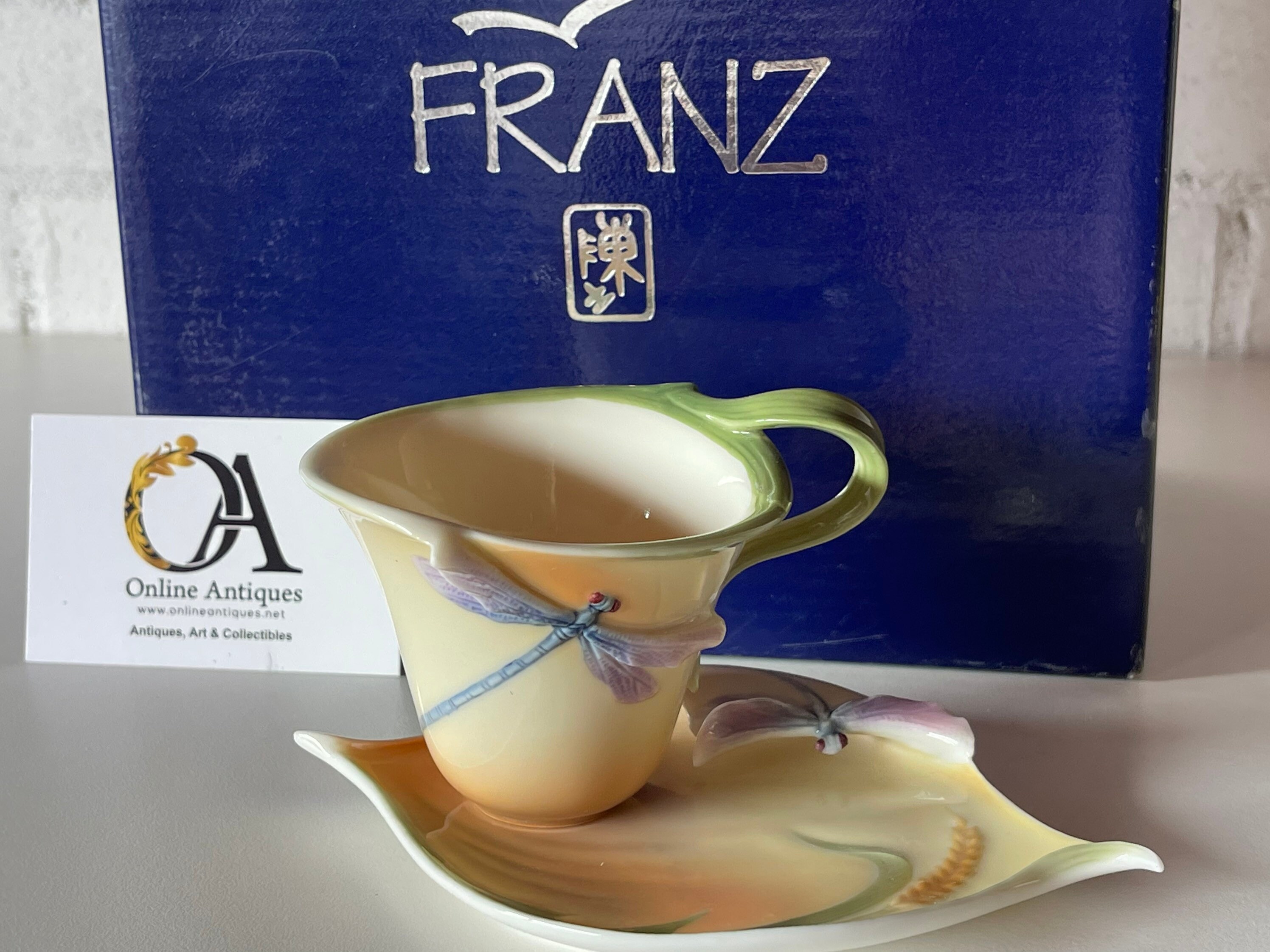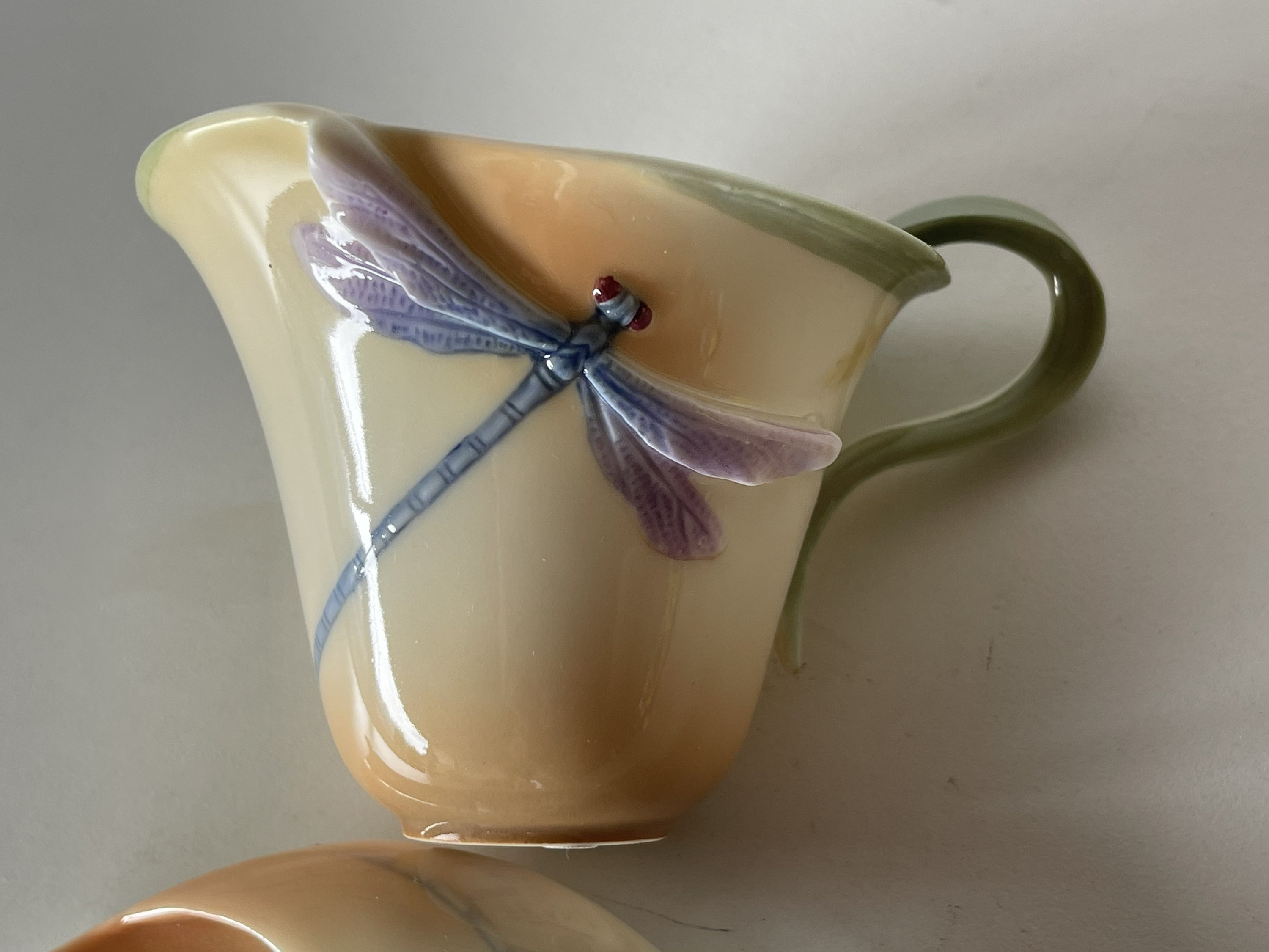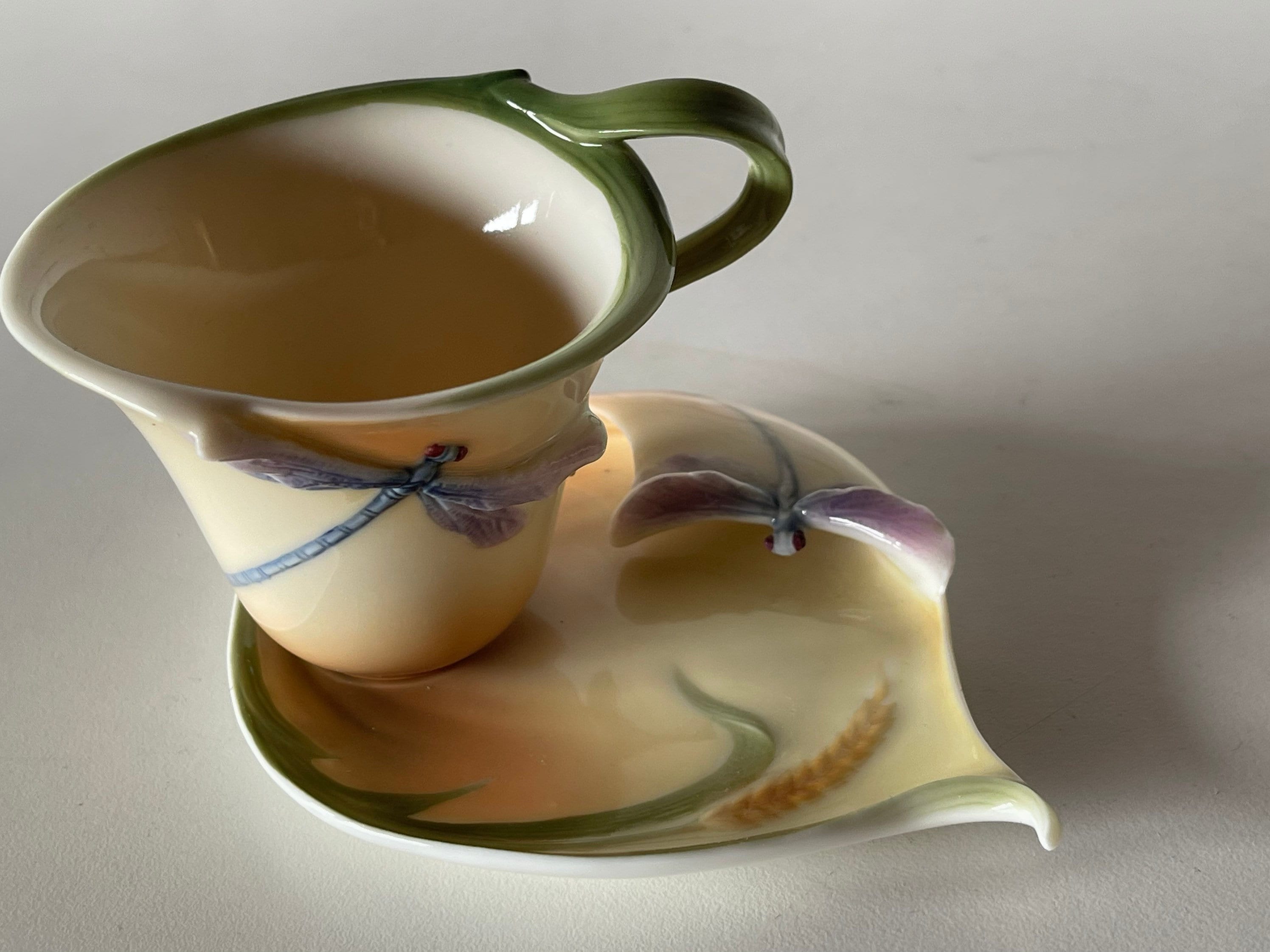 Beautiful Franz Porcelain Dragonfly Cup and Saucer, Designed By Jenny Woo. FZ00028