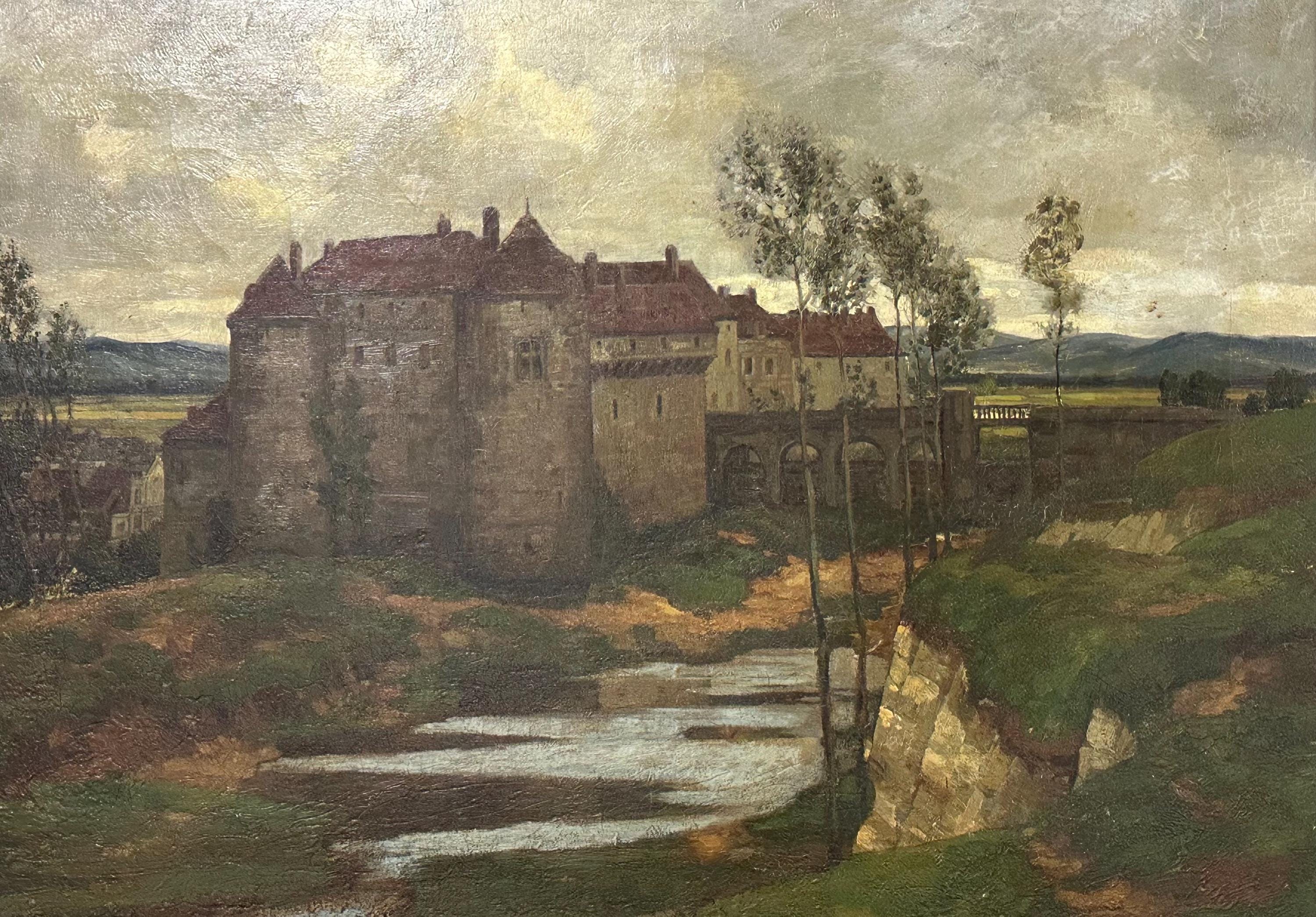 Original Large Oil Painting by Frederick Marriott Titled The Chateau at Dieppe.