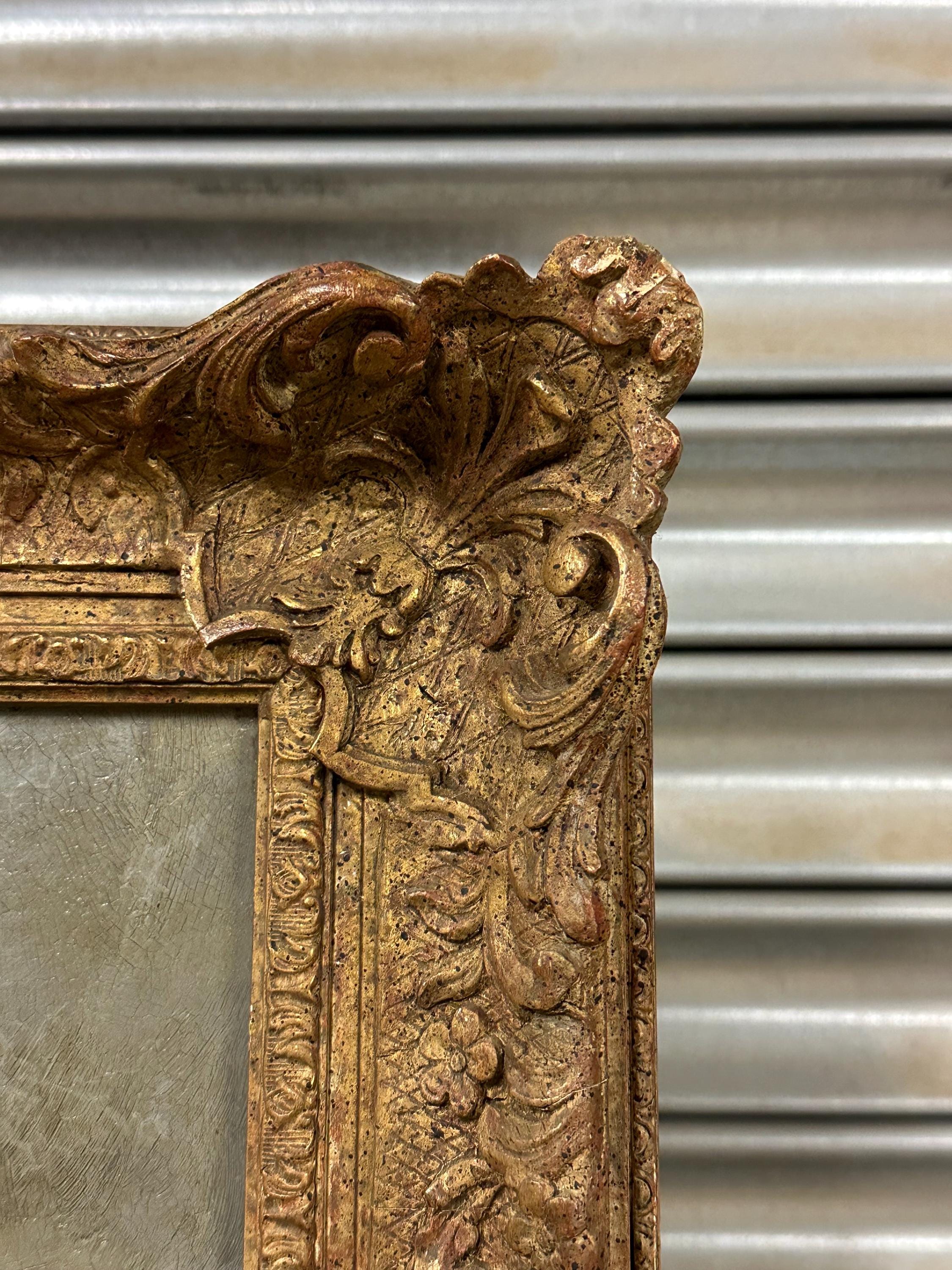 The lovely ornate gilt frame measures approx 90 x 68cm so a substantial size and there are labels on the back of the frame referring to the artist his address in Chelsea and when the painting was cleaned in 1967 and owned by H M Boot, Esquire