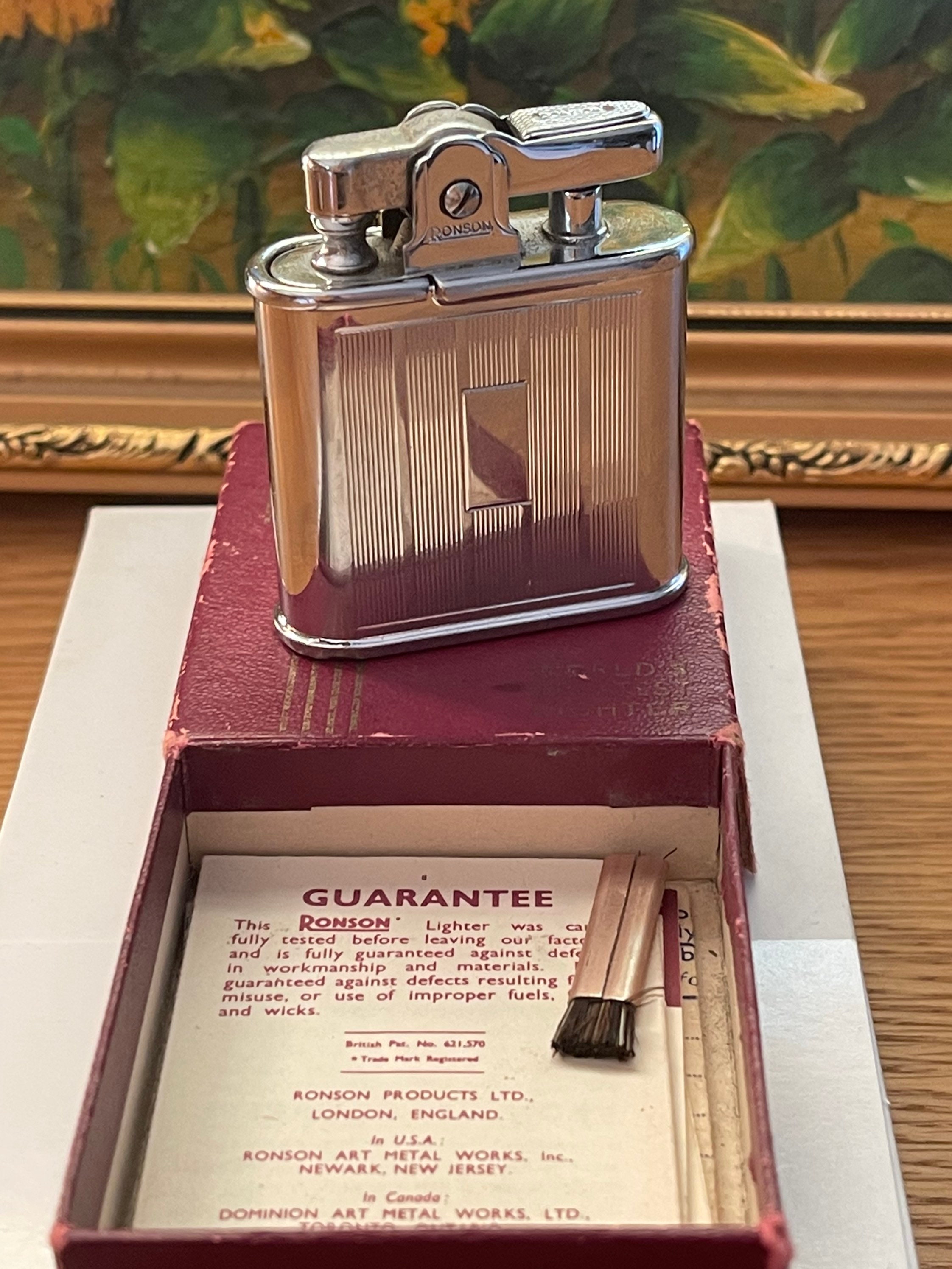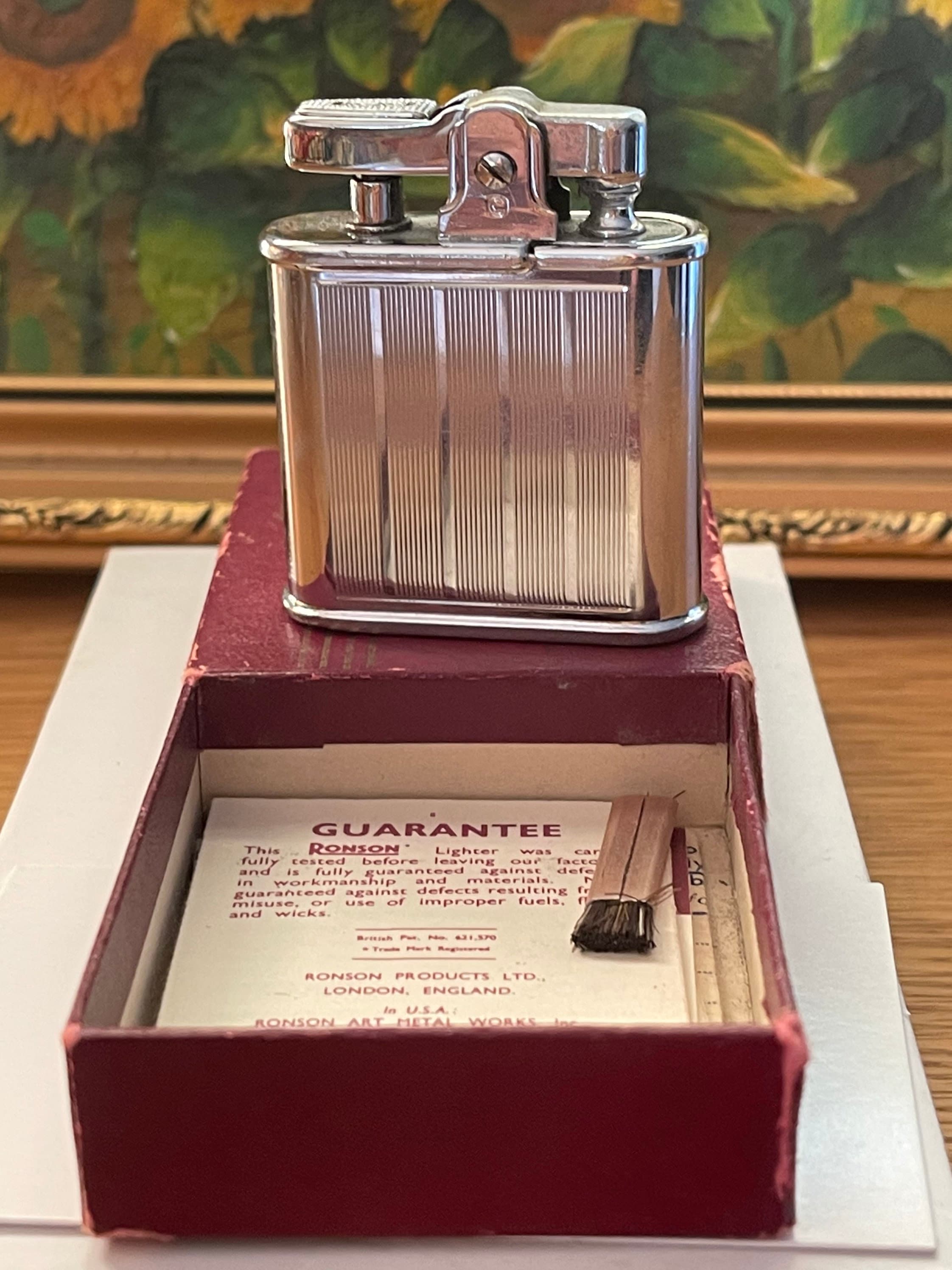 Superb Vintage Ronson Whirlwind Chromium Lighter with Original Guarantee & Box and also the small cleaning brush