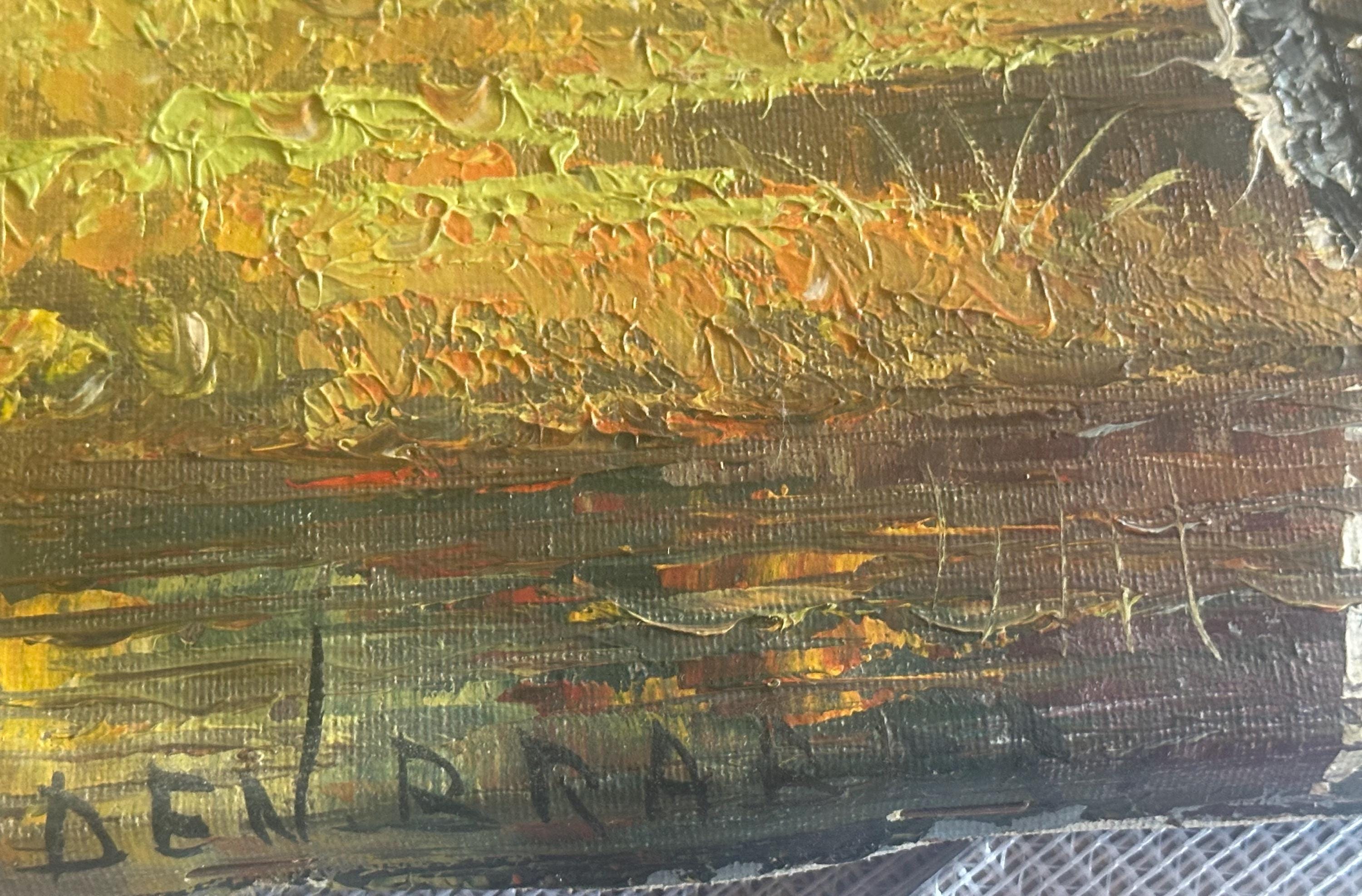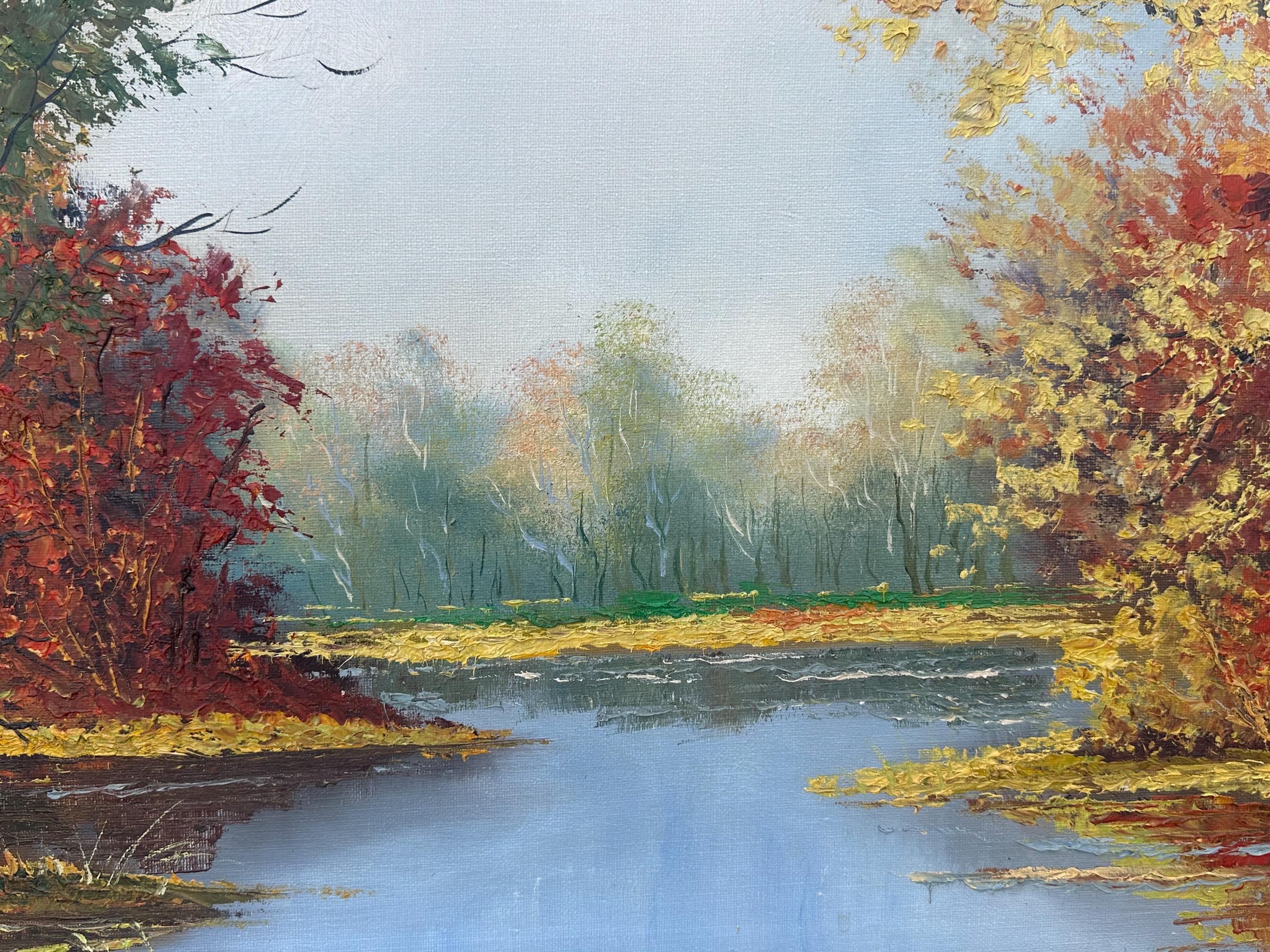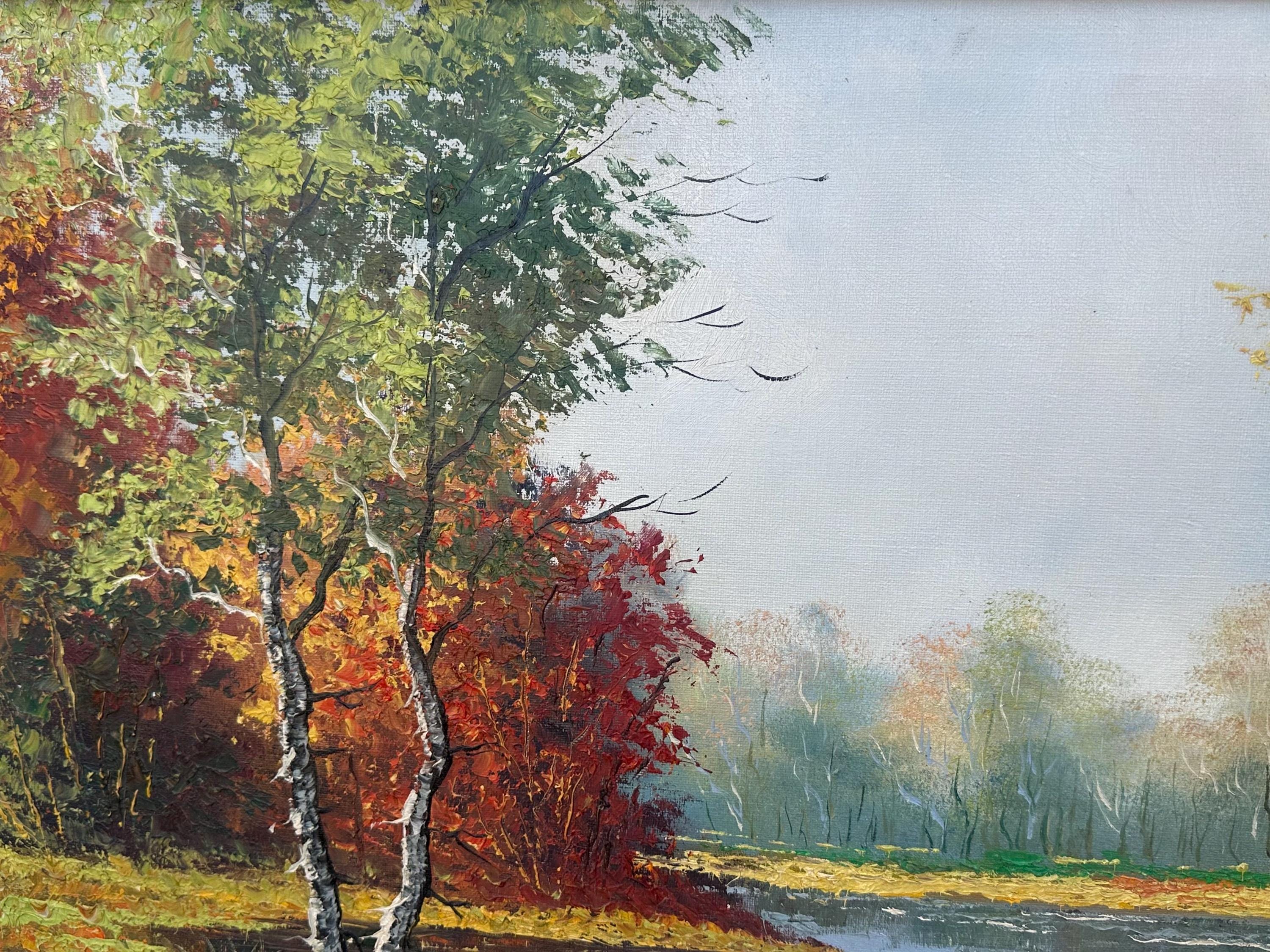 Gorgeous Mid Century Oil Painting of an Autumn River Scene Cornelis Den Braber