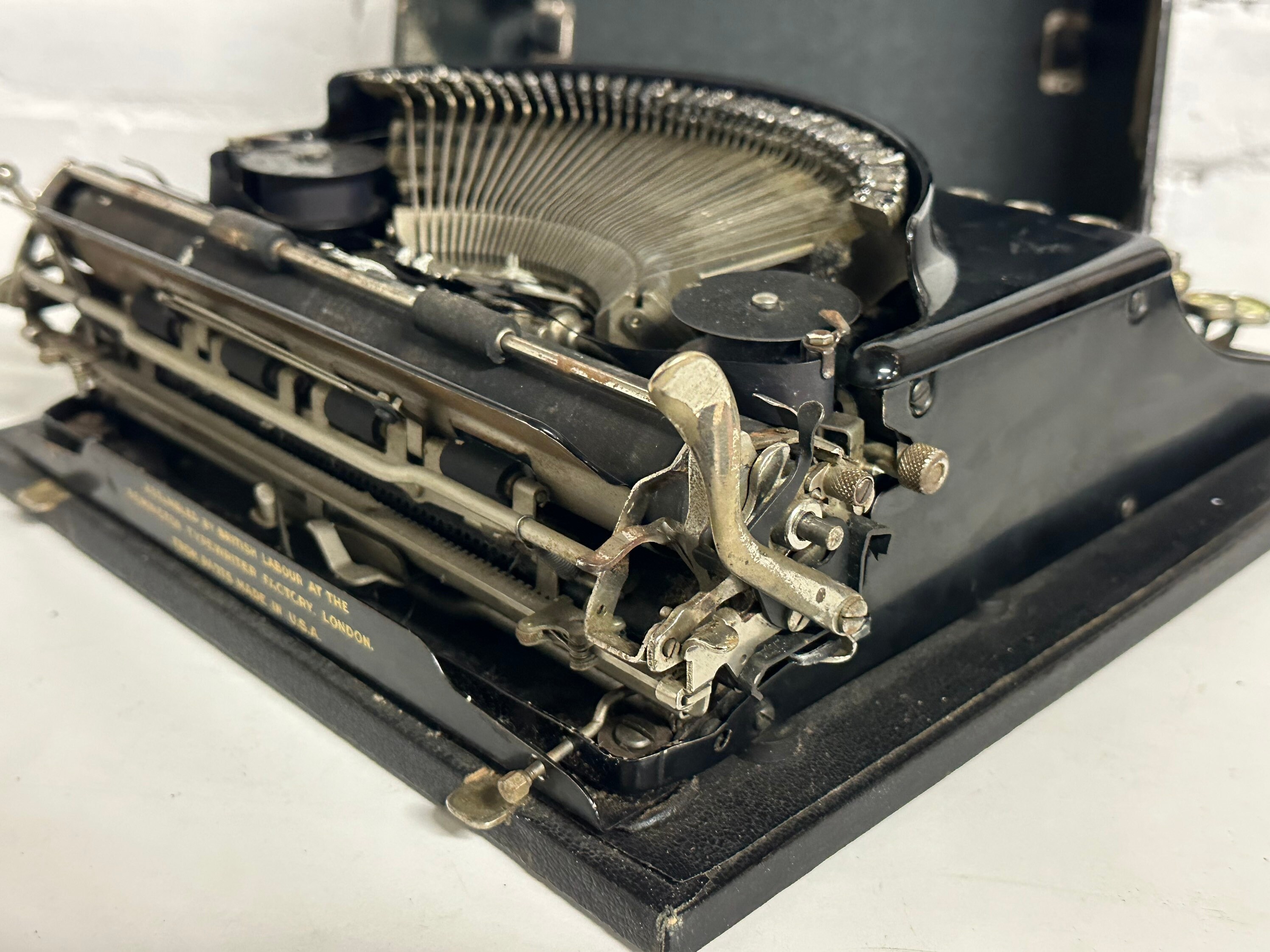 Quite a sought after model. The keys move freely but it would benefit from a proper service as doesn’t look to have been used since then. It has areas of wear and rust on the metal work around the roller etc but it does work so just needs a bit of attention to be brought back to its original condition
