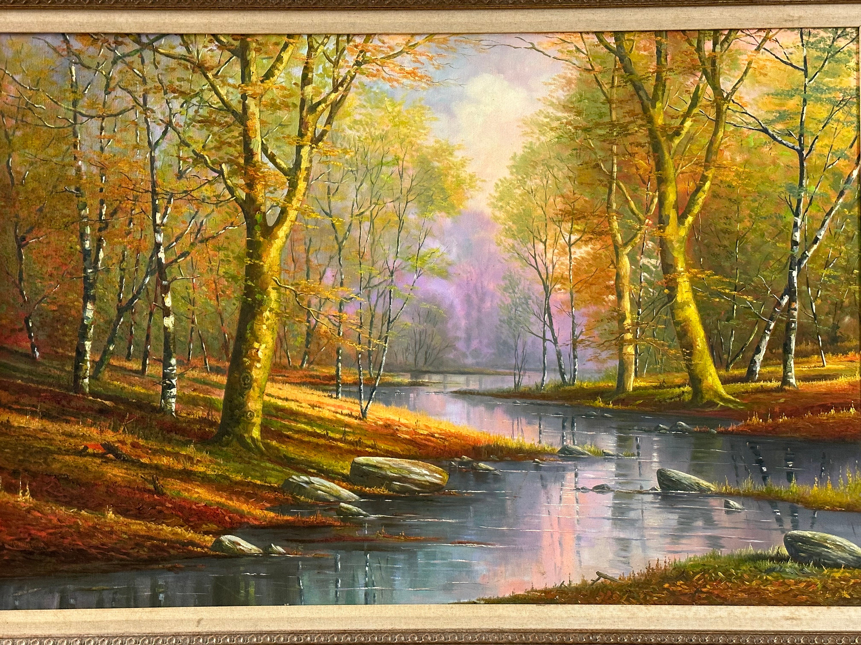 Beautiful Vintage Mid Century Oil Painting On Canvas Of A Woodland Scene.