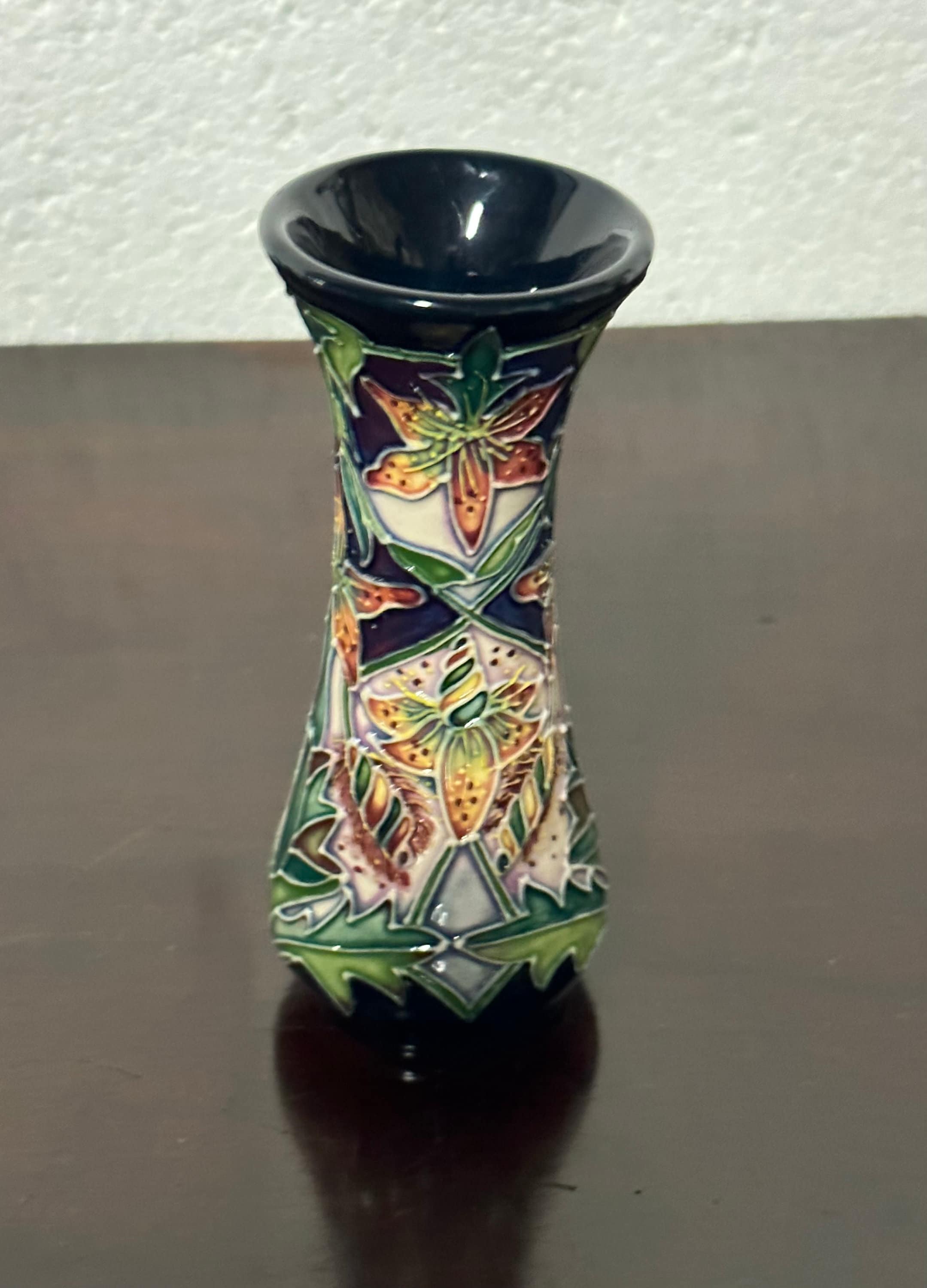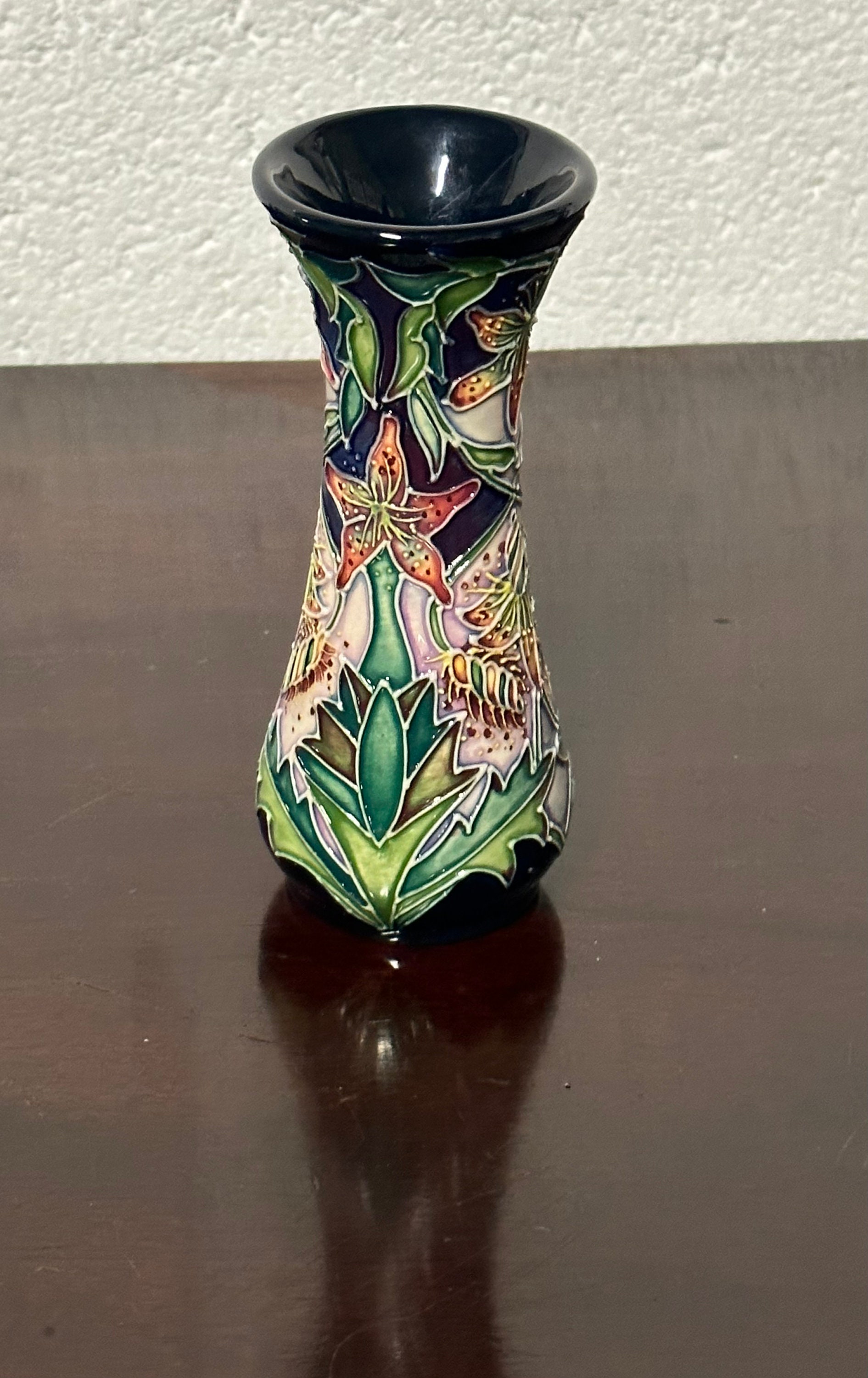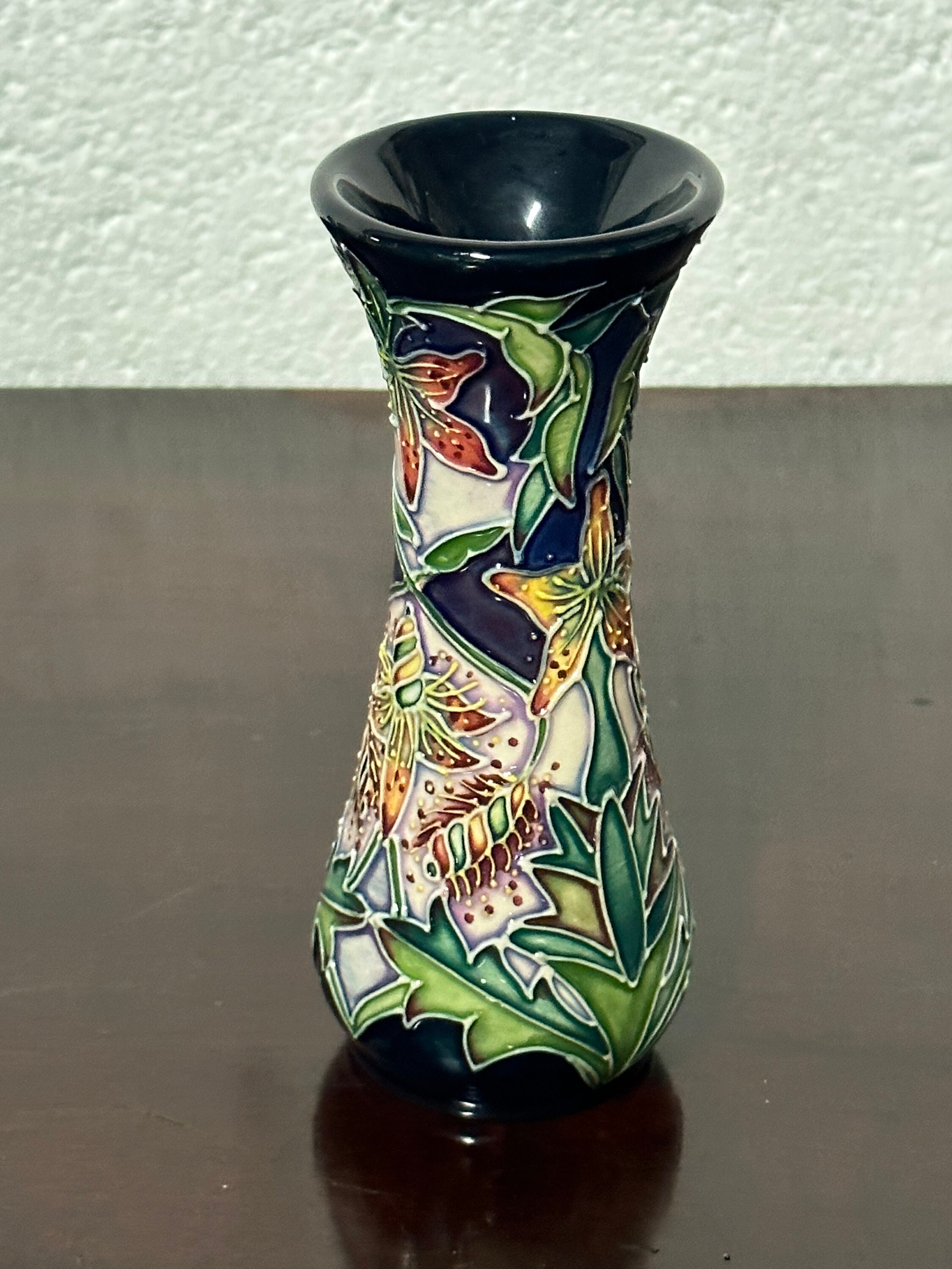 Beautiful Small William Moorcroft 2001 Delonix Vase With Moorcroft Box.