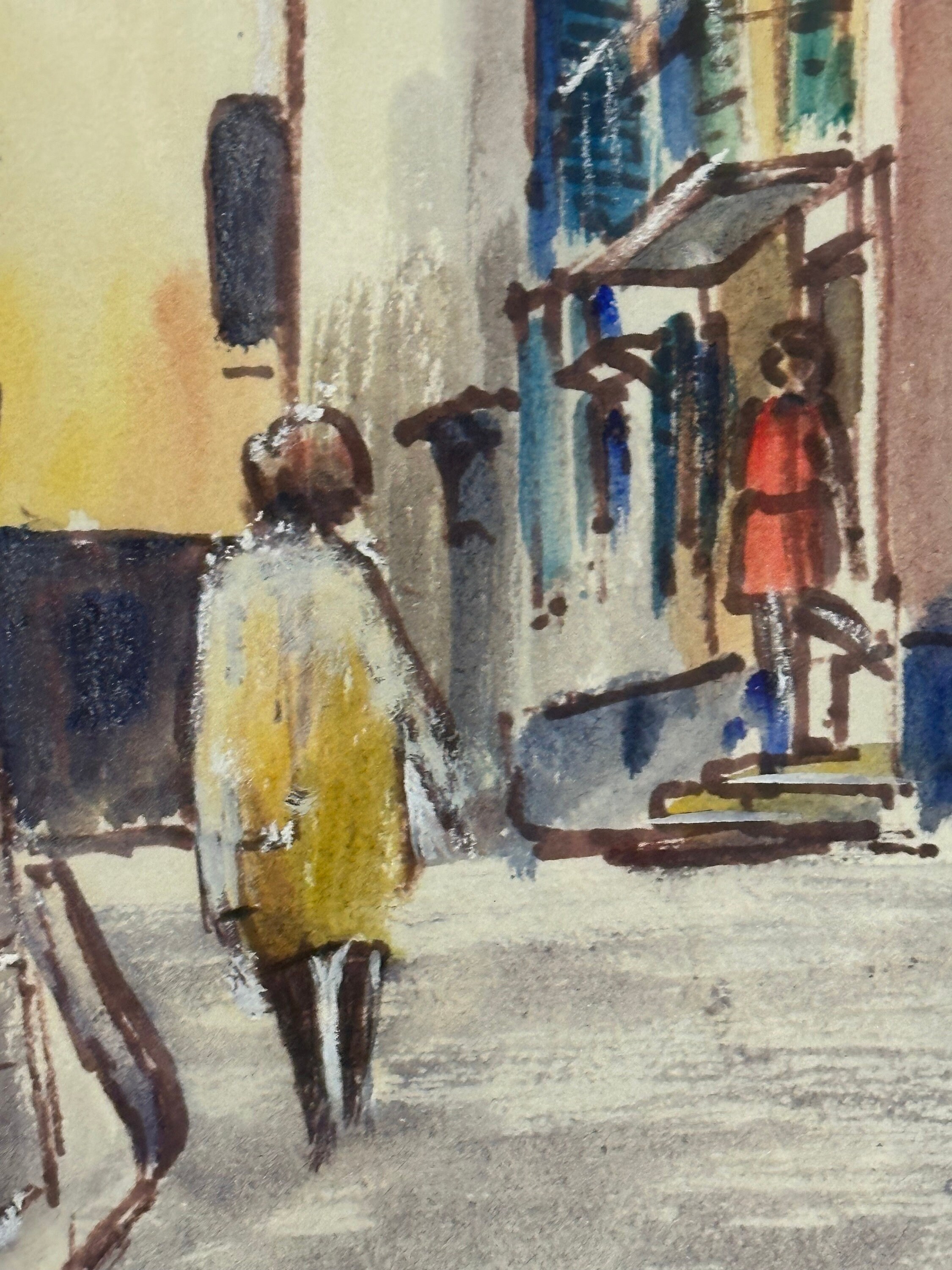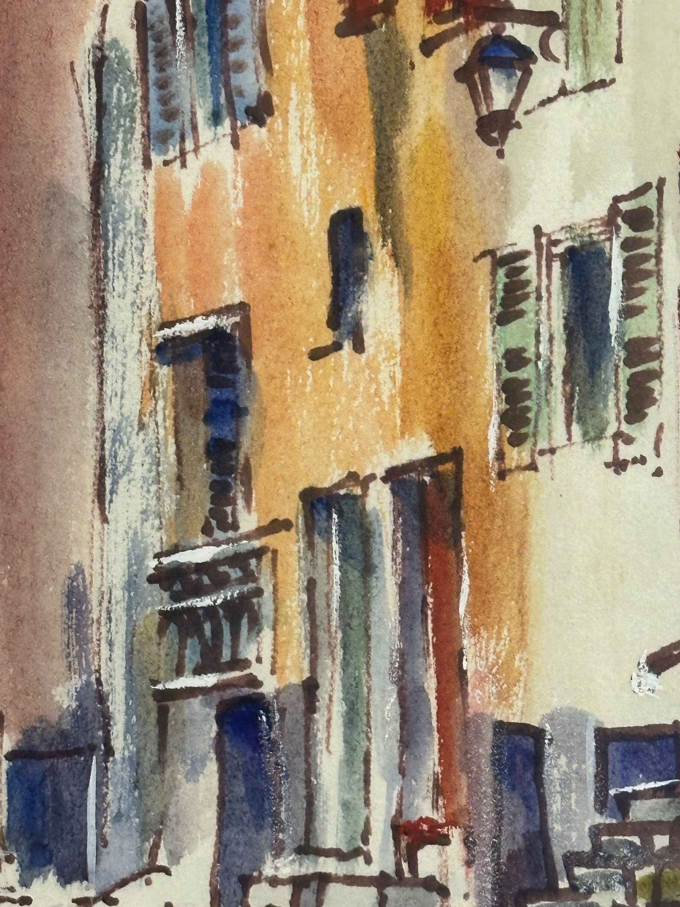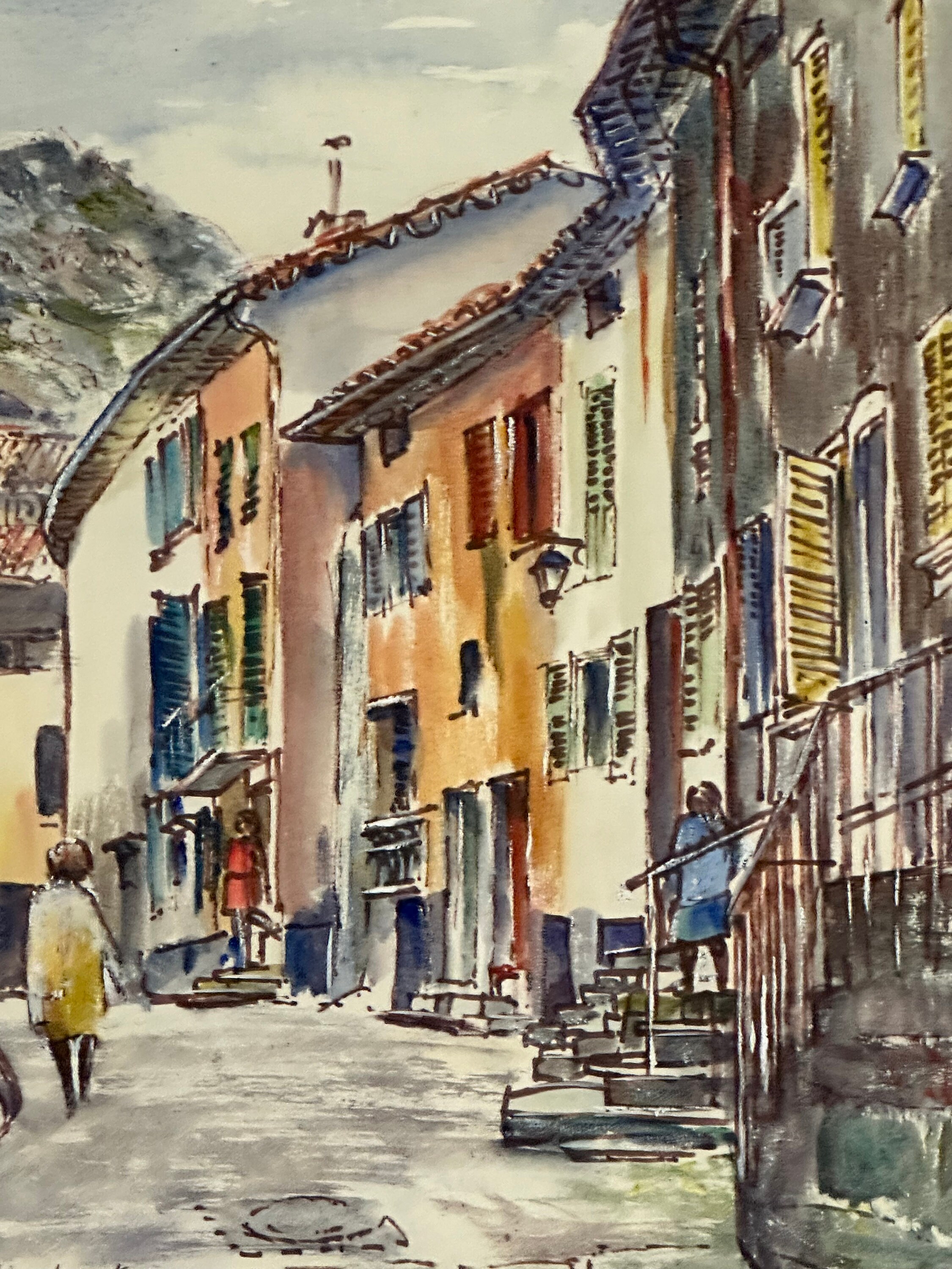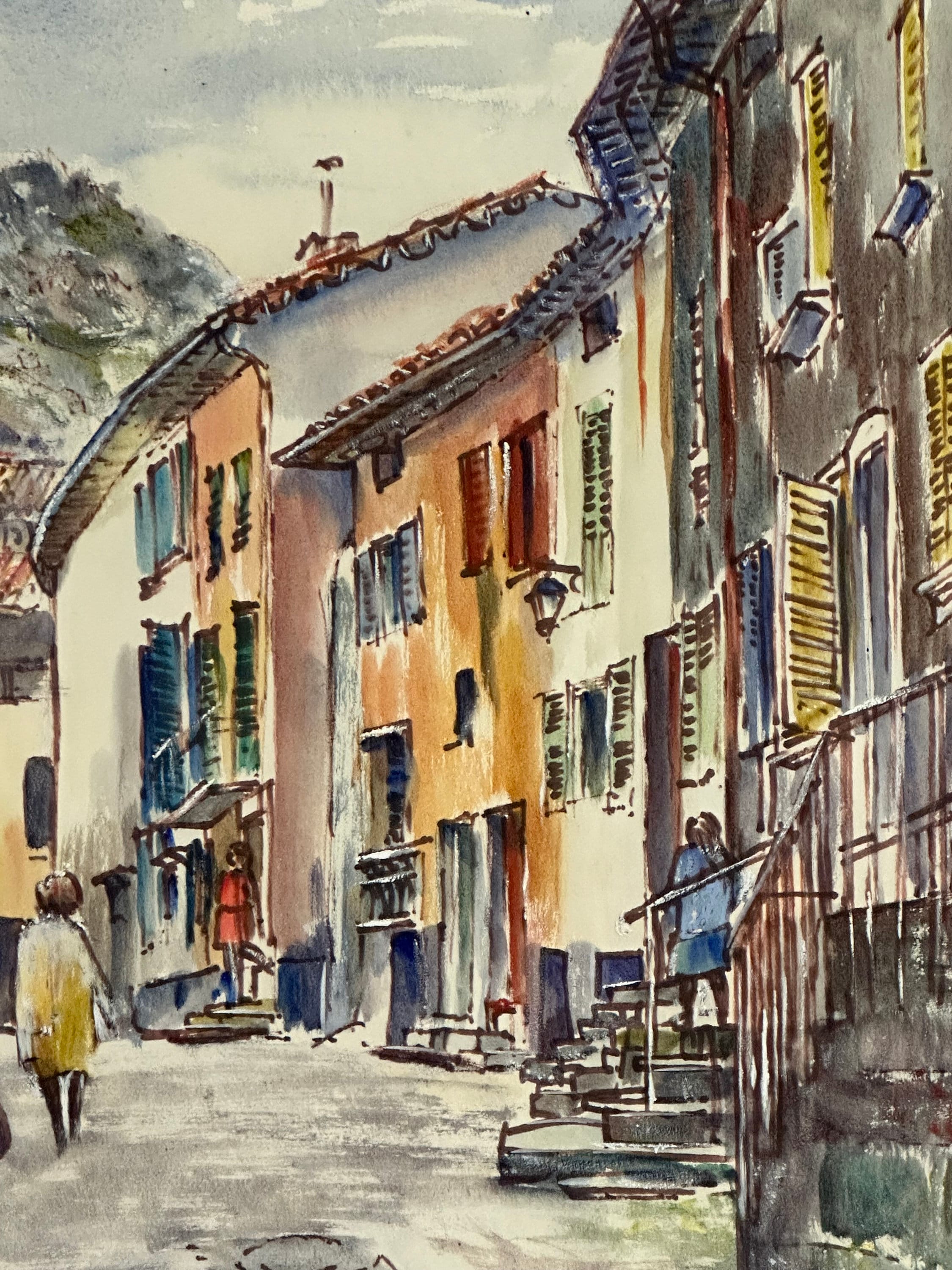 Lovely Circa 1970’s Watercolour Of Rue Moulin, Annot, Provence, France By Jim Muggleton