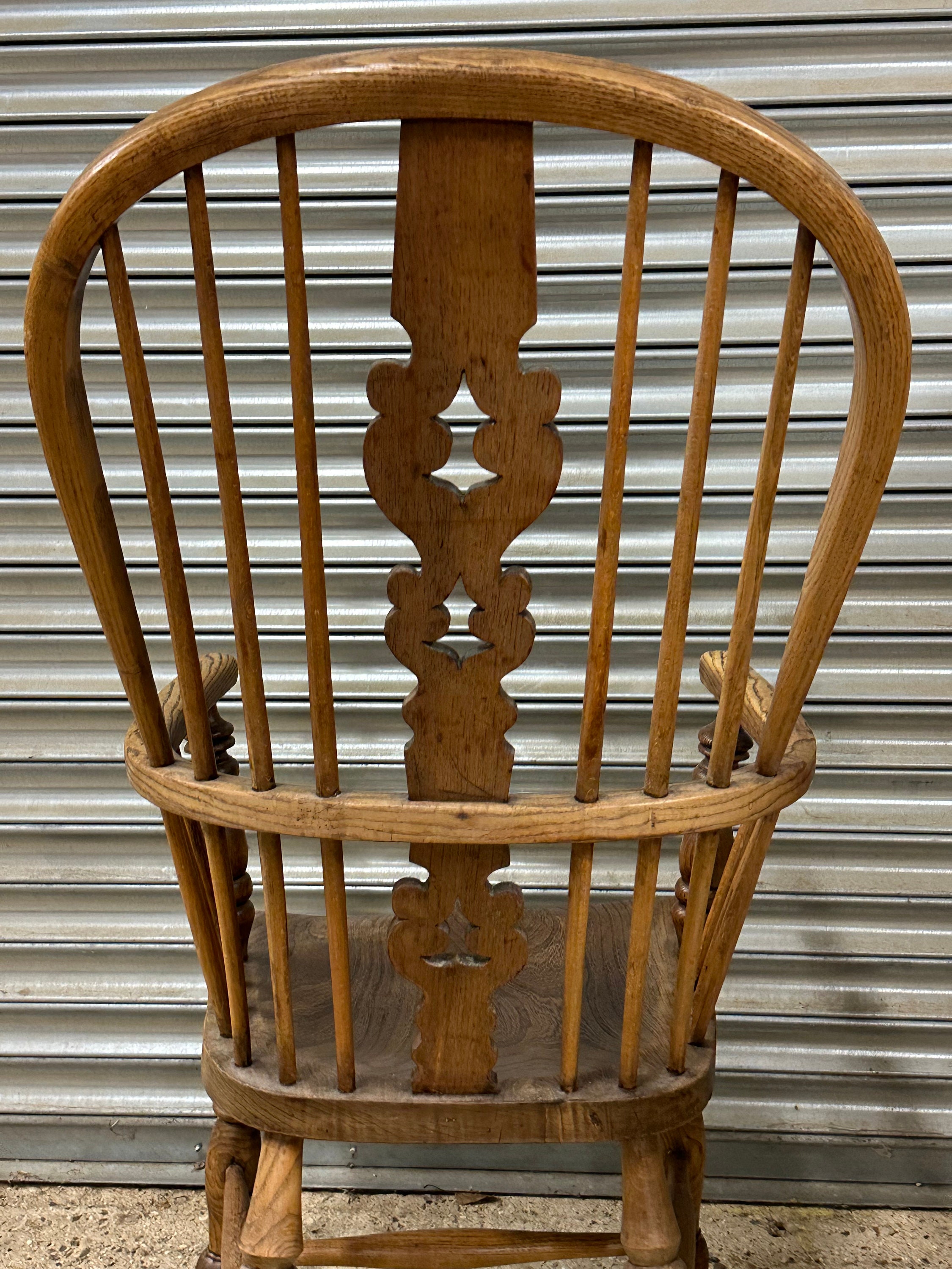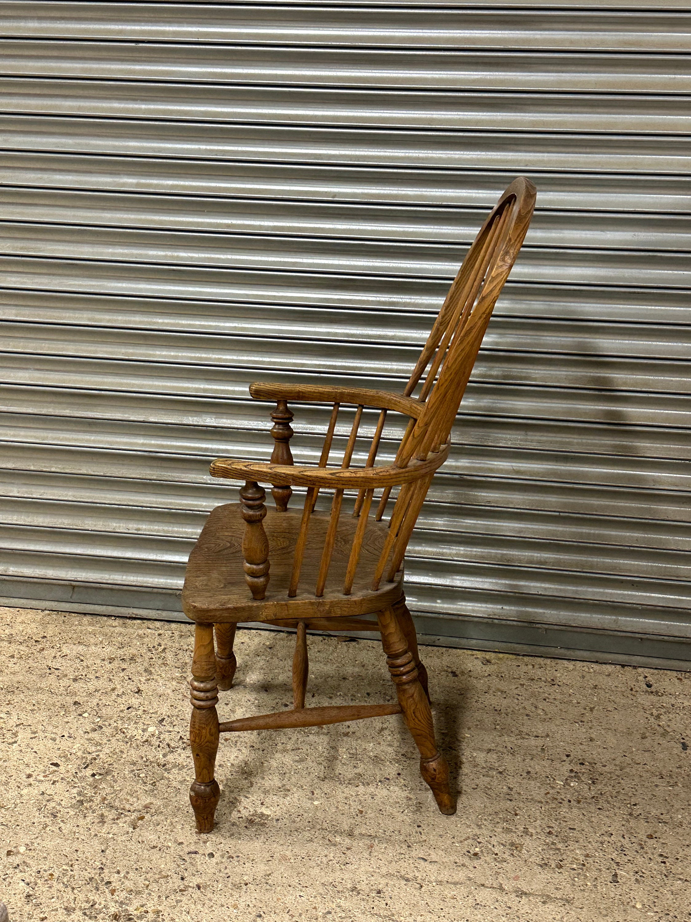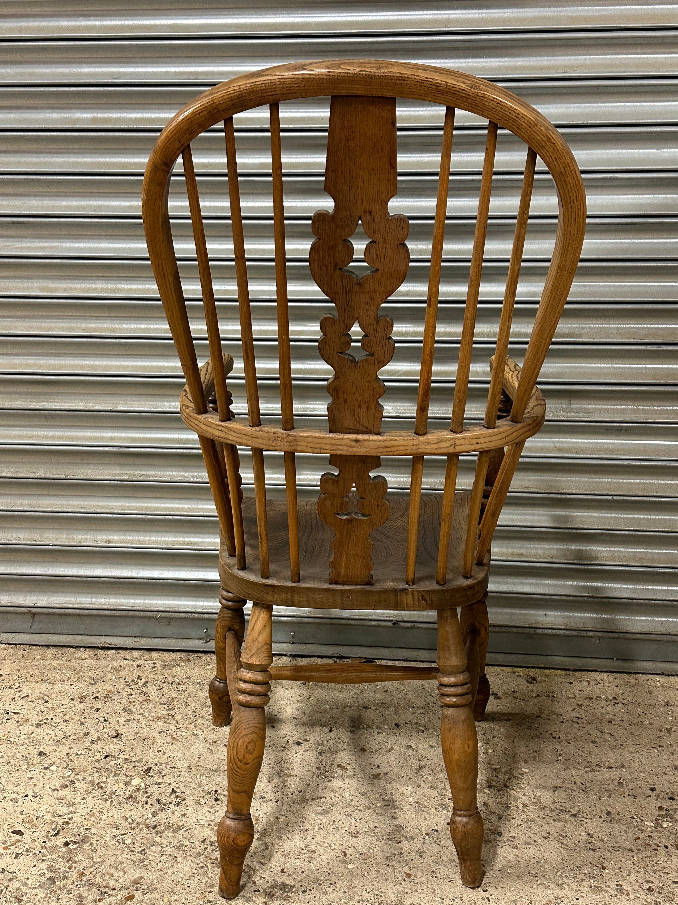 English Classic Antique 19th Century Elm Seat Hoop Back Windsor Armchair