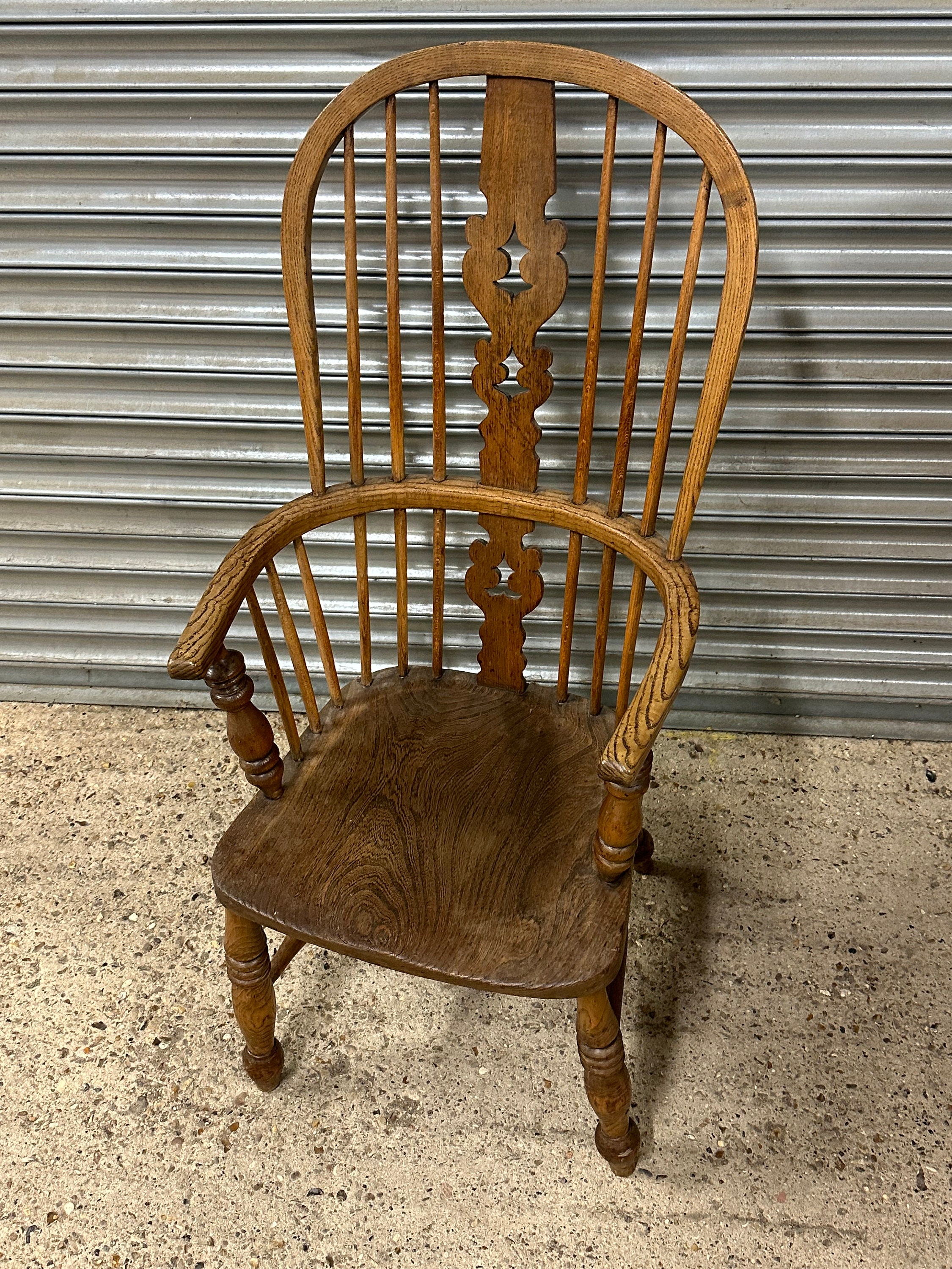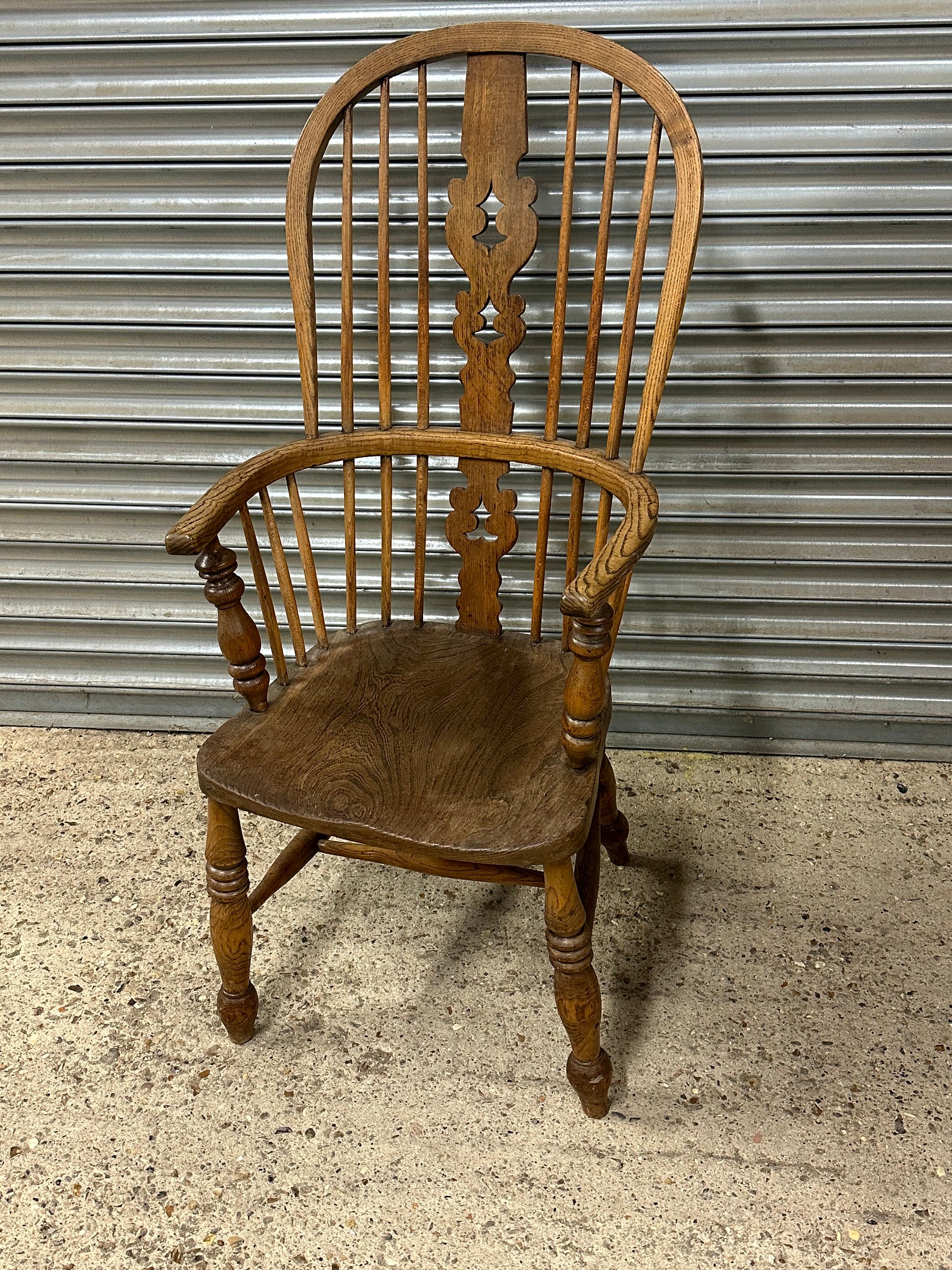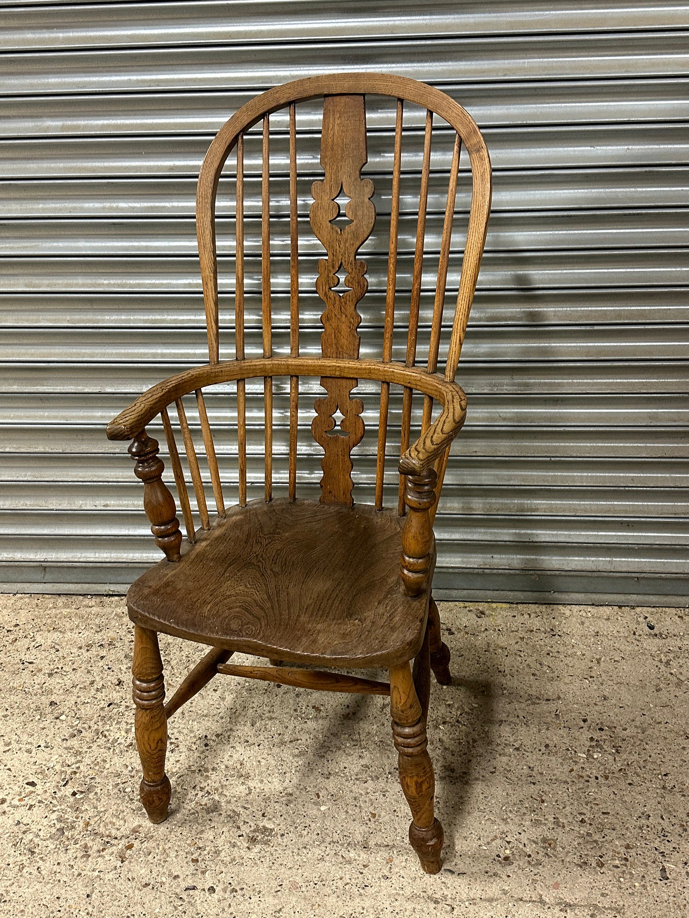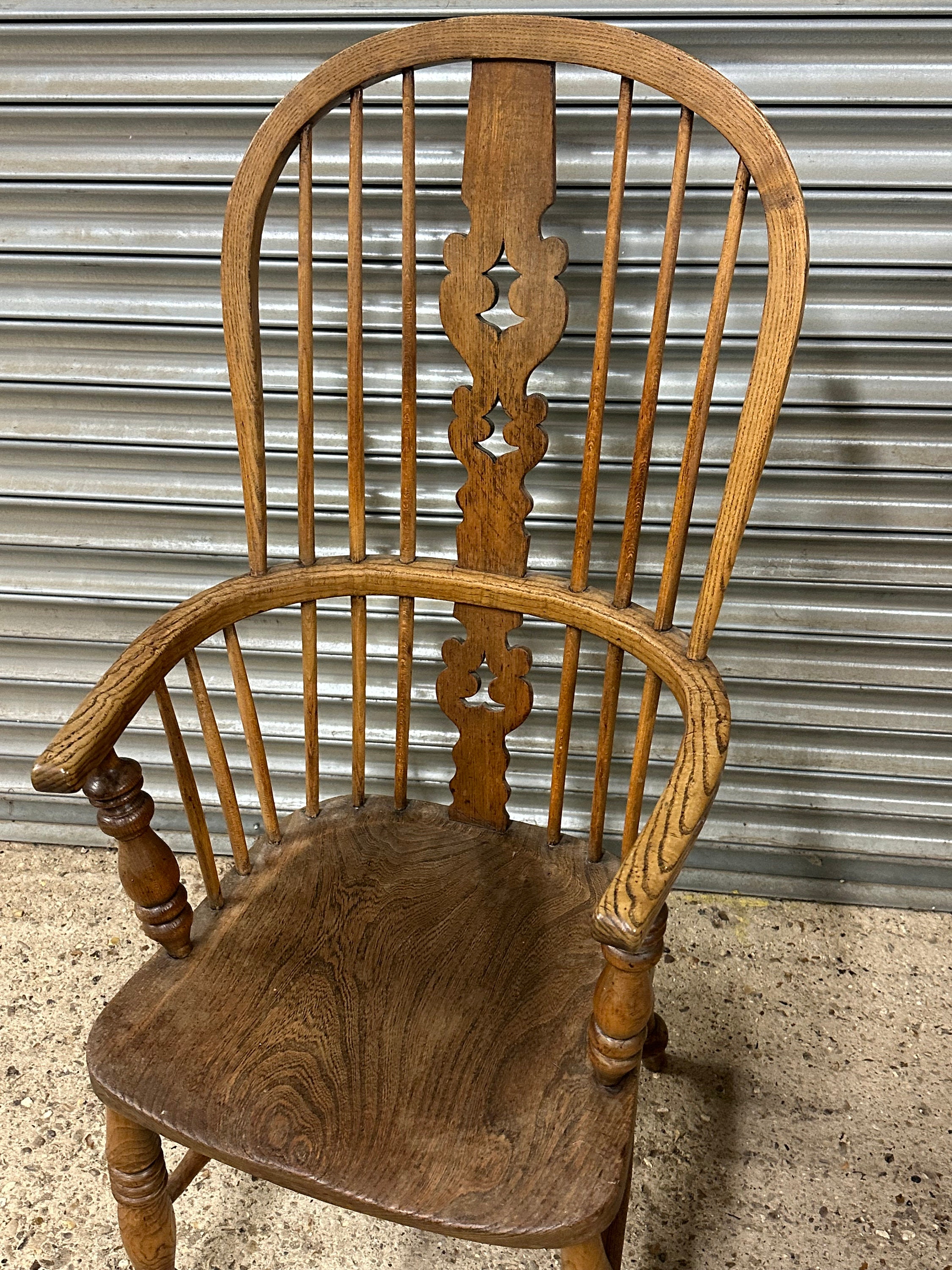 English Classic Antique 19th Century Elm Seat Hoop Back Windsor Armchair