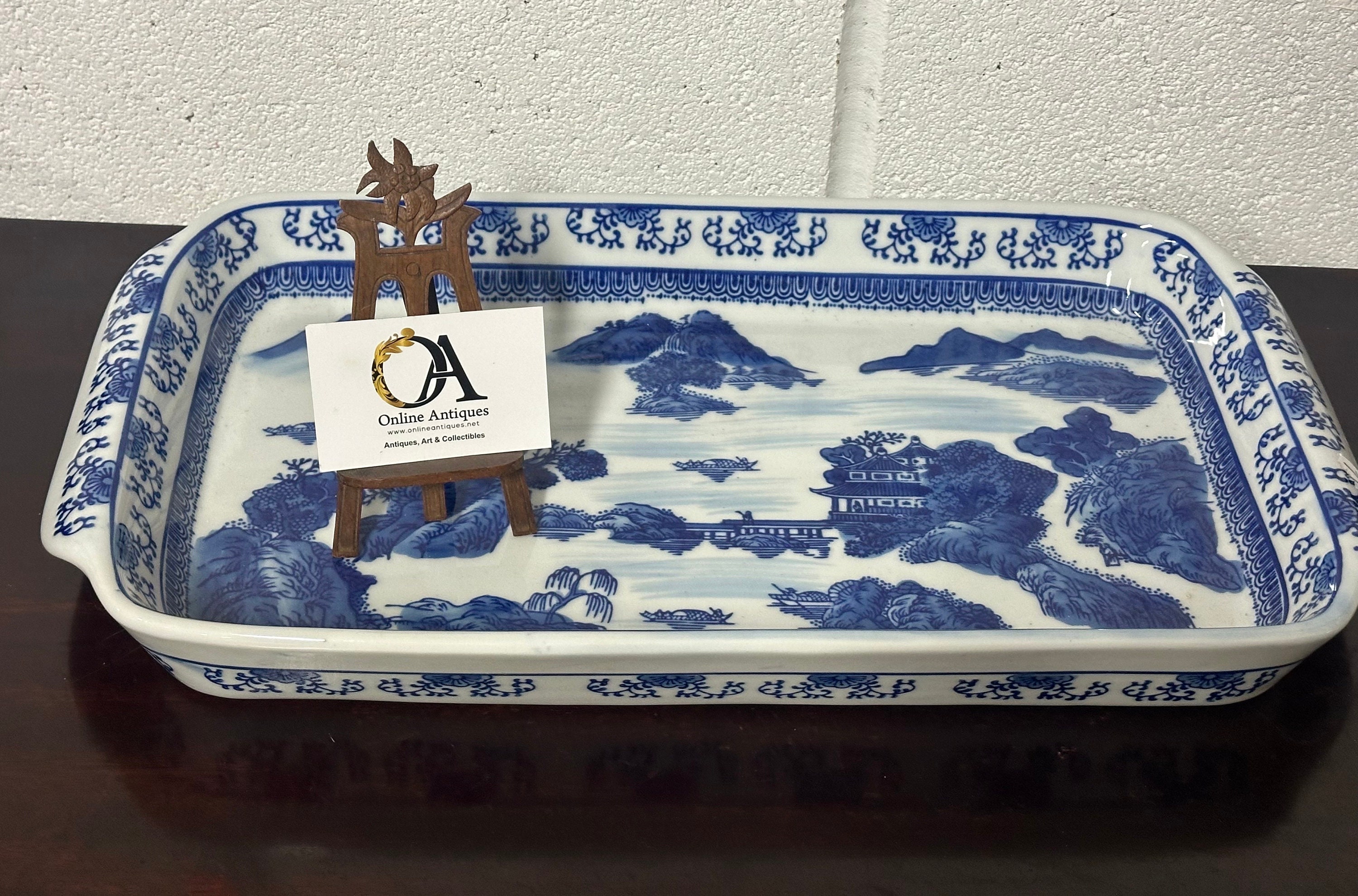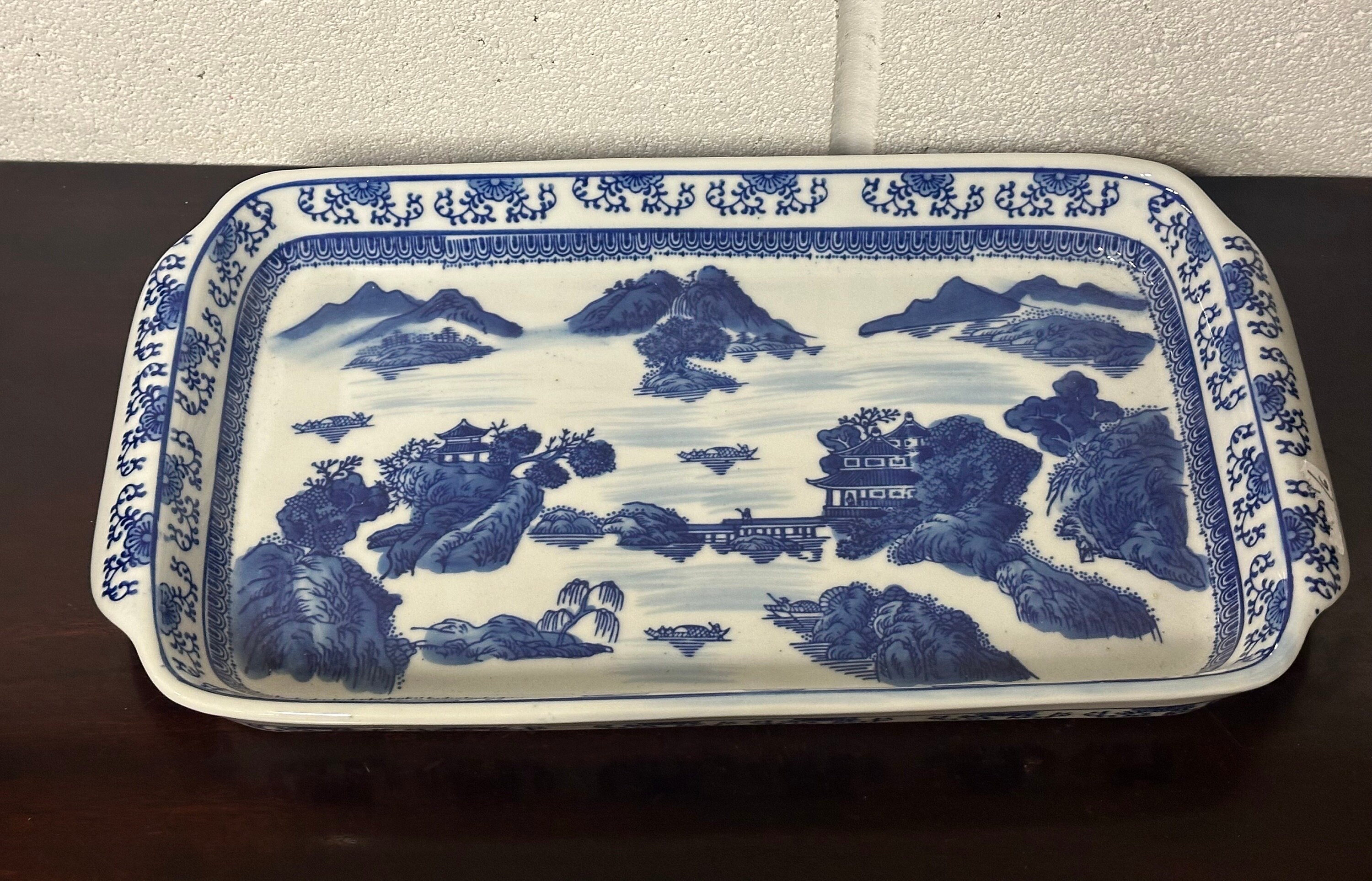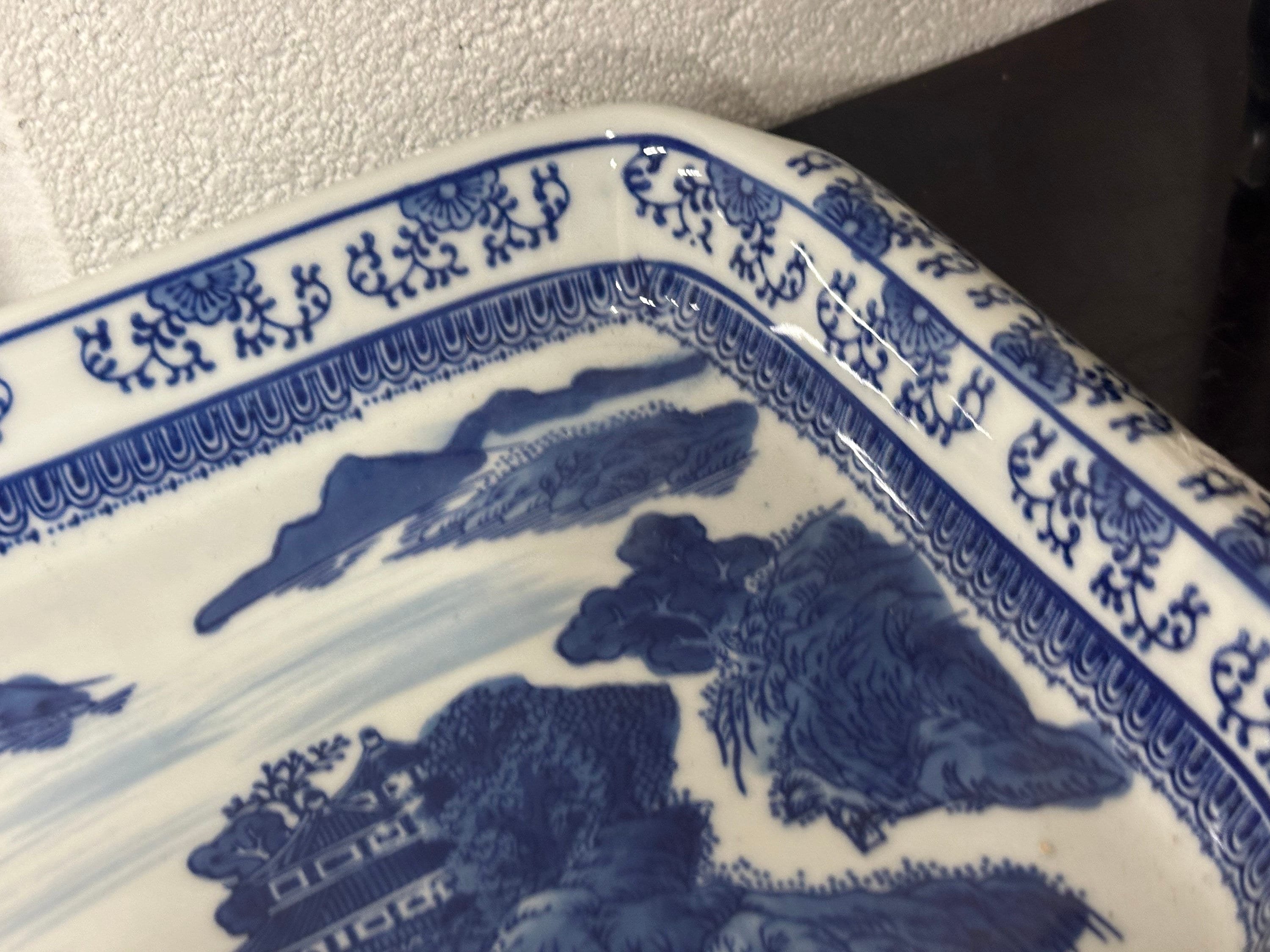 Large Antique Chinese Decorated Blue & White Ceramic Dish