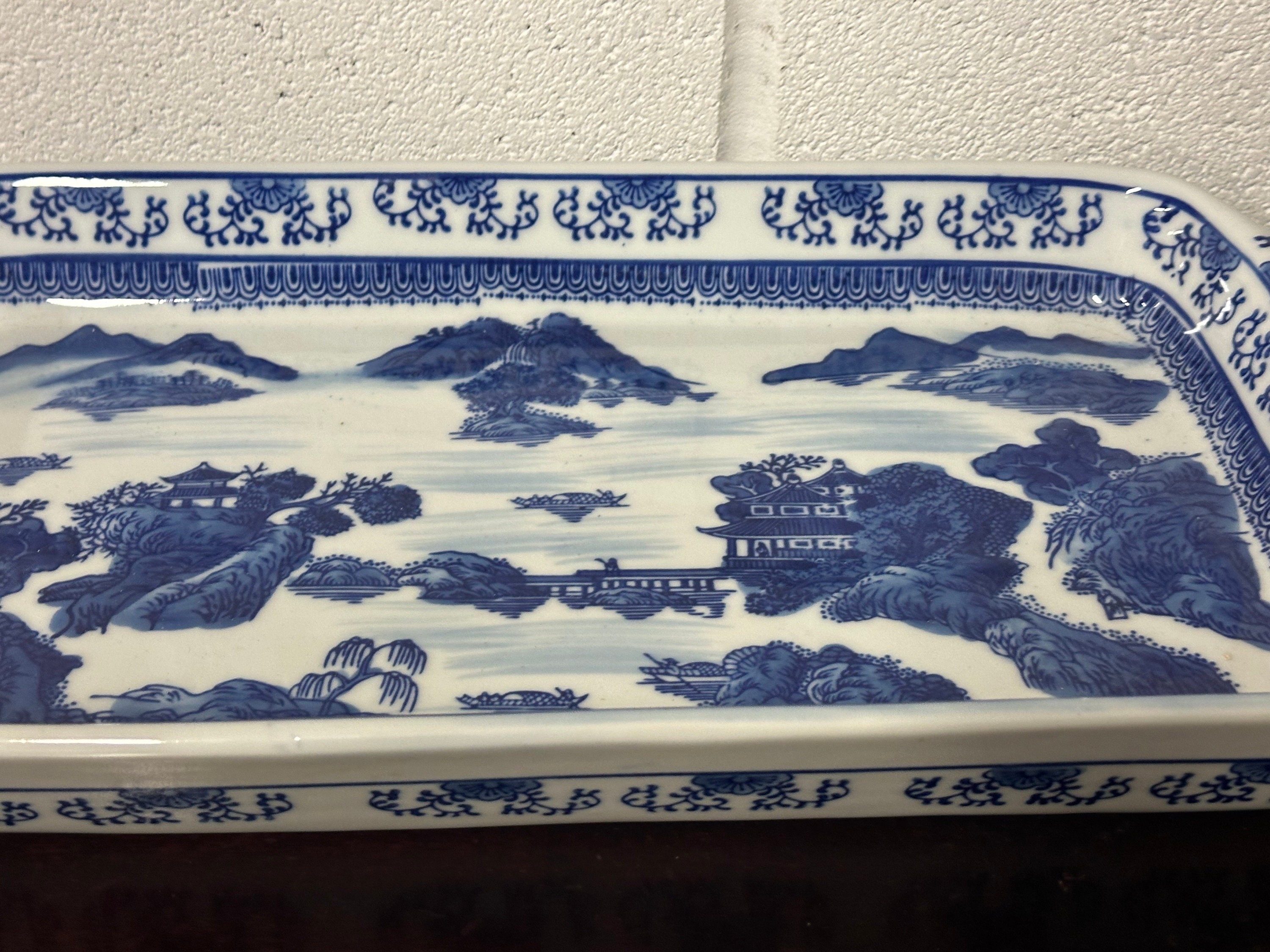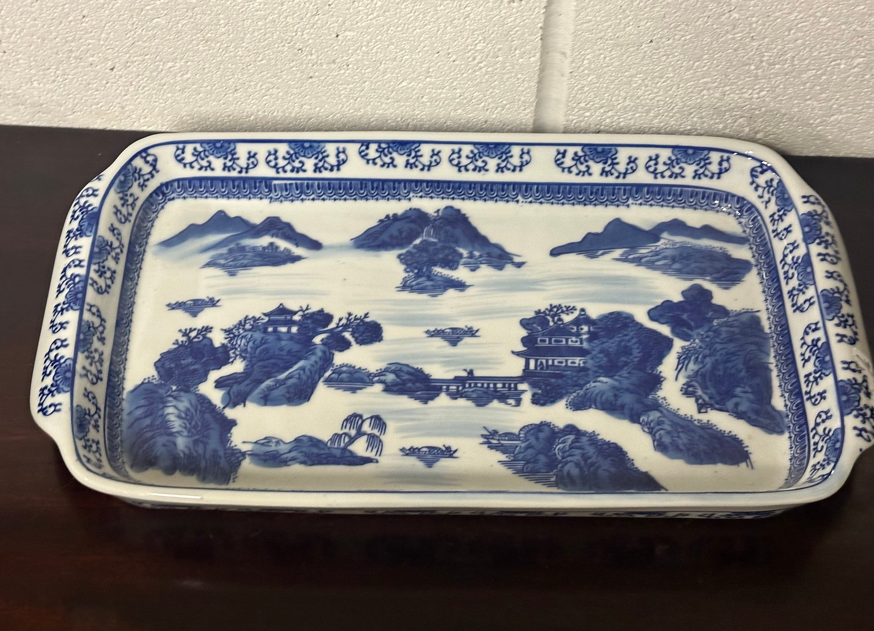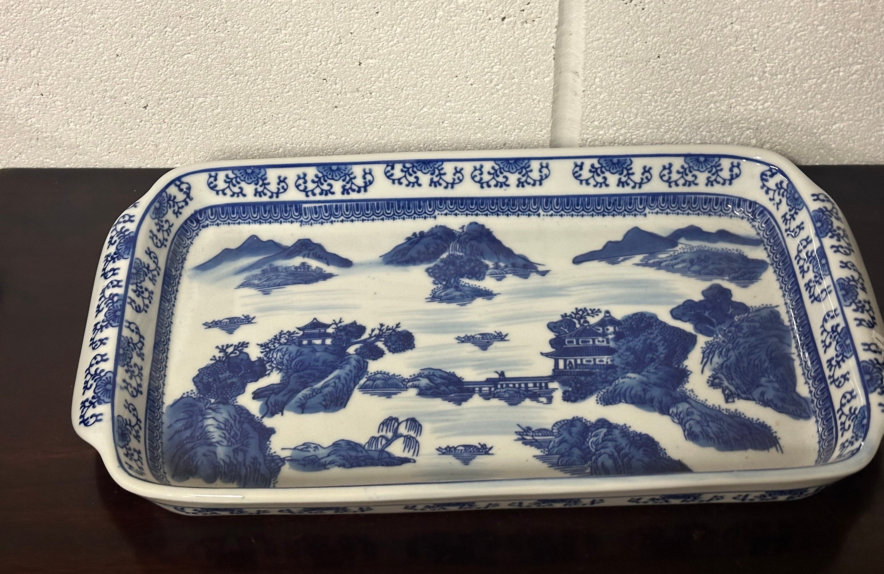 Large Antique Chinese Decorated Blue & White Ceramic Dish