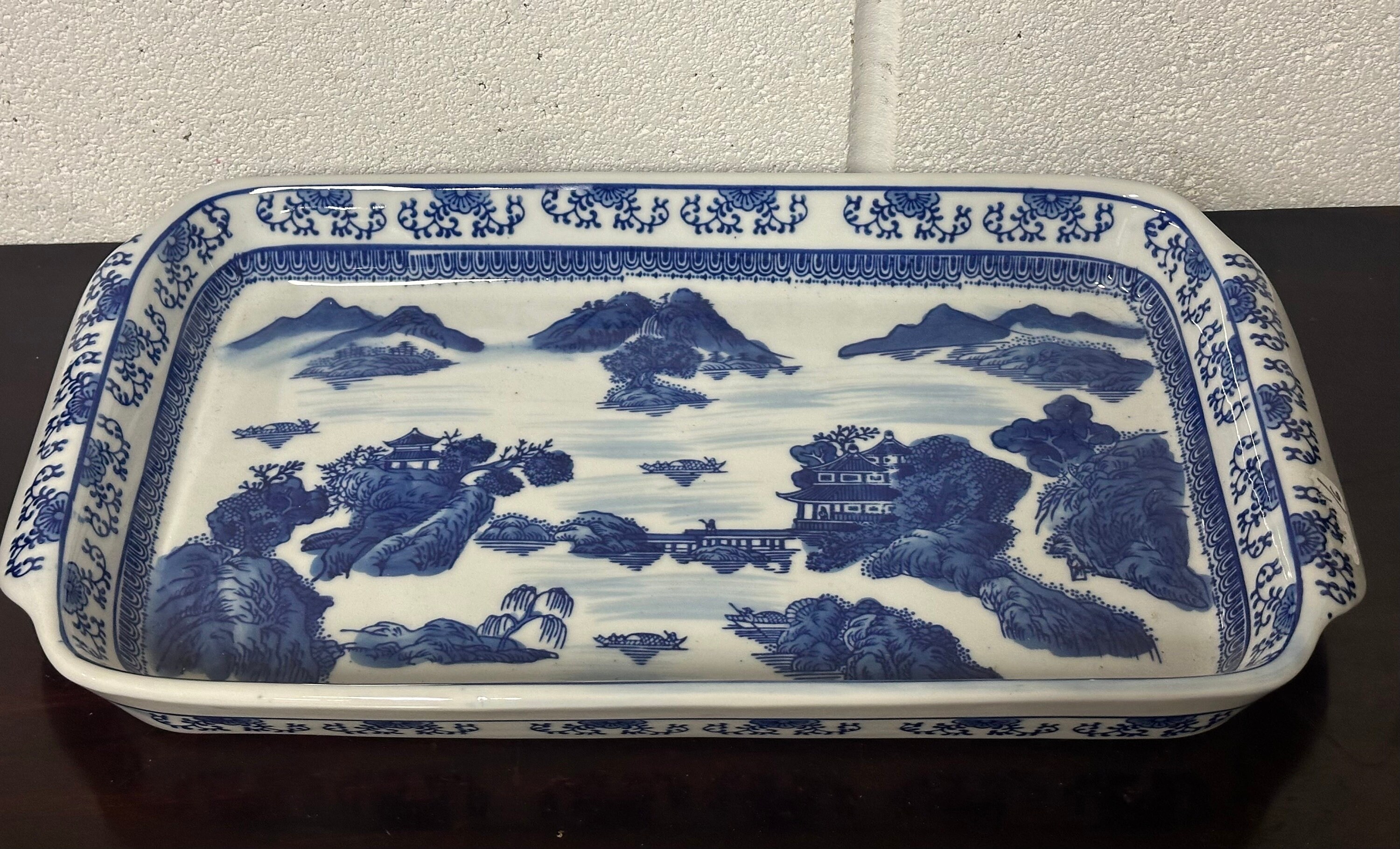 This is a heavy deep set dish which measures approximately 49cm x 27cm