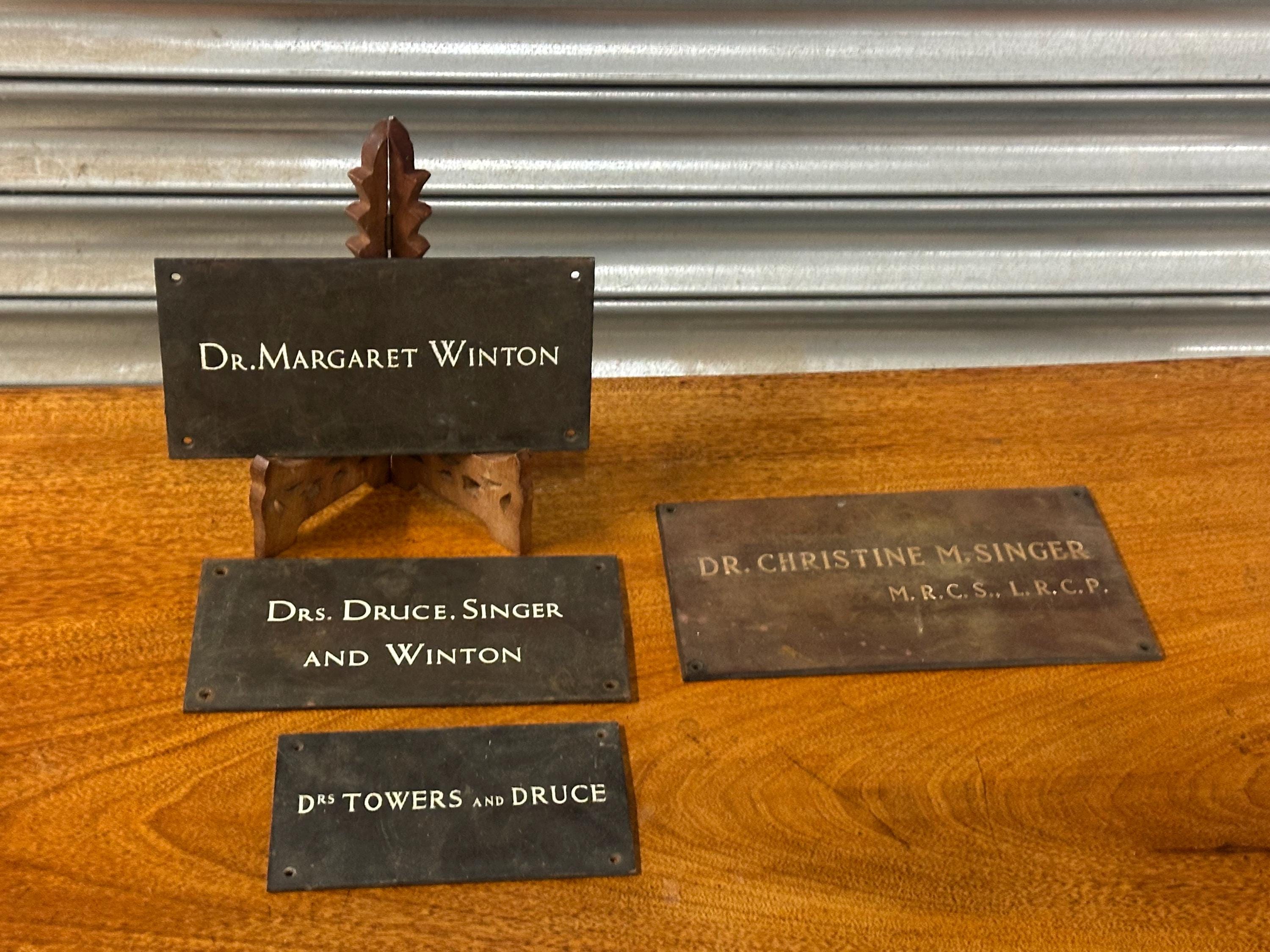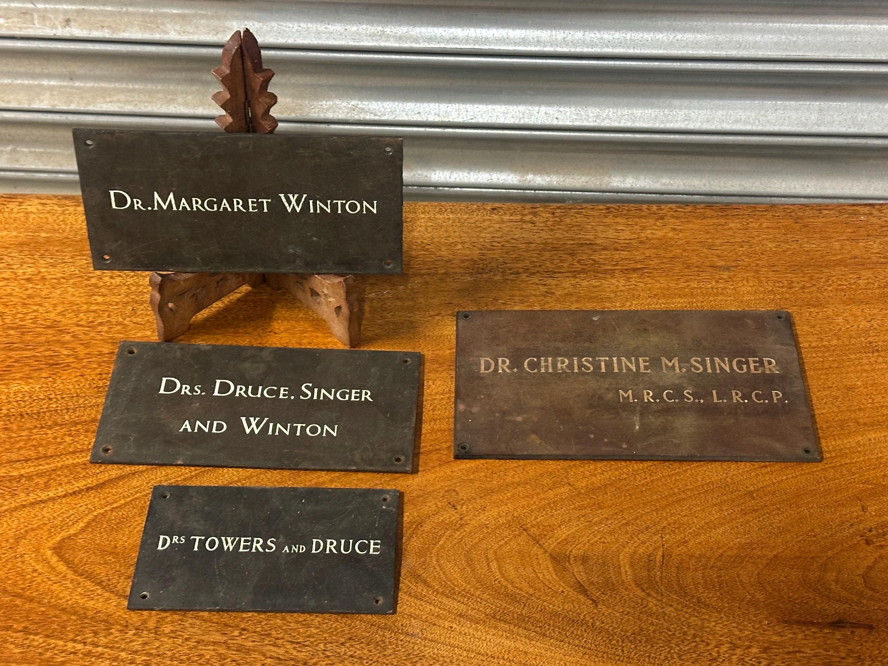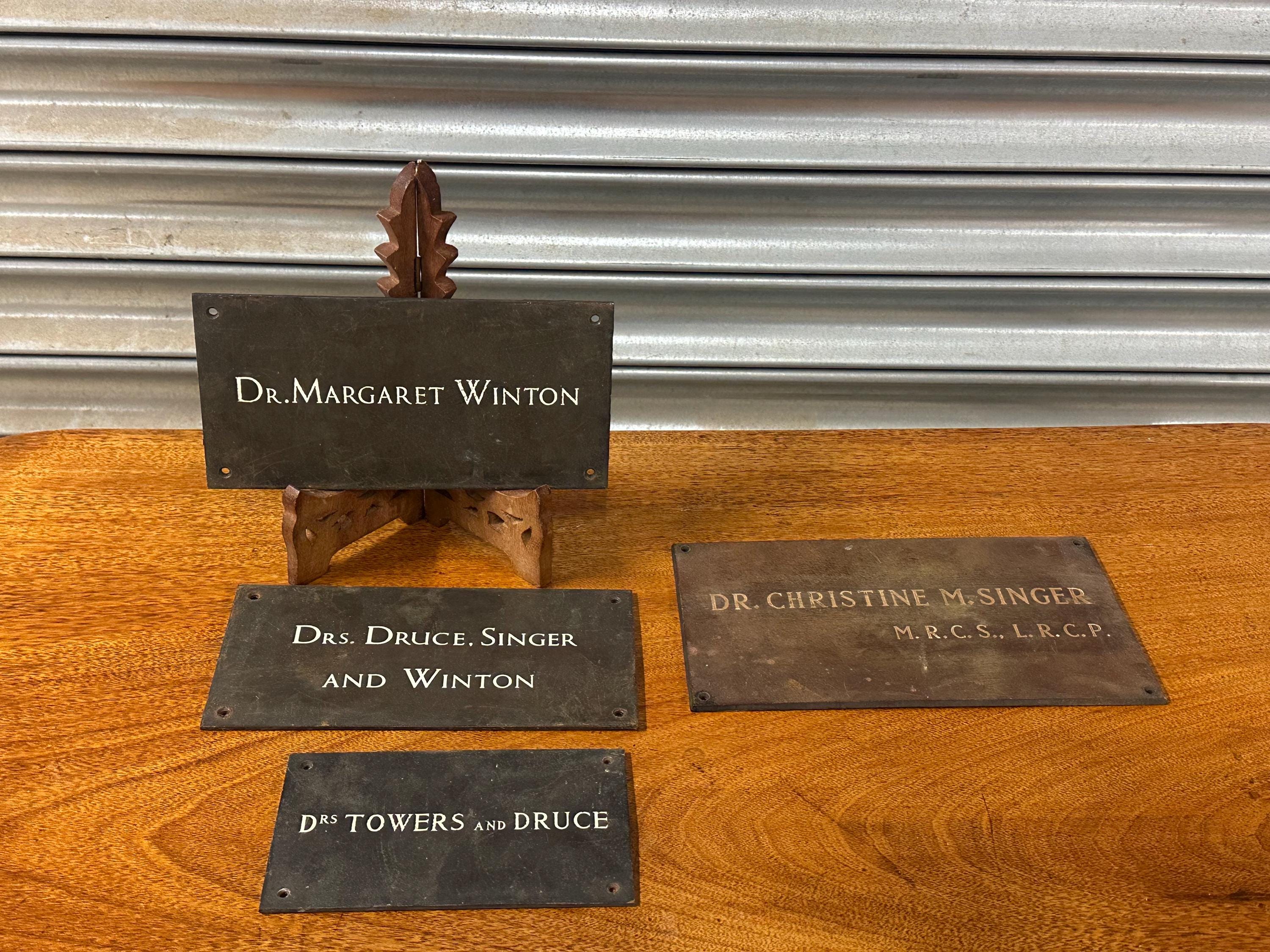 Three Vintage Antique Bronze Name Plaques / Plates And One Perspex One