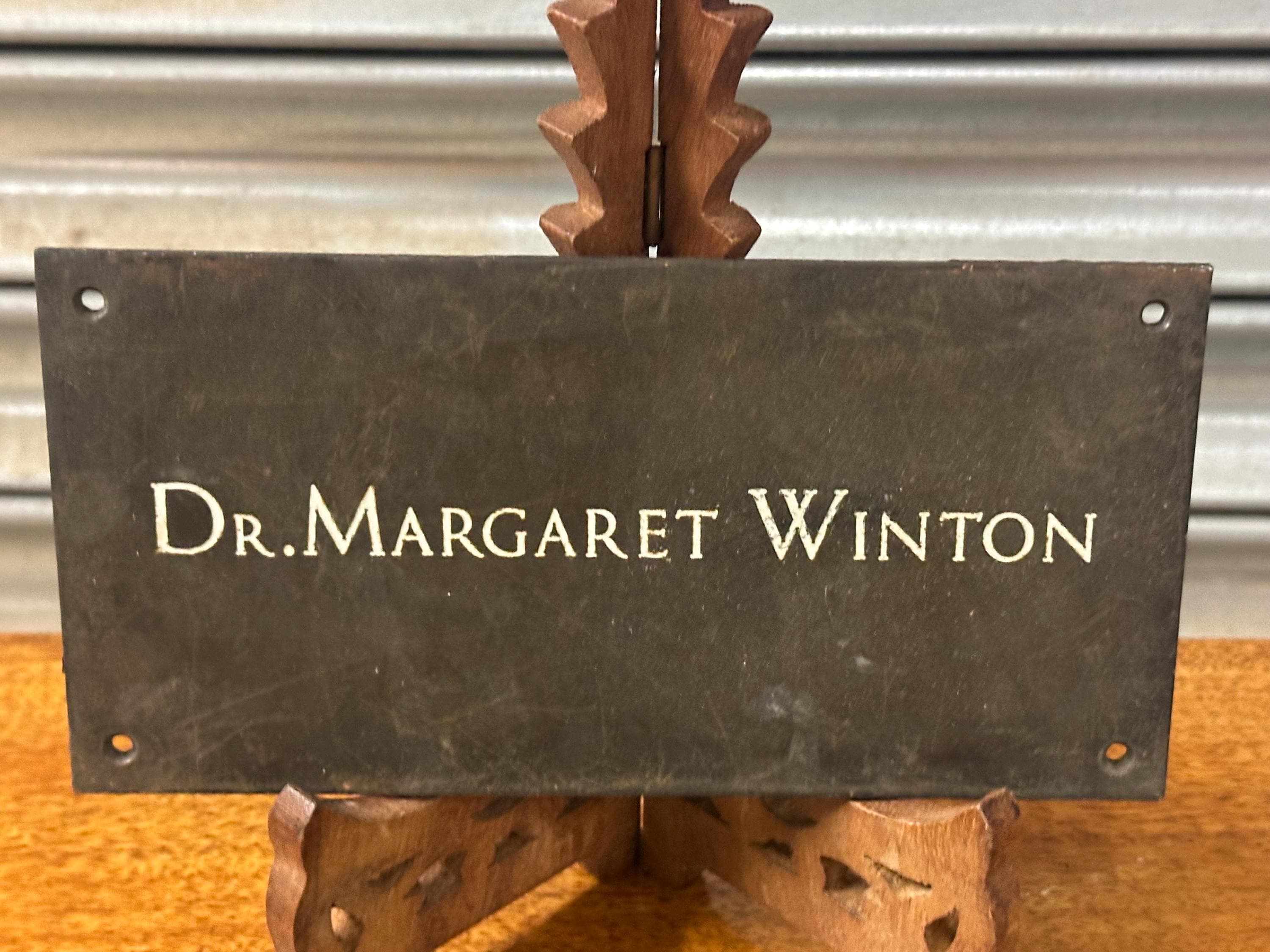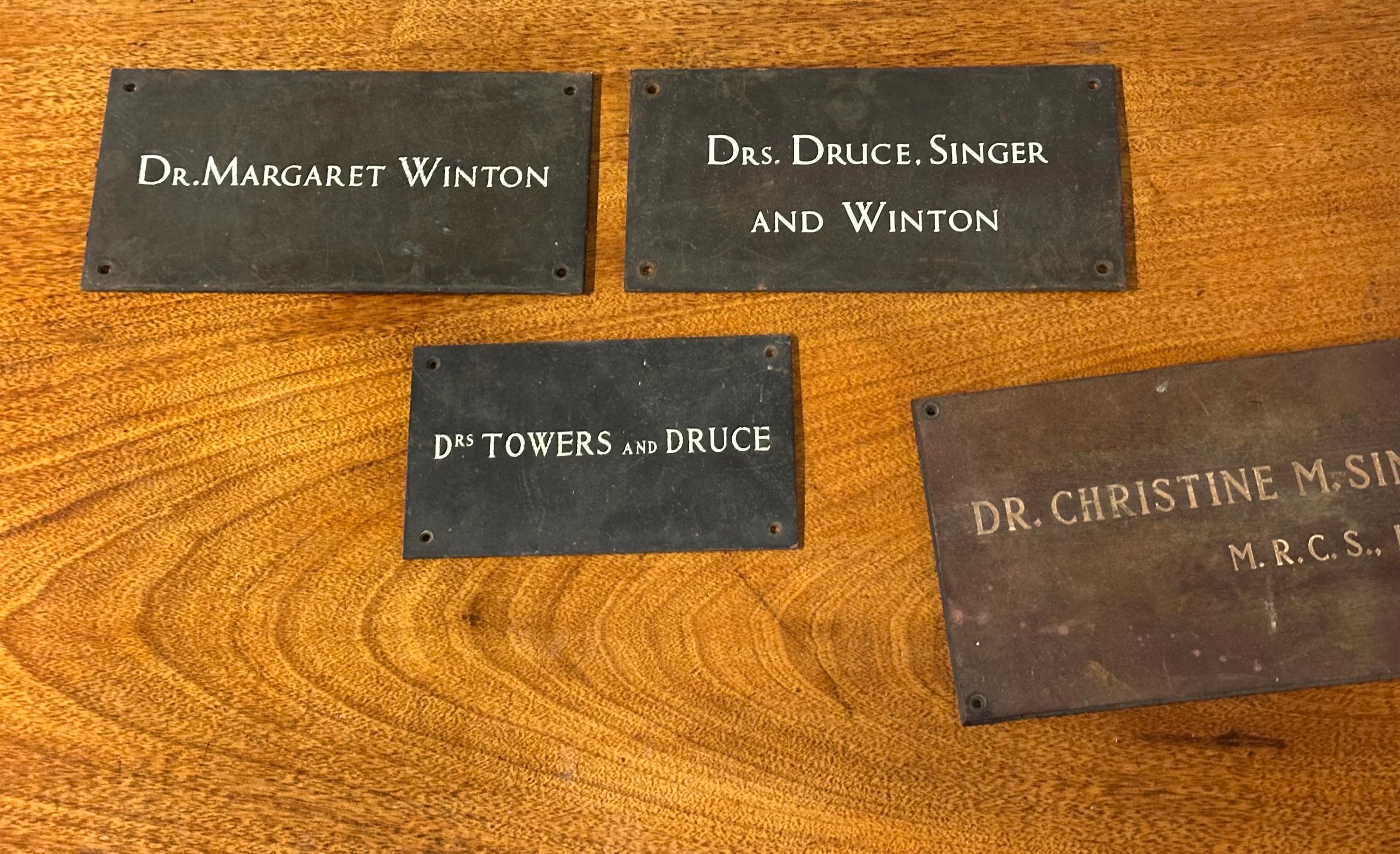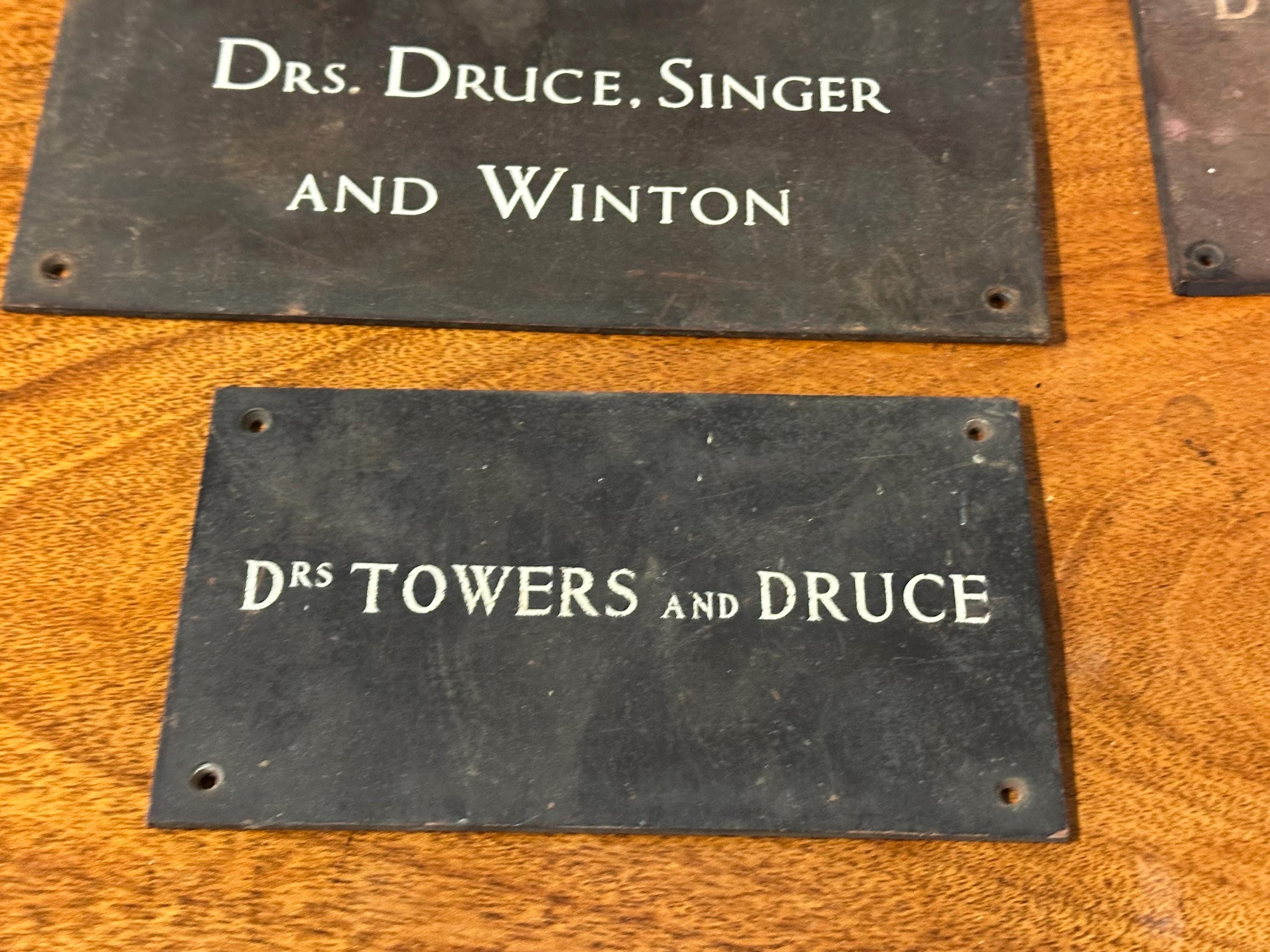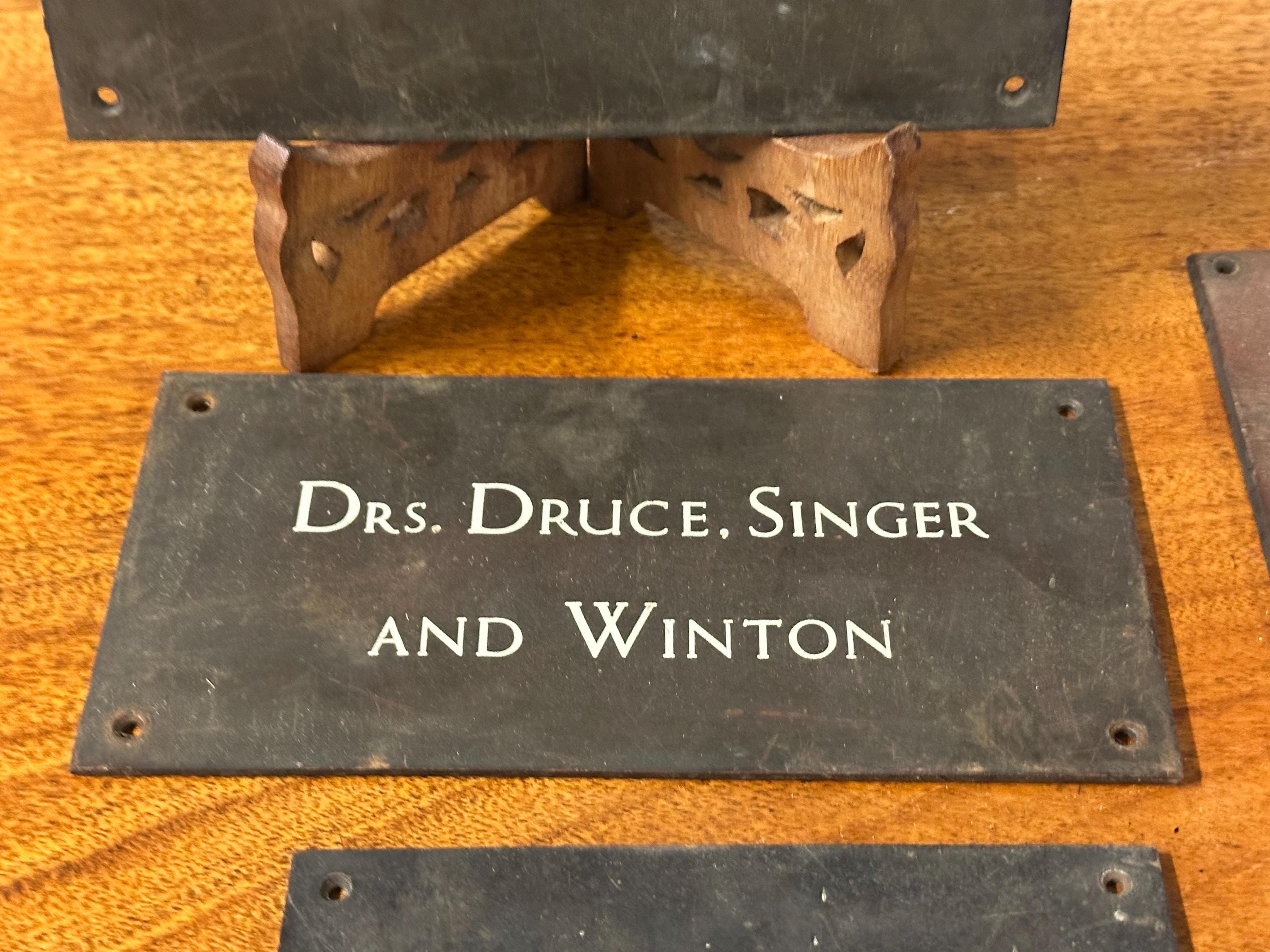 Three Vintage Antique Bronze Name Plaques / Plates And One Perspex One