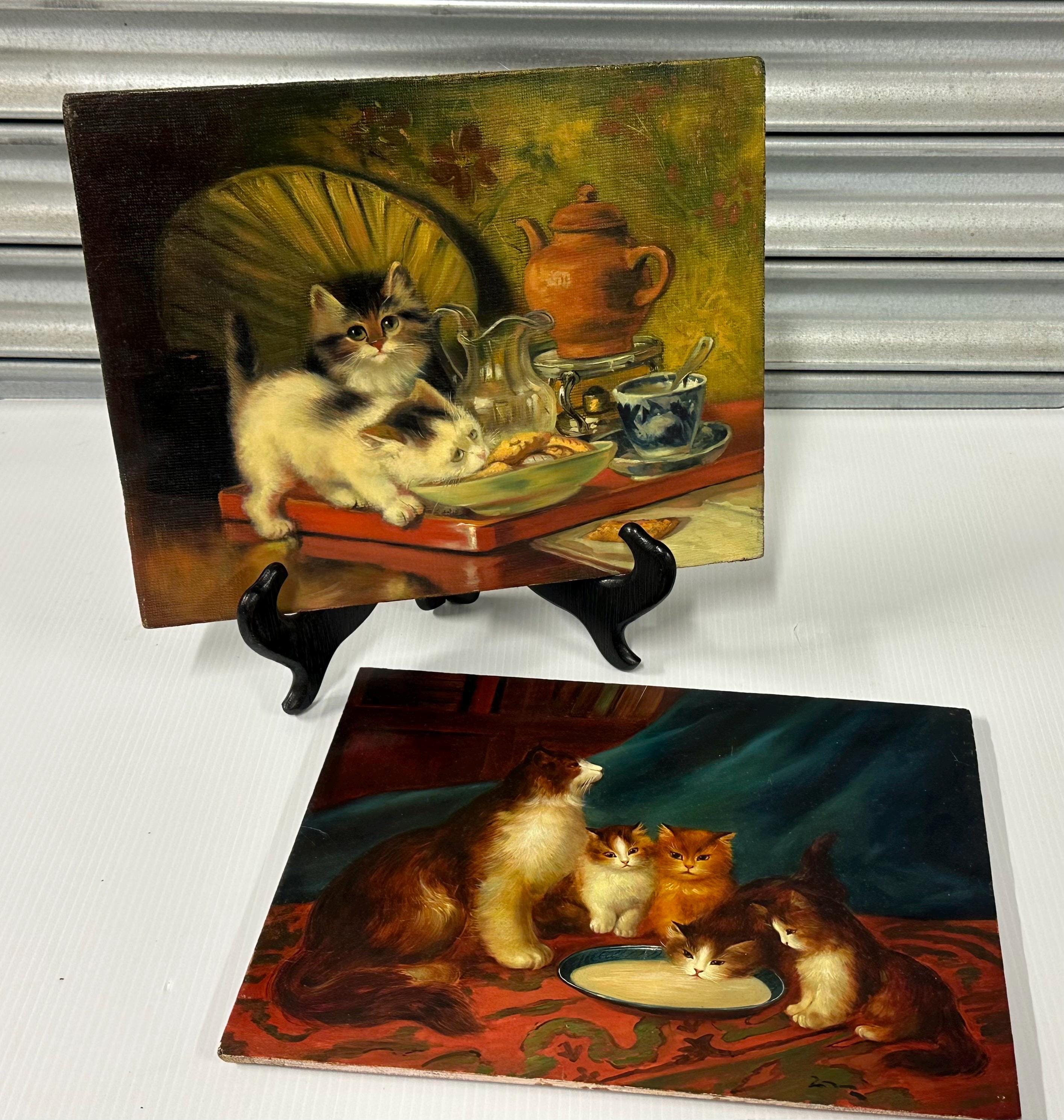 A charming pair of original oils that bring instant warmth and character to any room. Lovely decorative pieces and wonderful gifts for collectors of cat artwork.