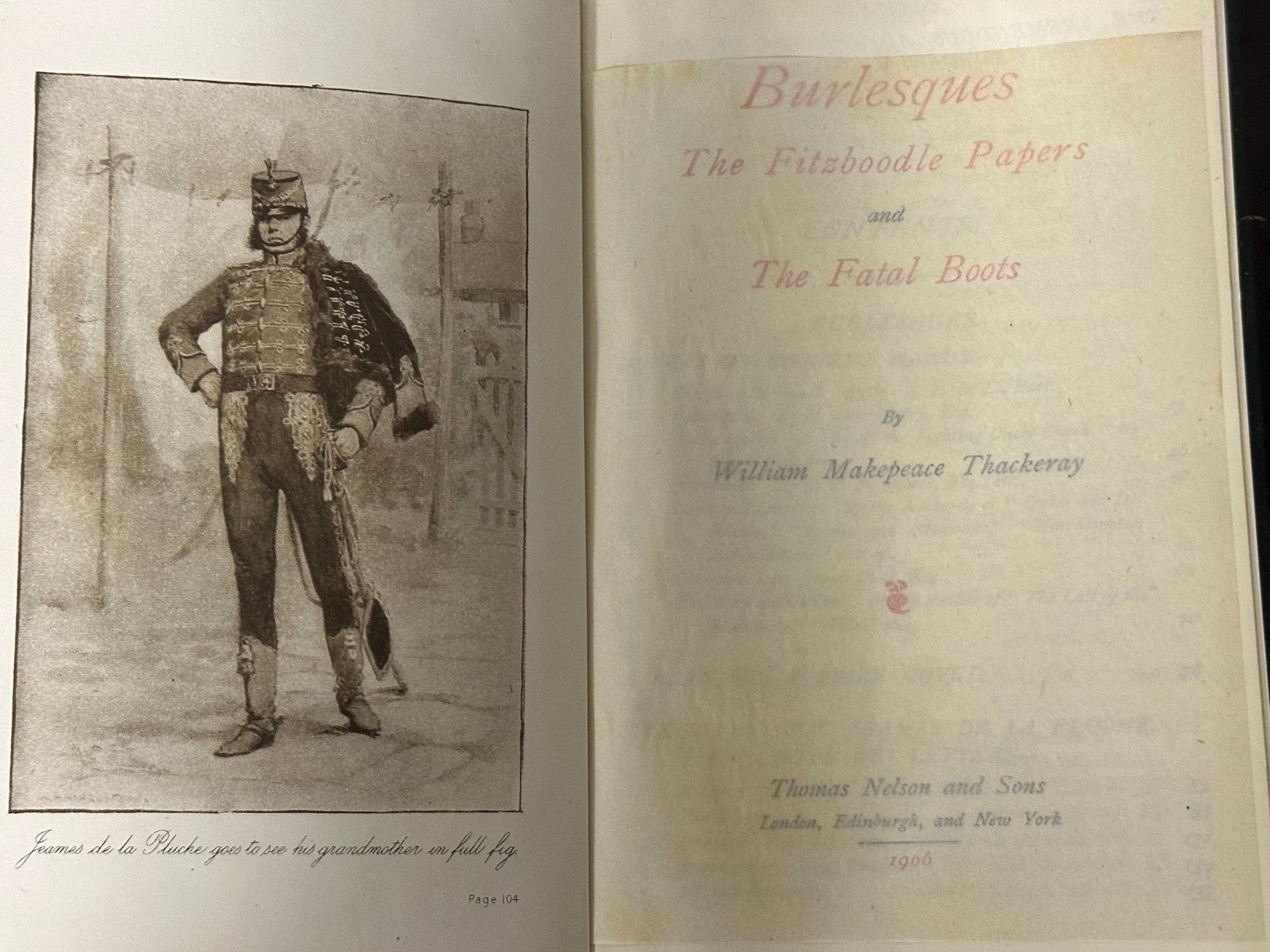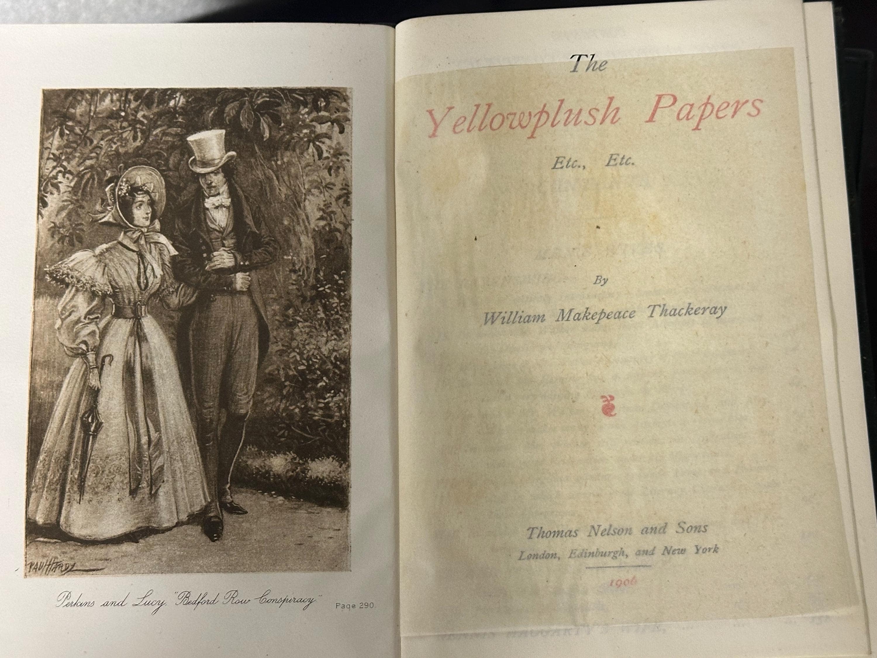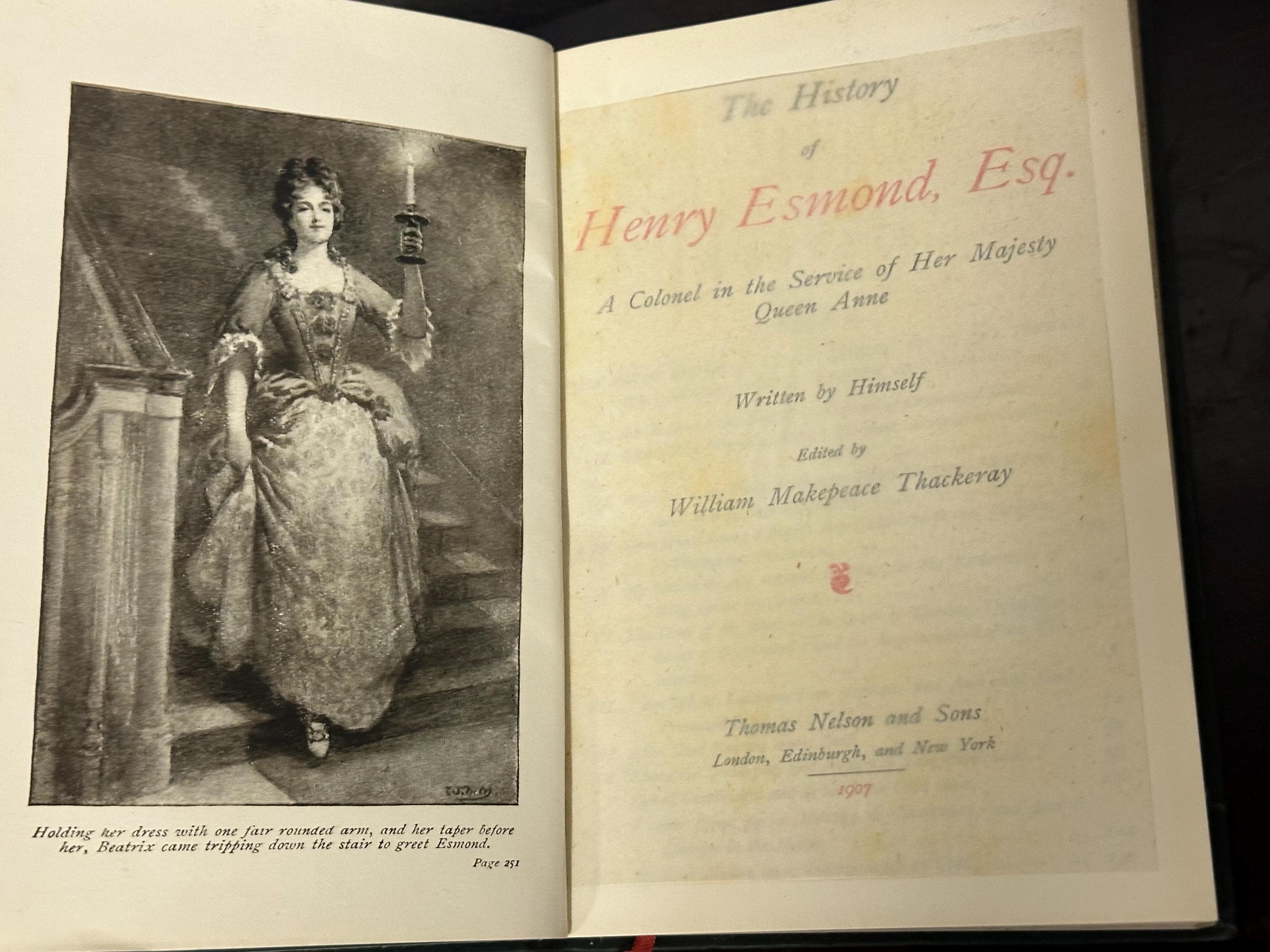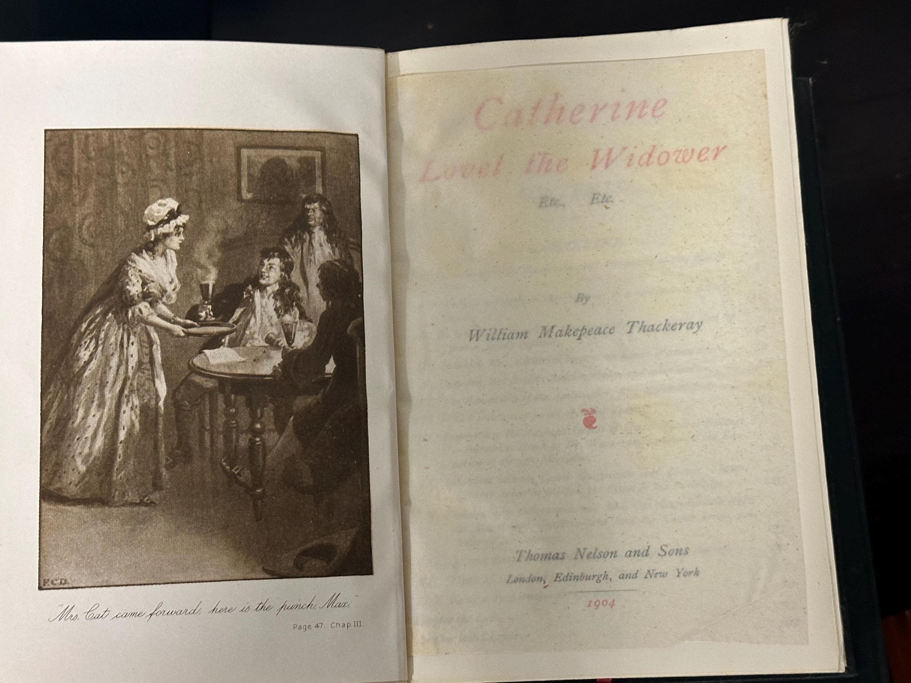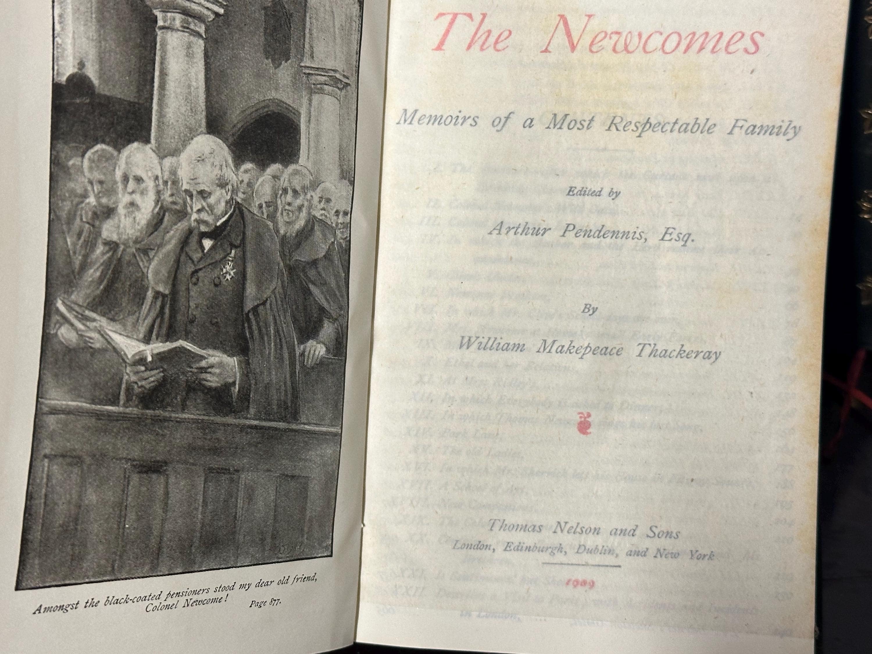 12 volumes By William Makepeace Thackeray Published By Thomas Nelson & Sons 1904-1909 Bound in matching full green leather. Covers are plain with gilt lettering and ornamentation on the spine