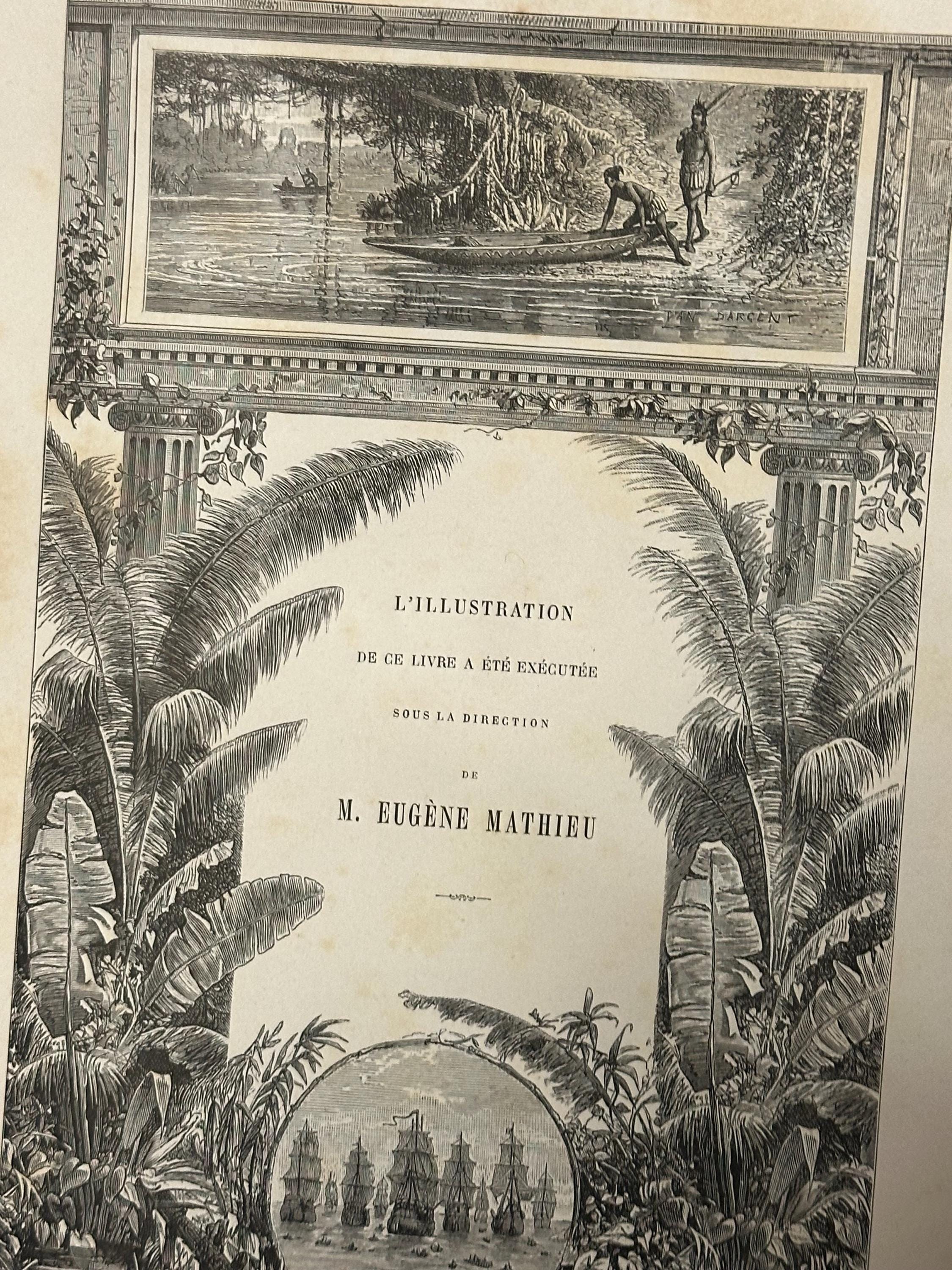 Magnificent work, with impeccable binding. Numerous out-of-text engravings in black and color (6 chromolithographs). The gold edges are a real ingot. 1 volume in-4°. Full silk buckram; Important gold and black decoration on the covers and back. Plate by Souze, binding by Engel.Gilded edges