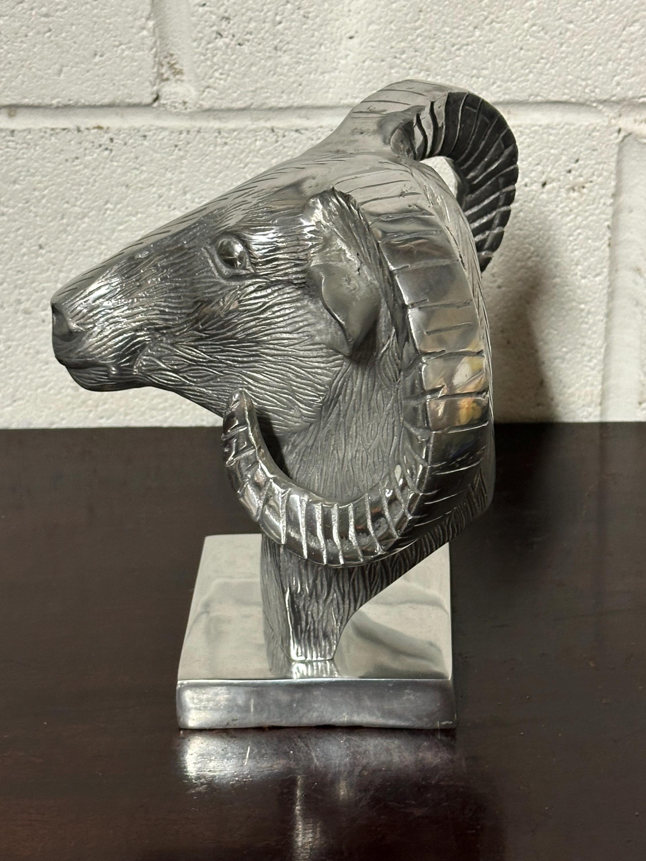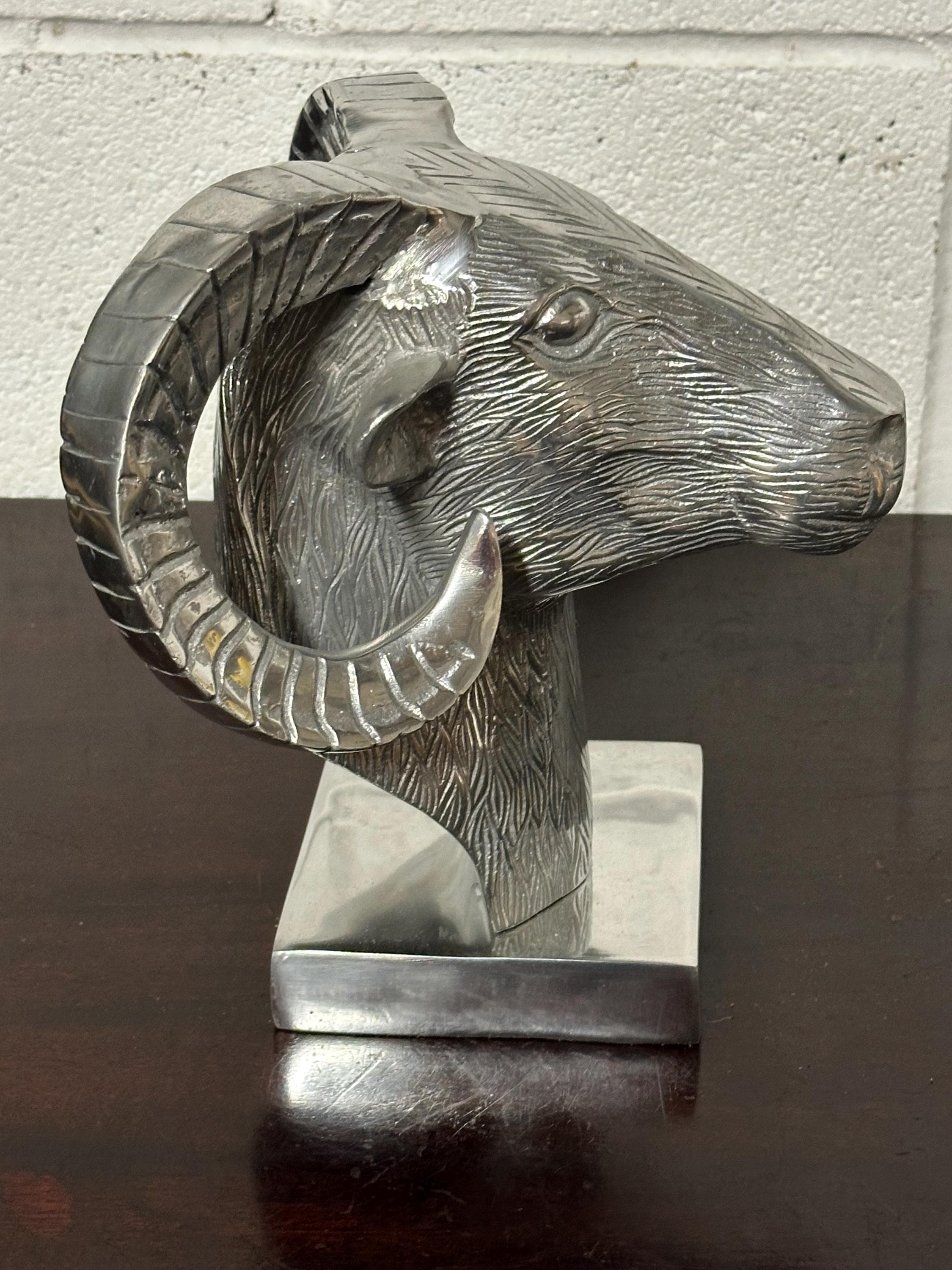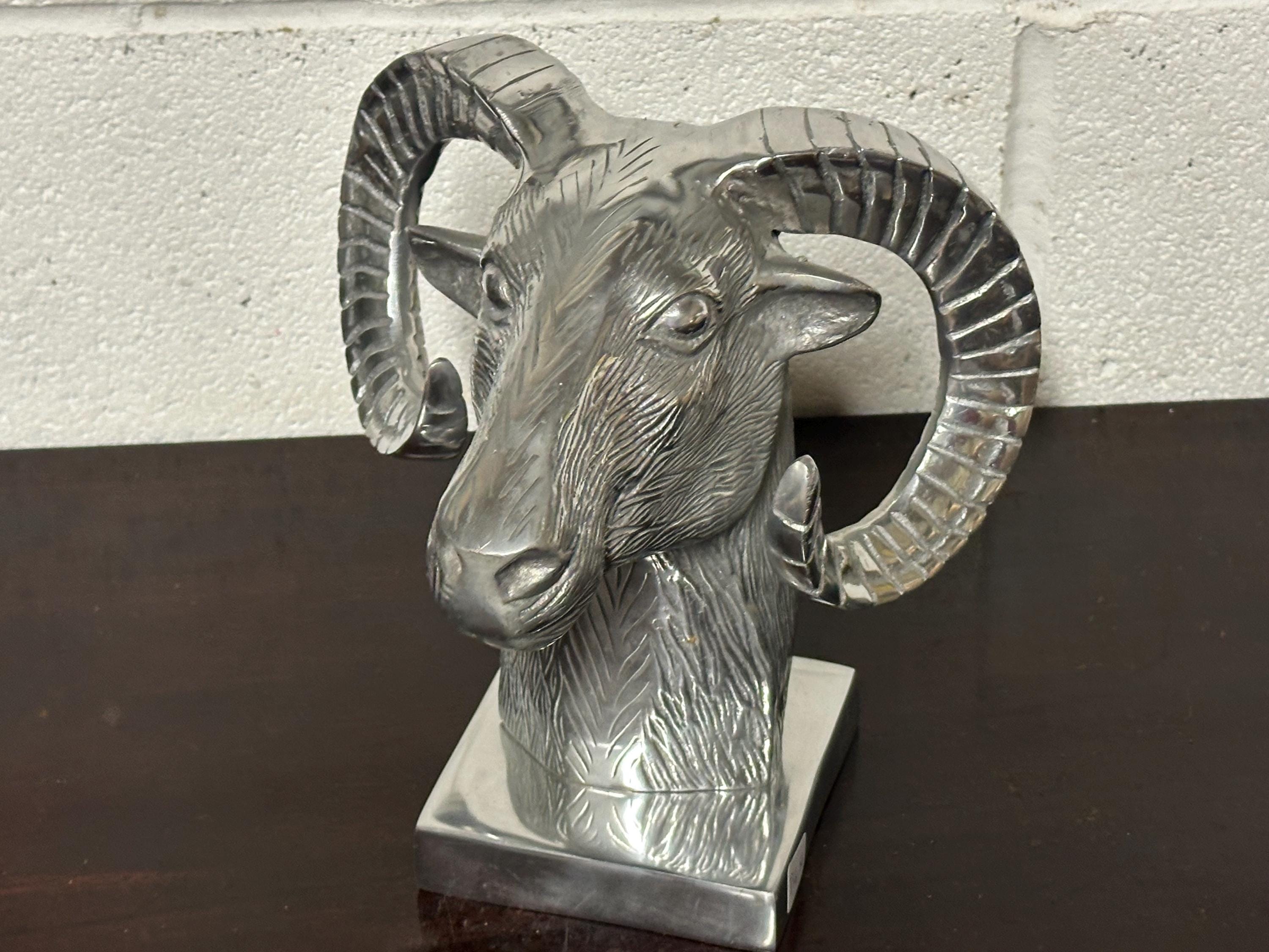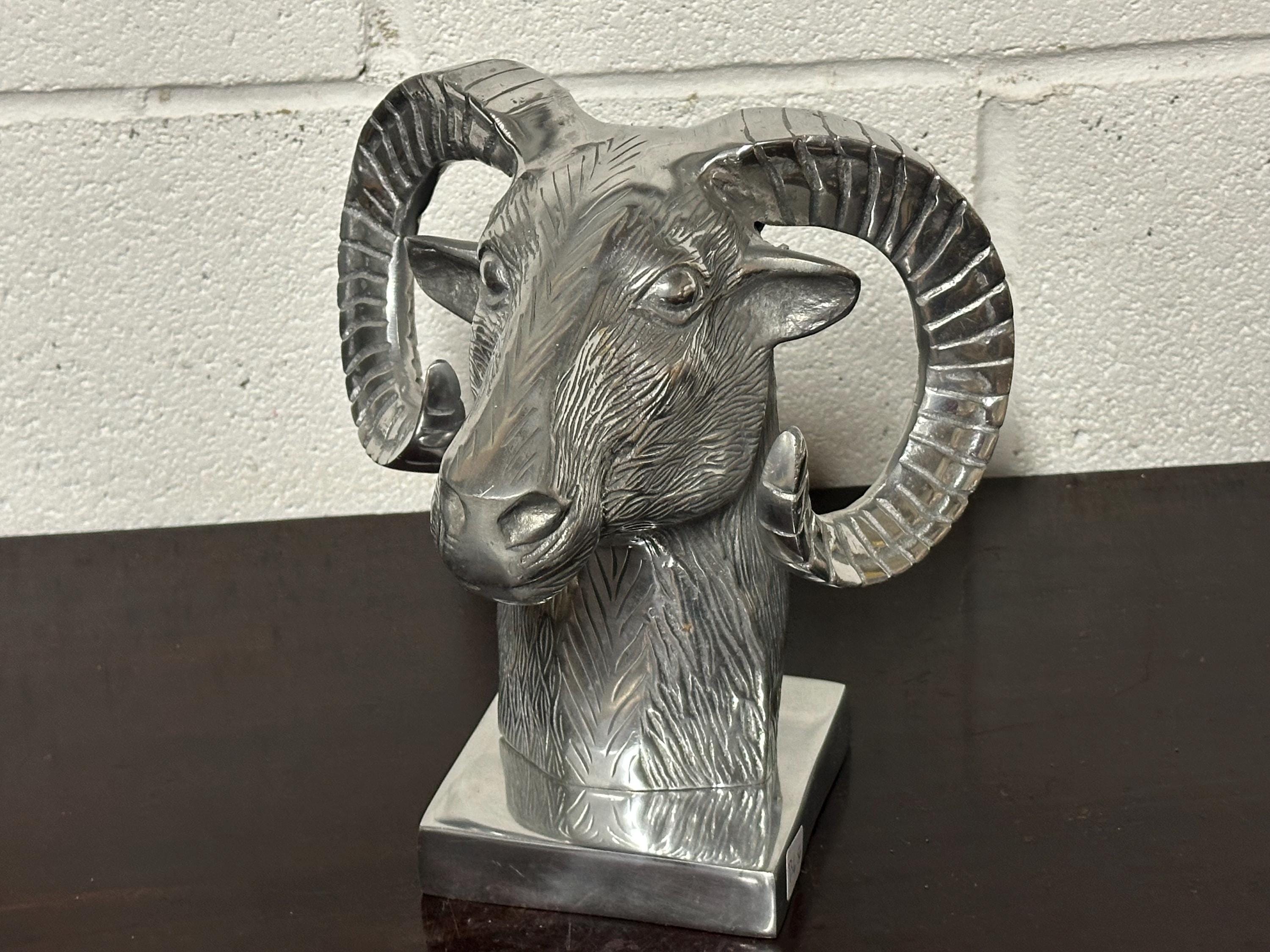 Stunning Silver Coloured Metal Sheep / Rams Head Sculpture