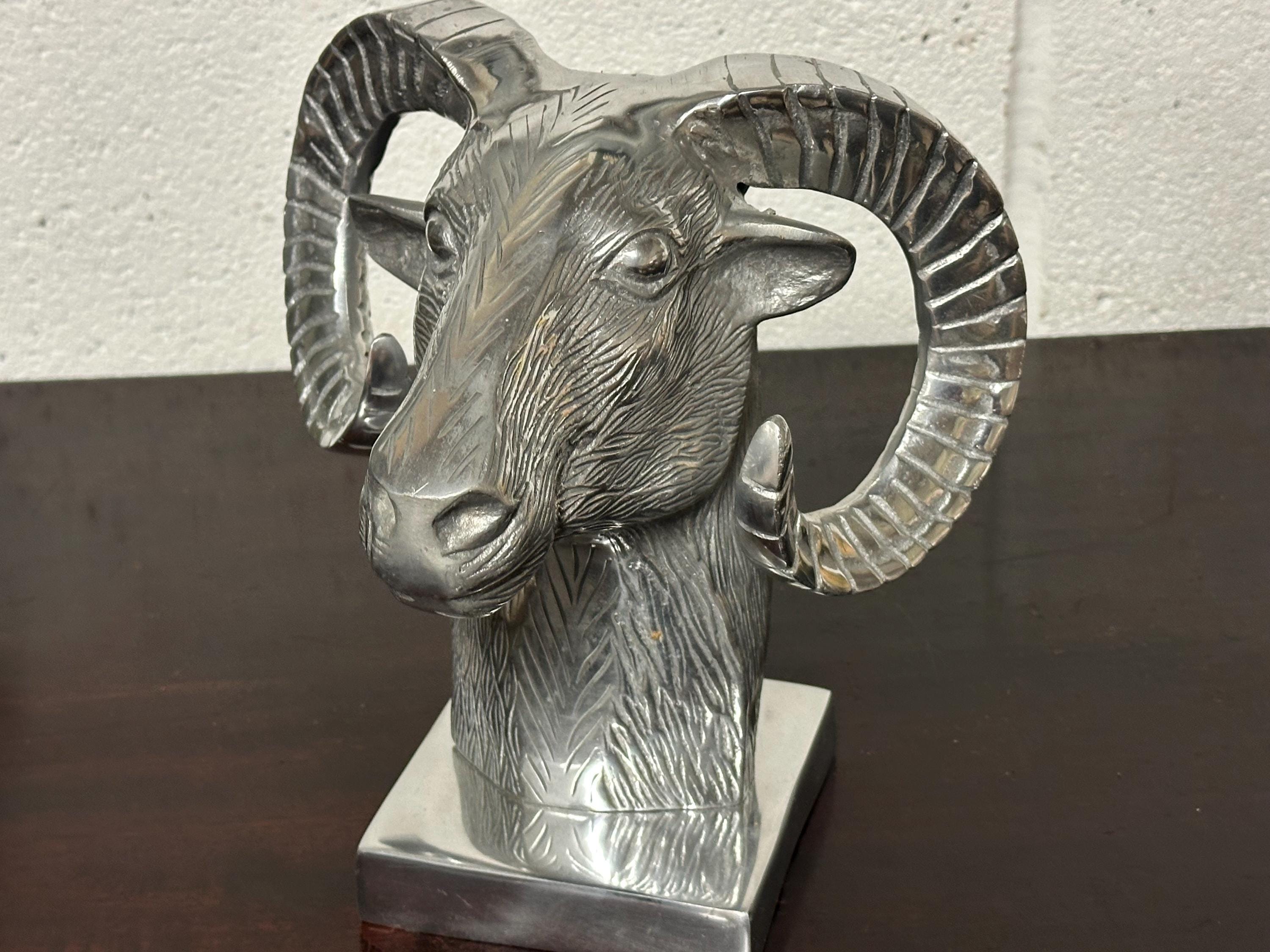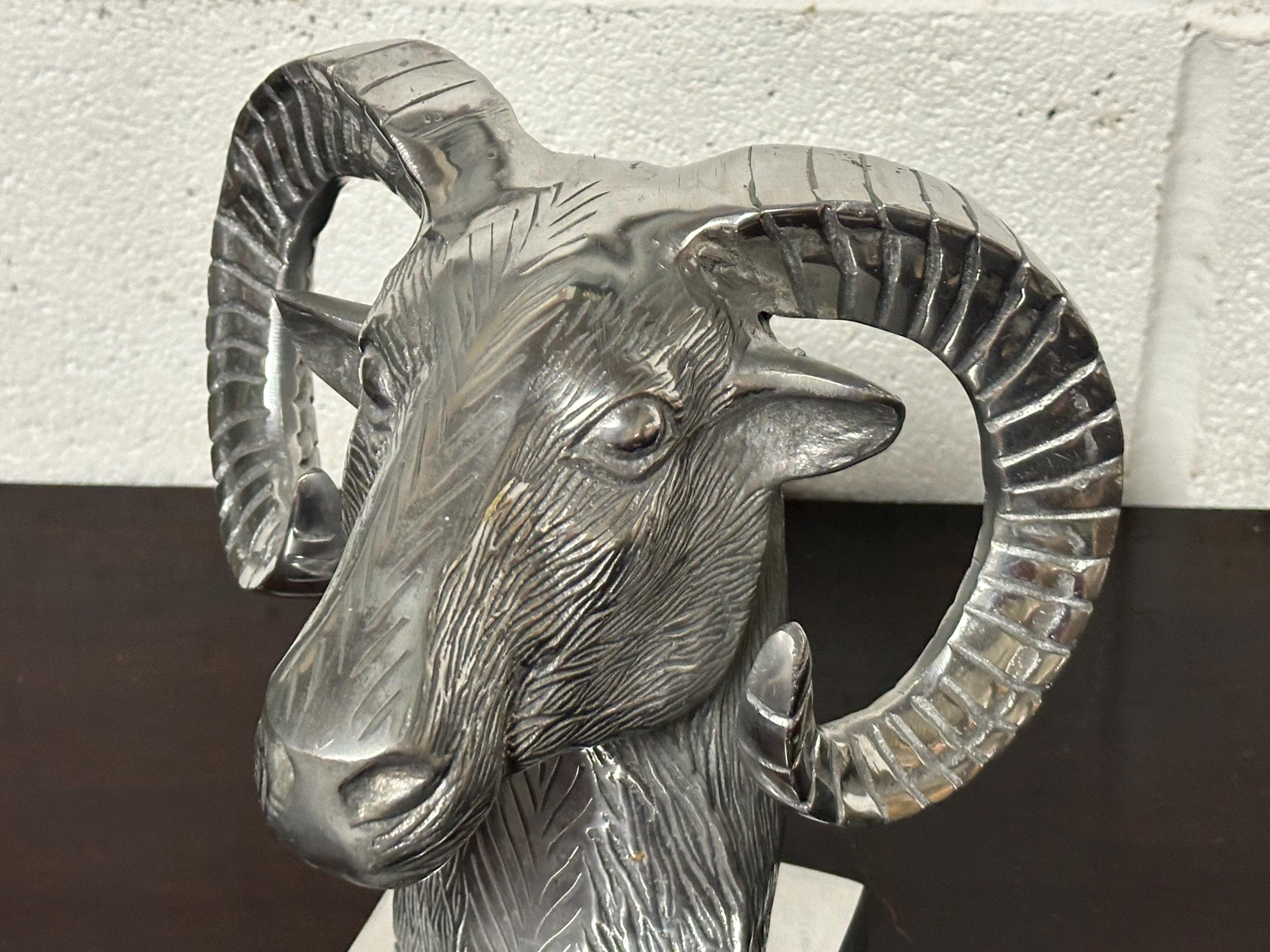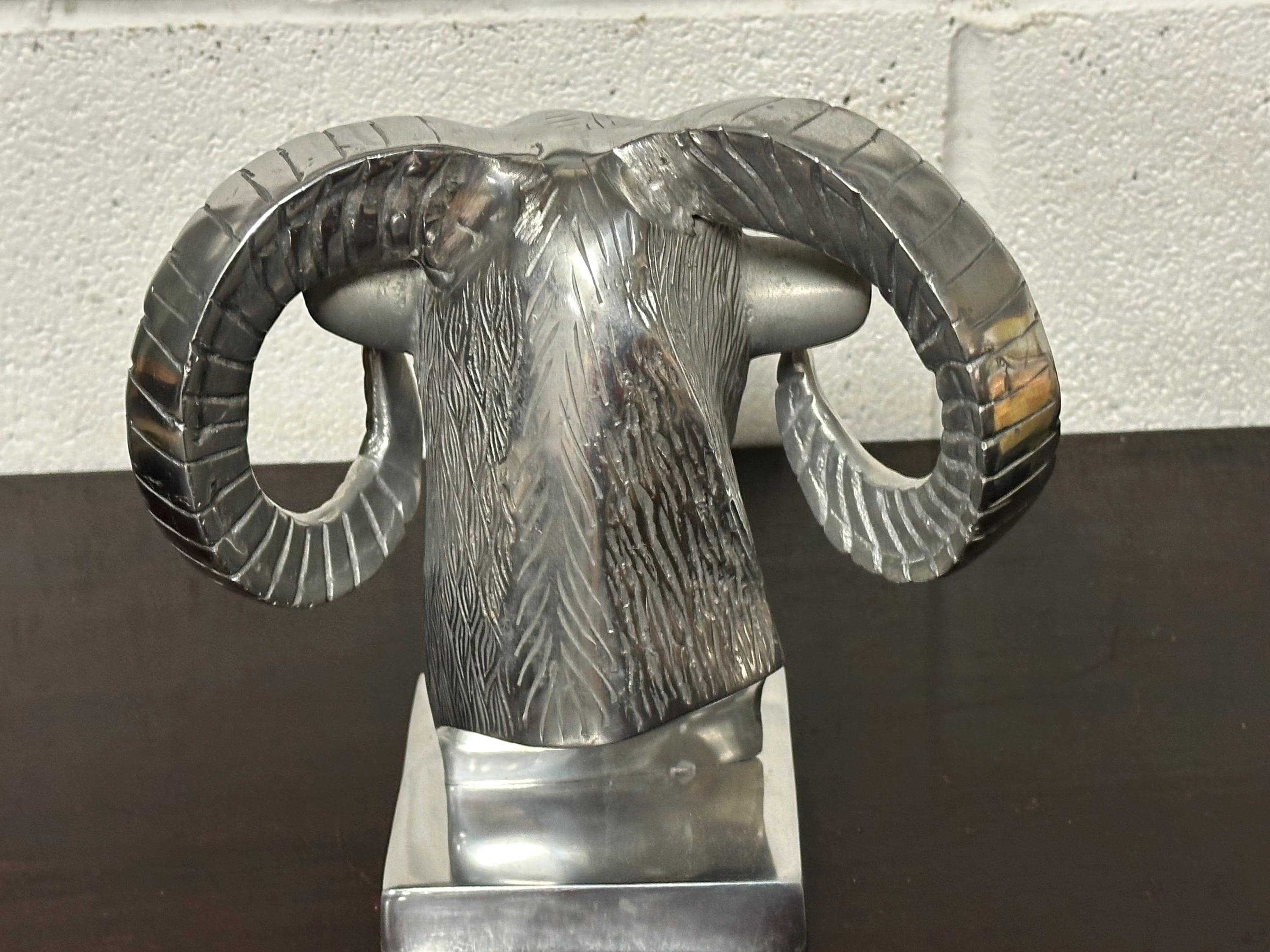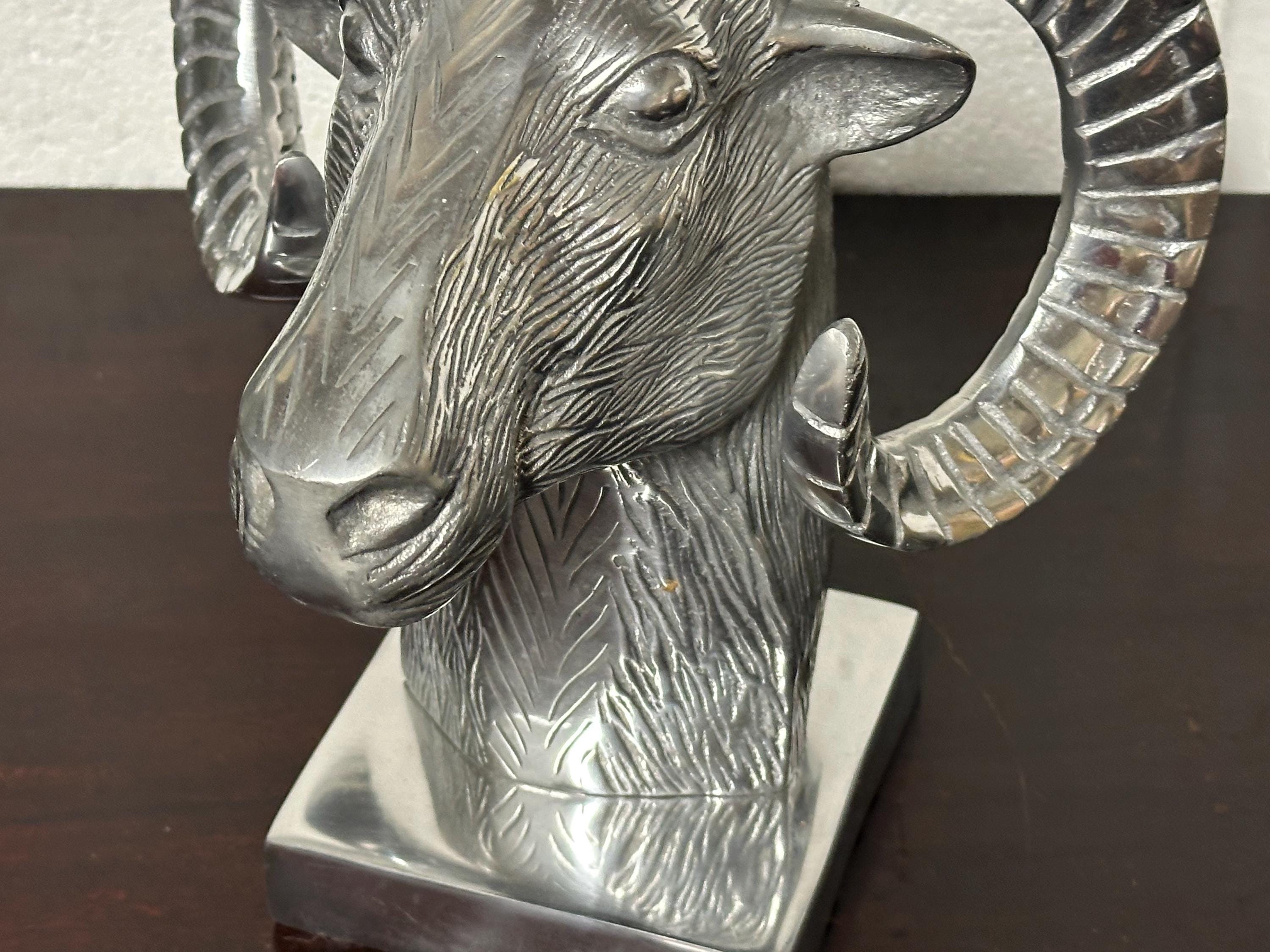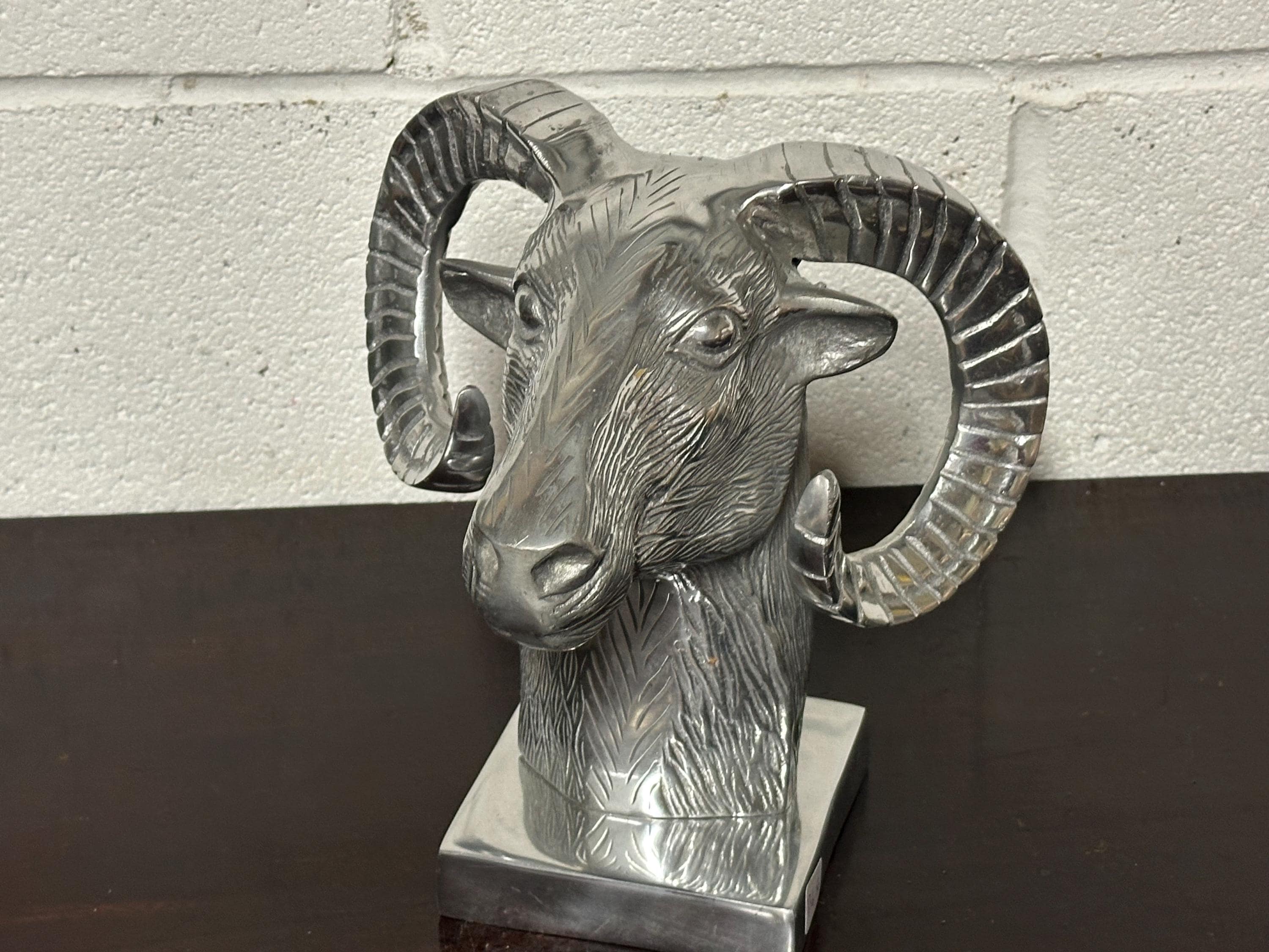 Stunning Silver Coloured Metal Sheep / Rams Head Sculpture