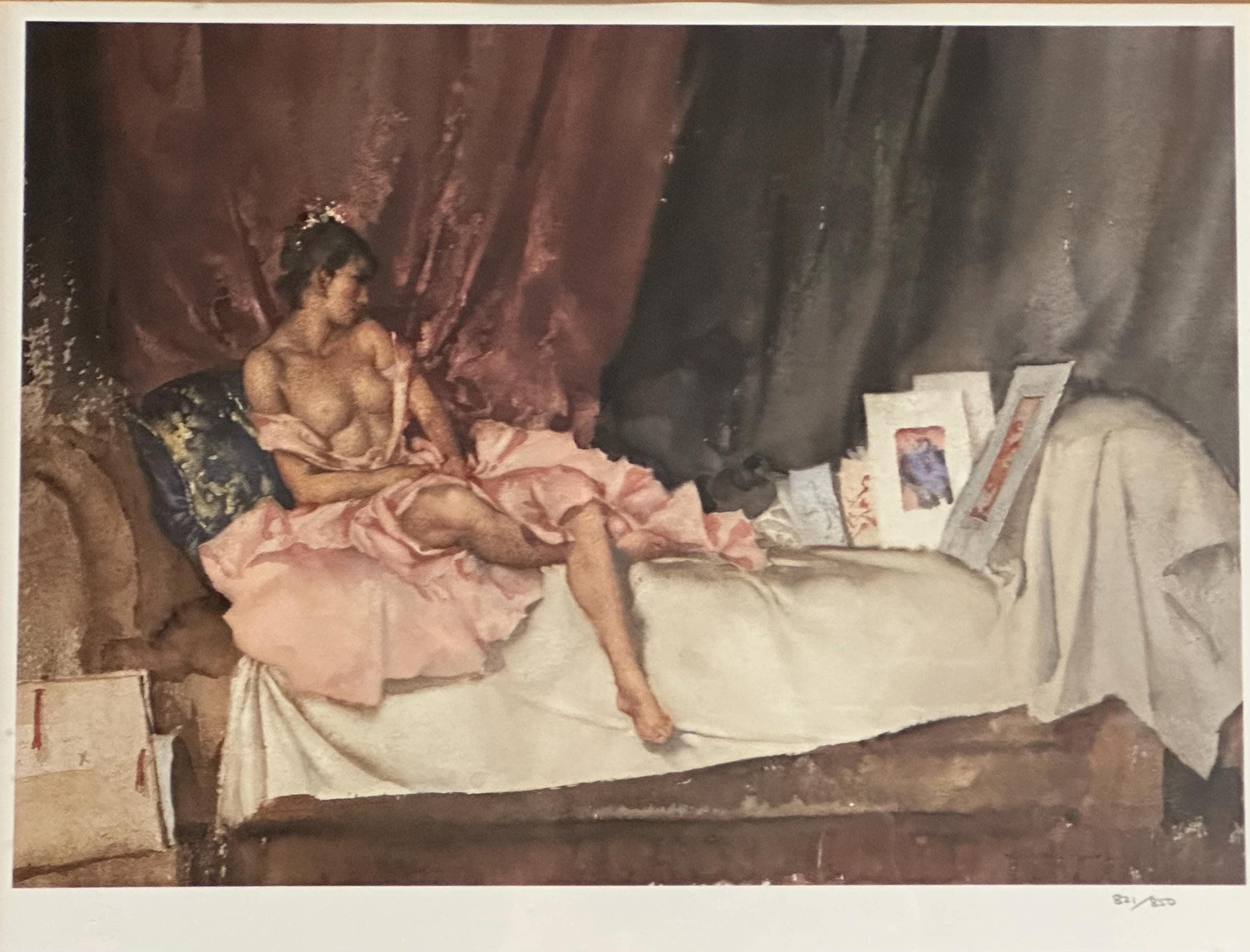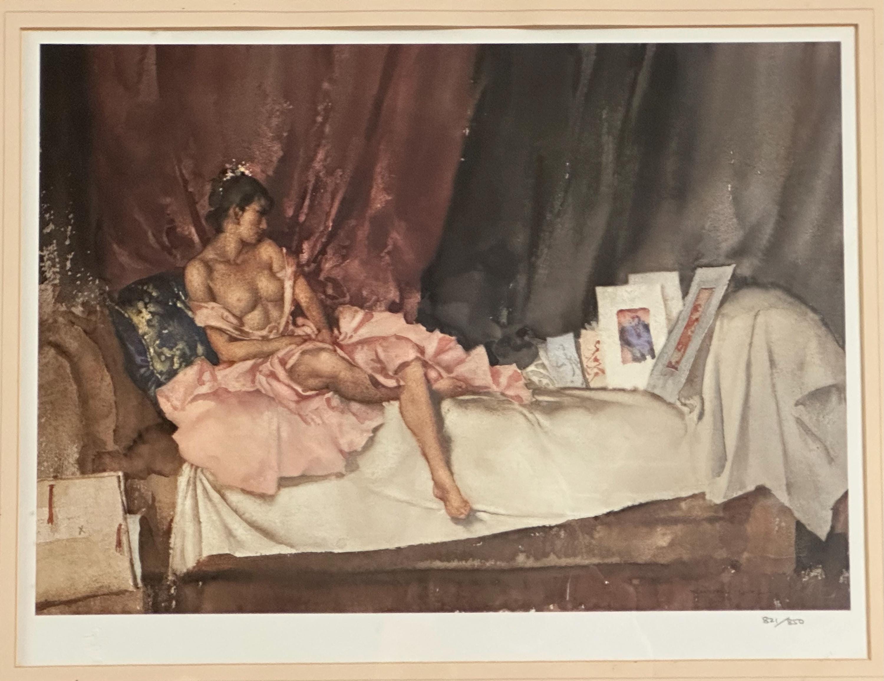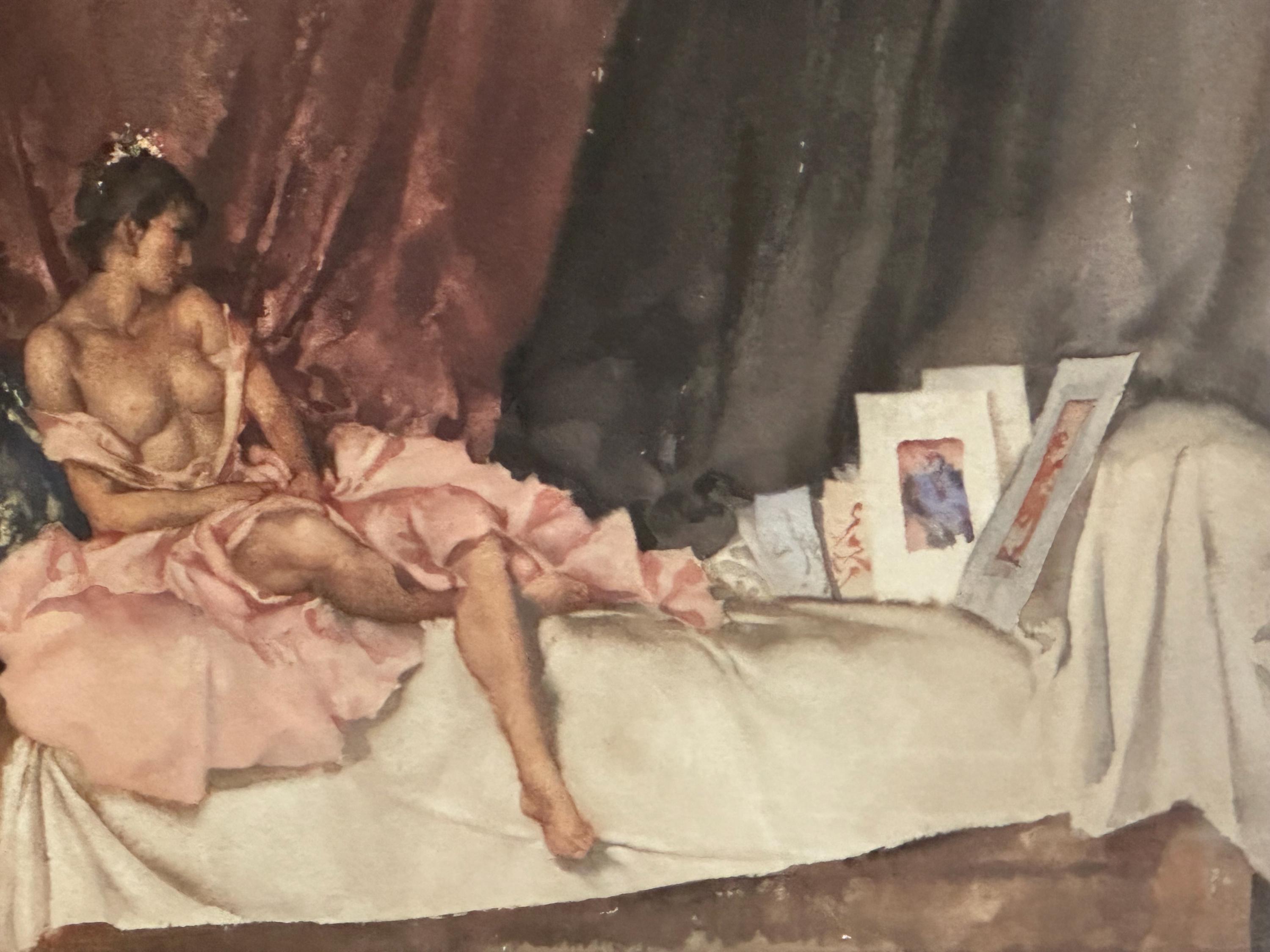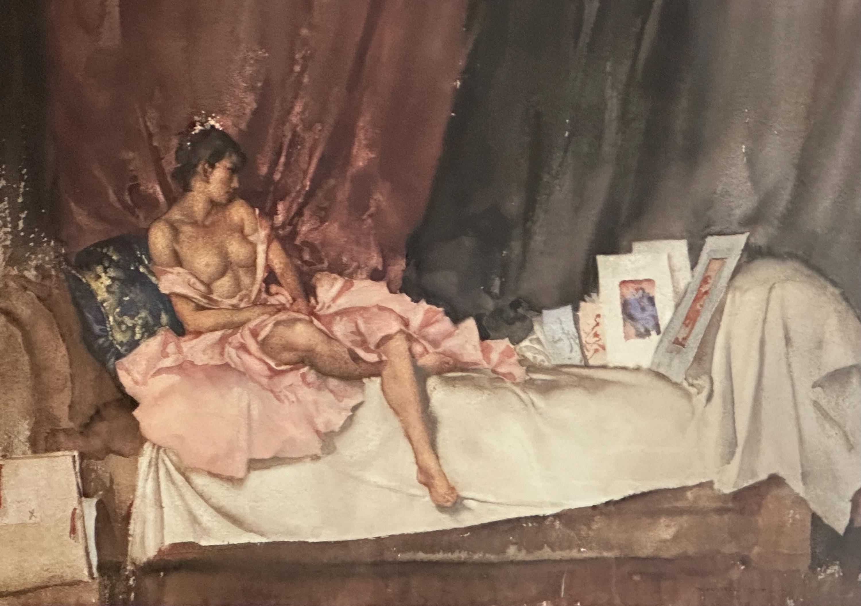 Published eighteen years after the death of Sir William Russell Flint, this painting was executed in London at Flint's Campden Hill studio,