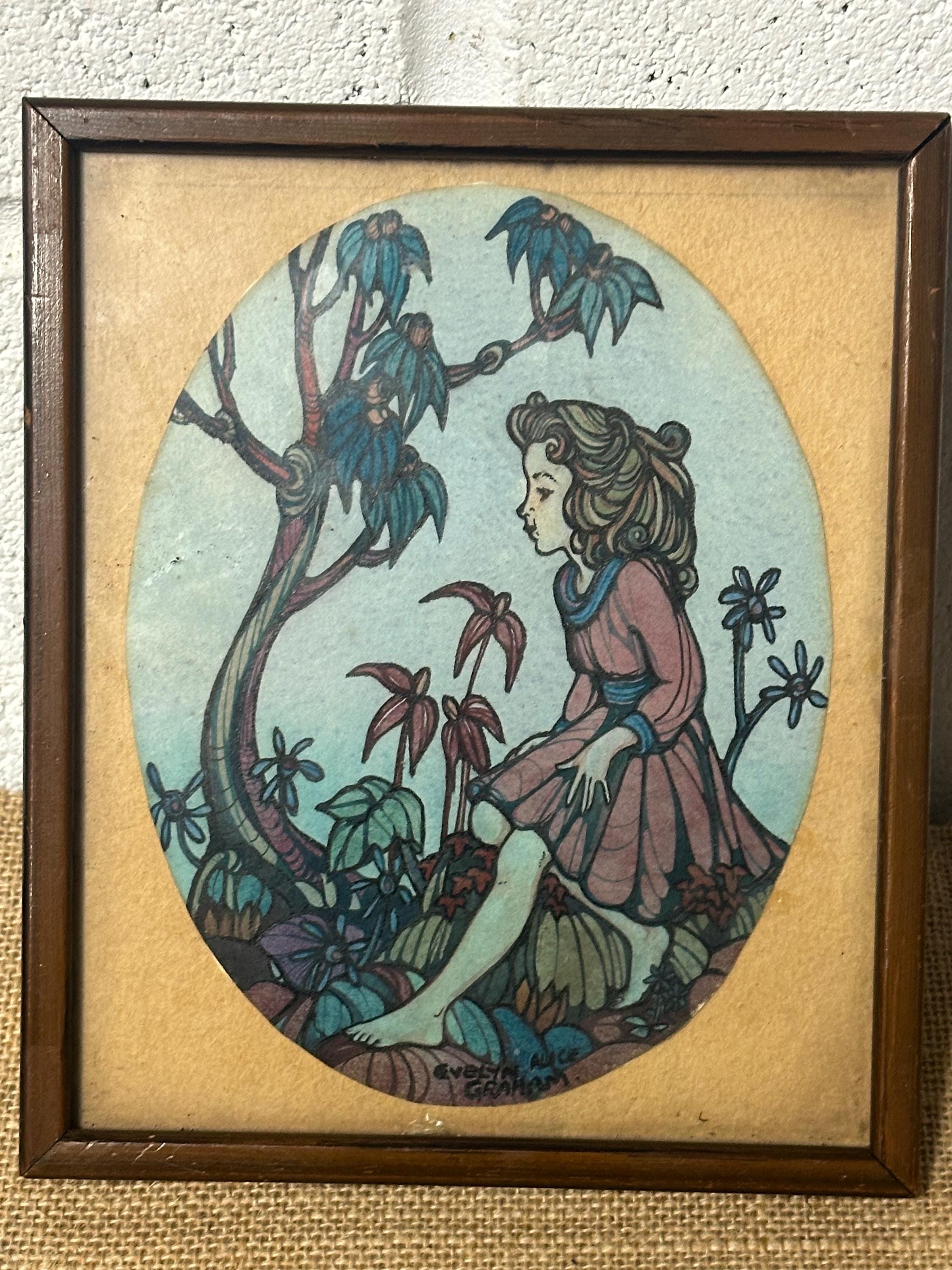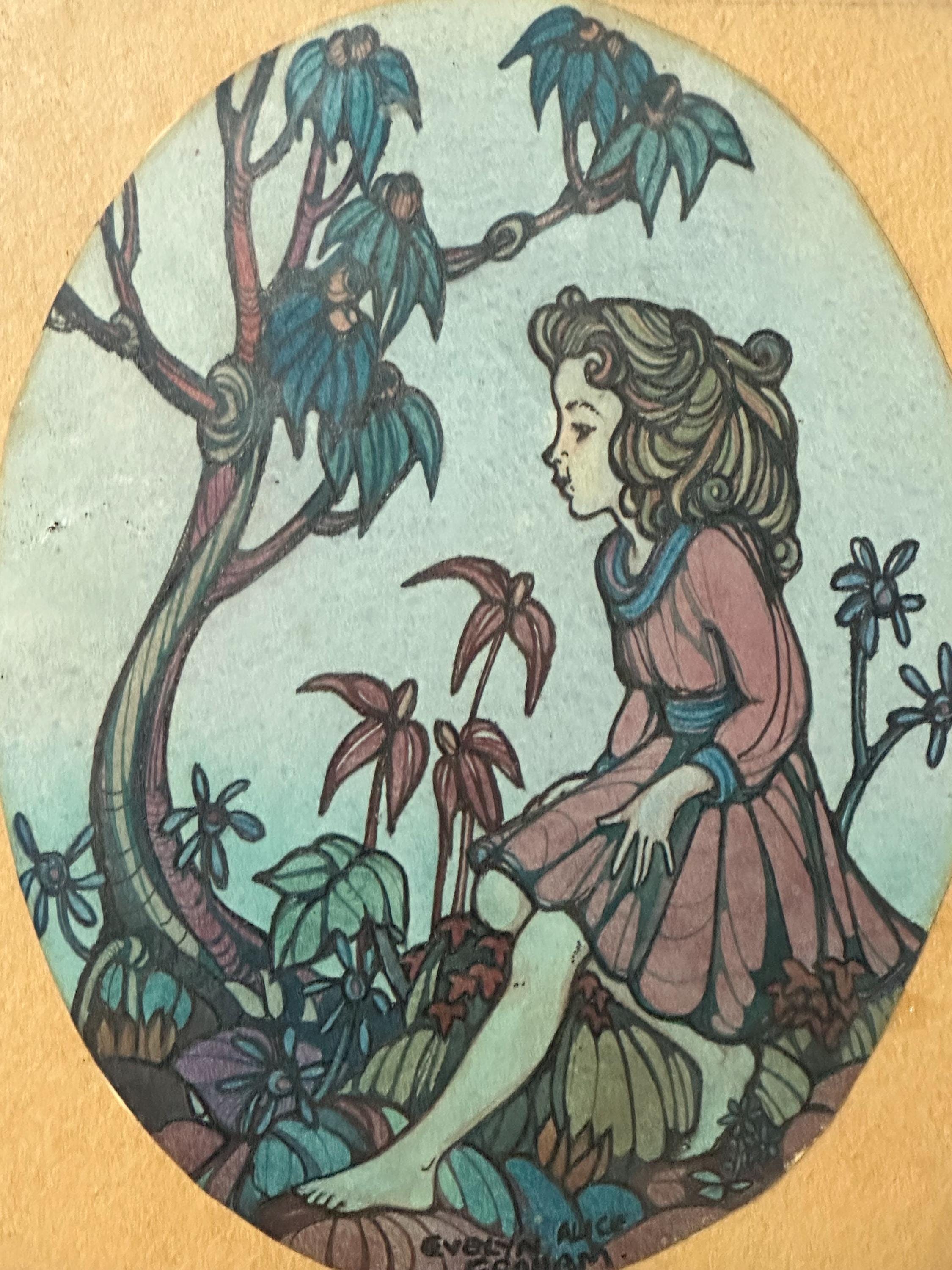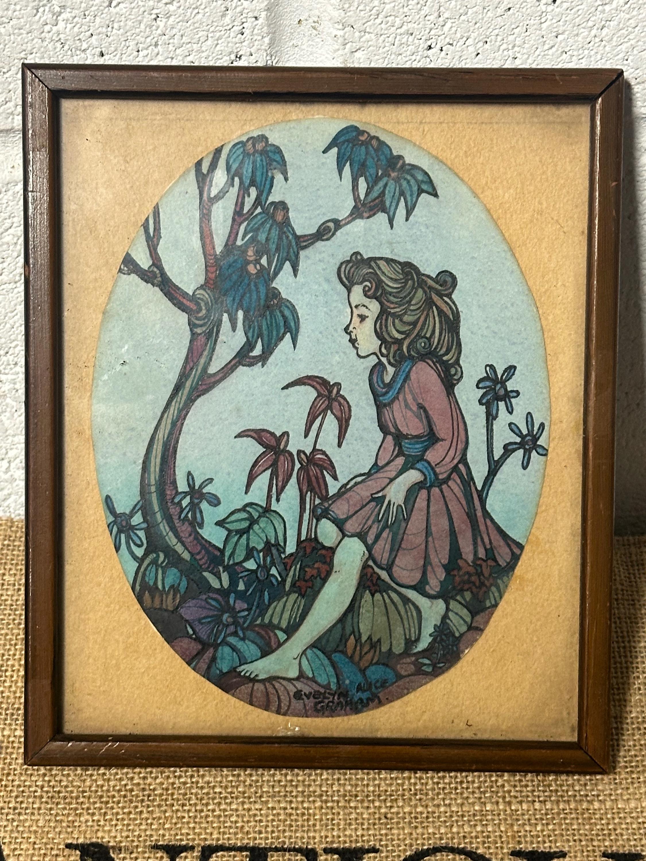 Gorgeous Small Antique Pen & Ink Watercolour By Evelyn Alice Graham circa 1900