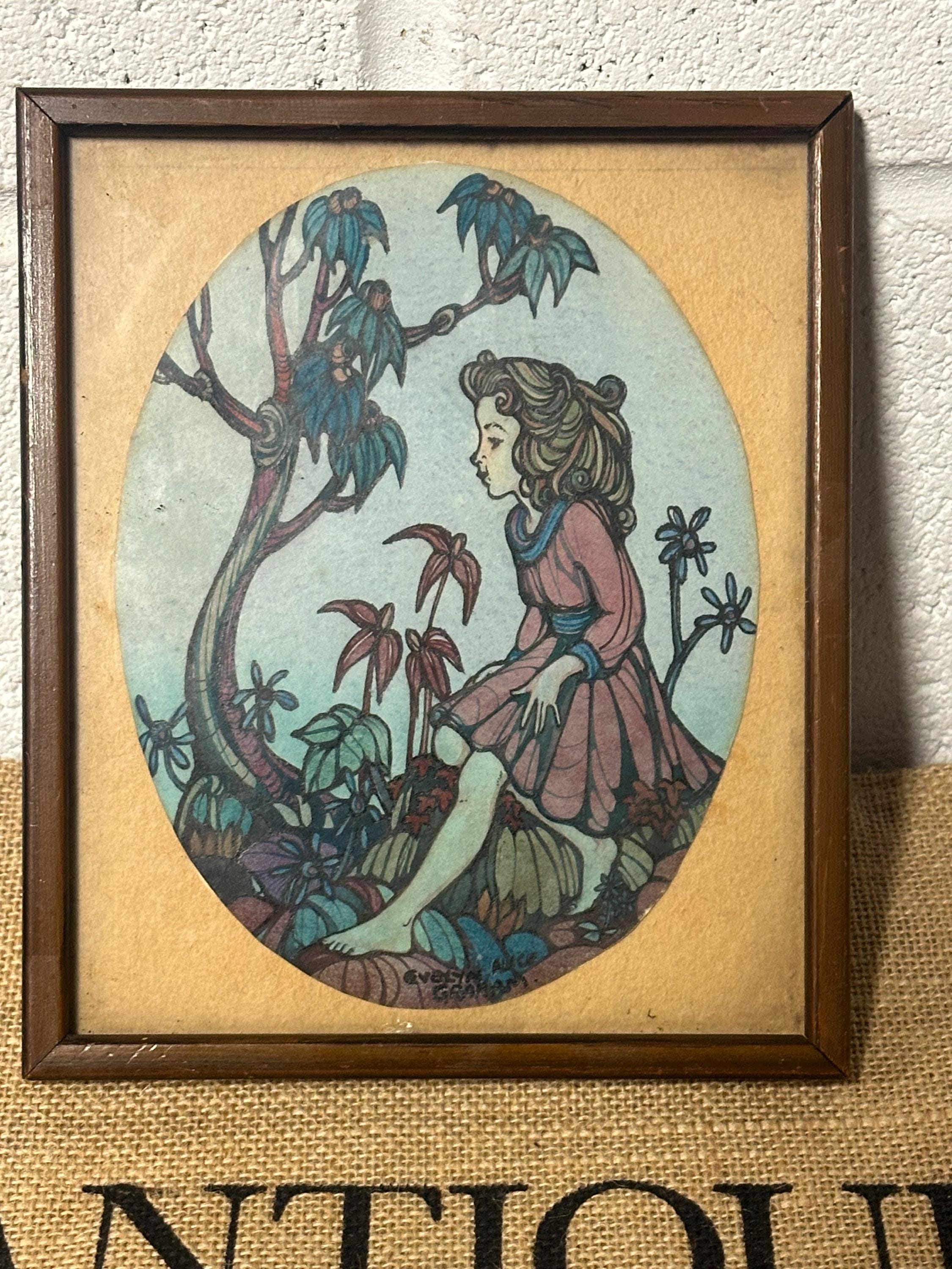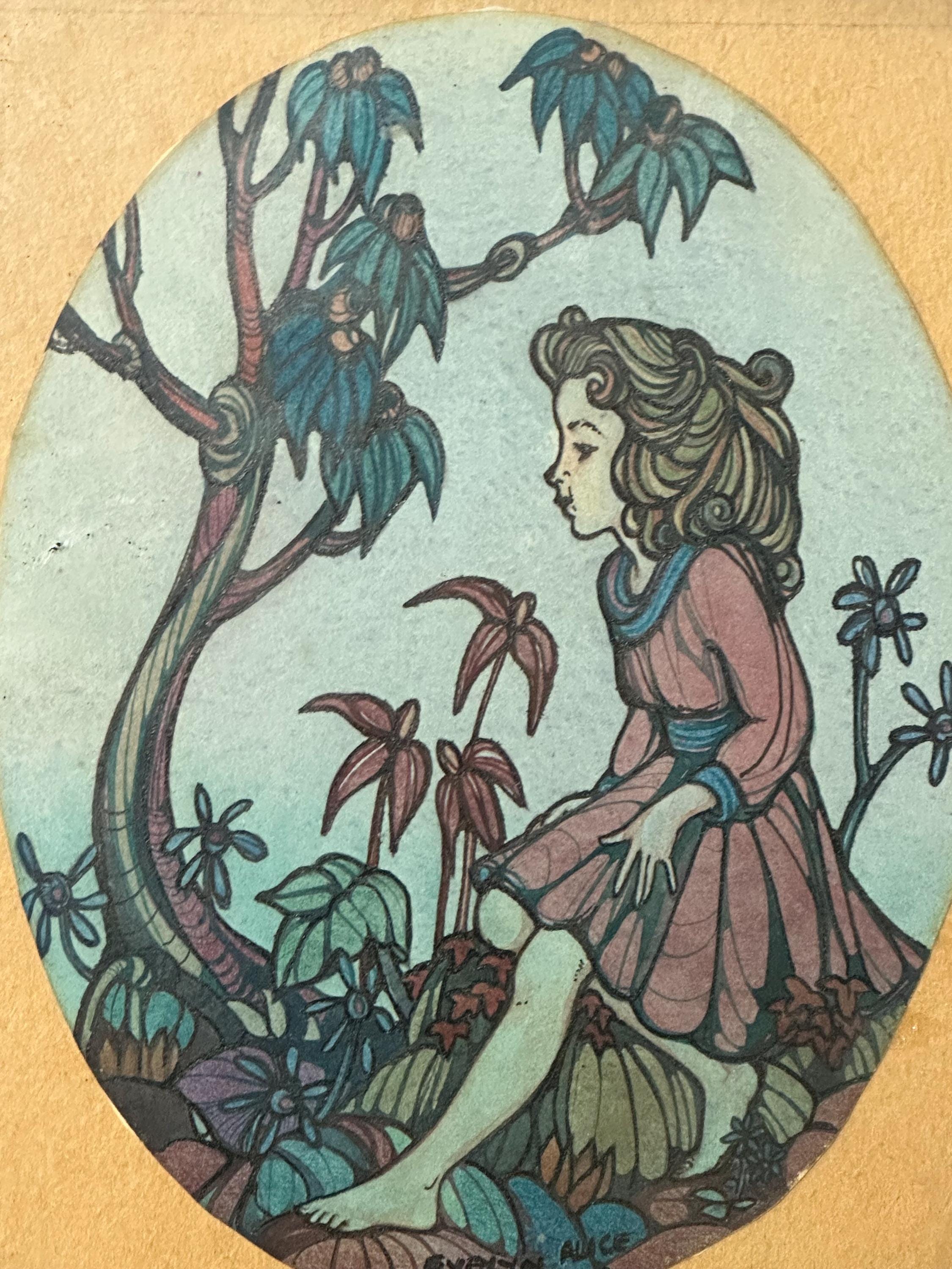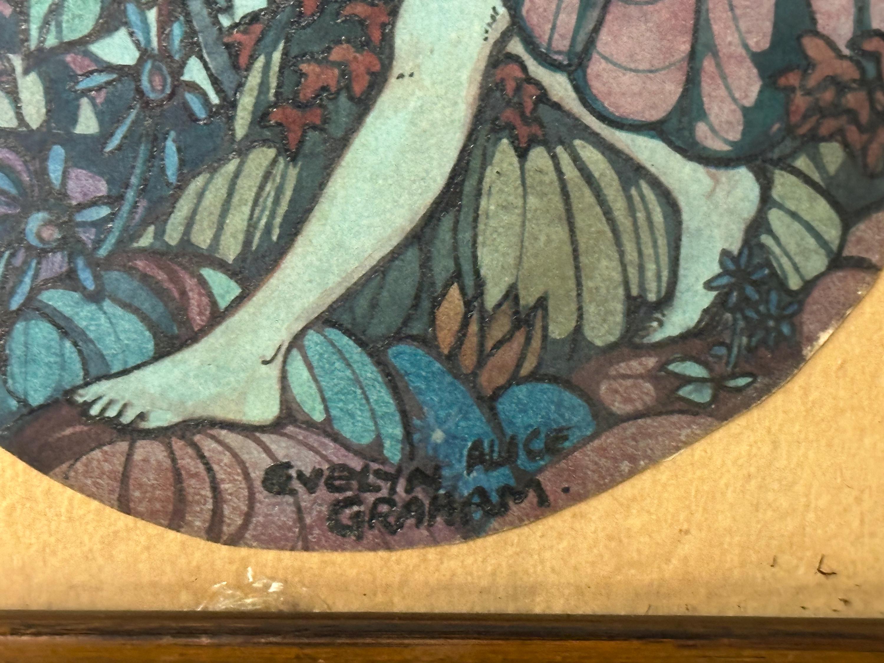 Gorgeous Small Antique Pen & Ink Watercolour By Evelyn Alice Graham circa 1900