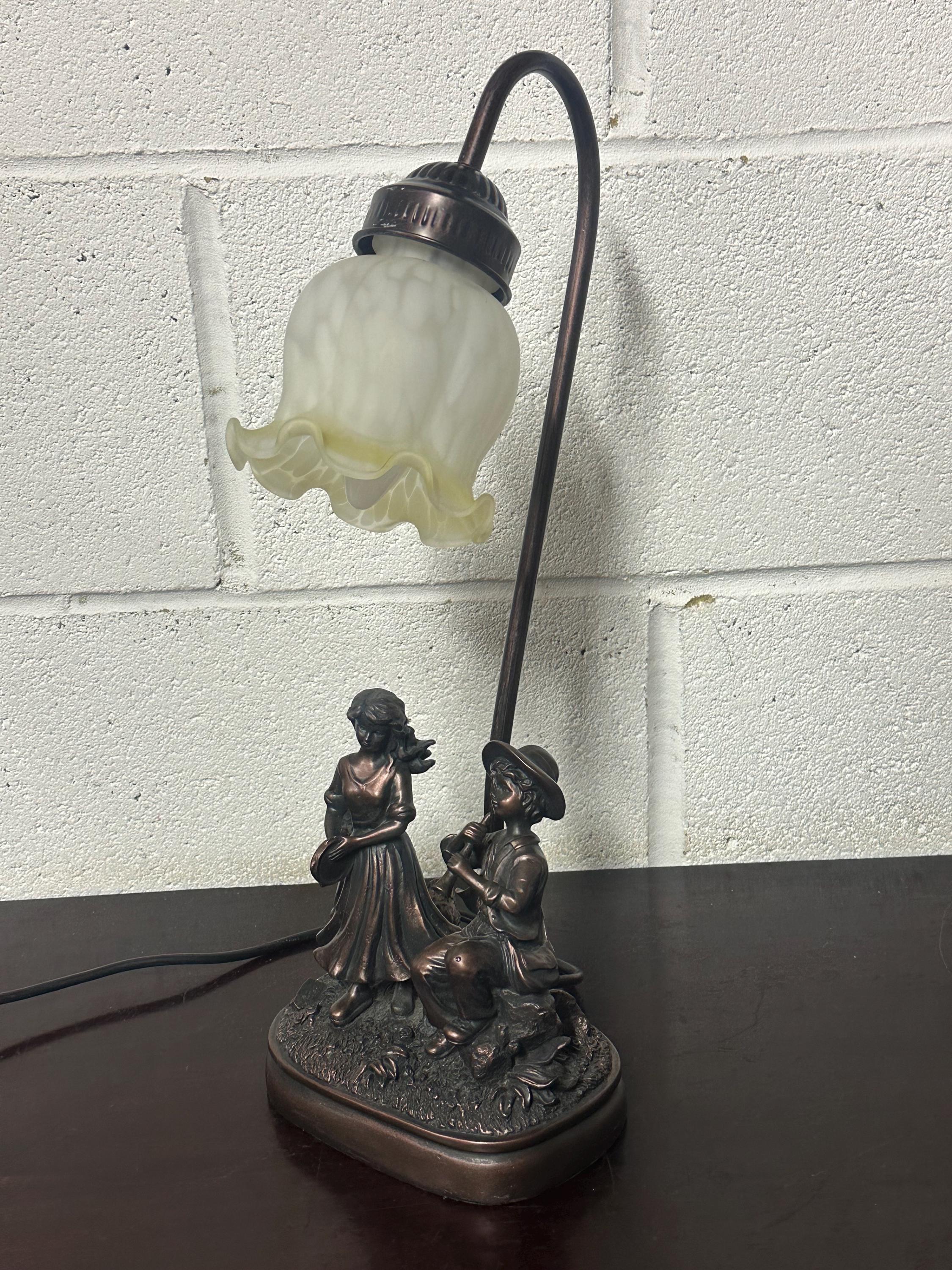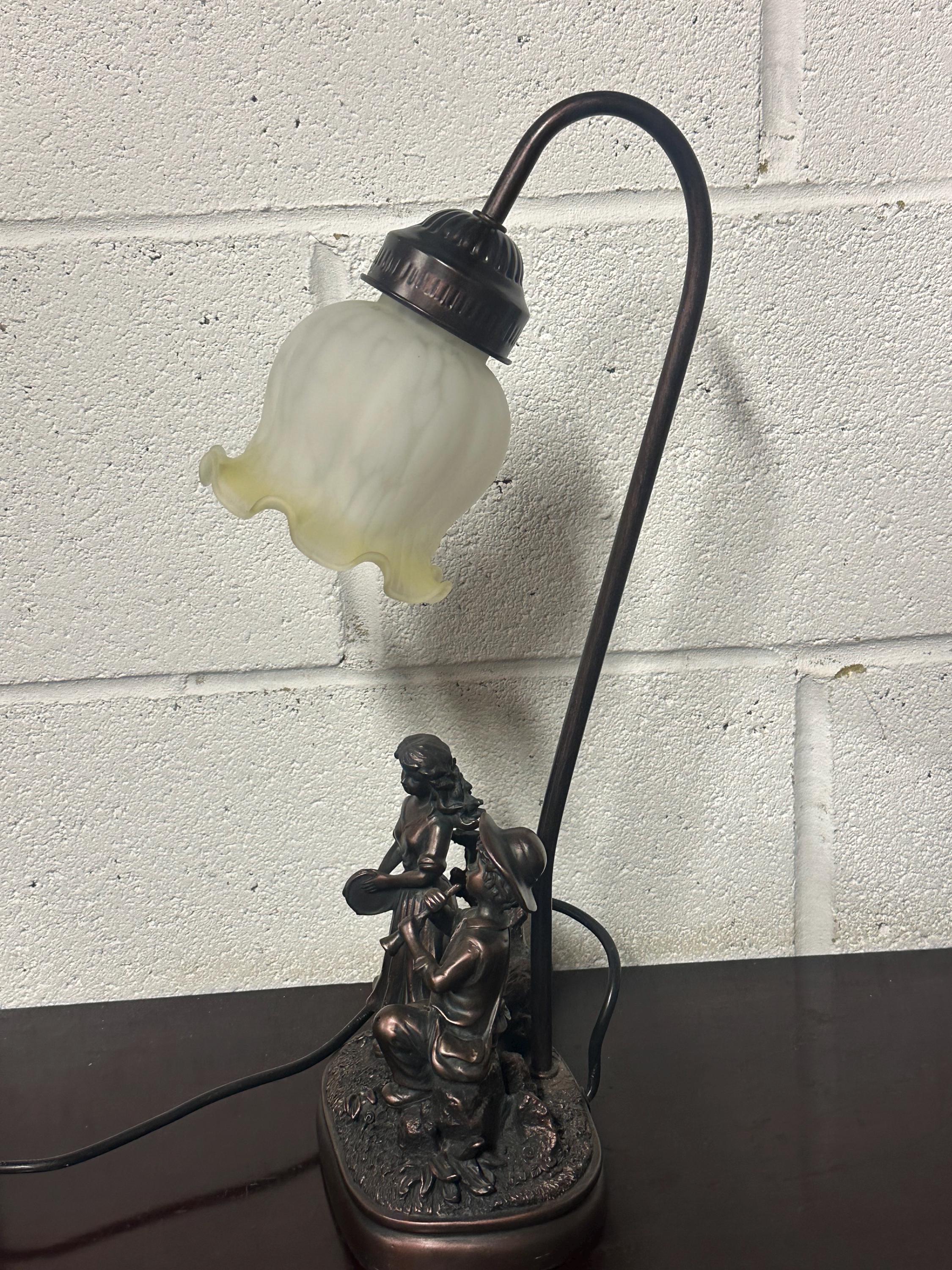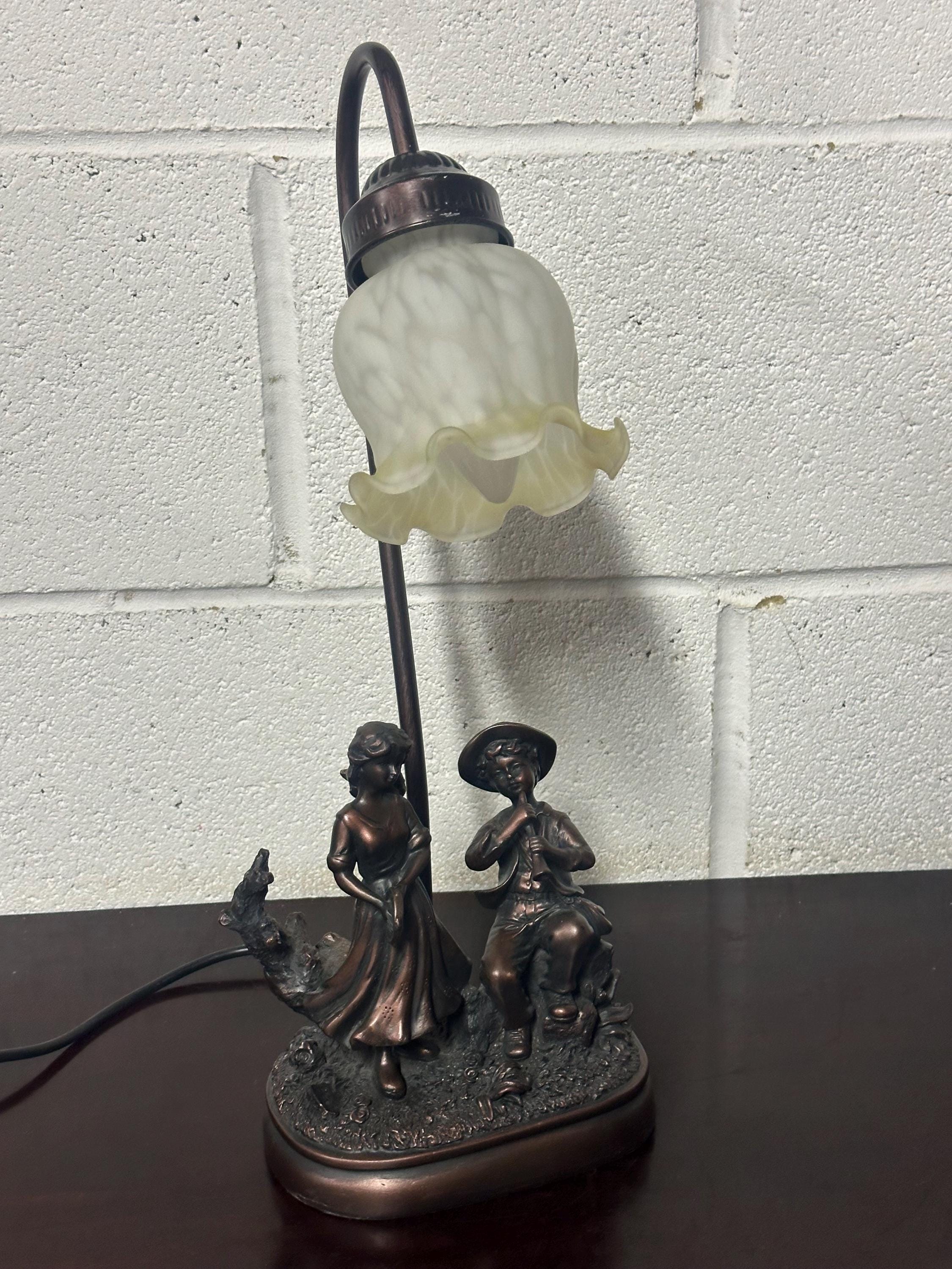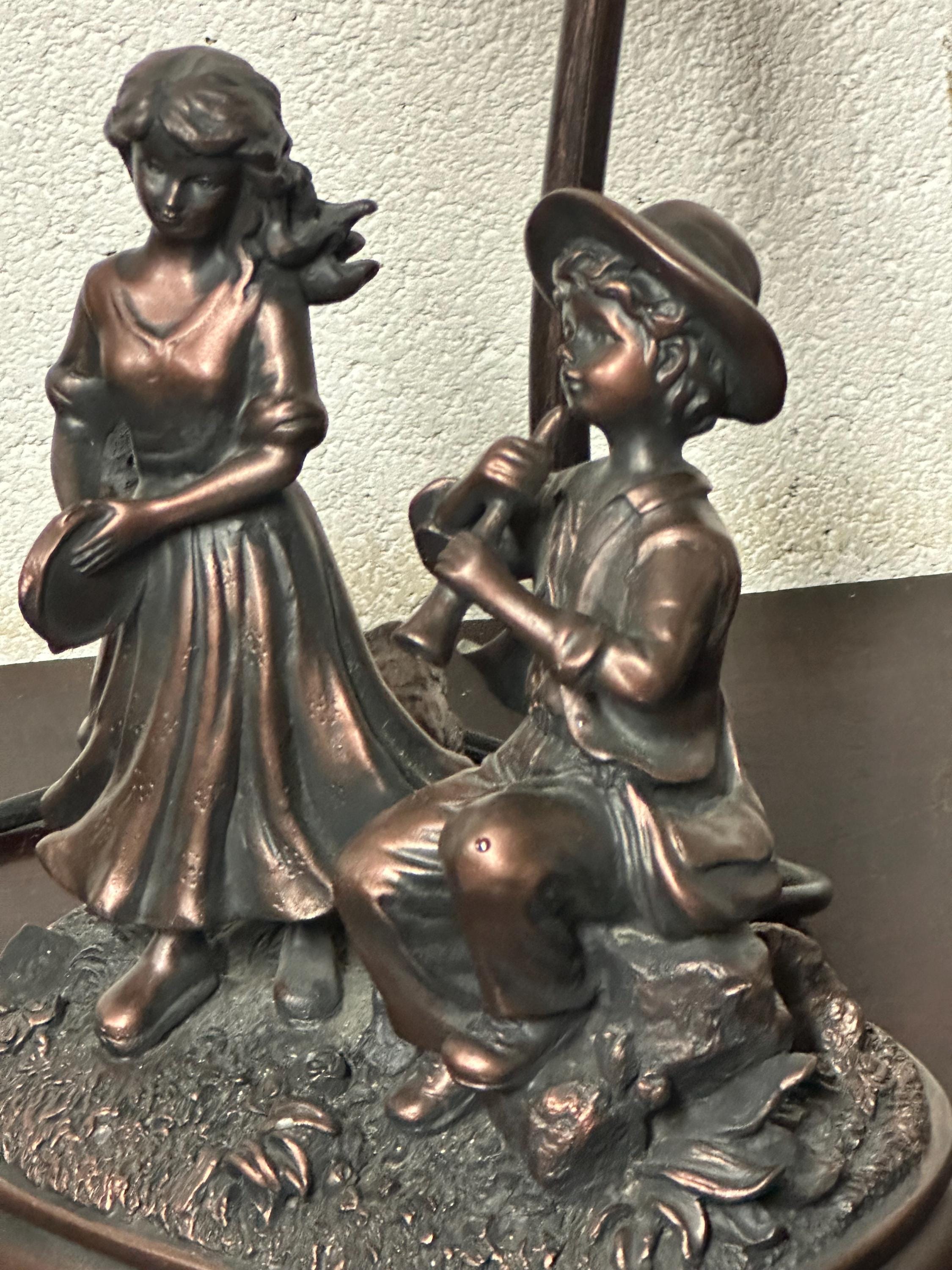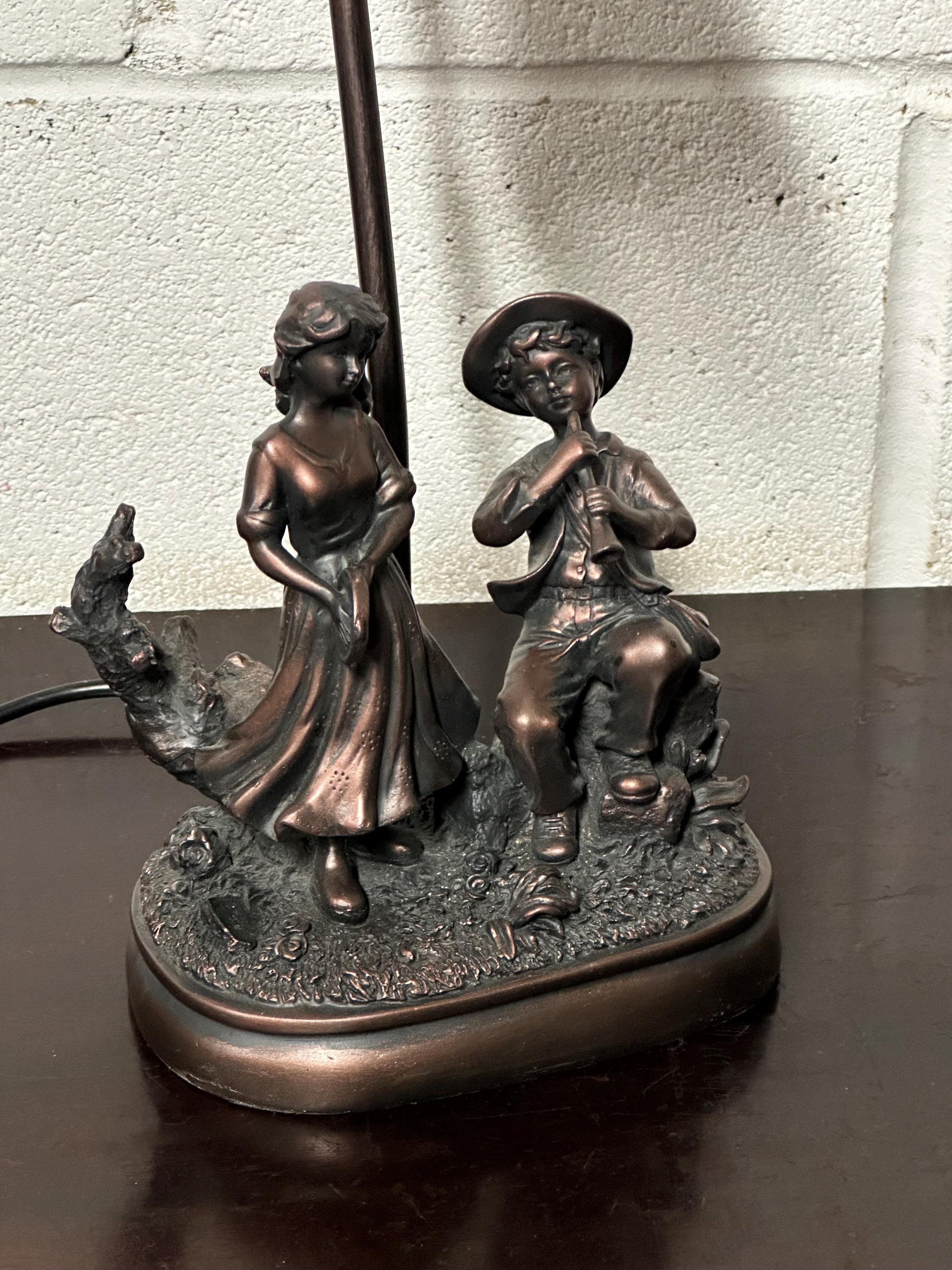Lovely Vintage Wisdom Bingham Table Lamp Girl With Tambourine & Boy With Flute