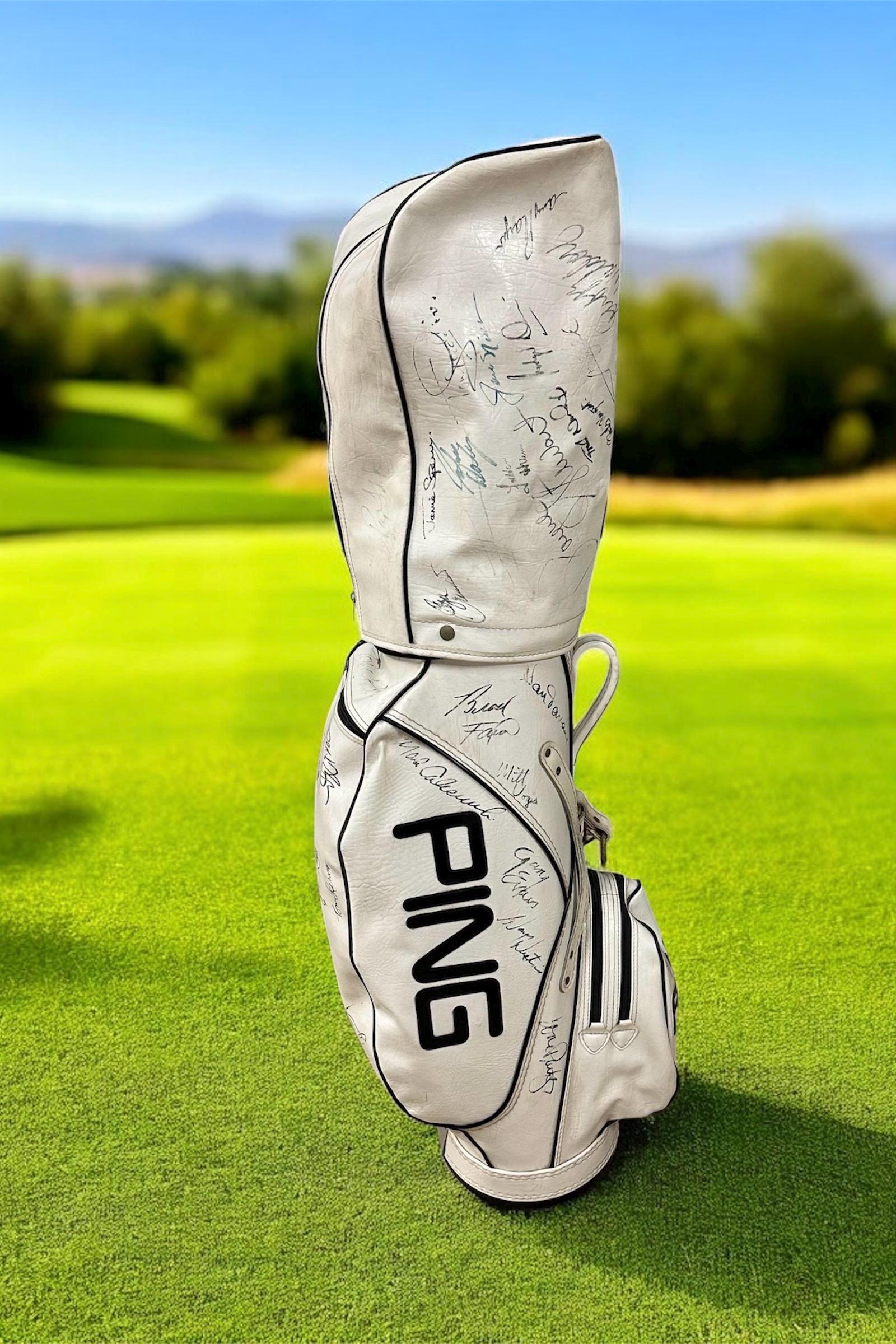 Ping Leather Golf Bag Signed by Players at the British Open Held at Royal St George’s in 1993 including the late great Seve Ballesteros