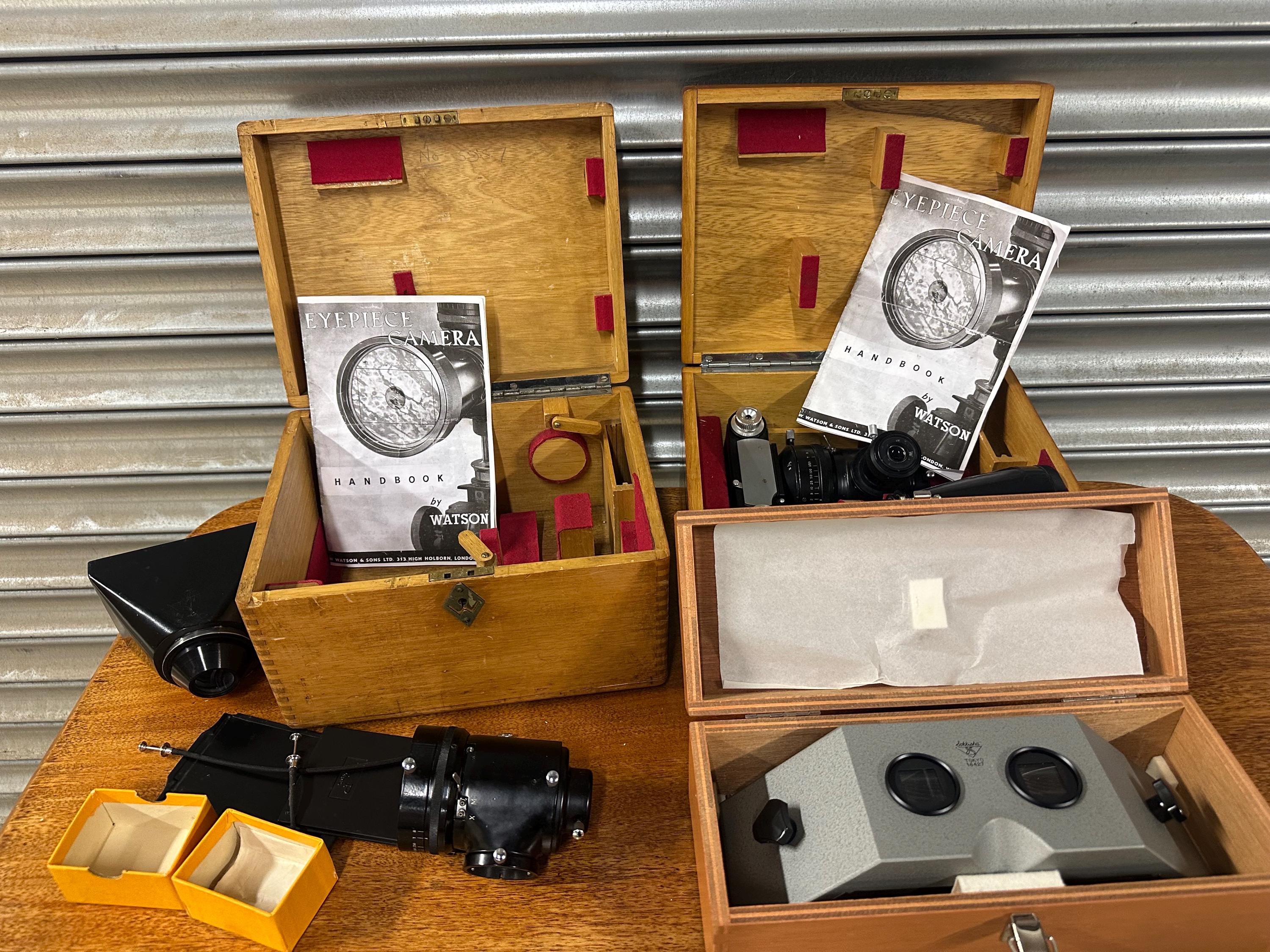 There’s 3 boxed items in this sale which included Watson Eyepiece sets, not sure if complete so please refer to all the photos and there’s also a boxed Sokkisha Stereoscope