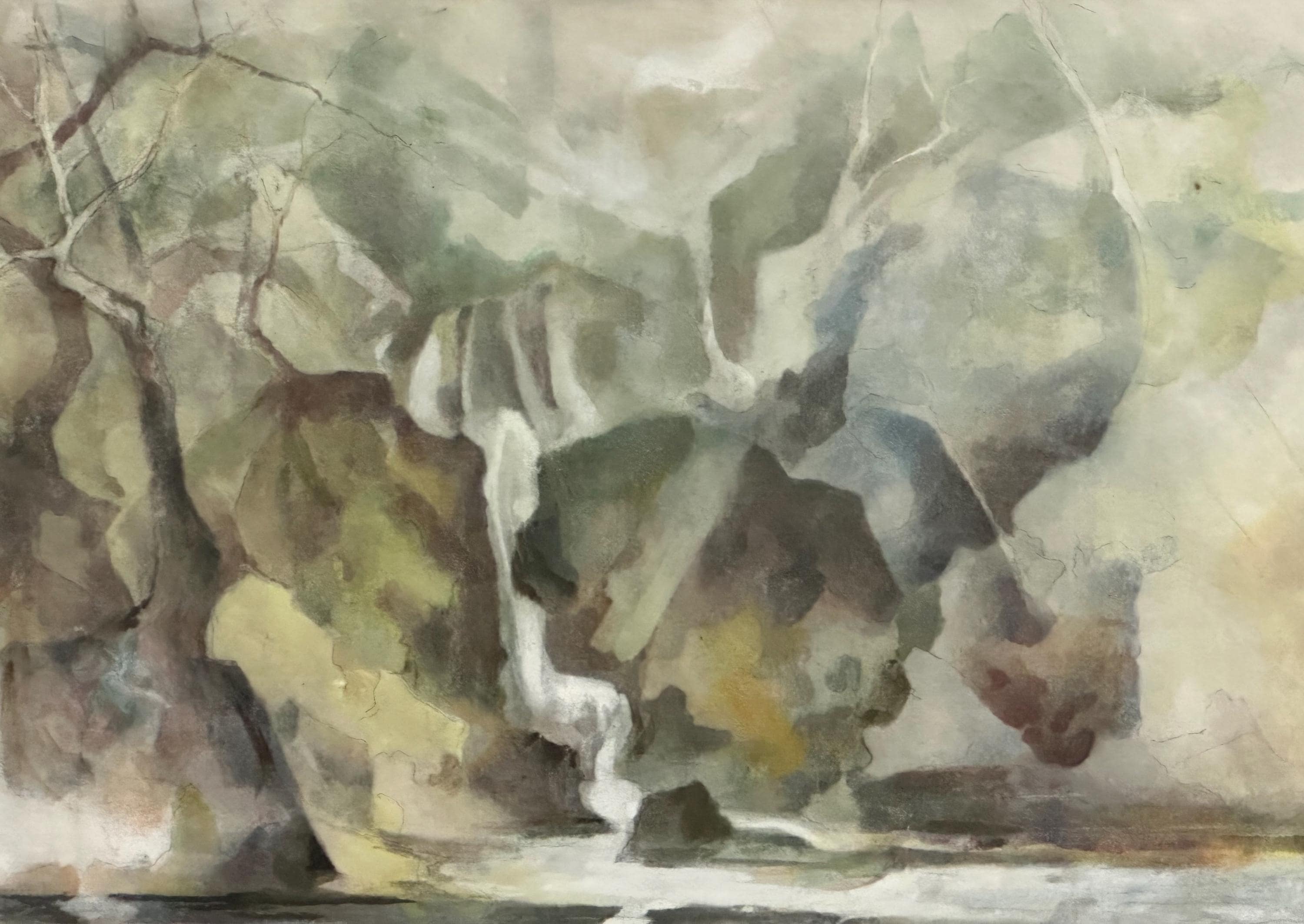 A delightful abstract mixed media study depicting Aira Beck Waterfall which is in Penrith. Cumbria captured in geometric shapes.