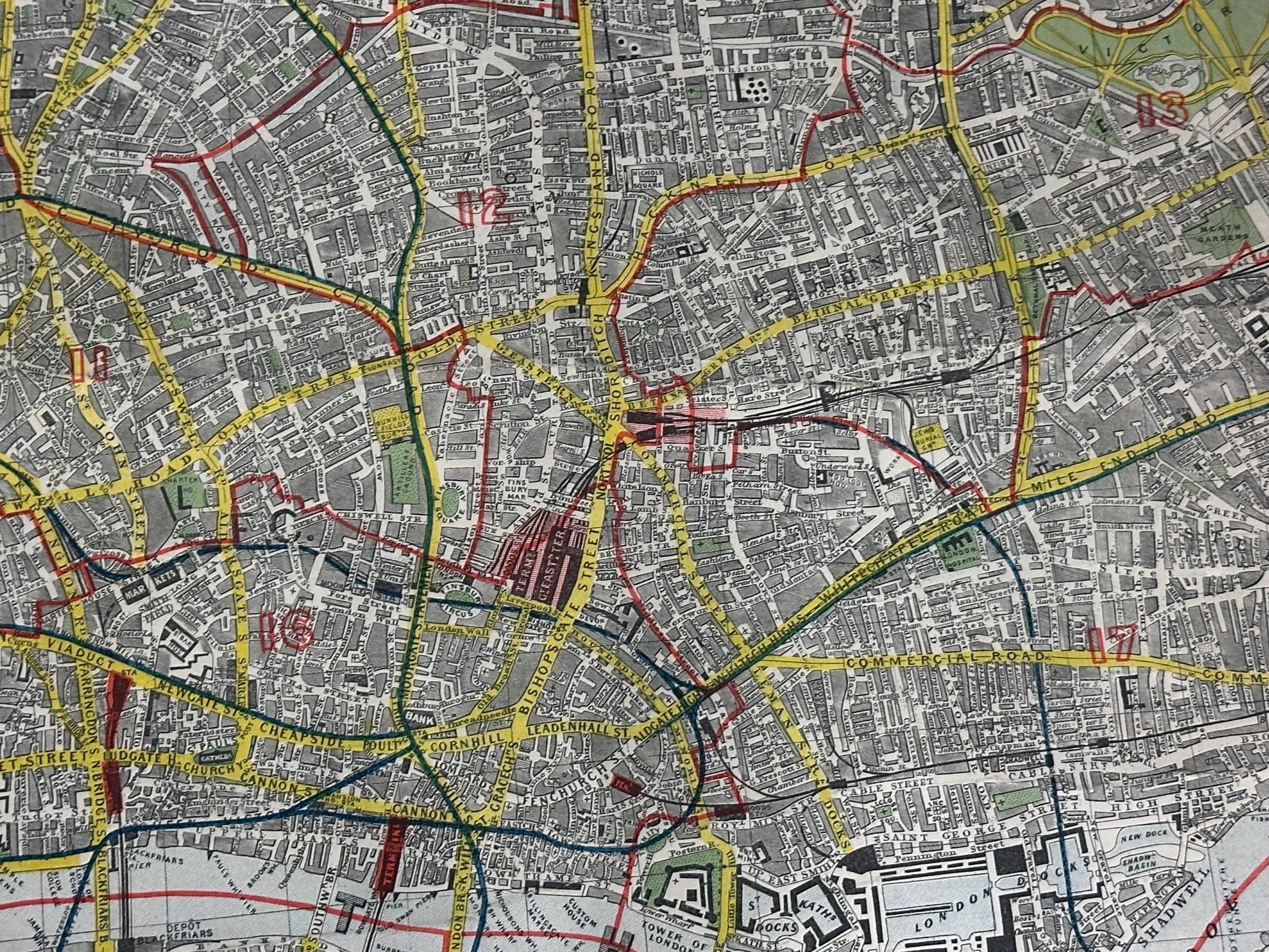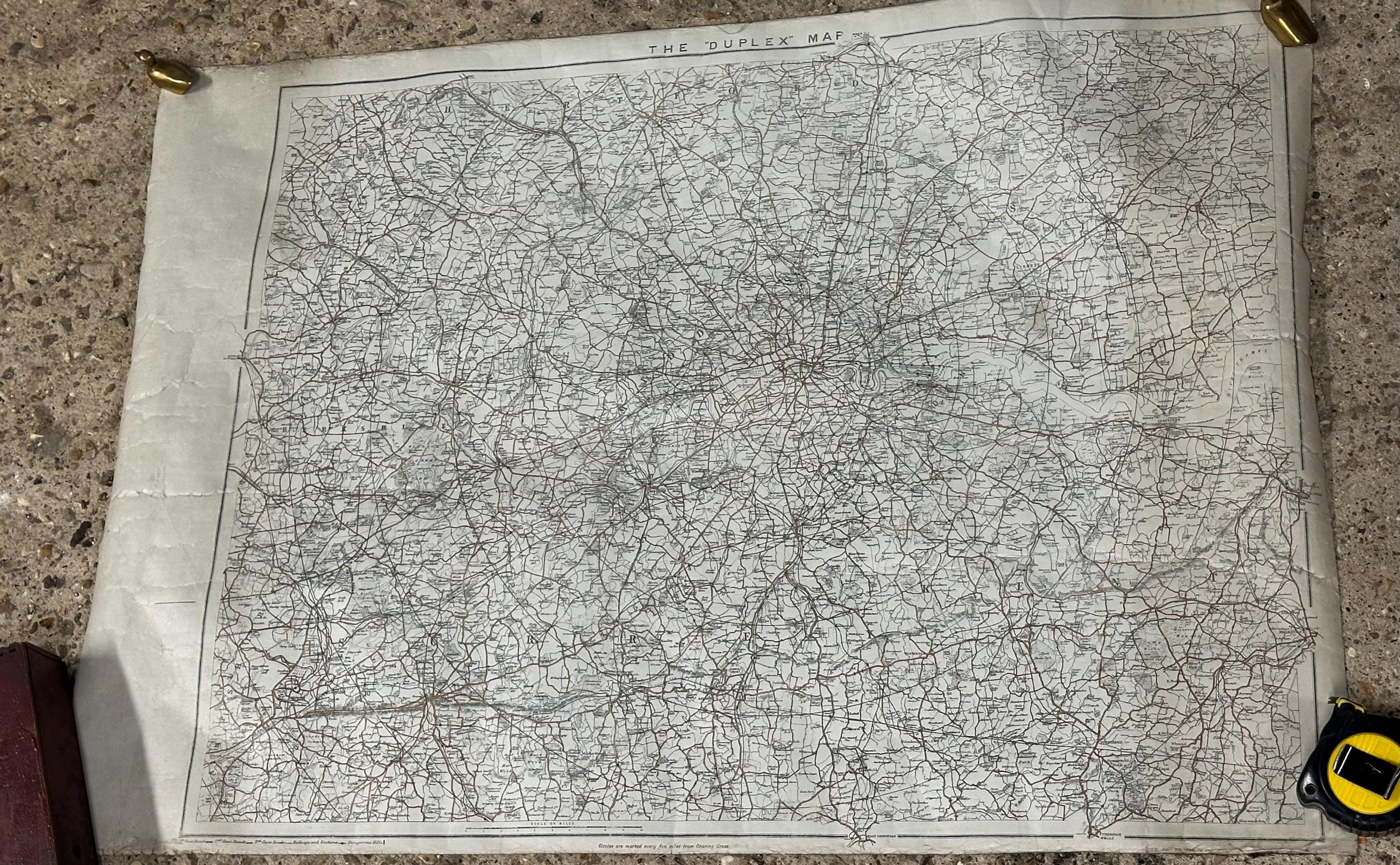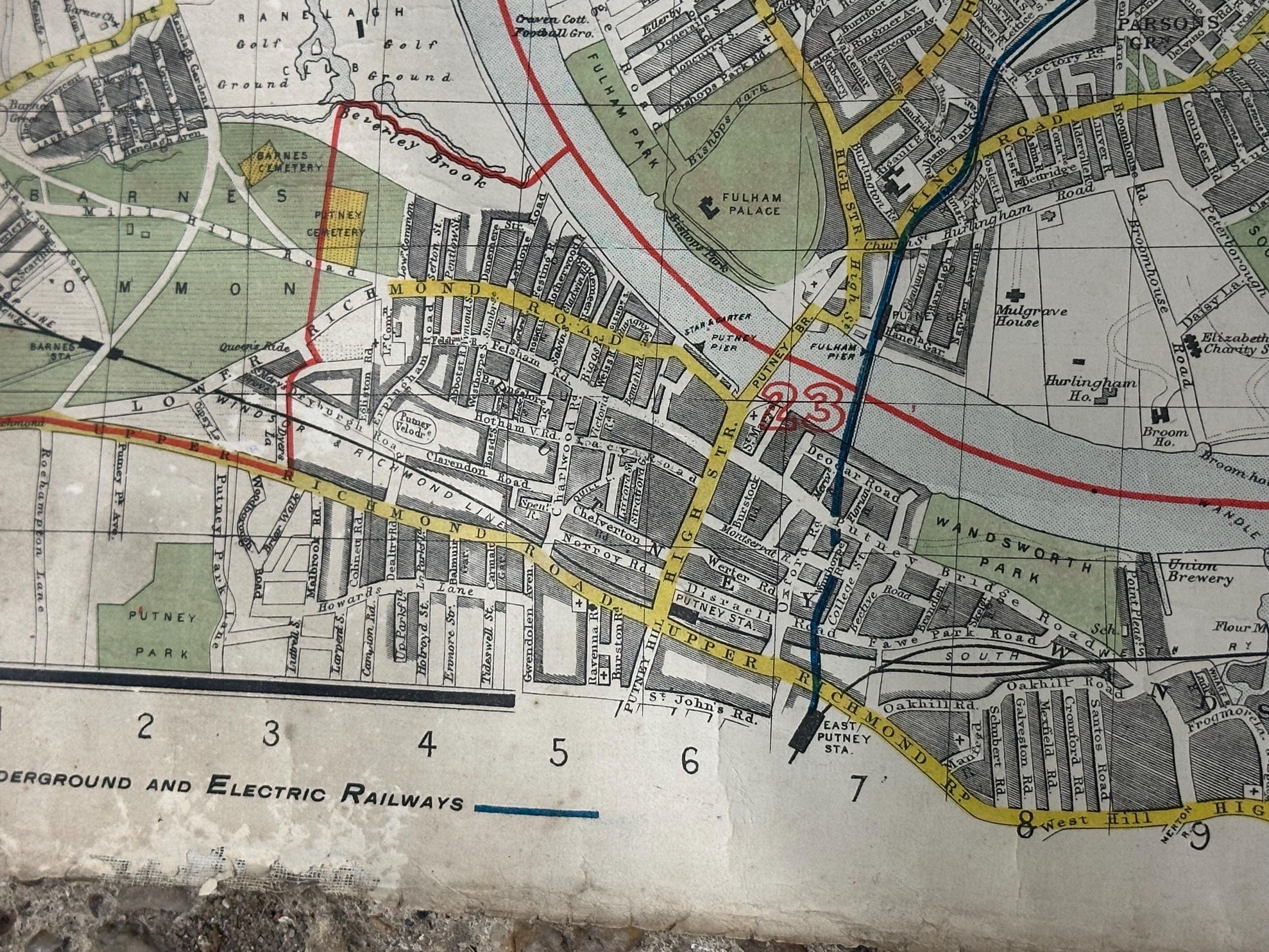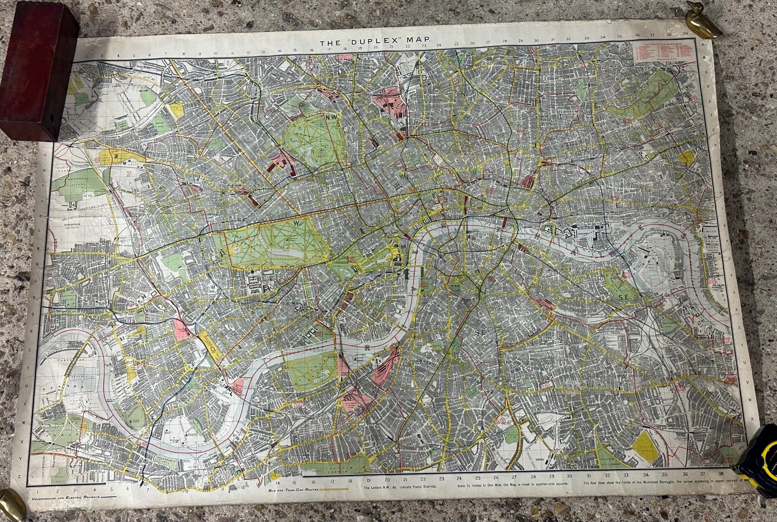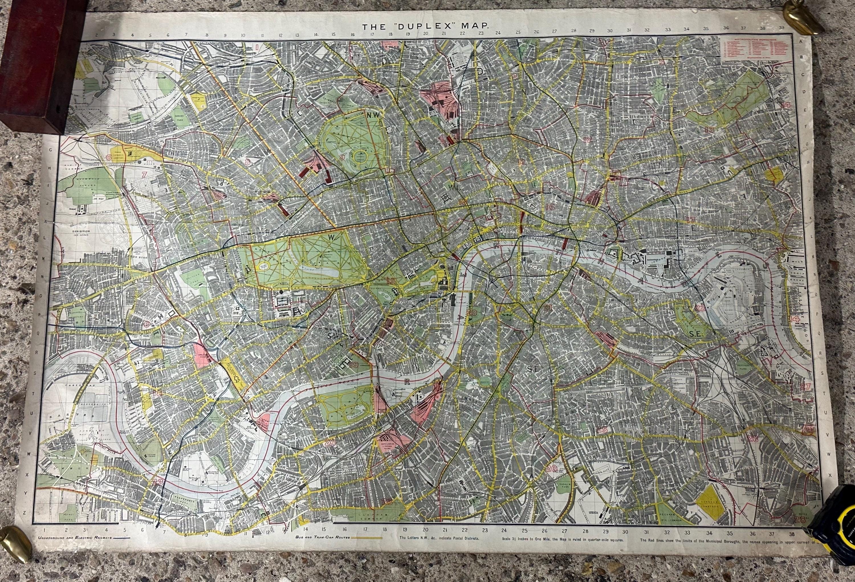 Antique Vintage Canvas Duplex Map Of Central London & Underground Map Etc