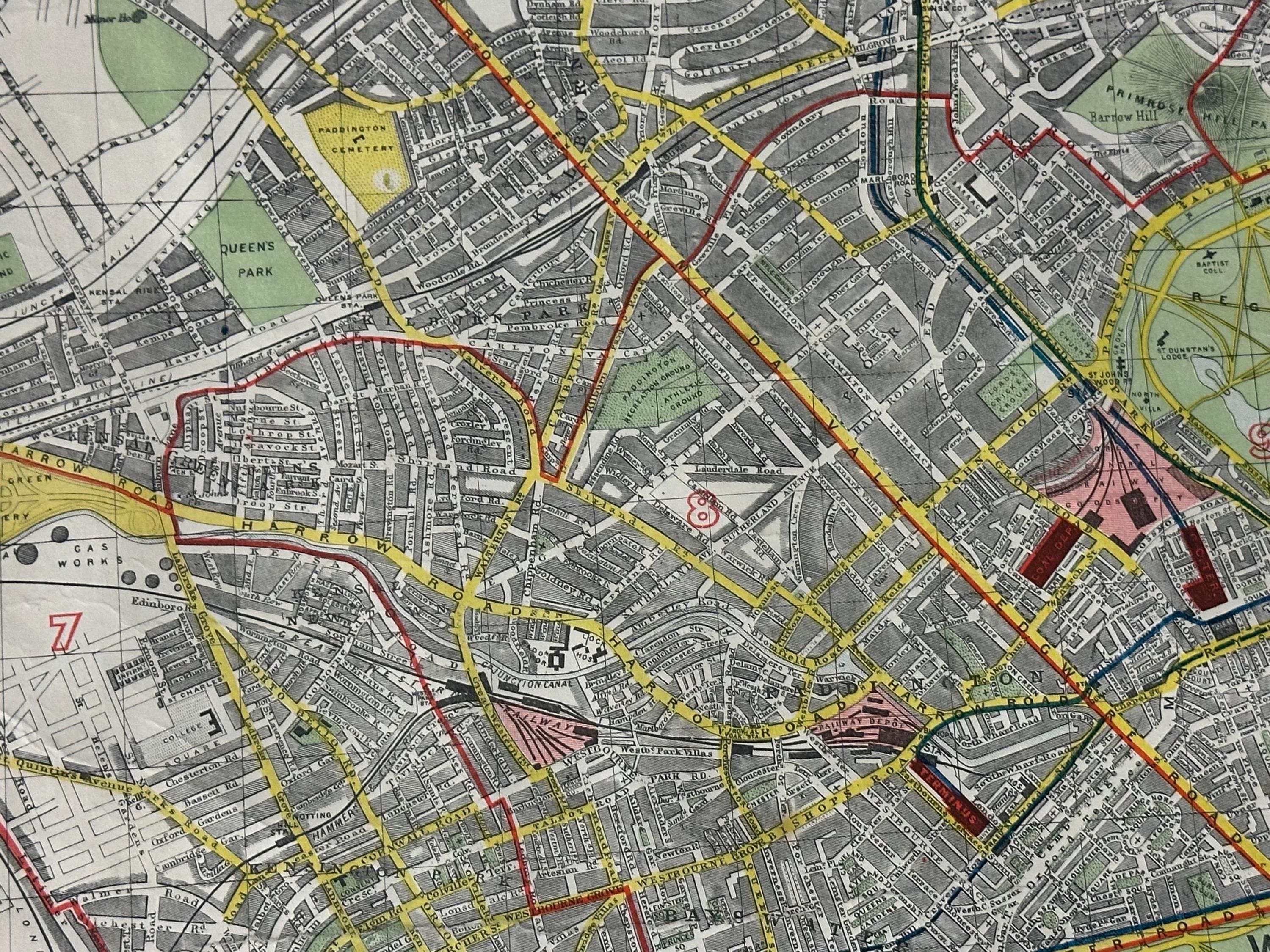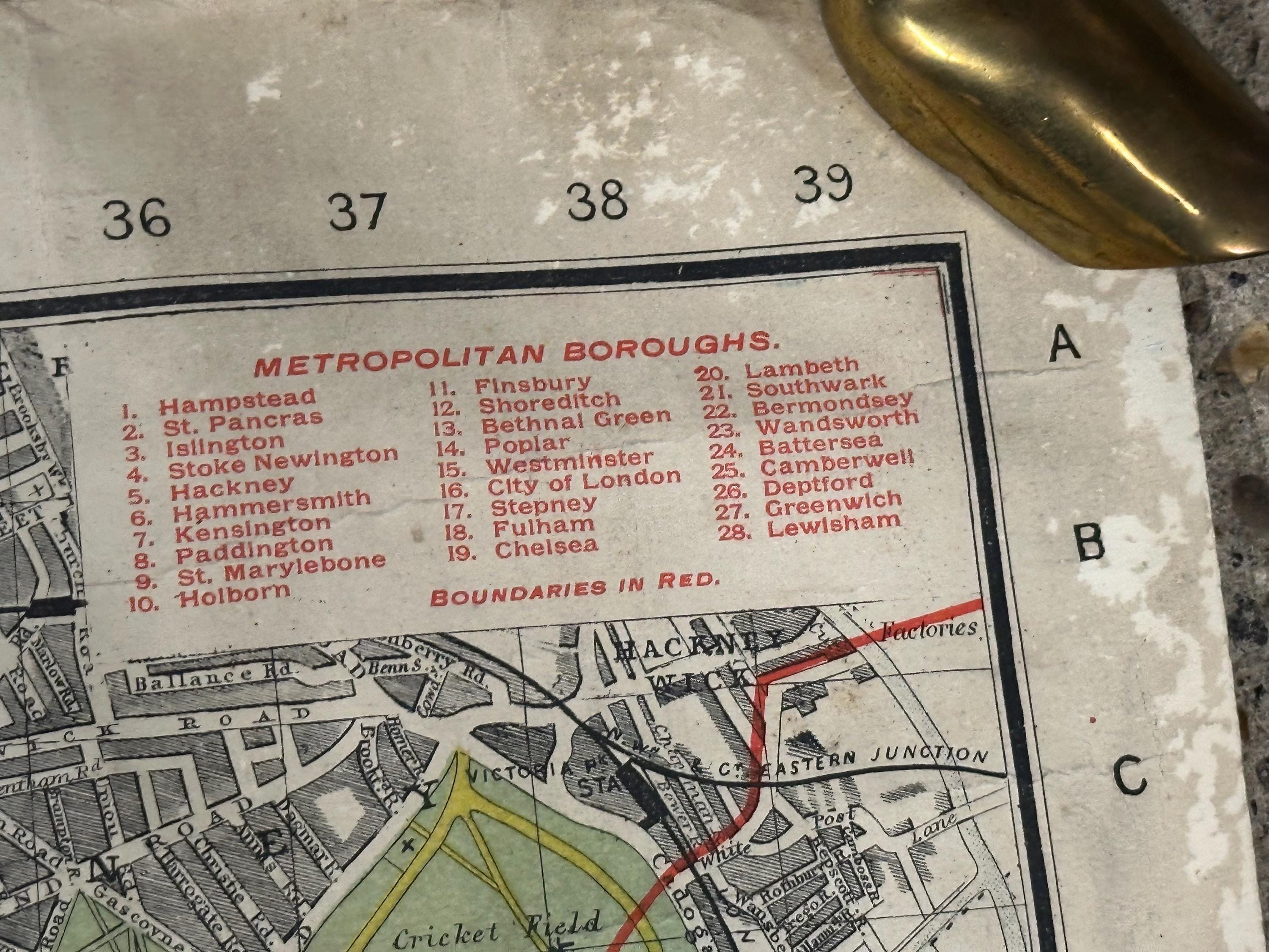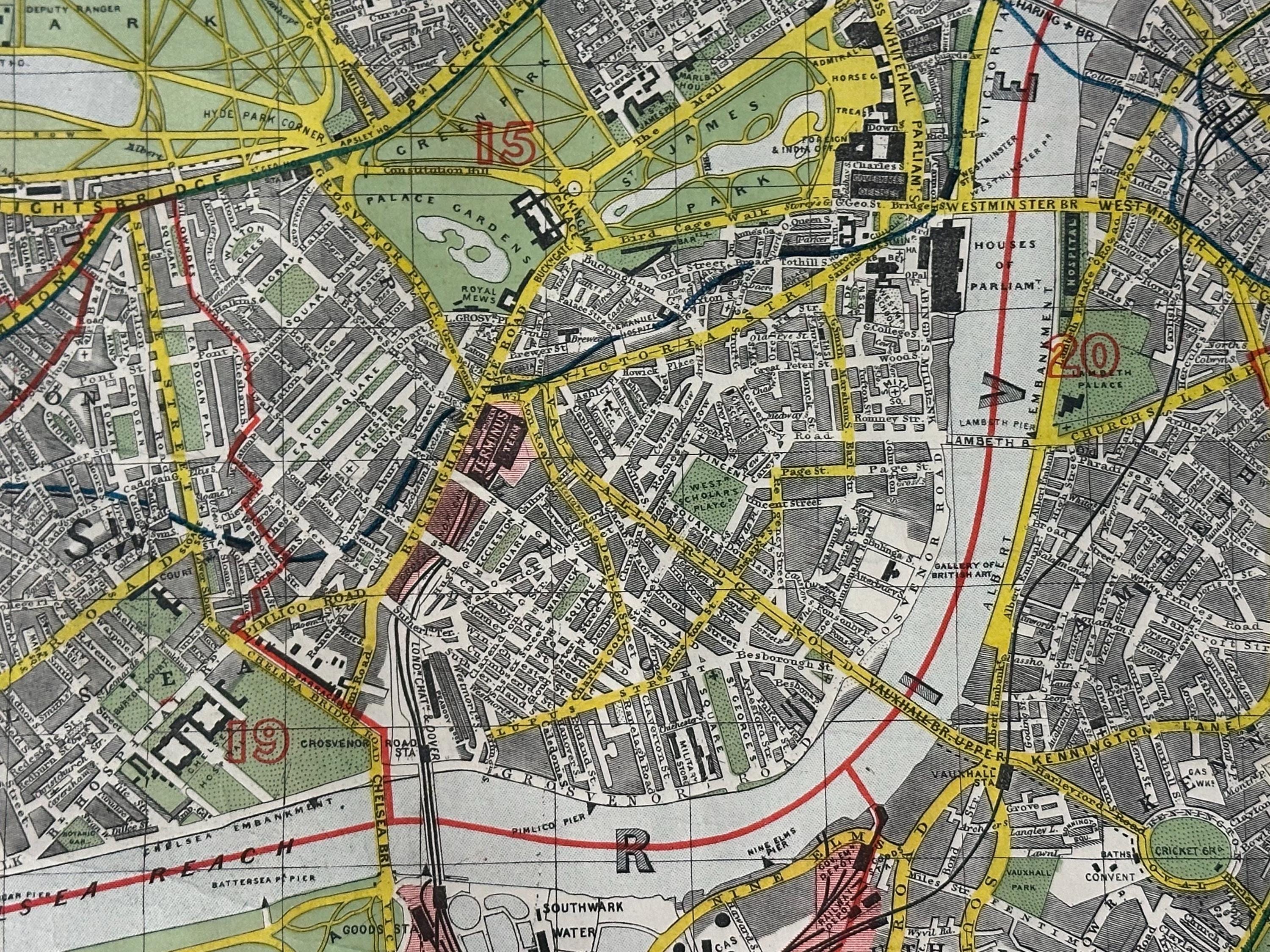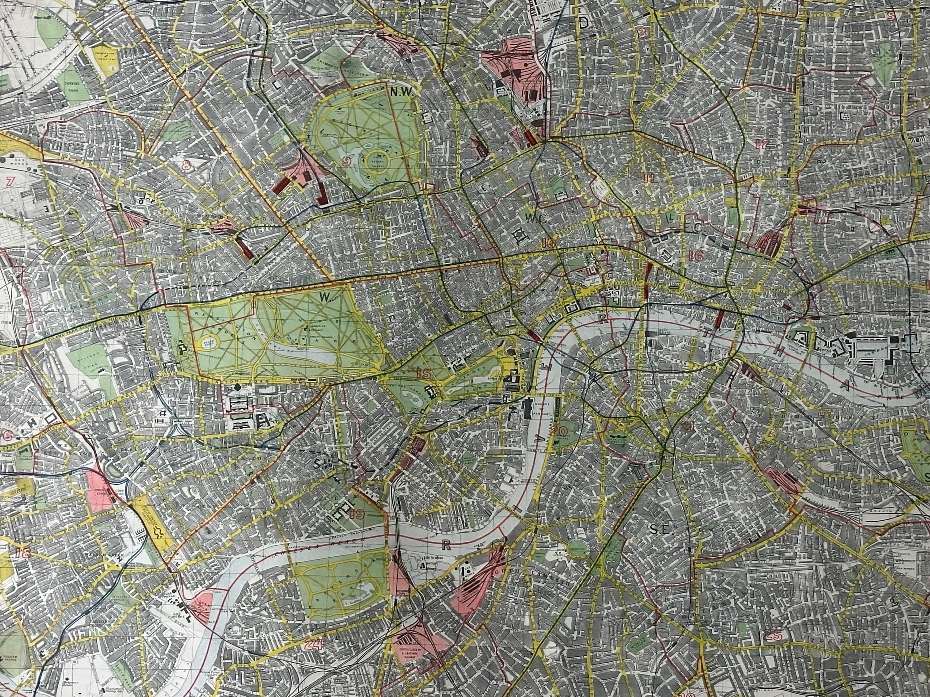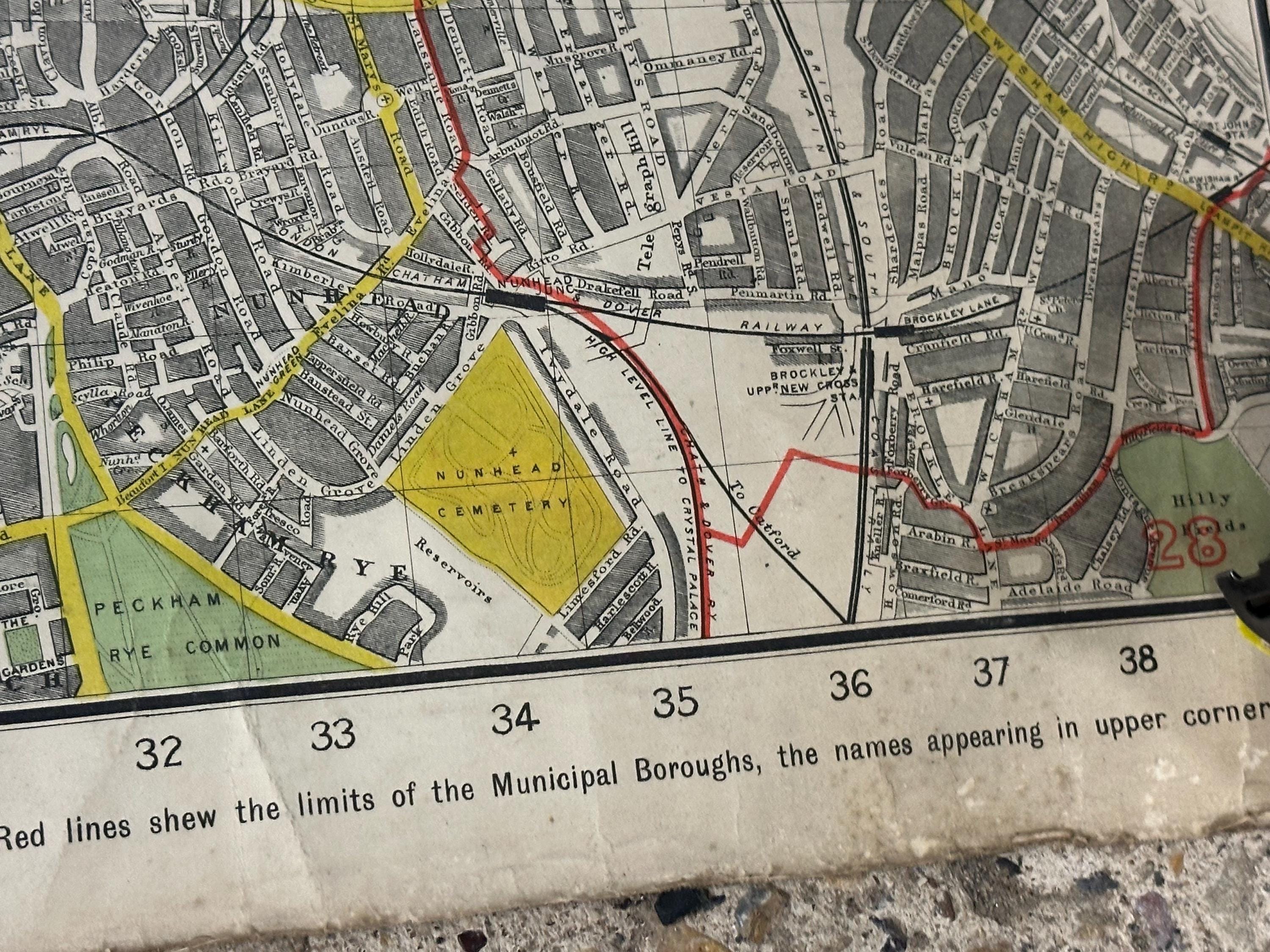 Antique Vintage Canvas Duplex Map Of Central London & Underground Map Etc