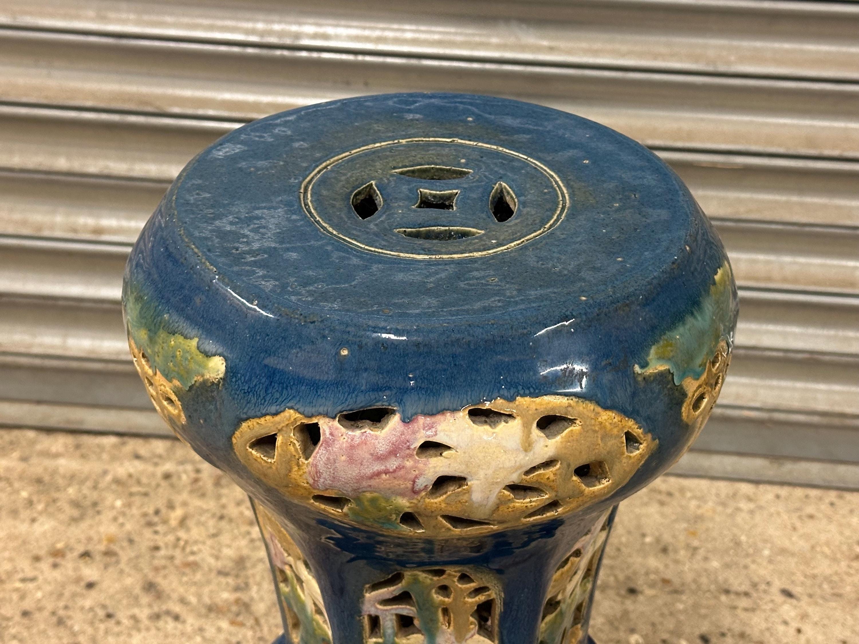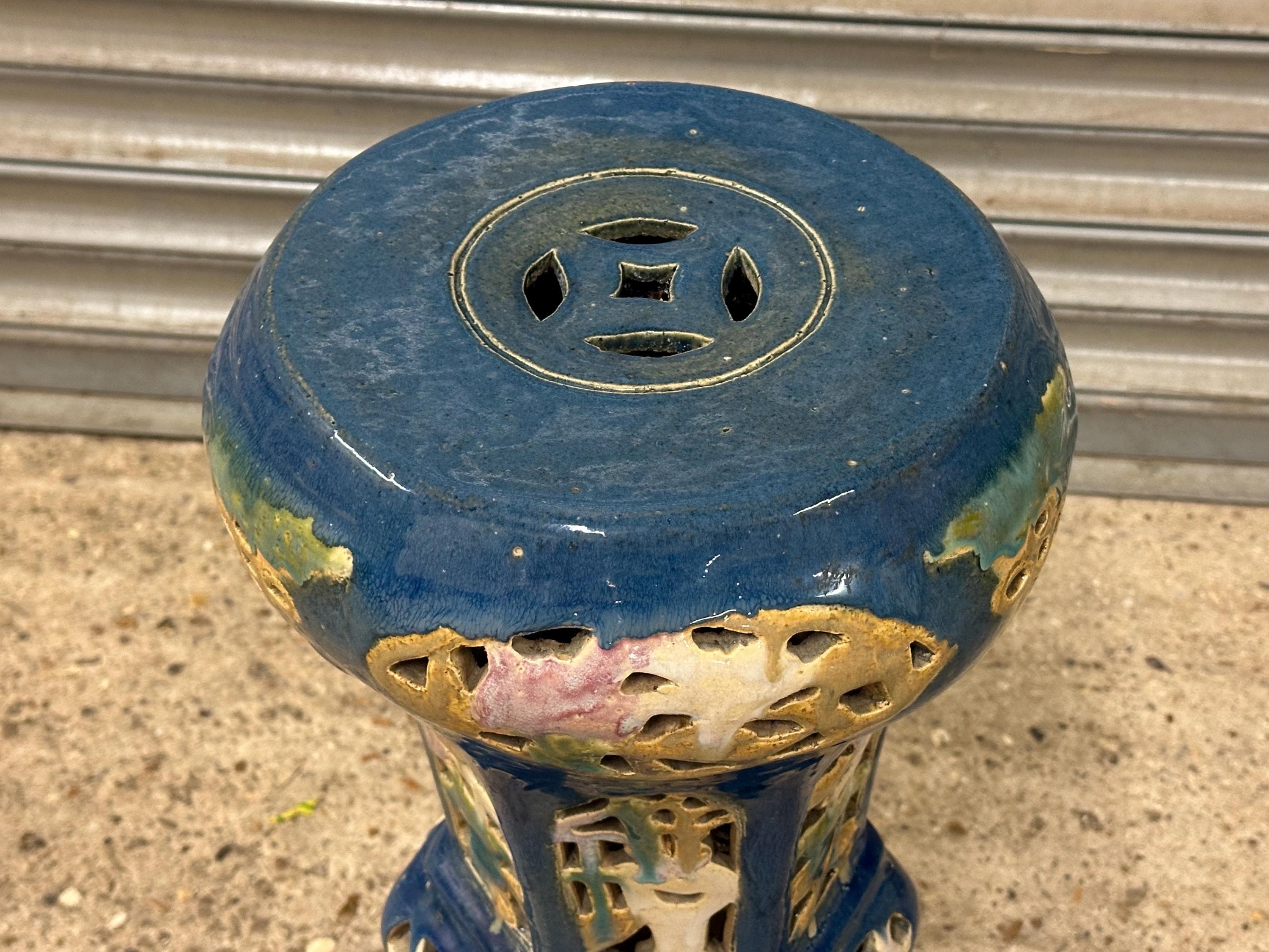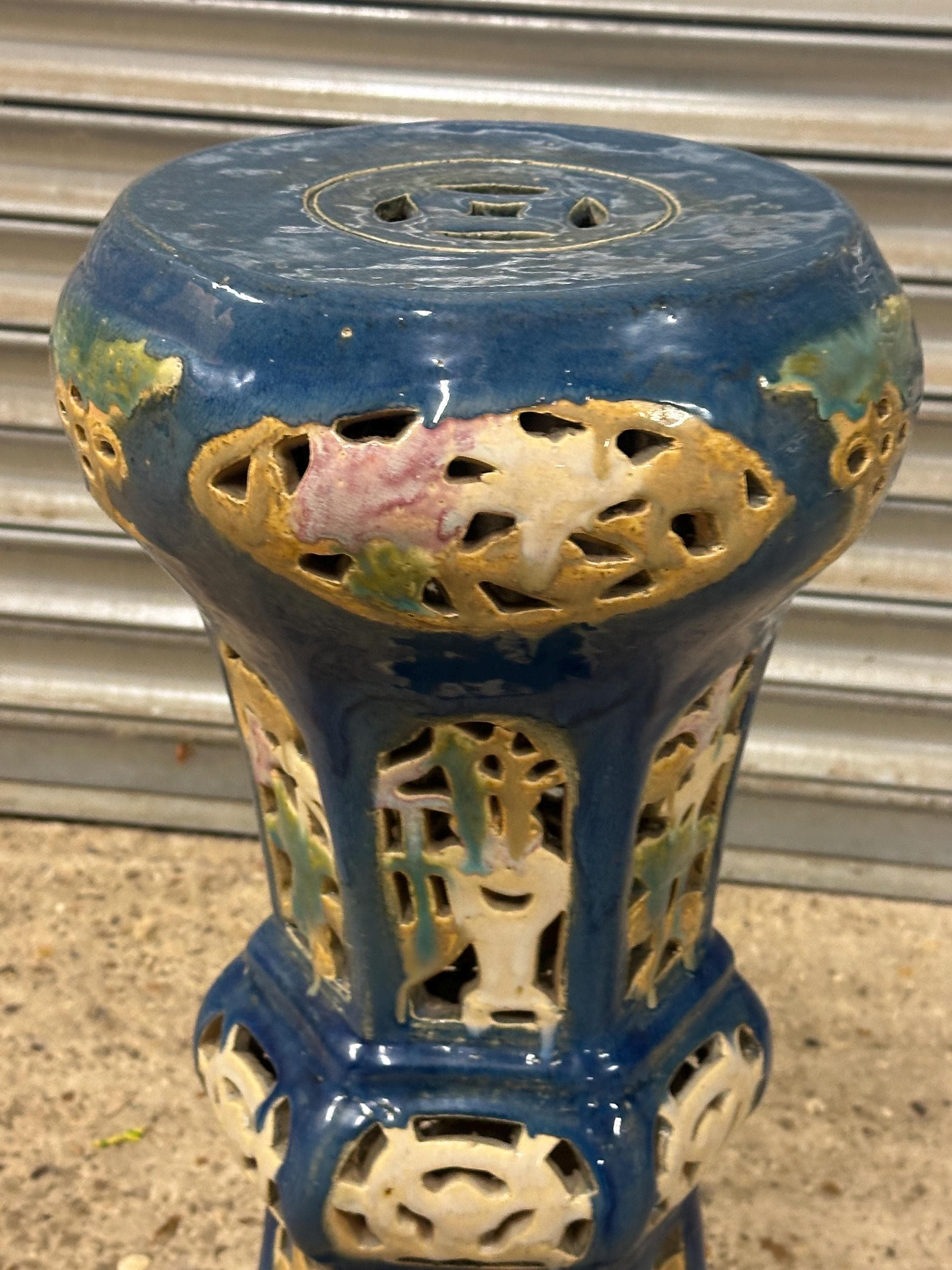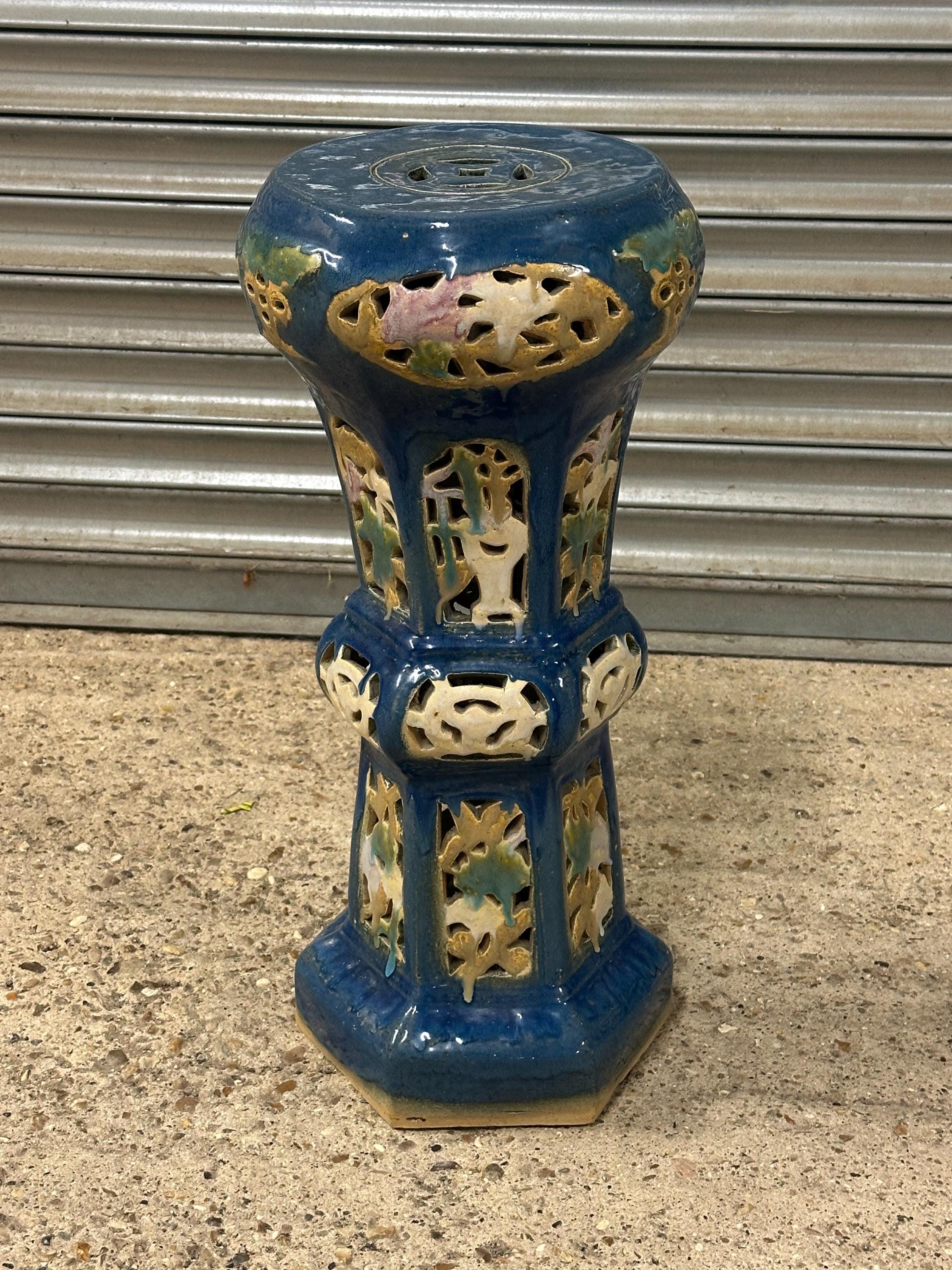 Stunning Chinese Shiwan Style Ceramic Column Plant Stand / Side Table