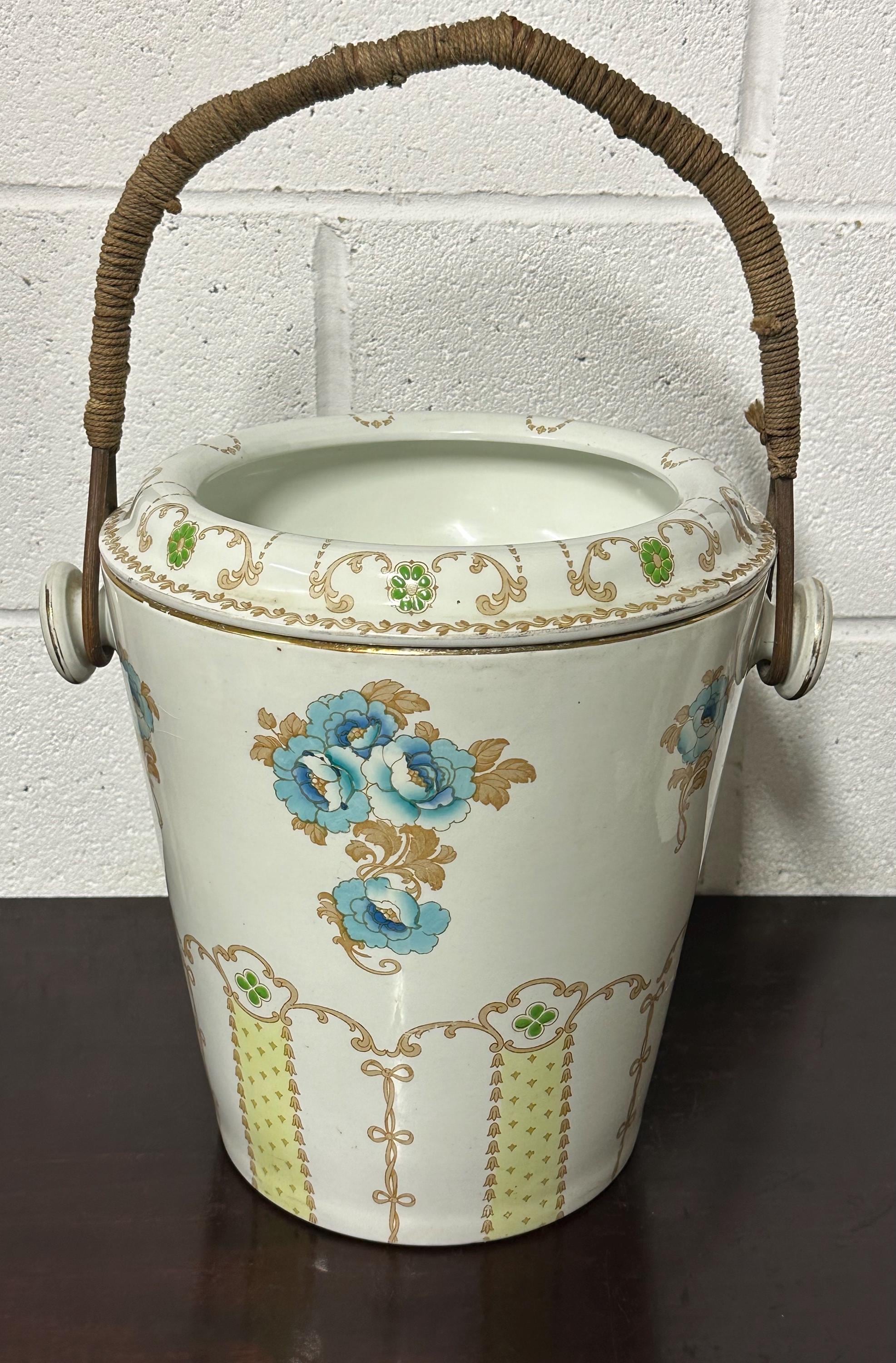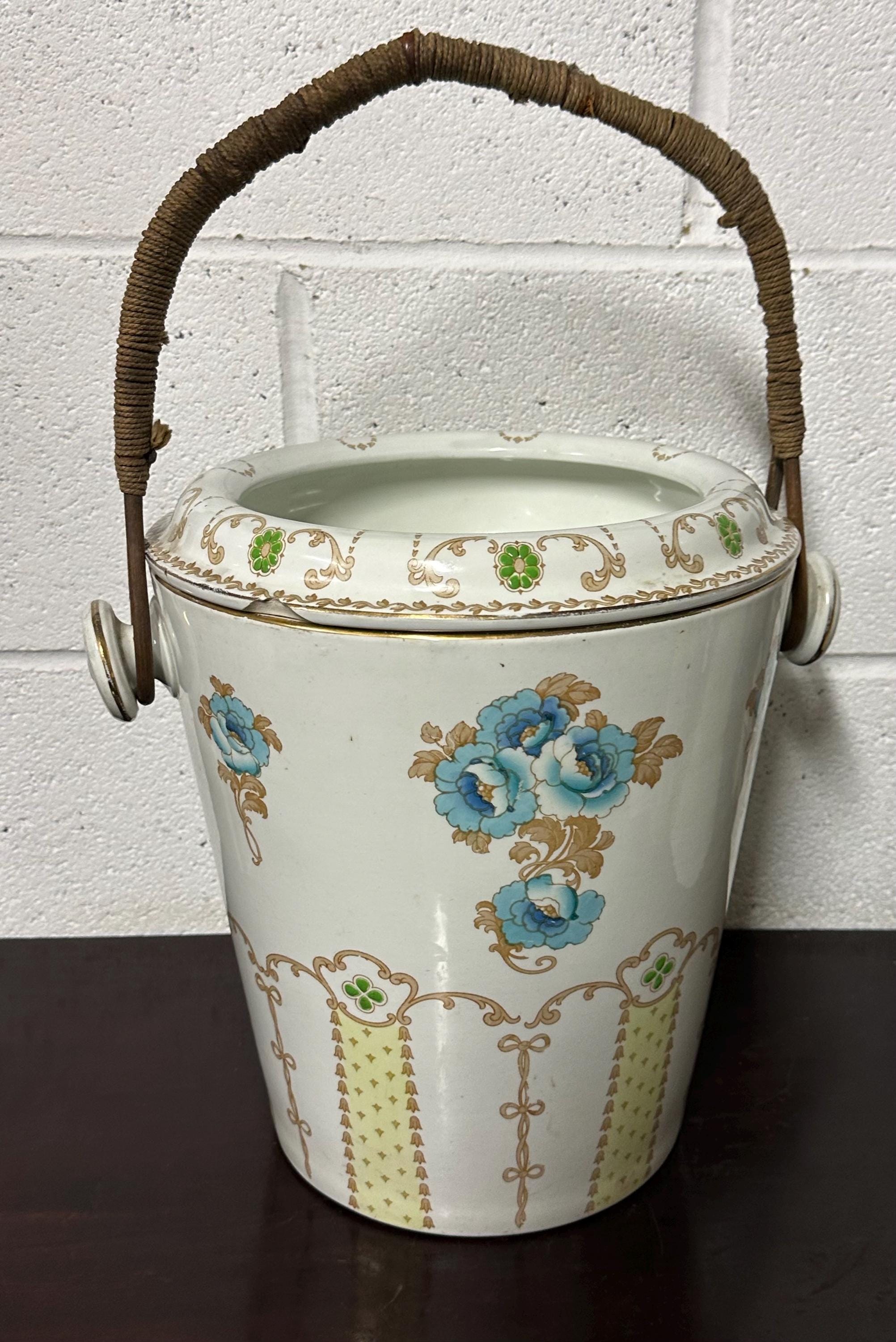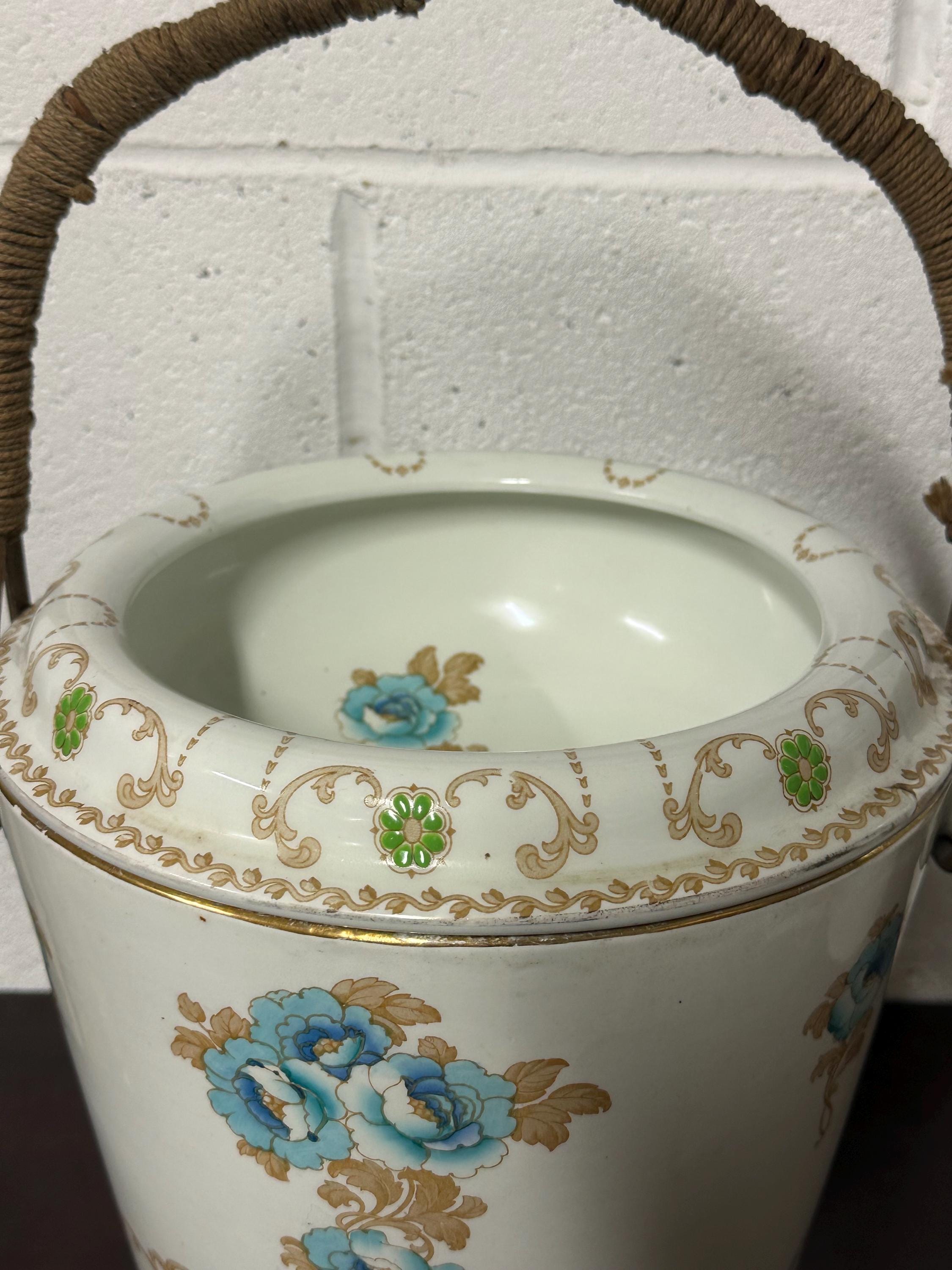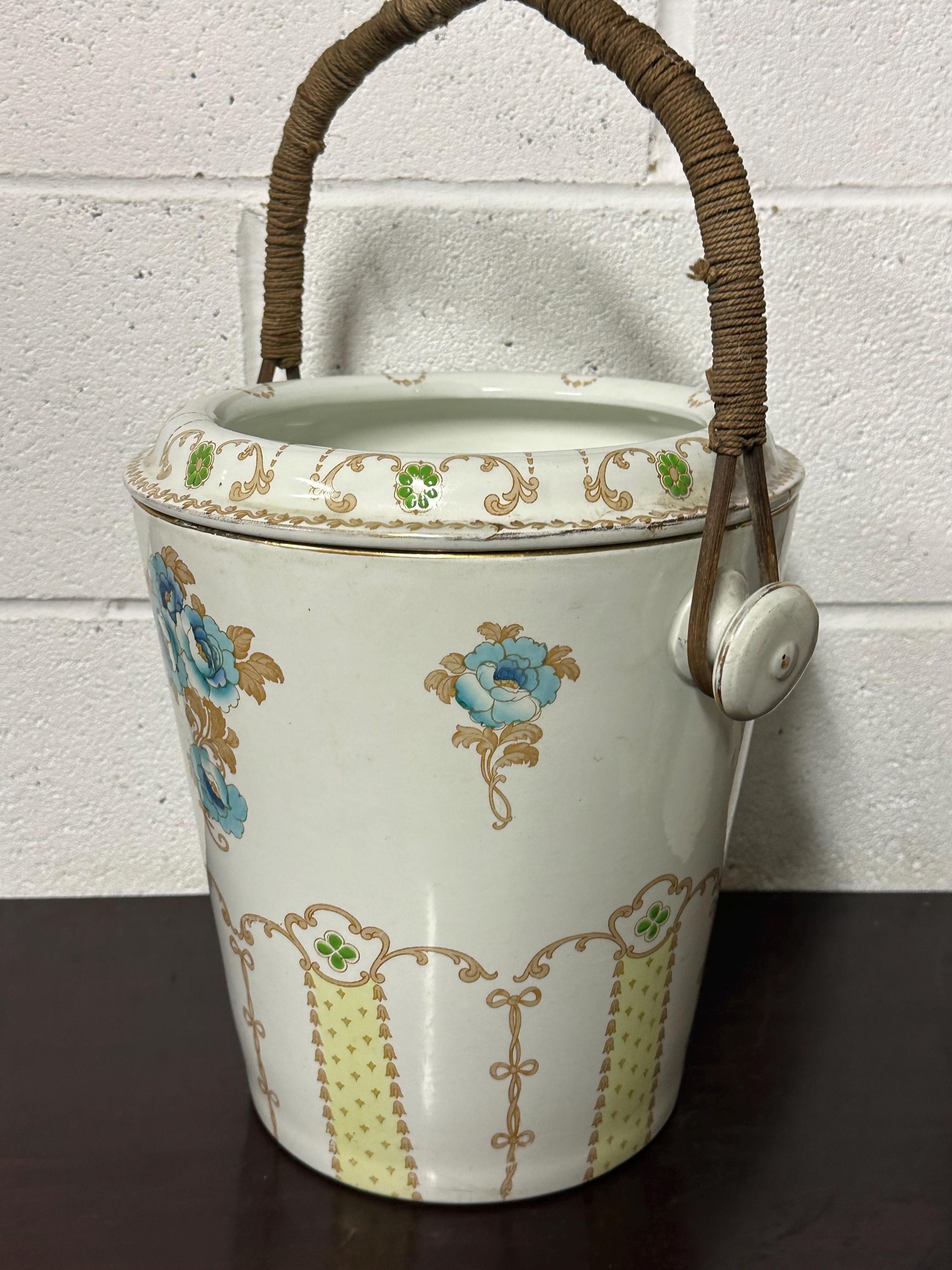 Victorian Late 19th Century Watts F W & Co Ceramic Slop Bucket Decorative Flowers & Bamboo Handle