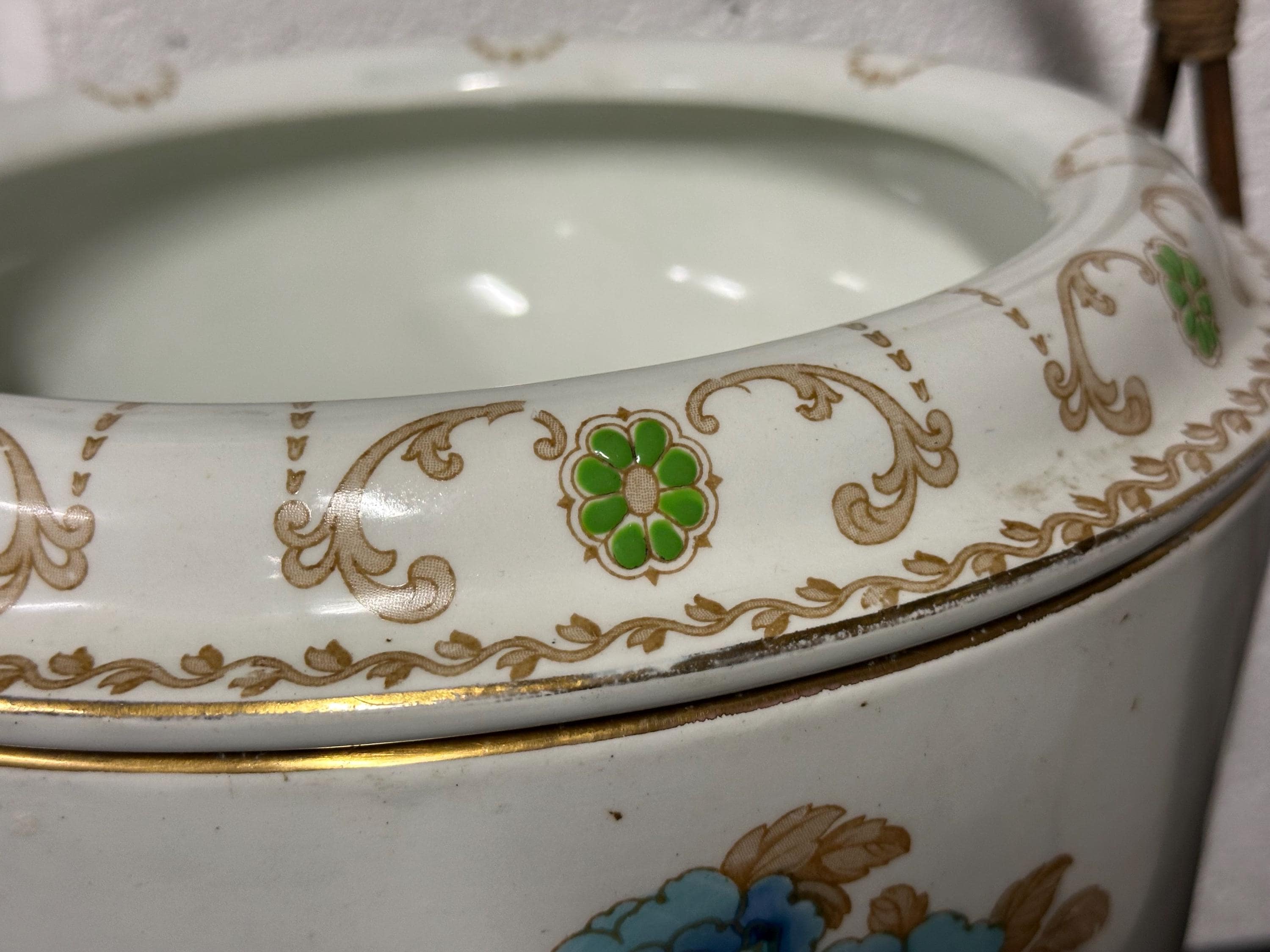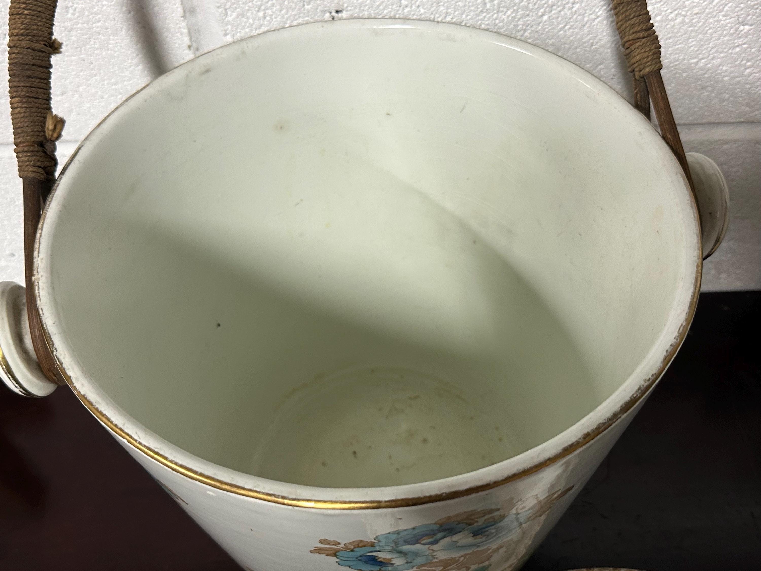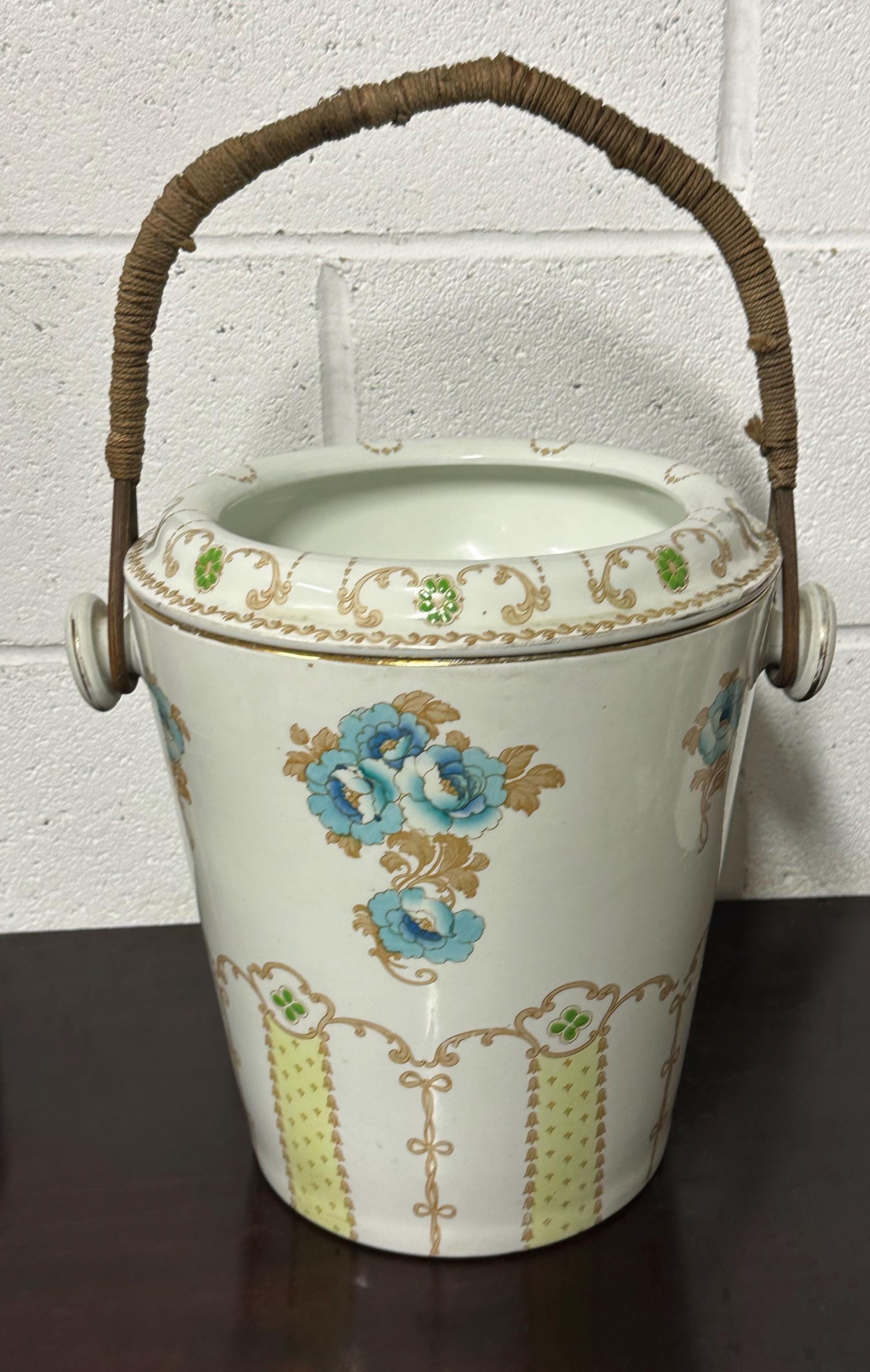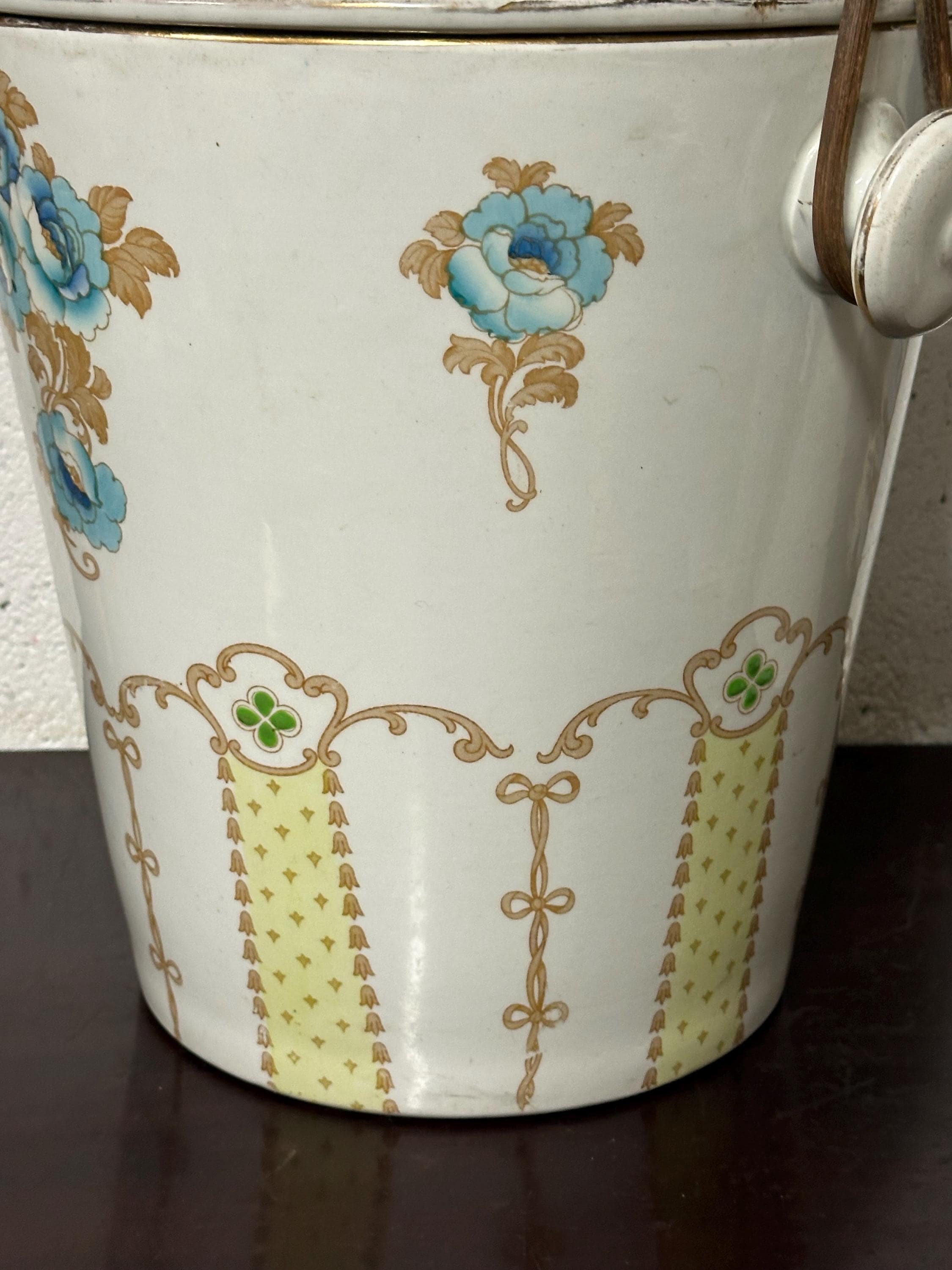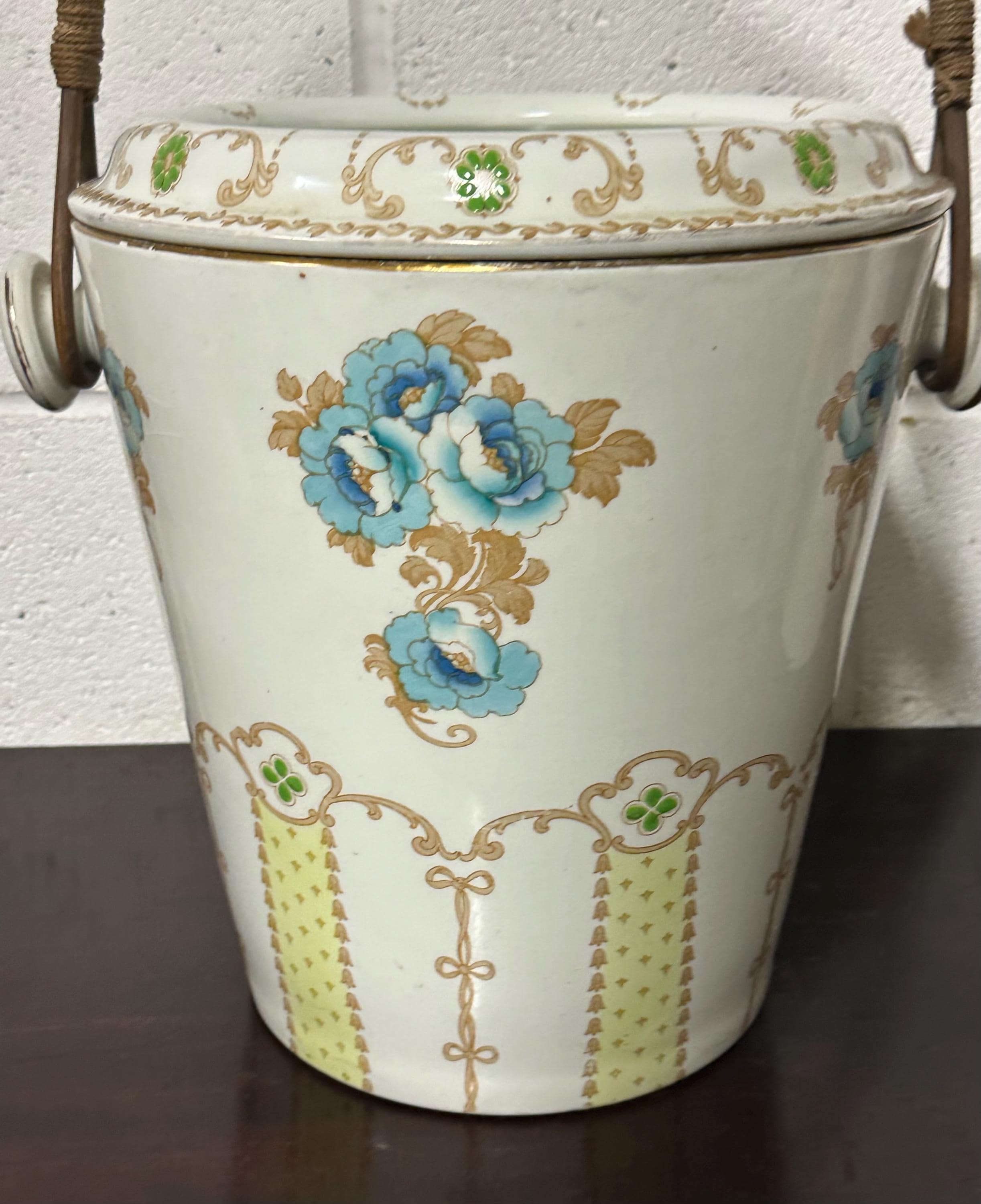 Victorian Late 19th Century Watts F W & Co Ceramic Slop Bucket Decorative Flowers & Bamboo Handle