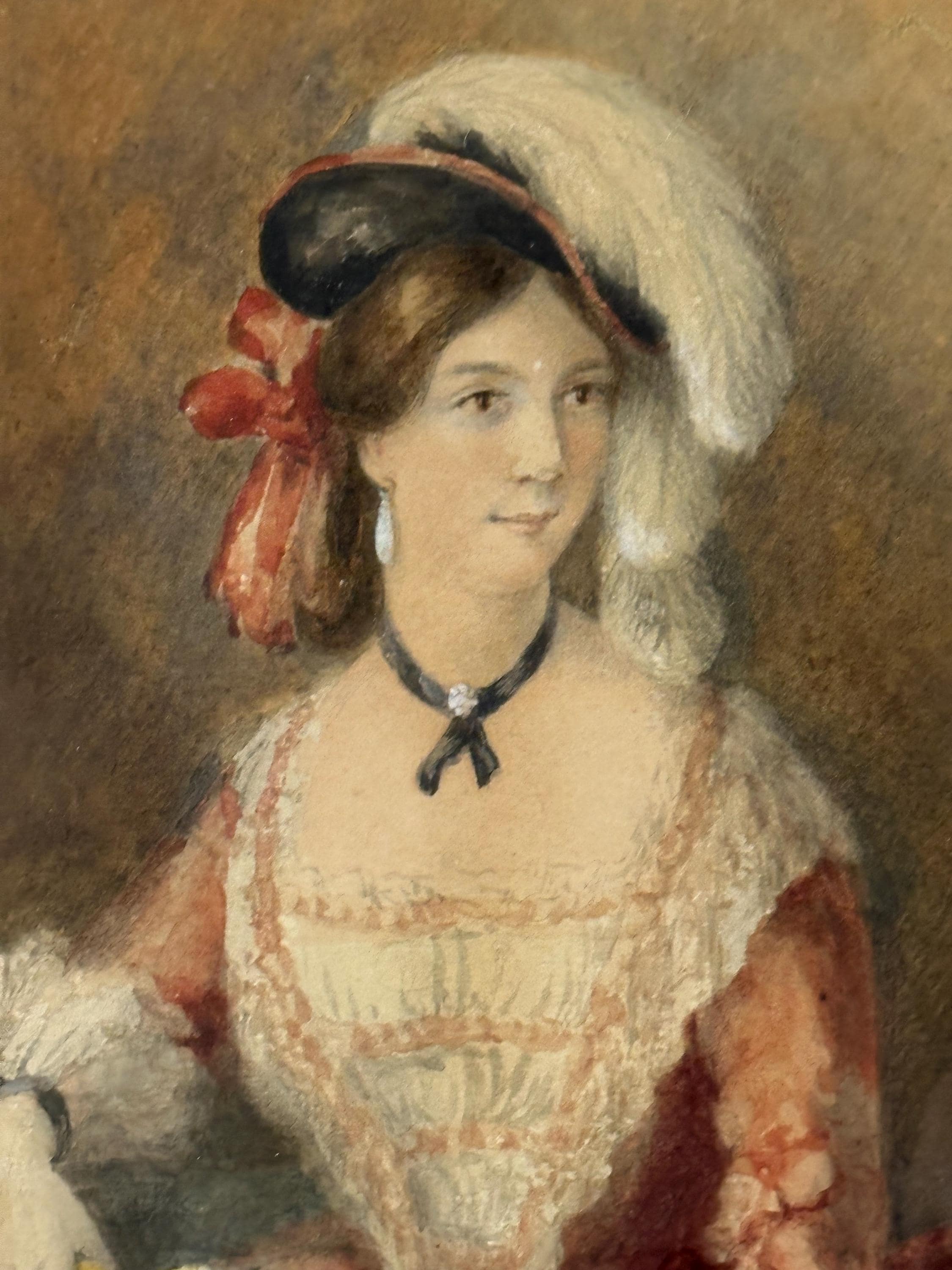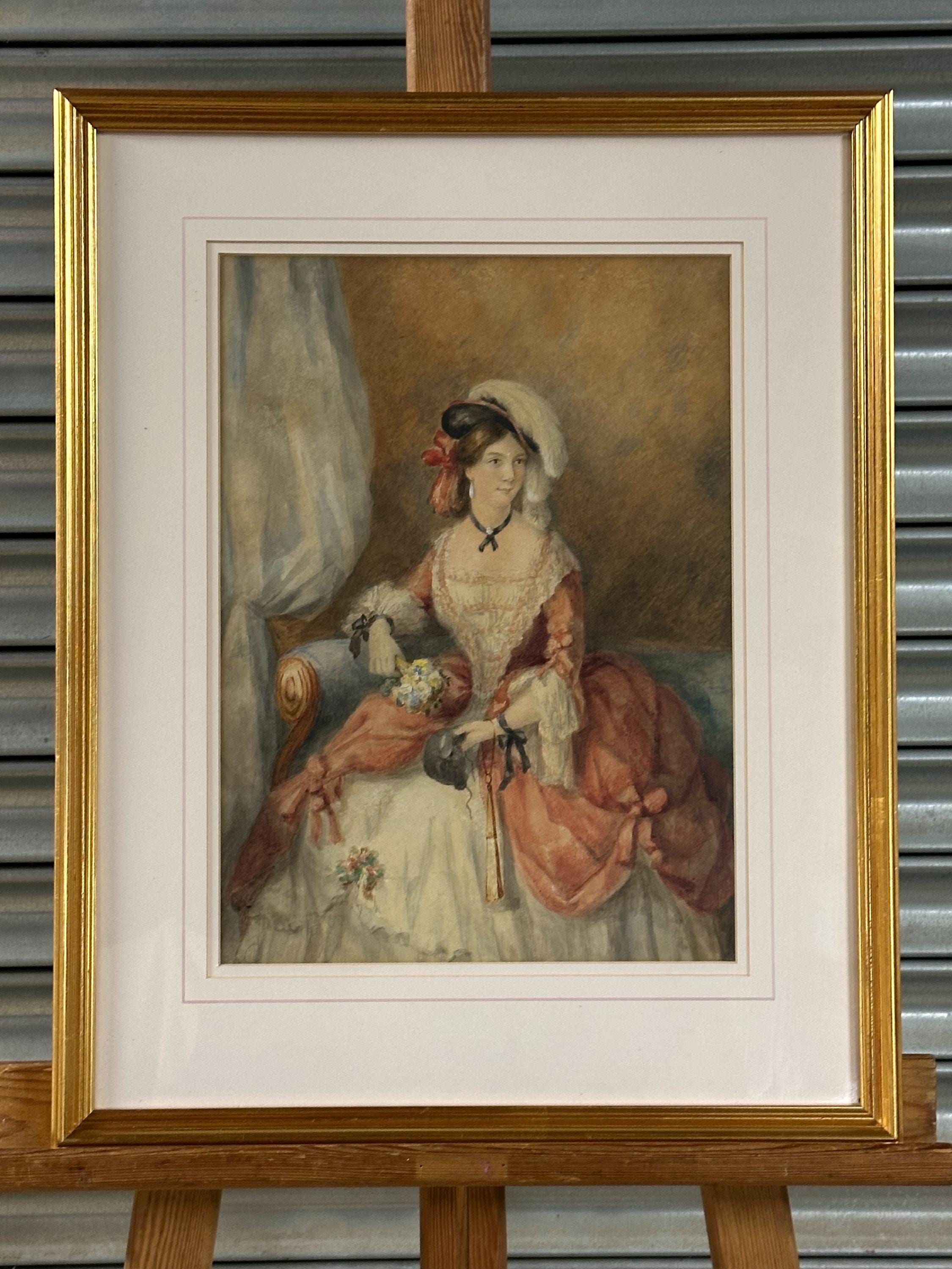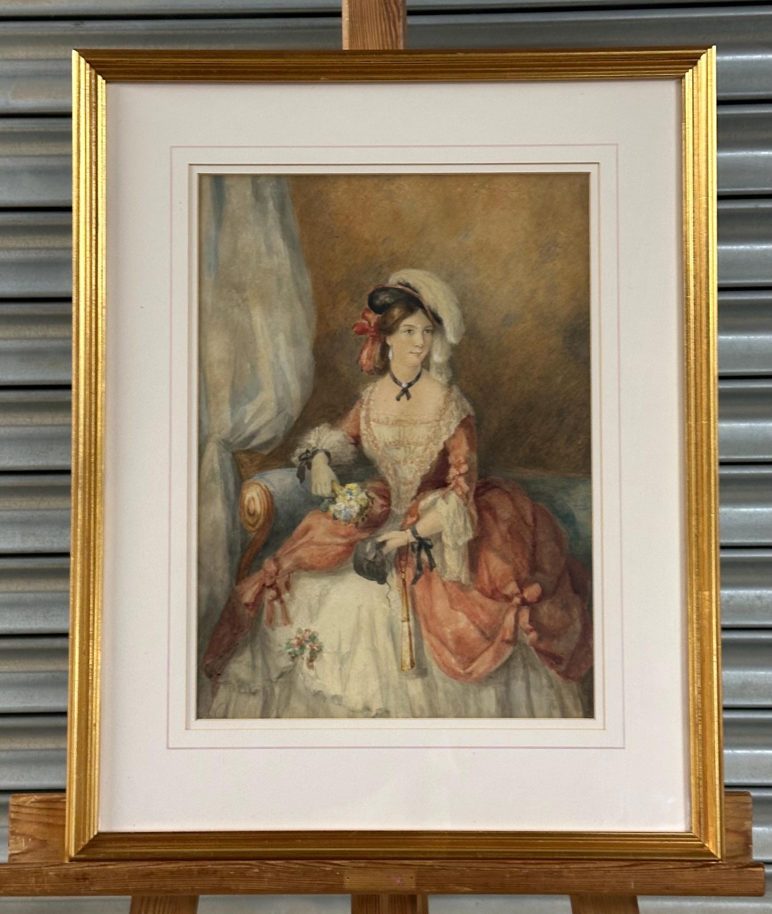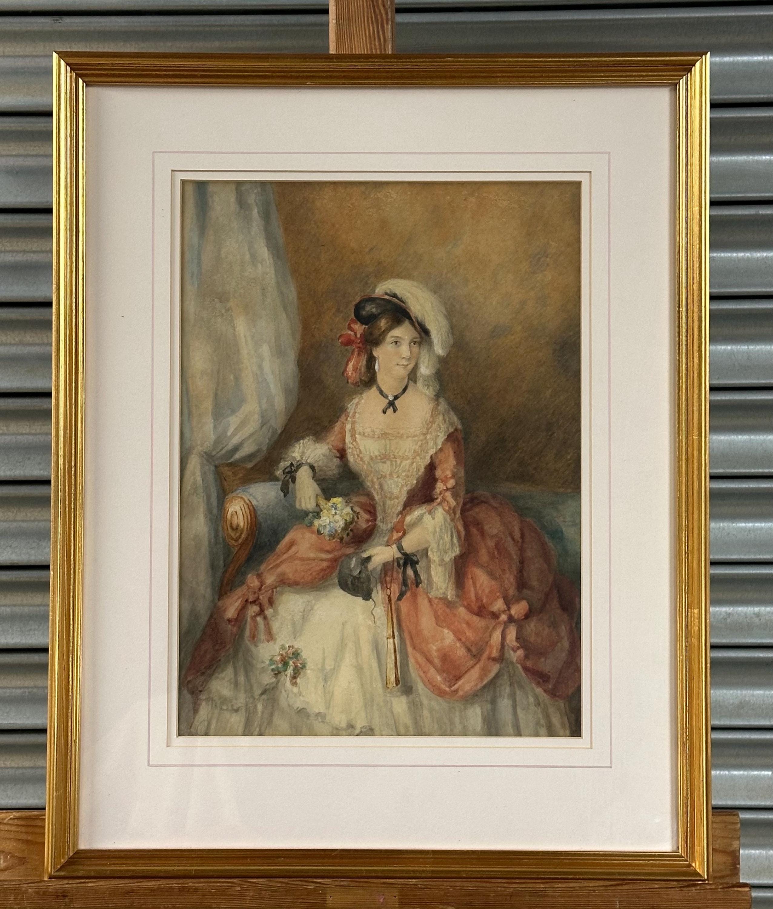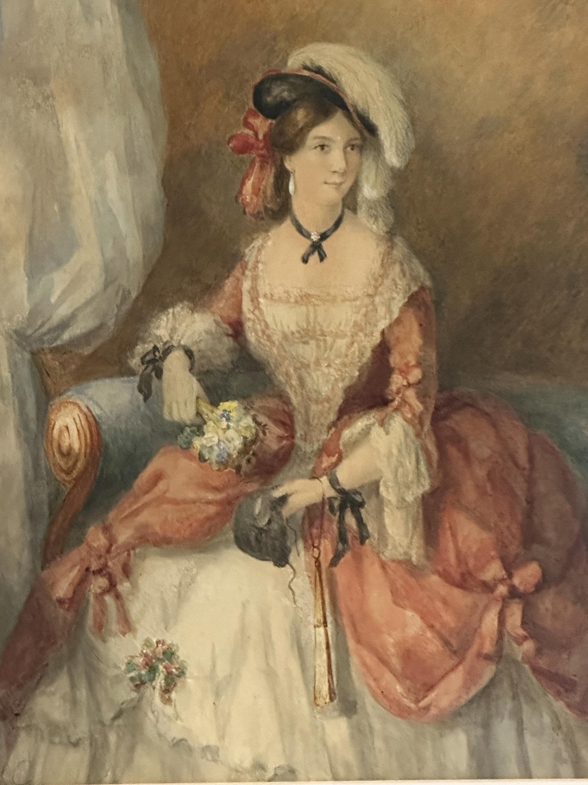 Exquisite Original Watercolour Portrait Of A 19th Century Dressed Lady - Unsigned