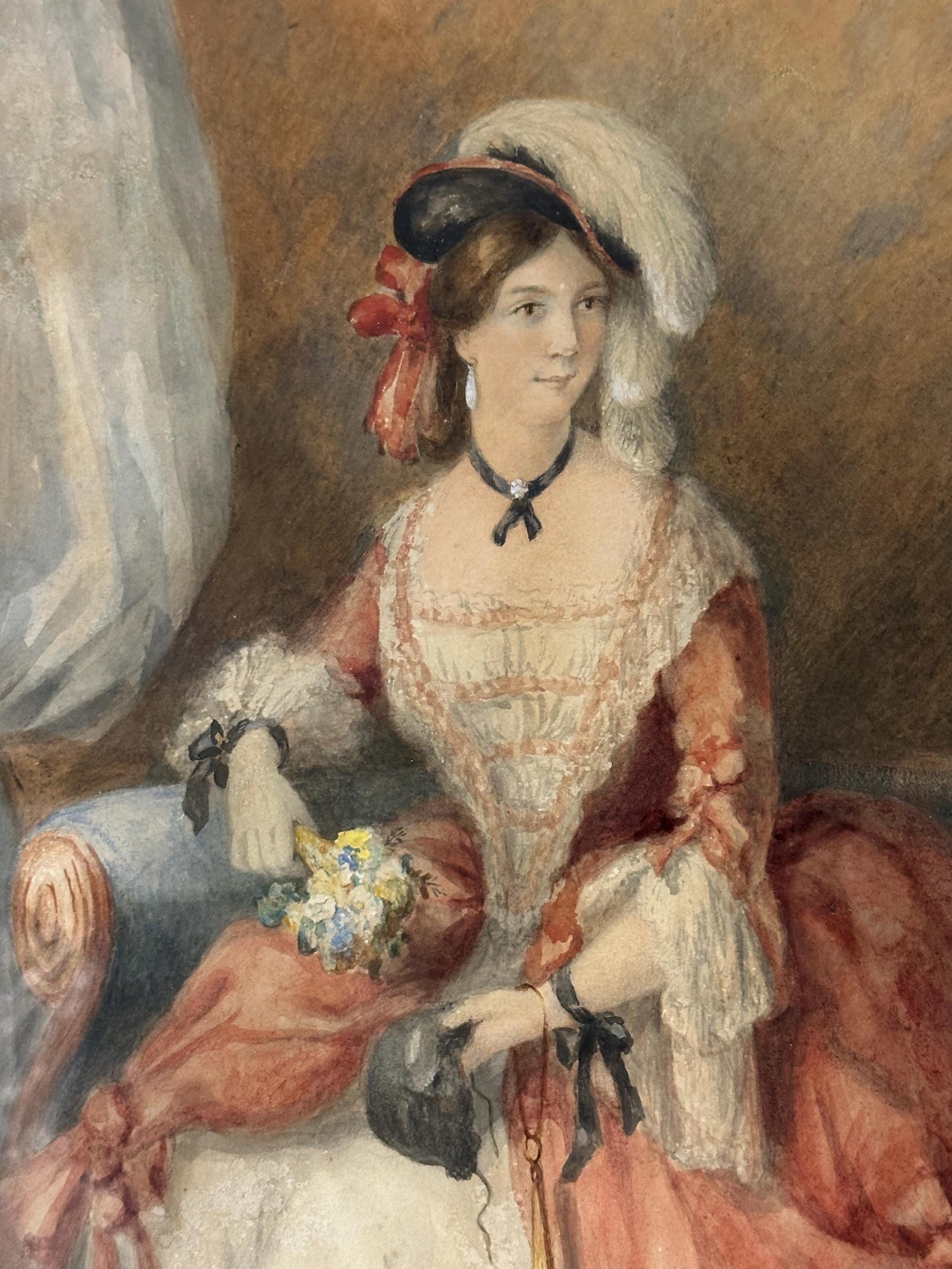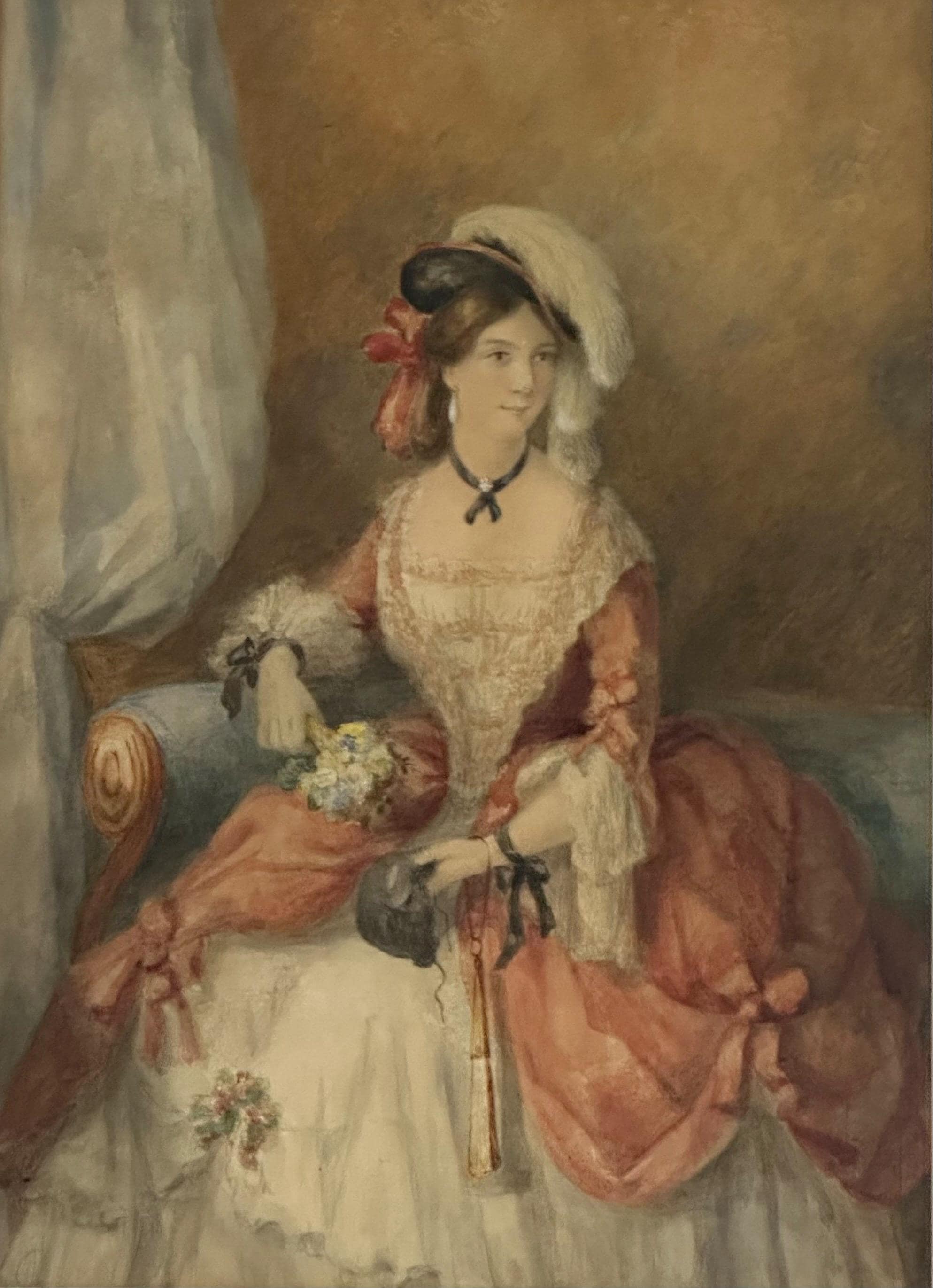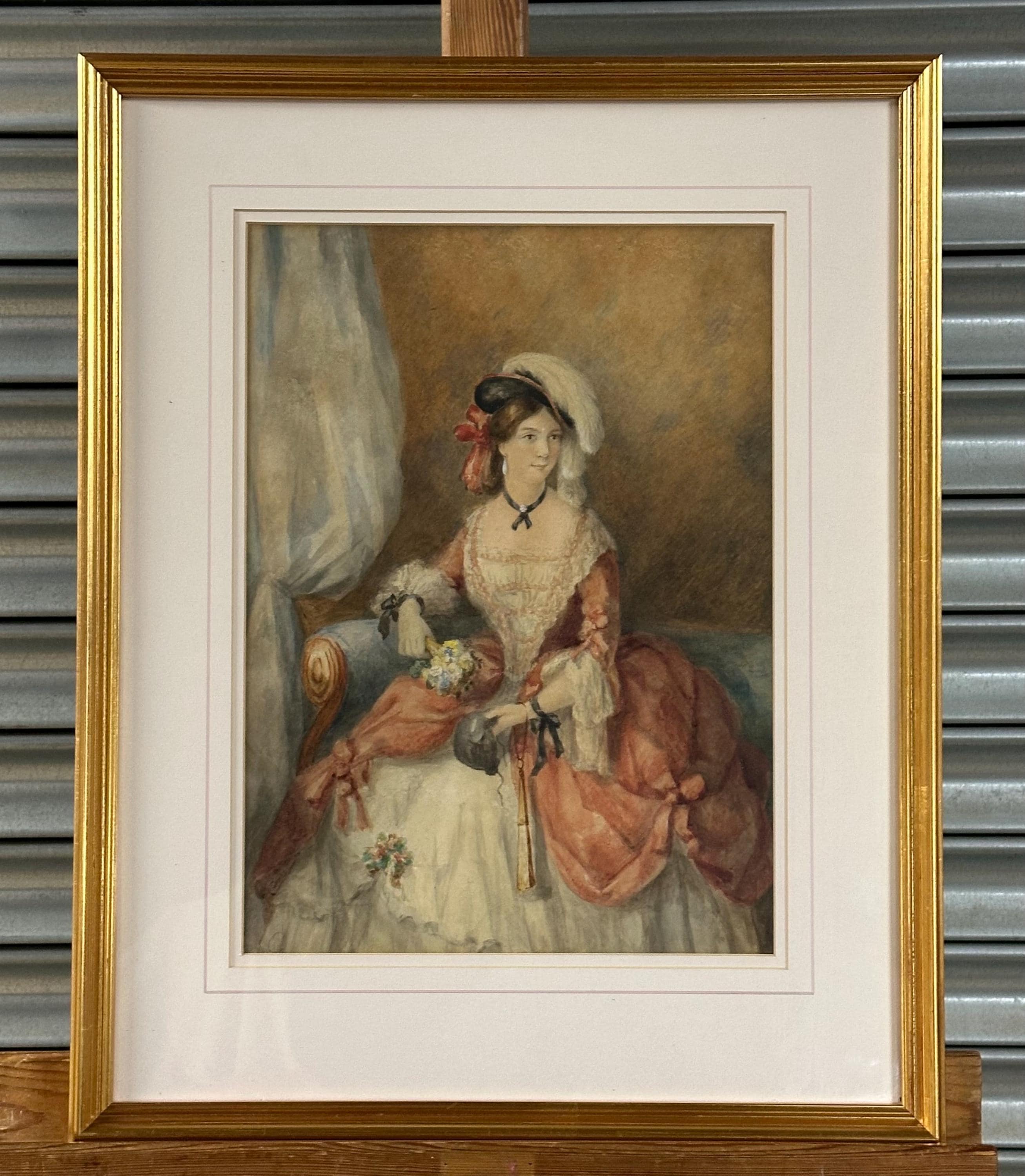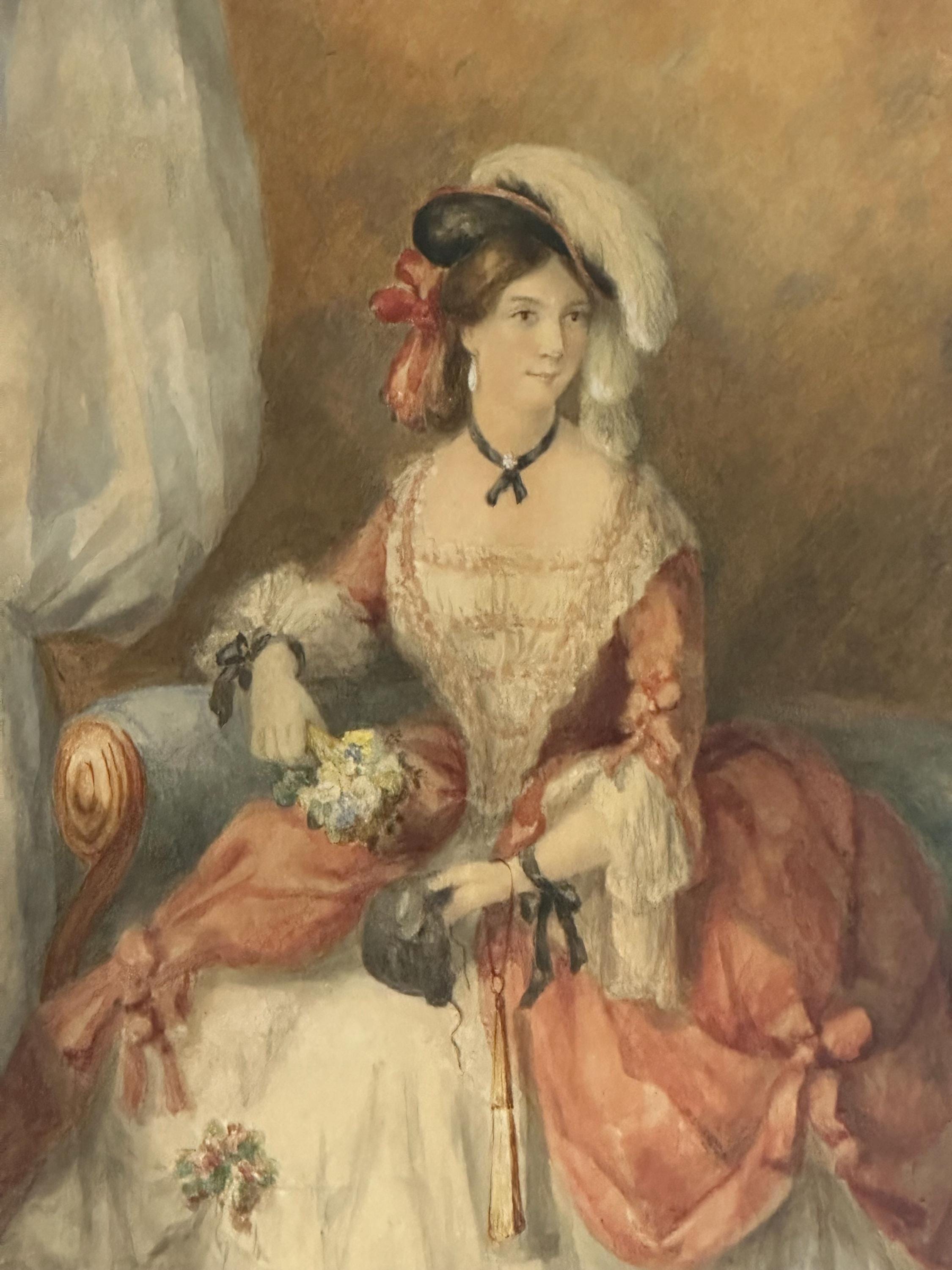 Exquisite Original Watercolour Portrait Of A 19th Century Dressed Lady - Unsigned