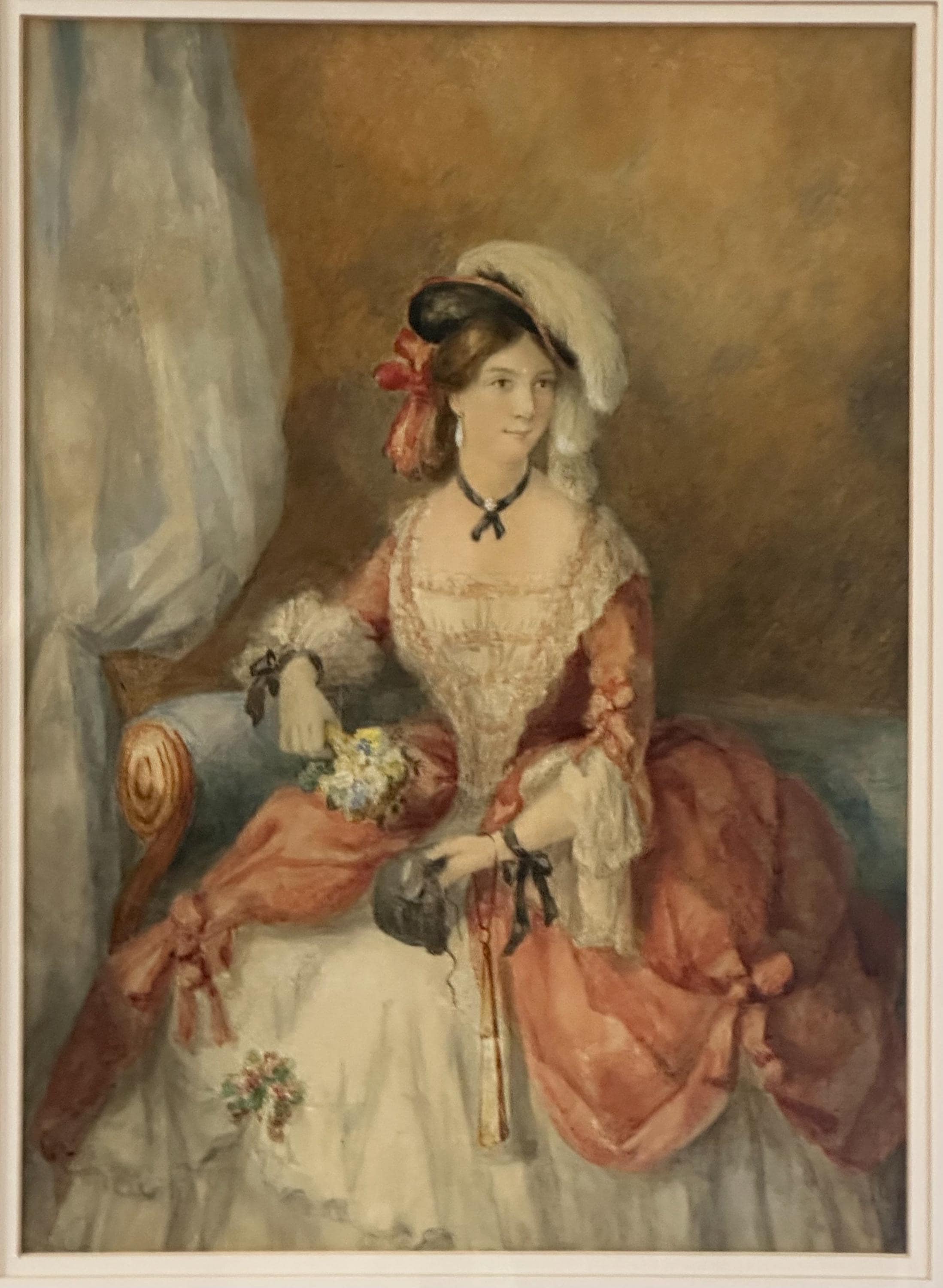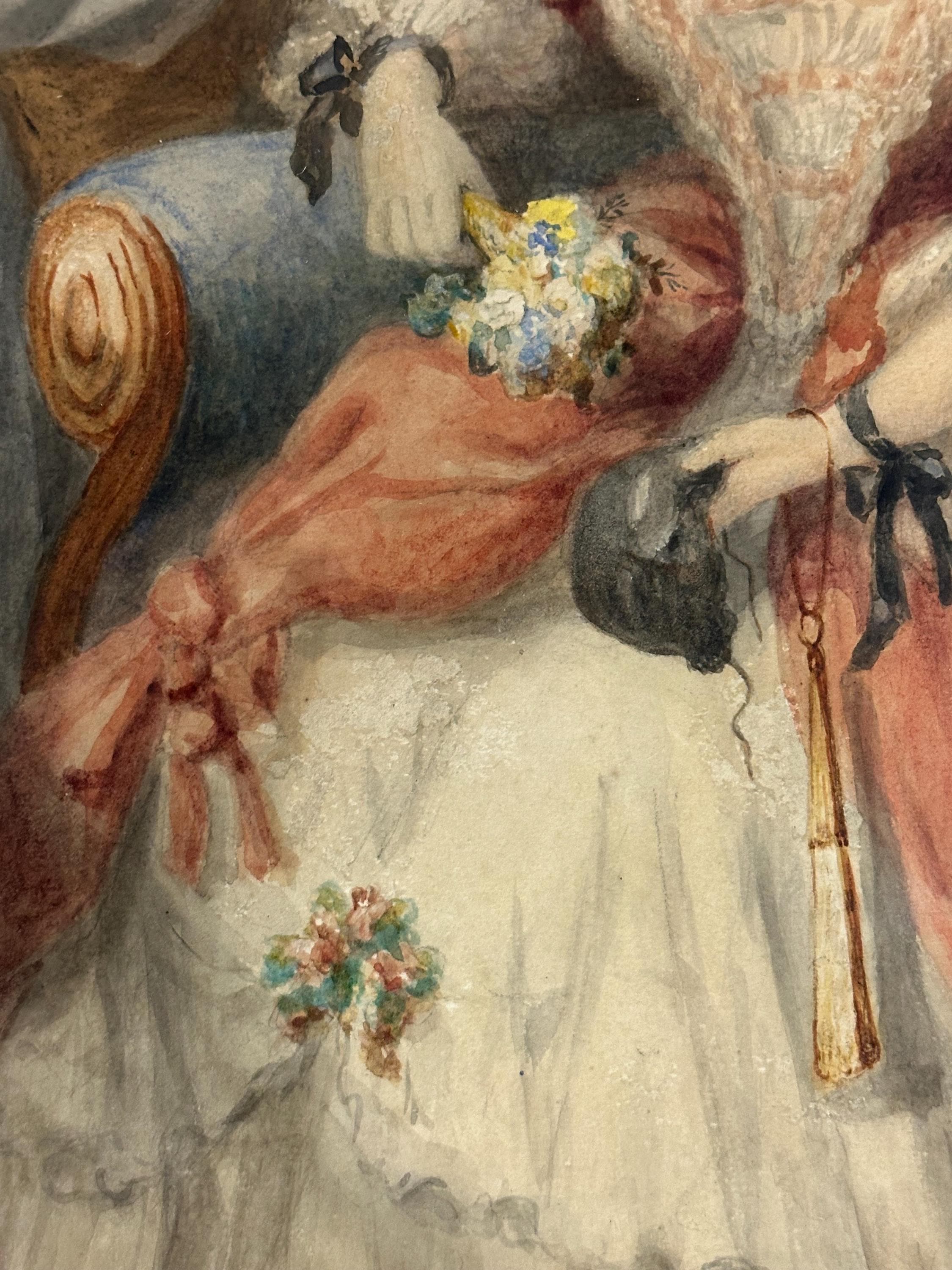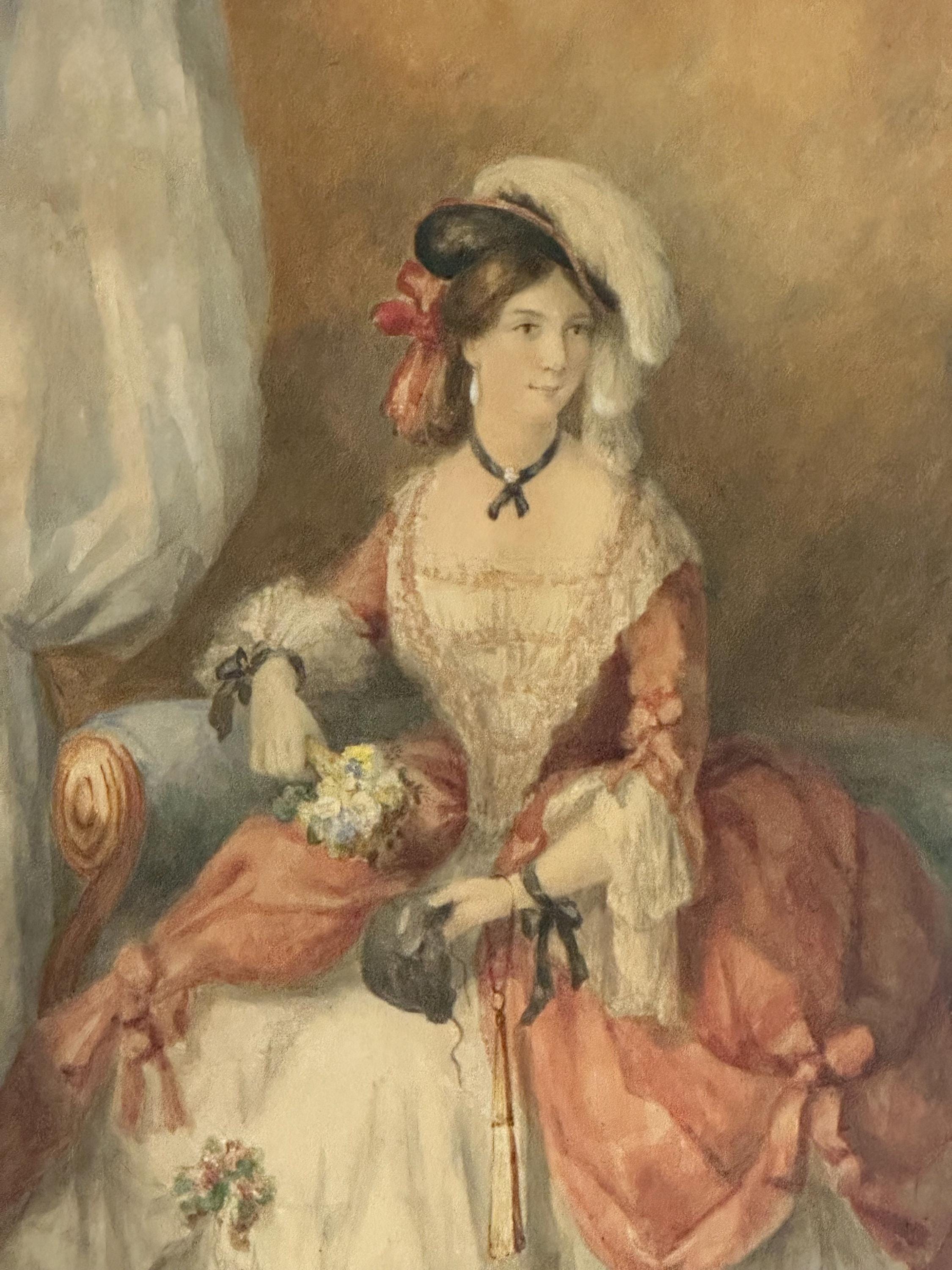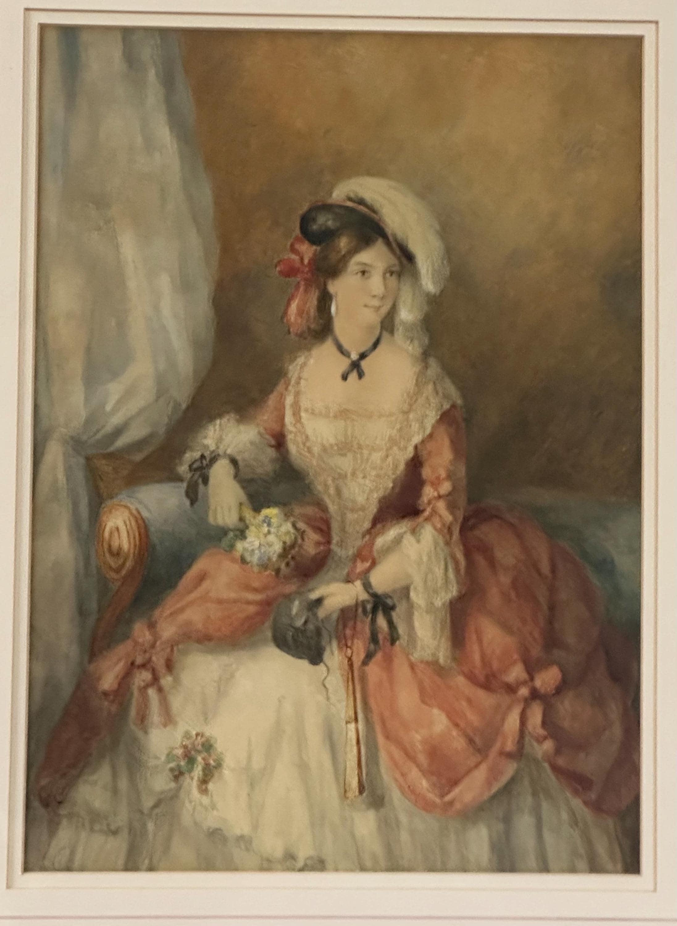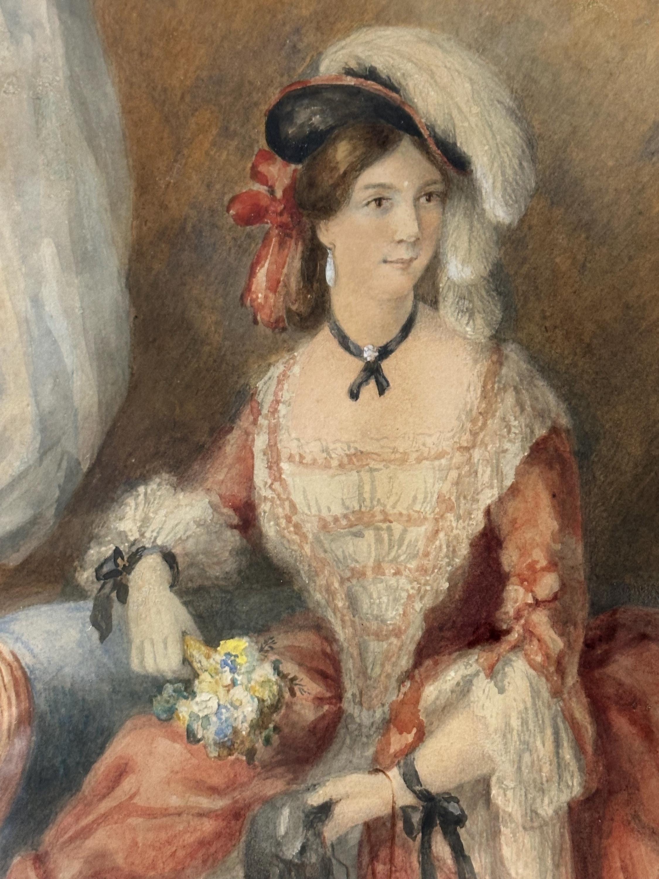 Exquisite Original Watercolour Portrait Of A 19th Century Dressed Lady - Unsigned