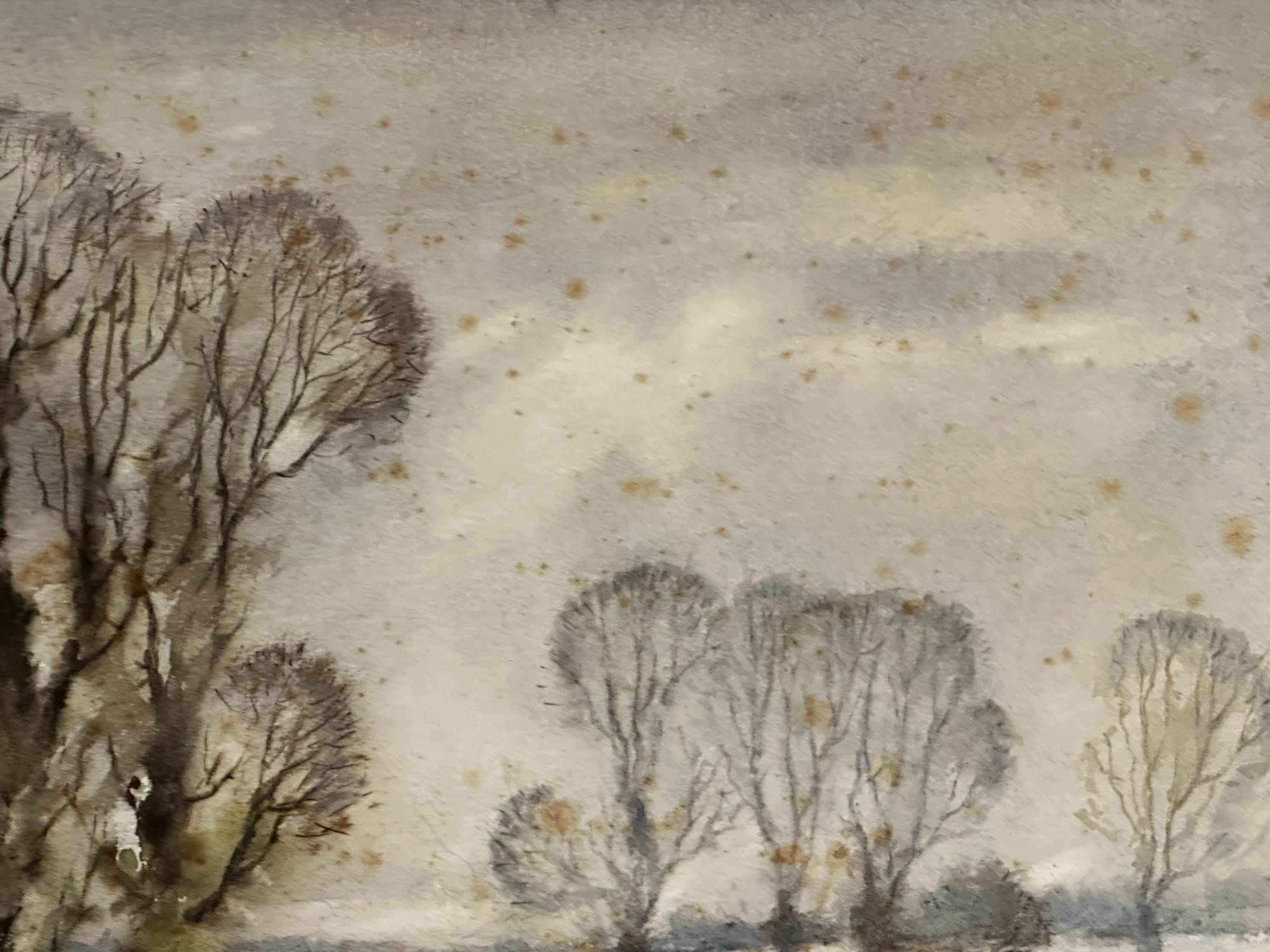 Condition: Both paintings show signs of age. The upper work has heavy foxing, while the lower piece shows lighter foxing and minor spotting, as shown in the photos.