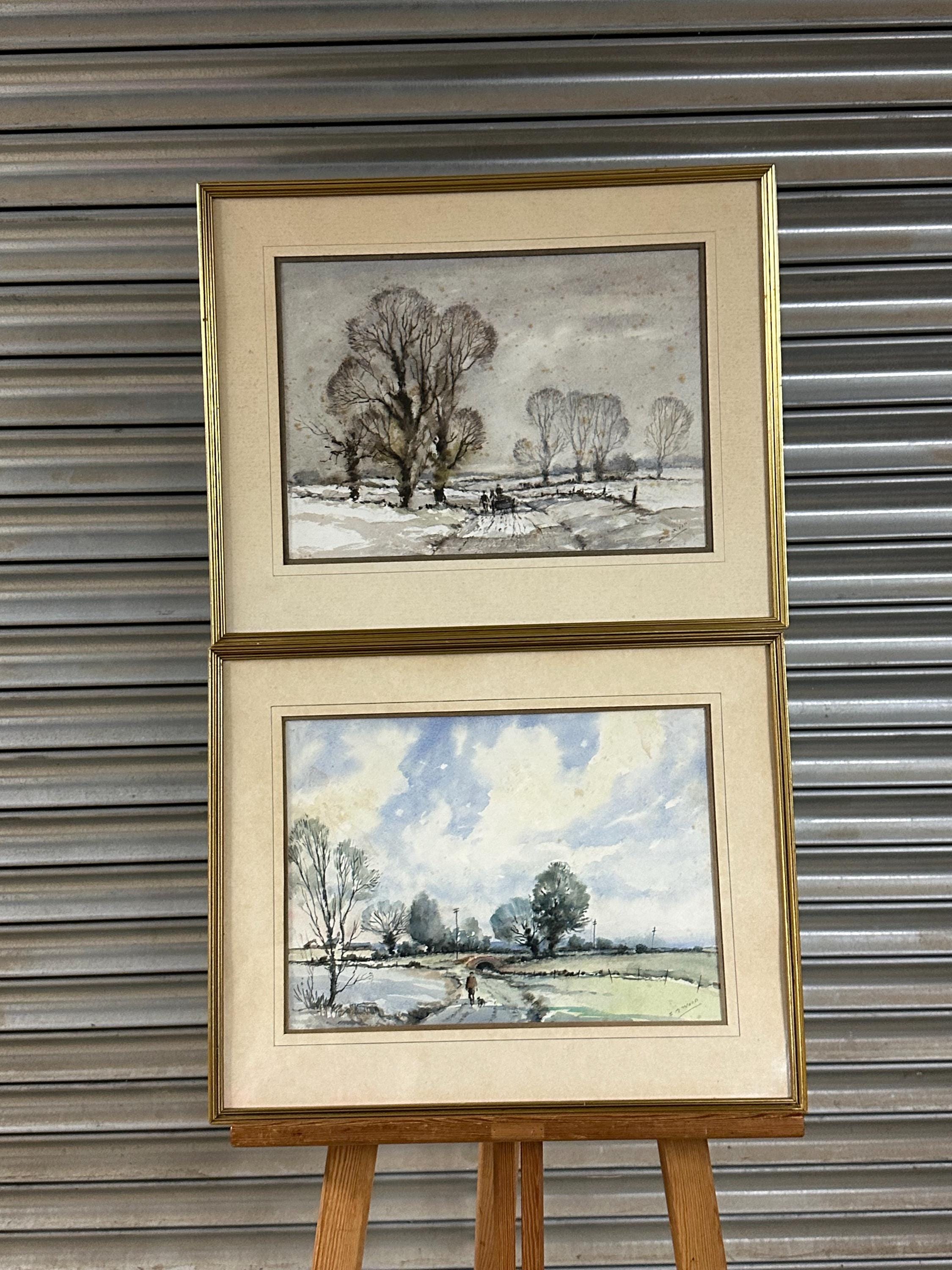 A charming pair of original watercolours by listed British artist Edward G. Wood, beautifully capturing quiet rural scenes of Bedfordshire.