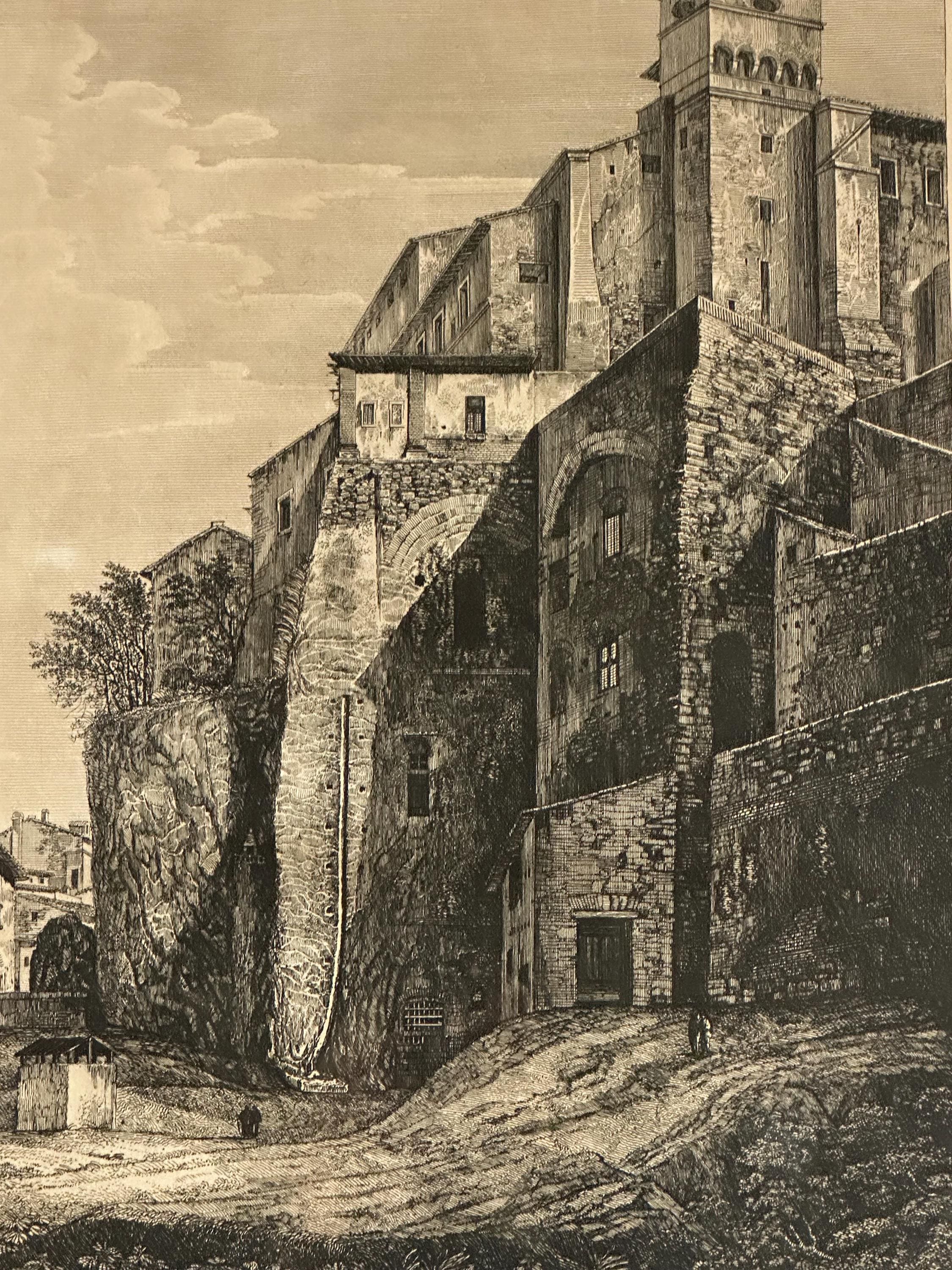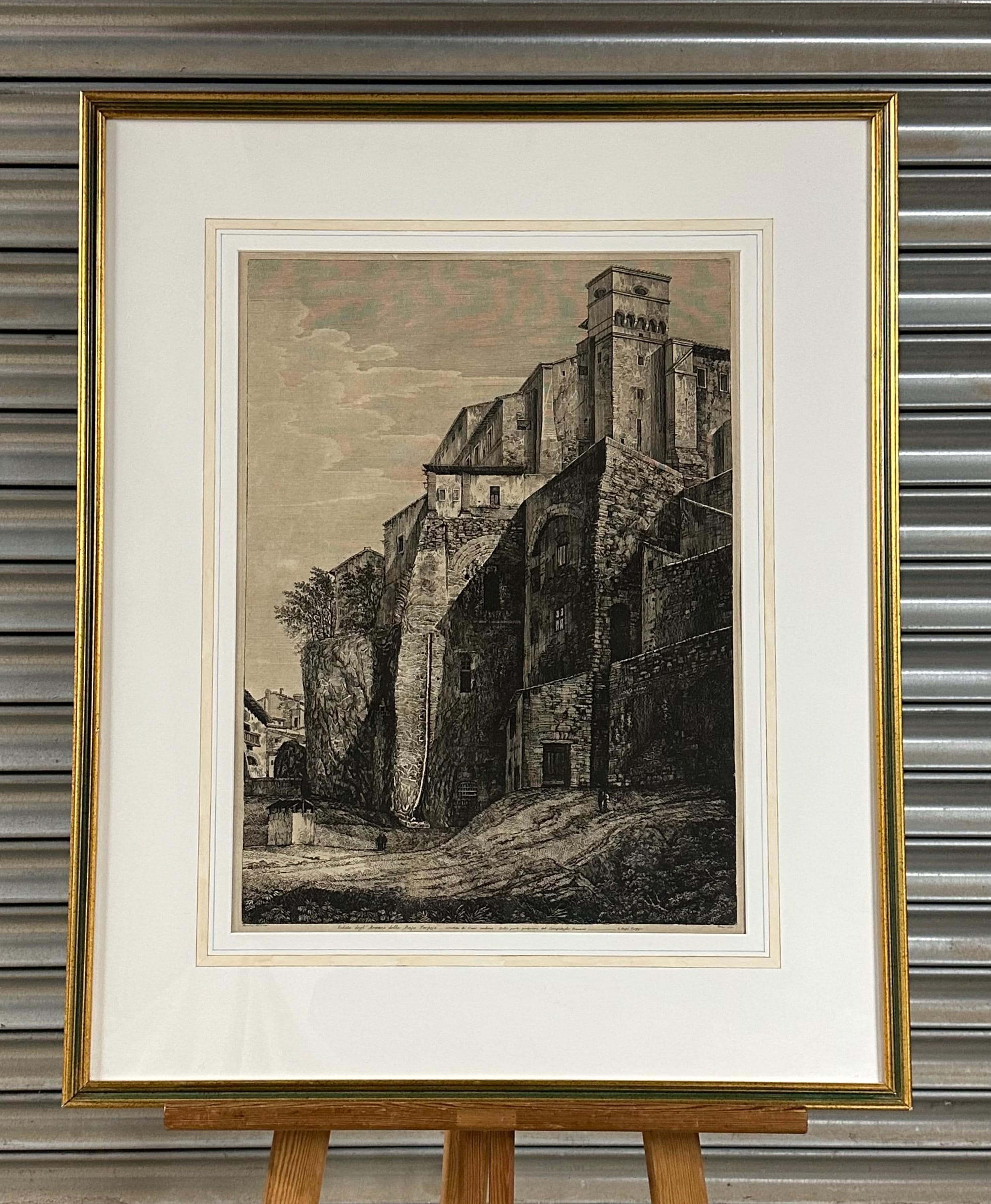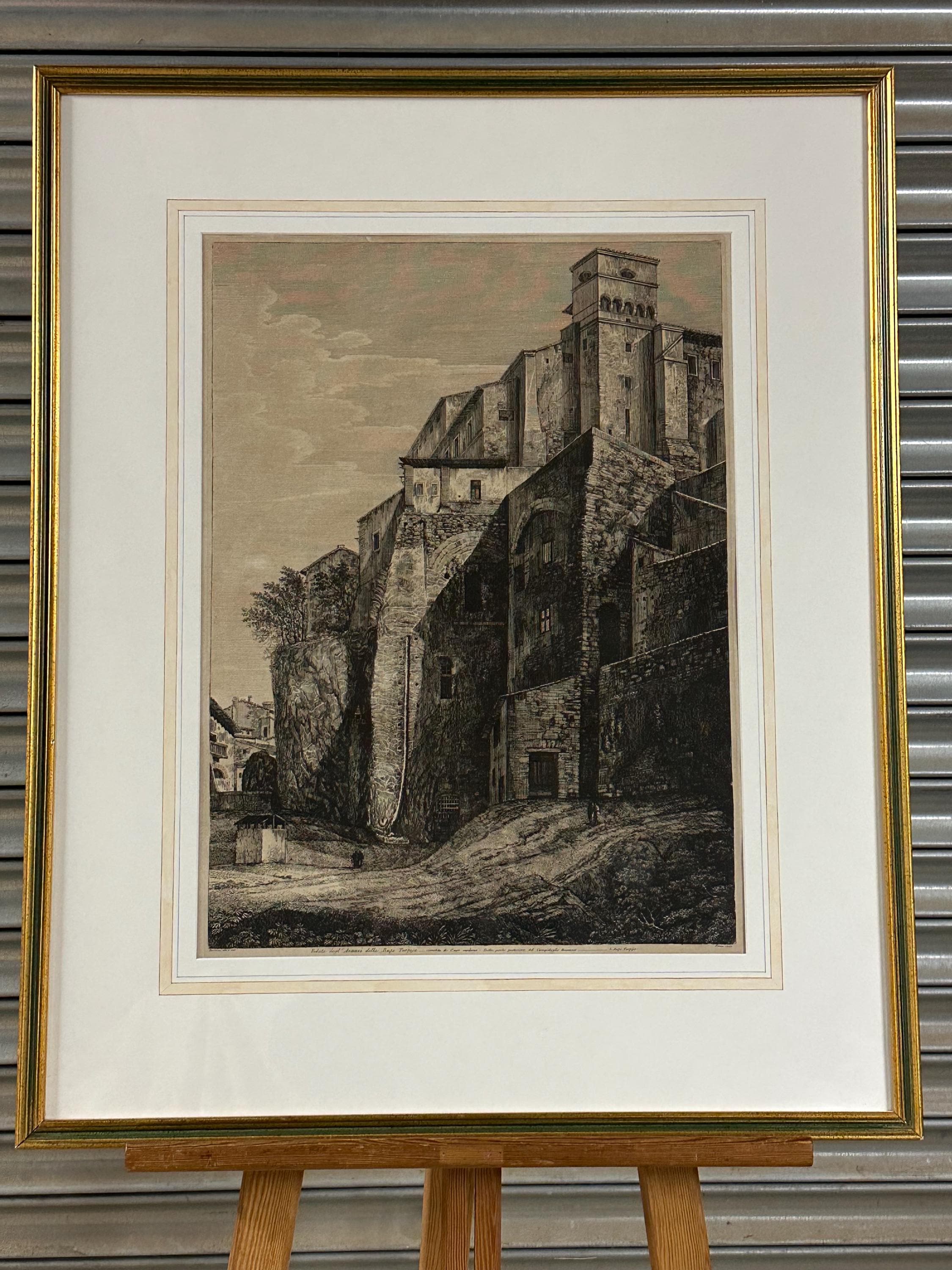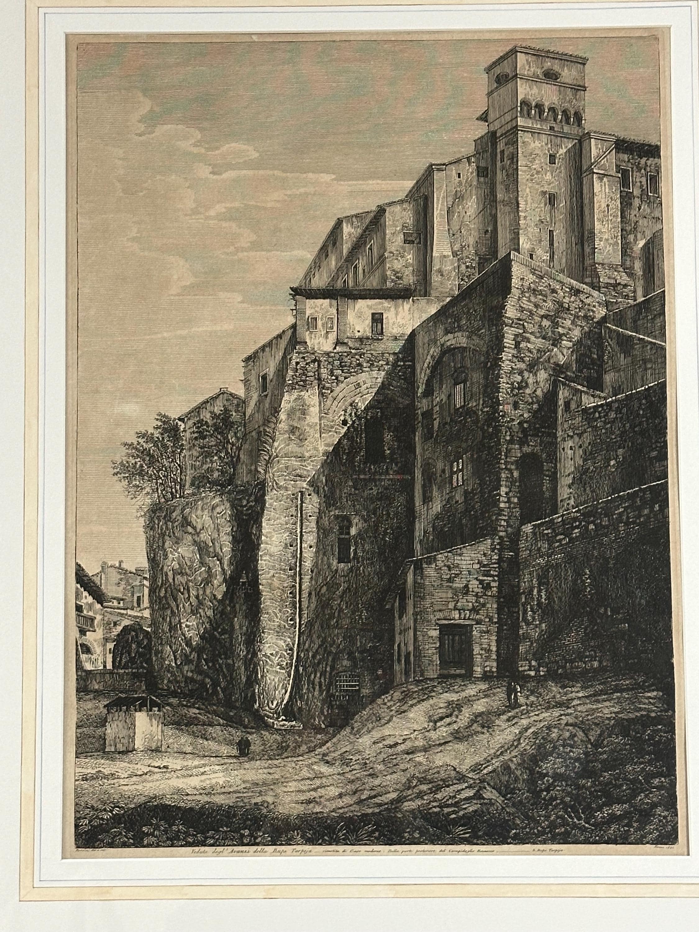 Large Engraving View Of The Remains Of Rupe Tarpea, Rome By Luigi Rossini 1822