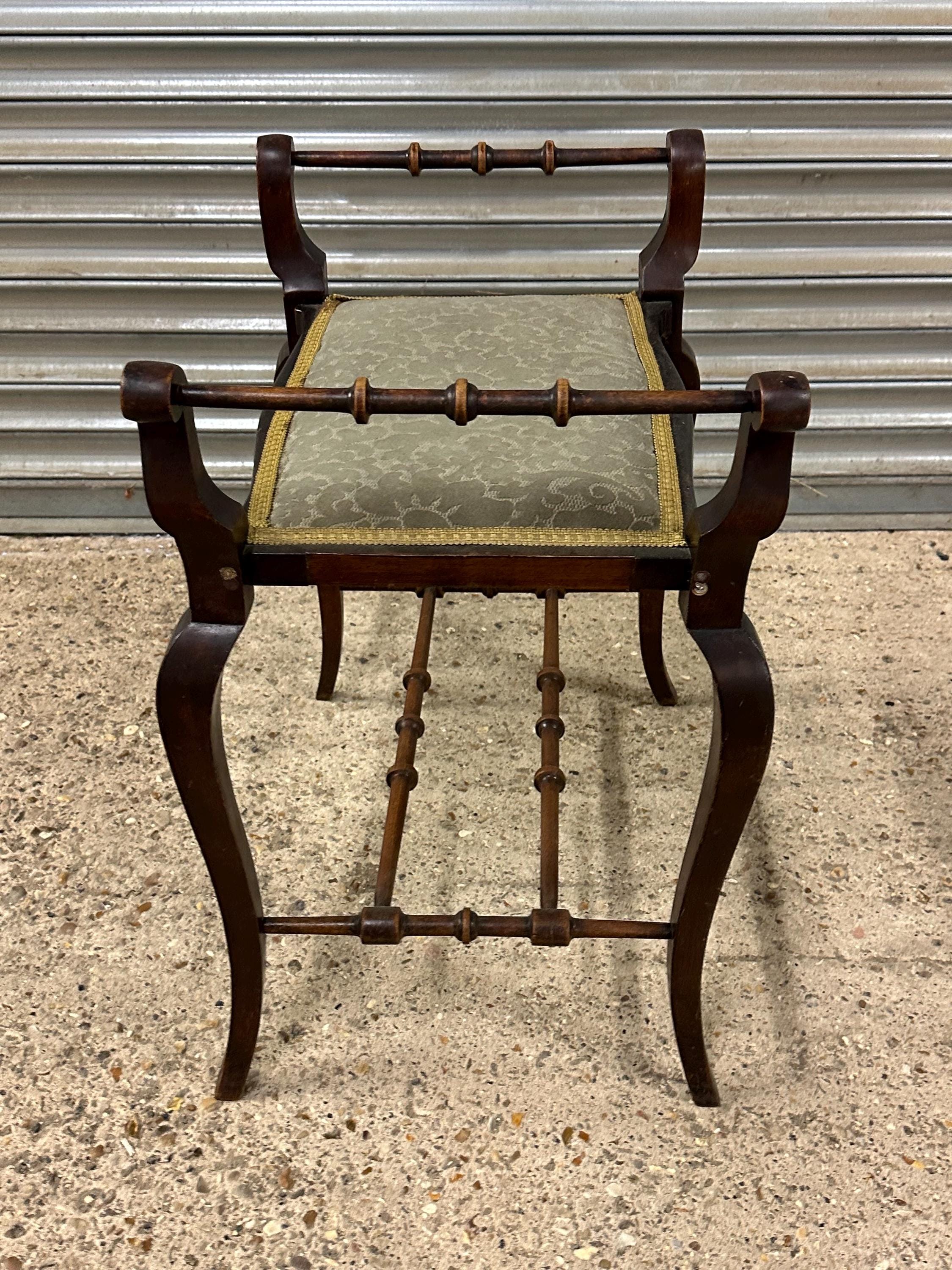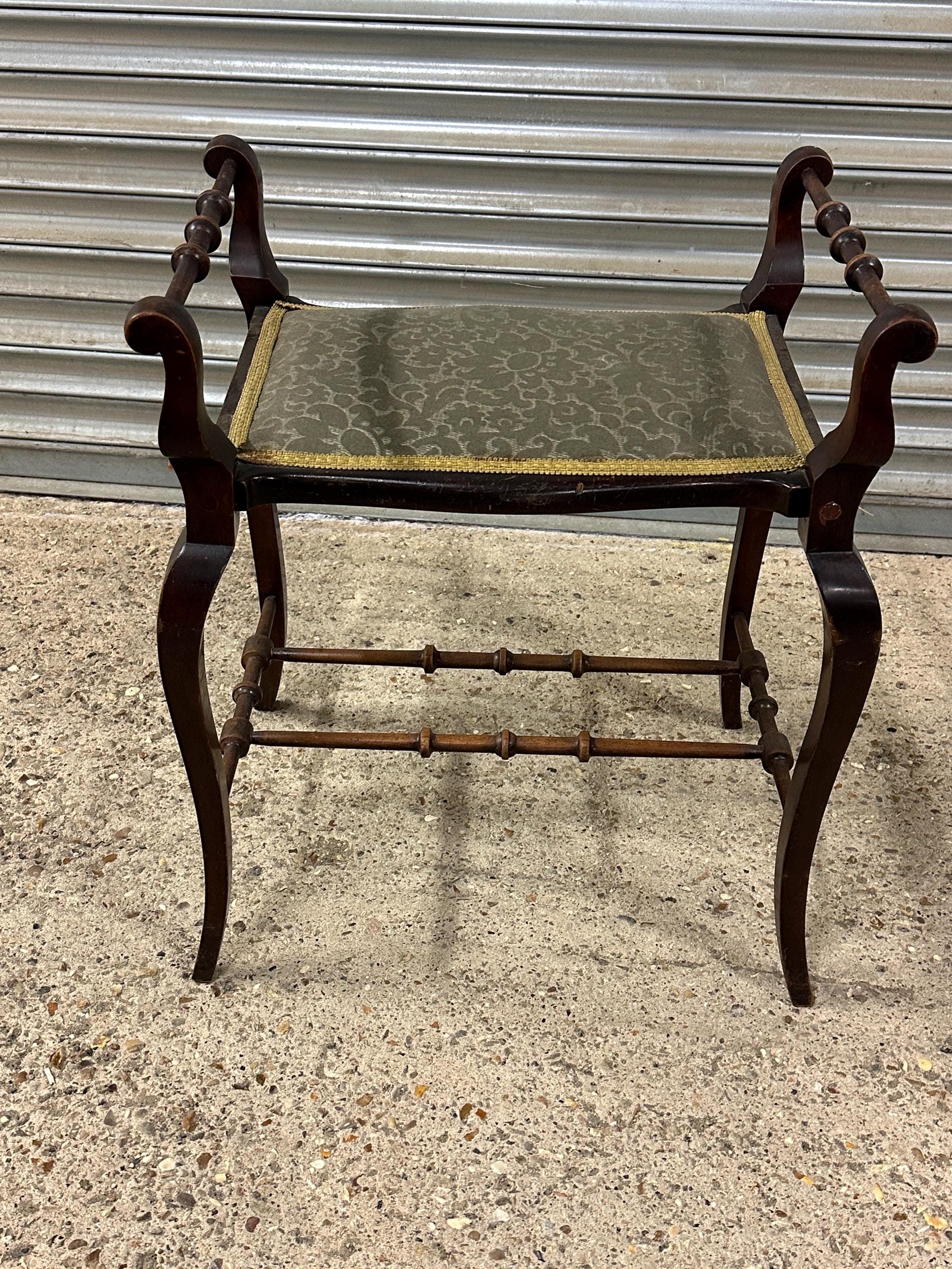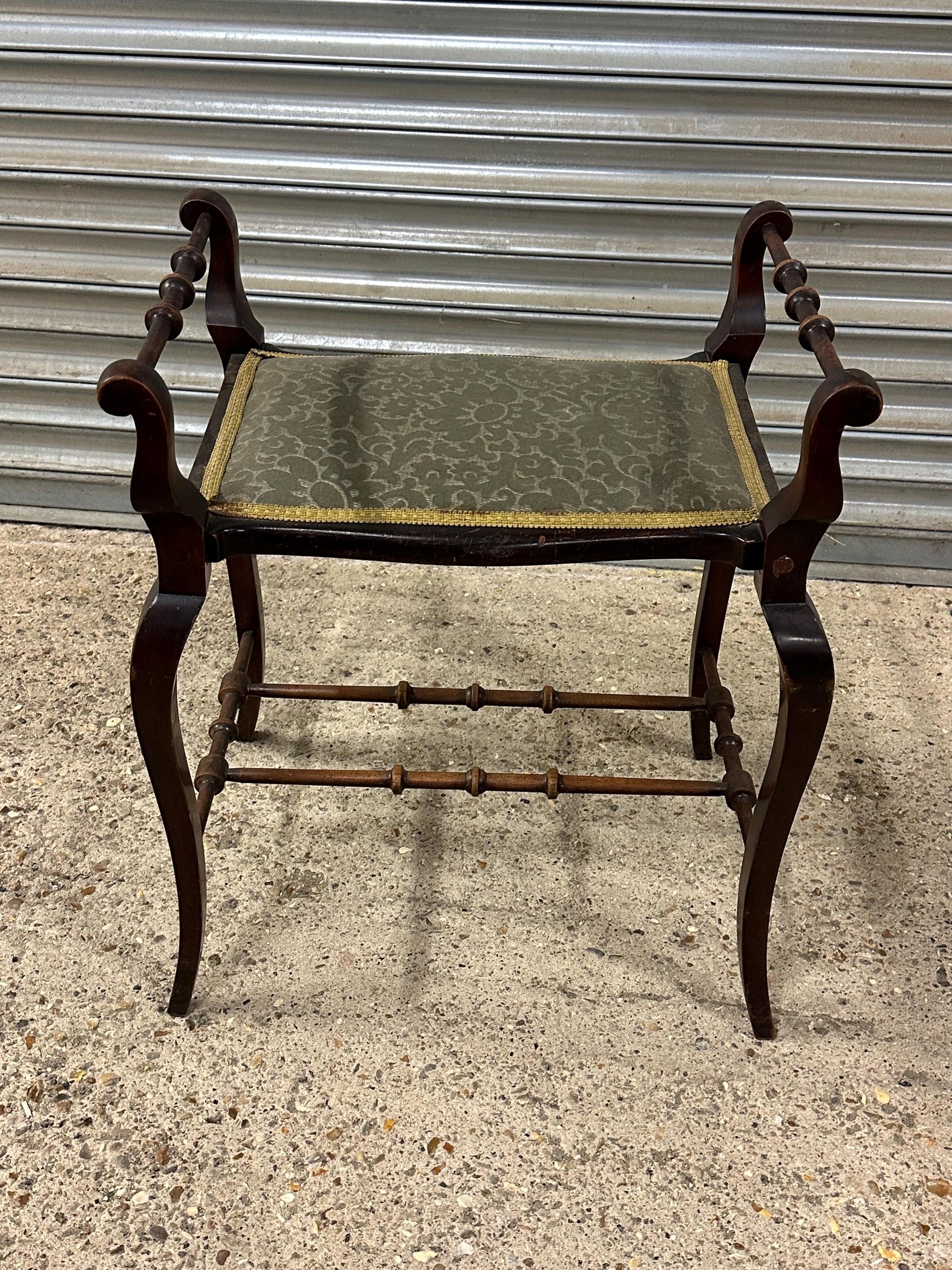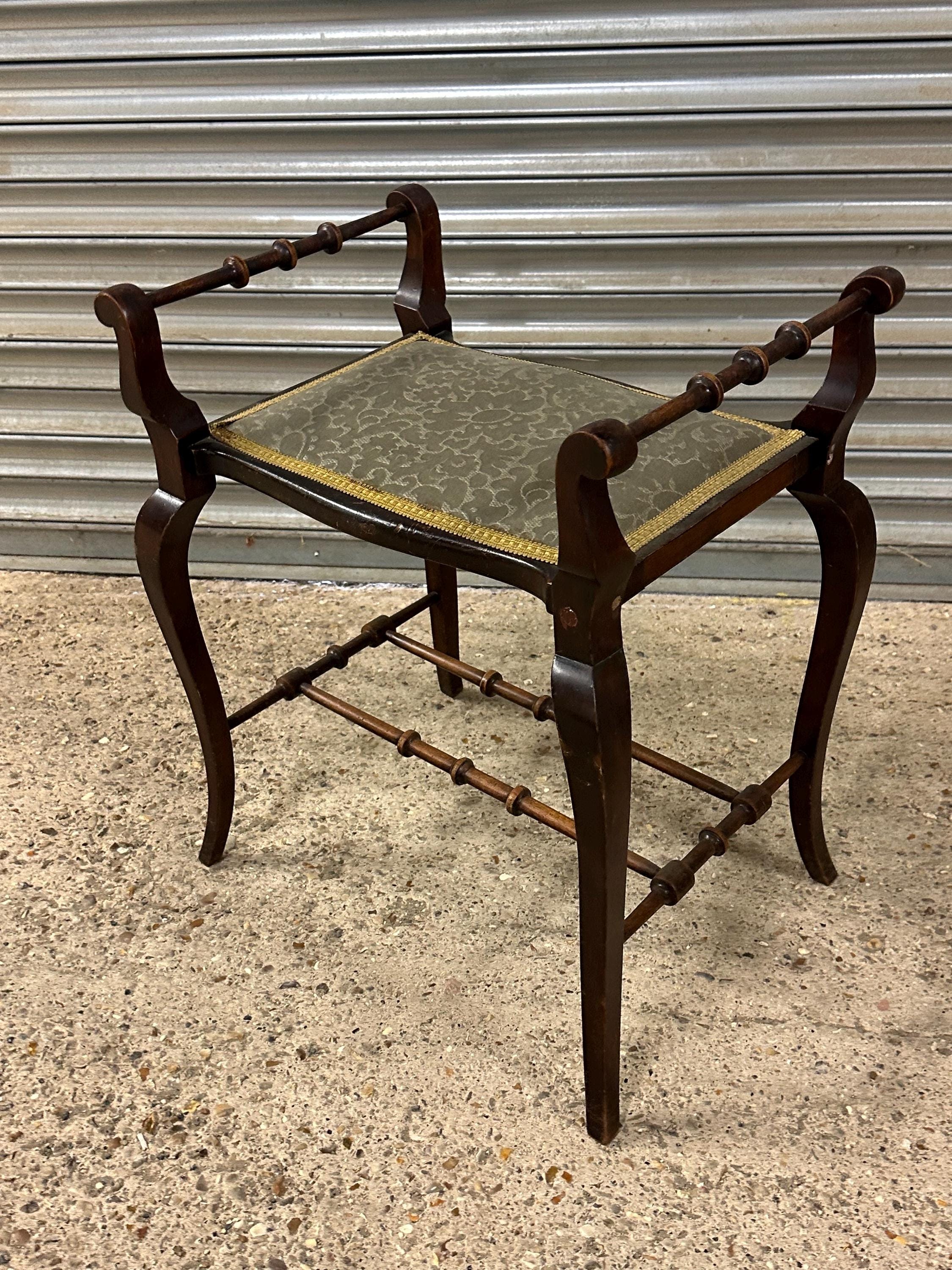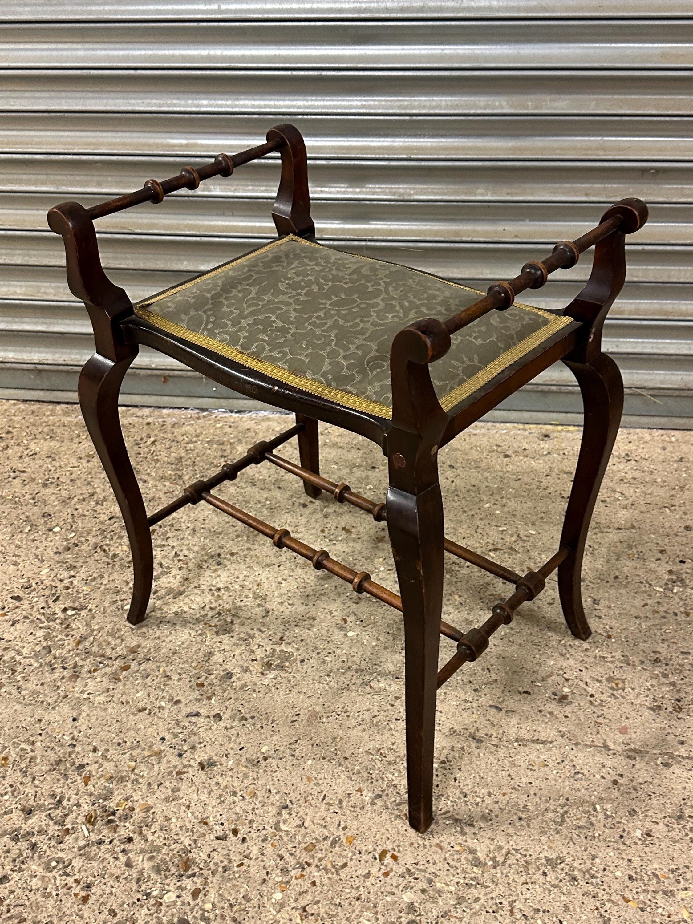 Antique Mahogany Georgian Piano Dressing Stool Cabriole Legs Fabric Seat