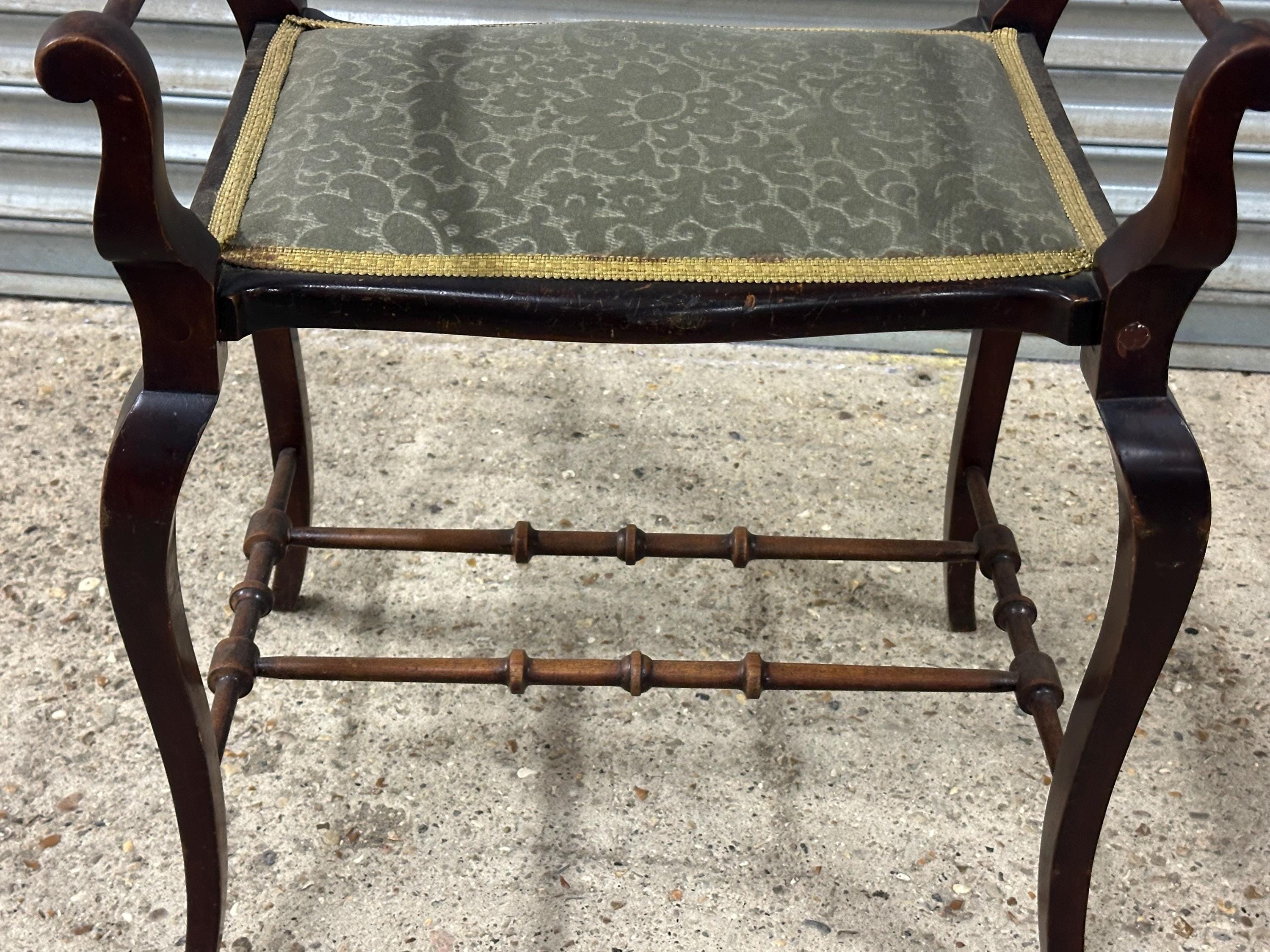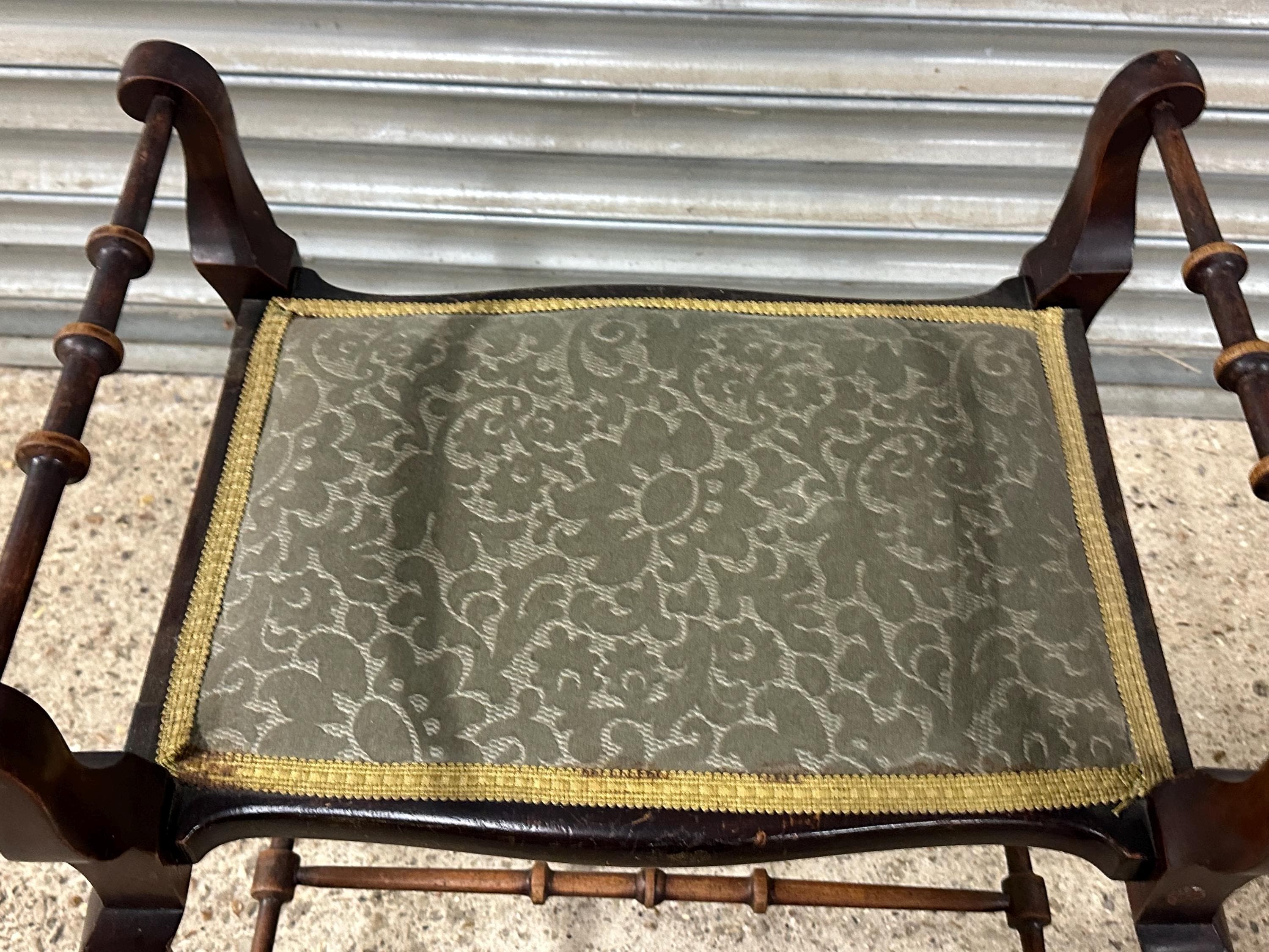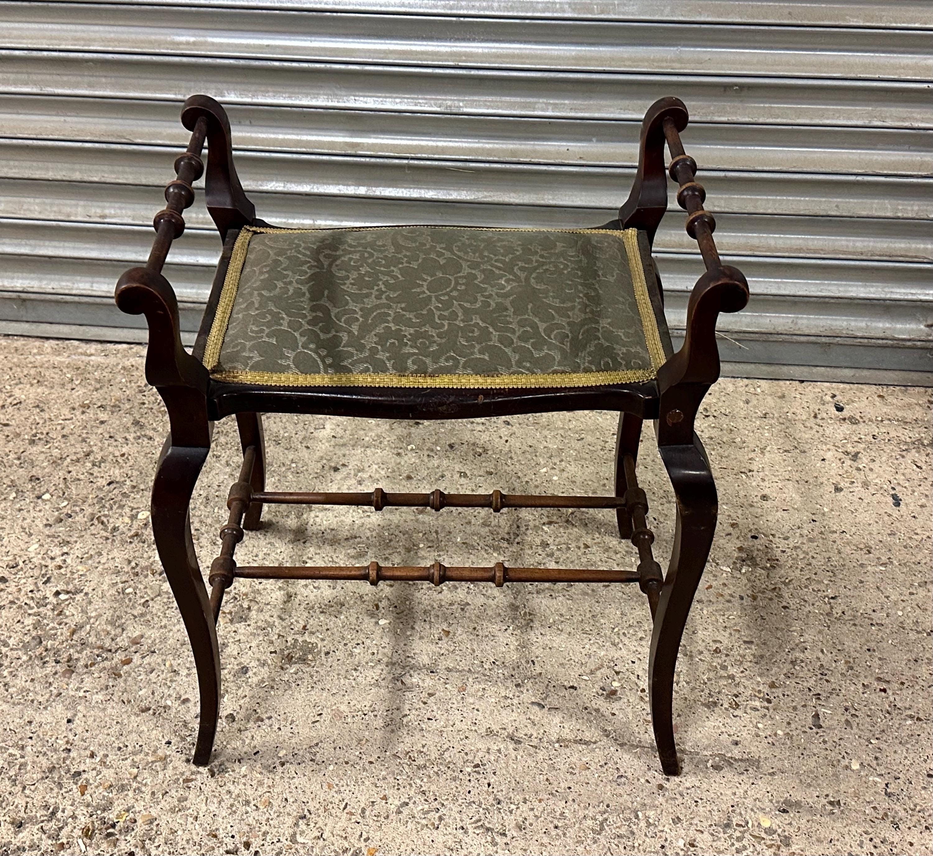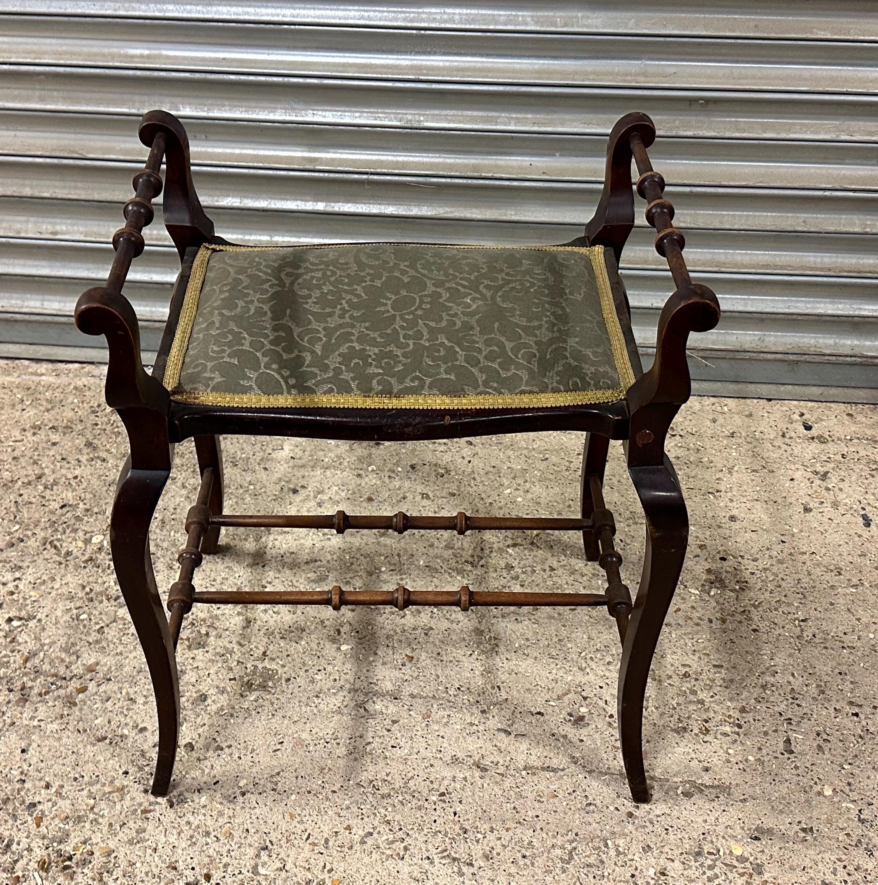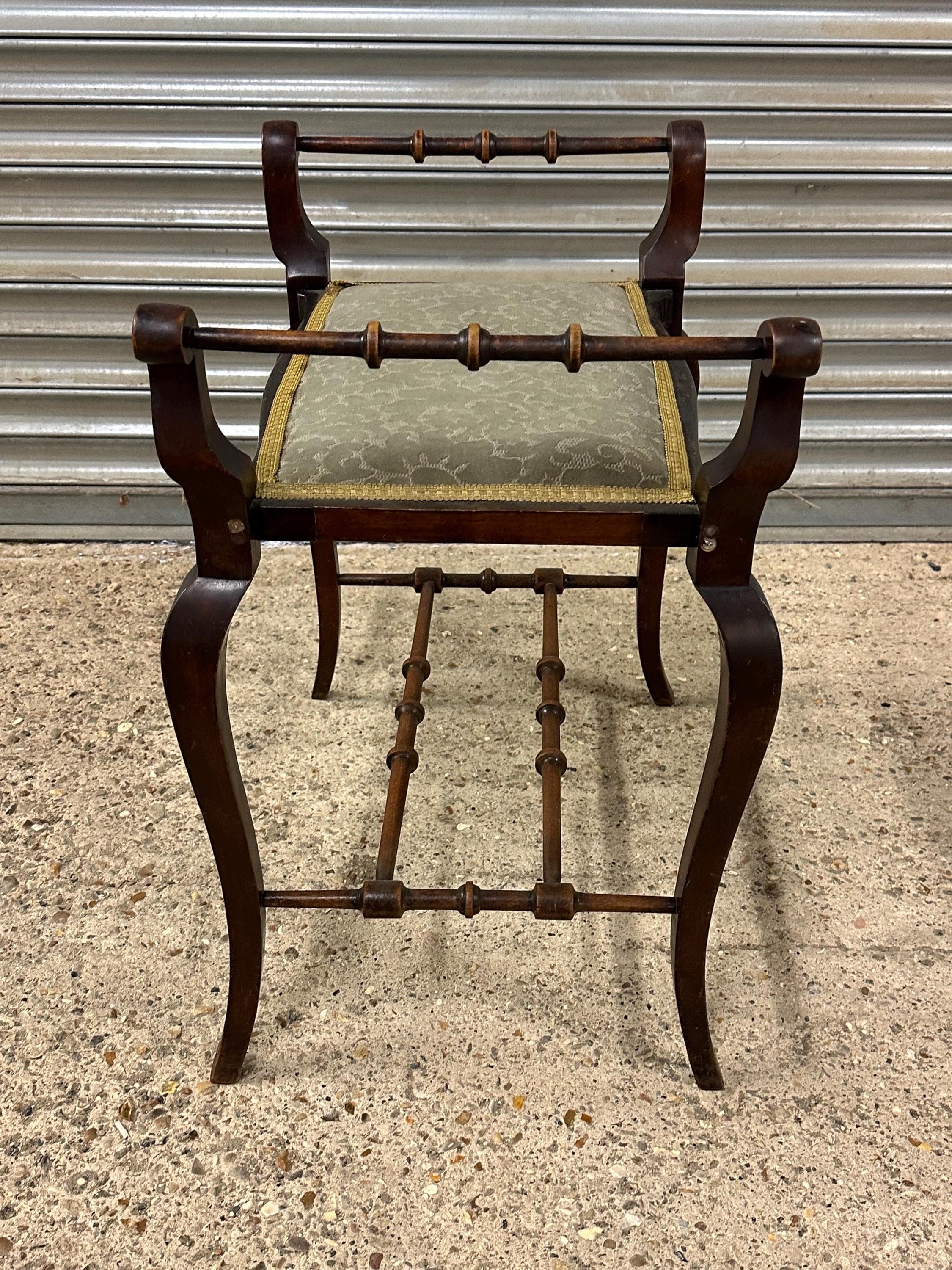 Antique Mahogany Georgian Piano Dressing Stool Cabriole Legs Fabric Seat