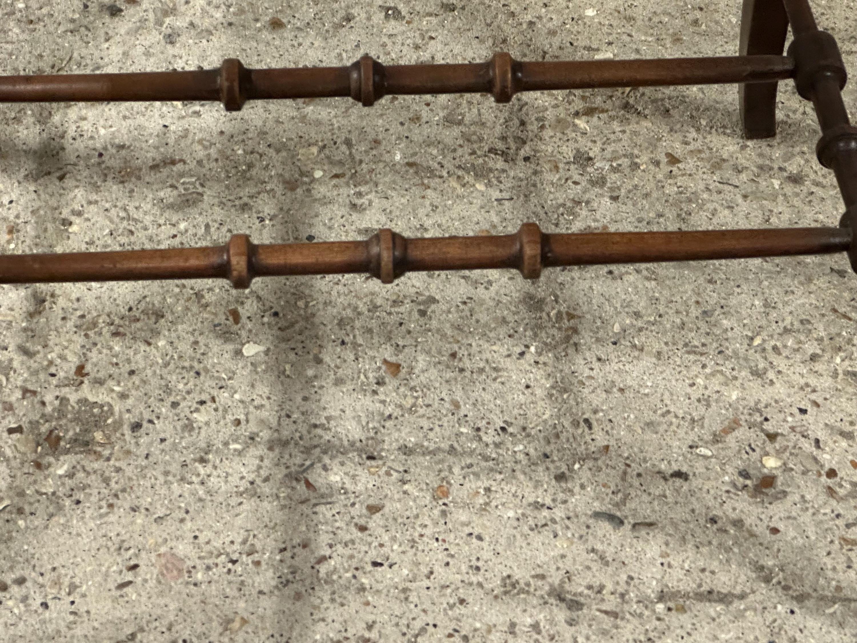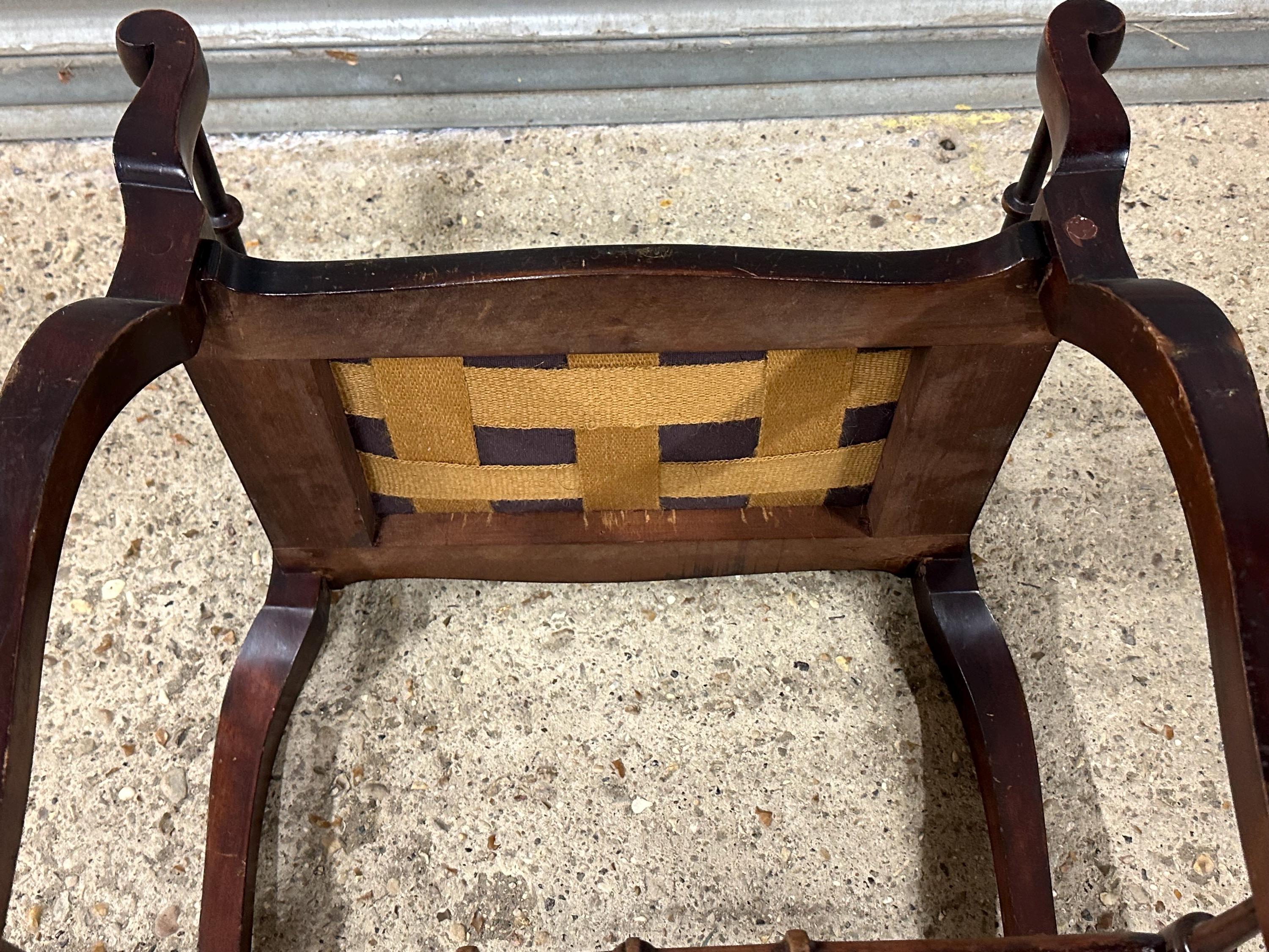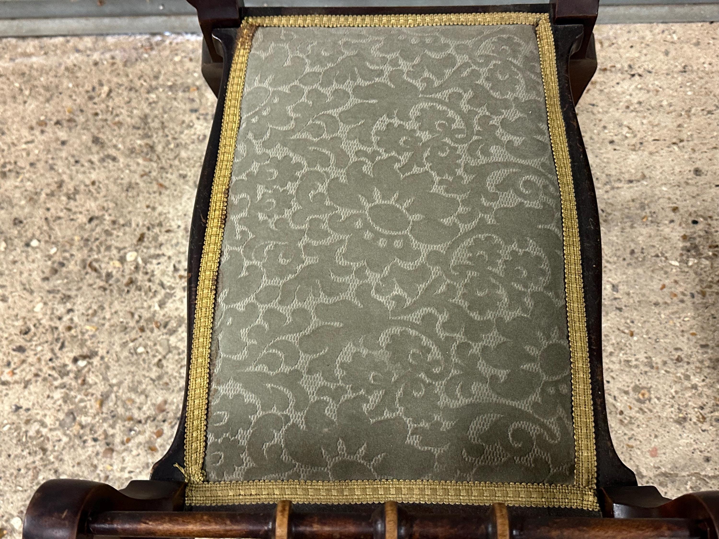 Good antique condition overall with age-related wear, surface marks, and some fading to the fabric as shown. The frame is sturdy and displays a lovely aged patina.