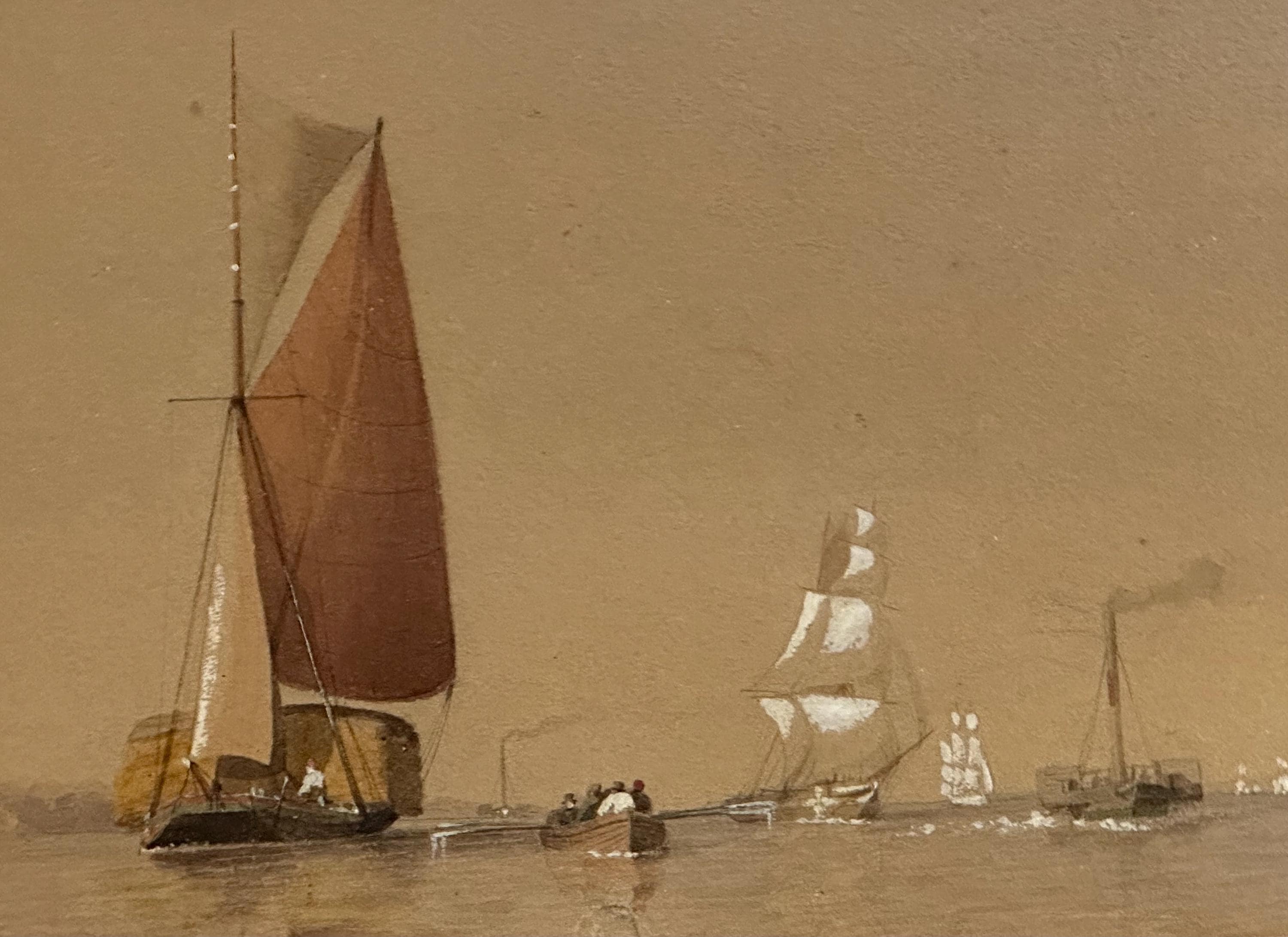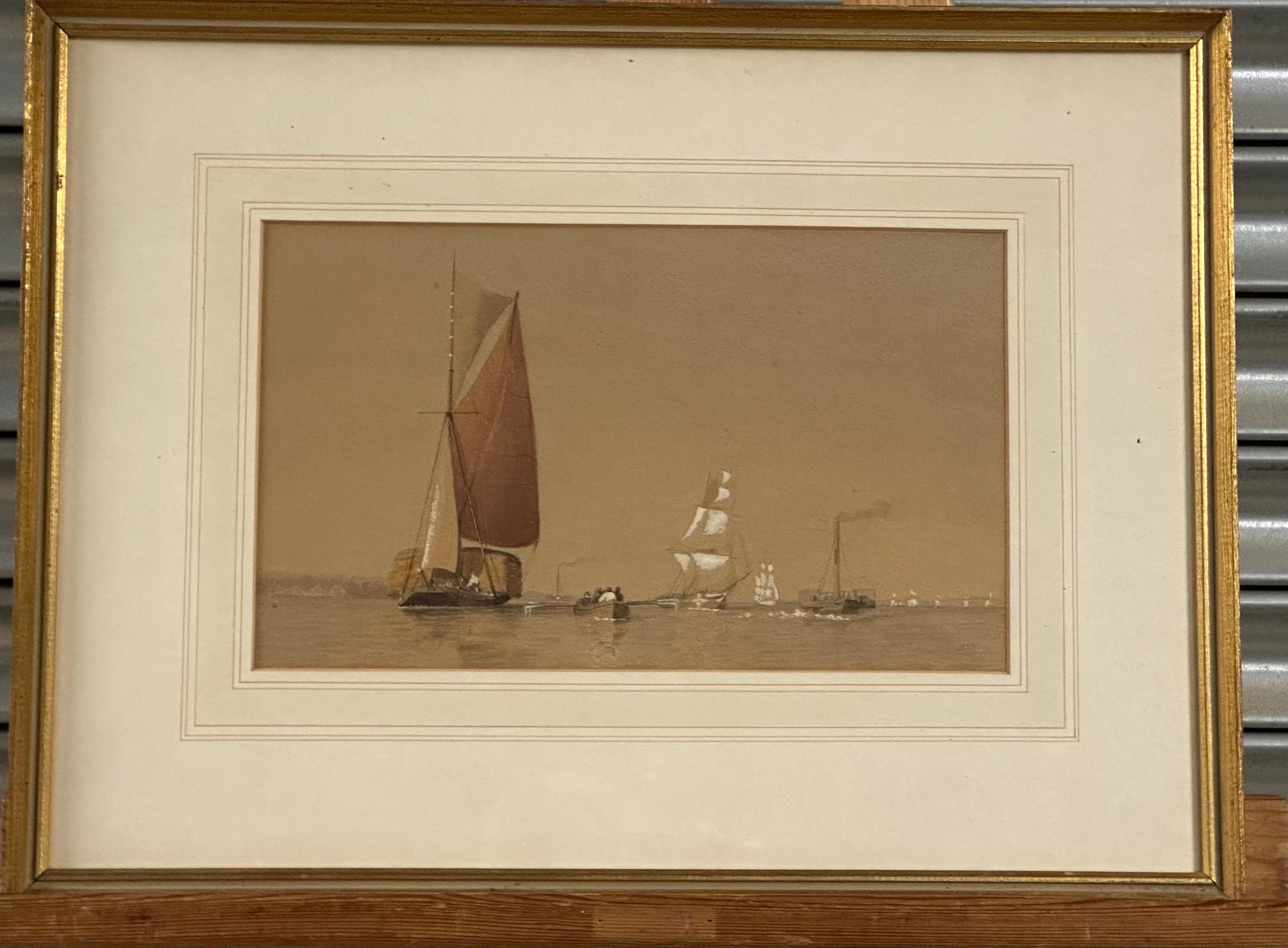 Antique 19th Century Watercolour Maritime Scene – Sailing Boats and Steam Ships at Sea
