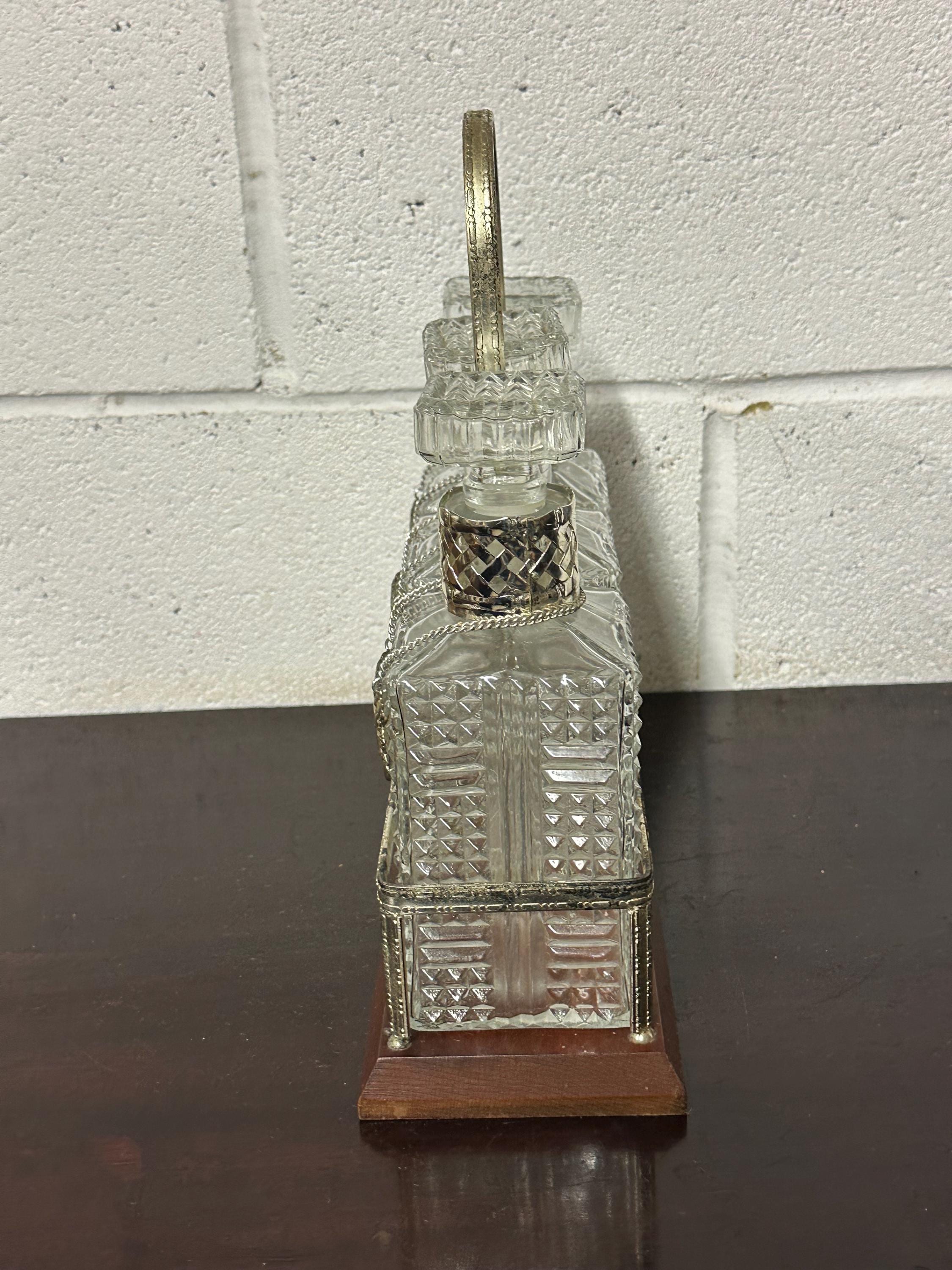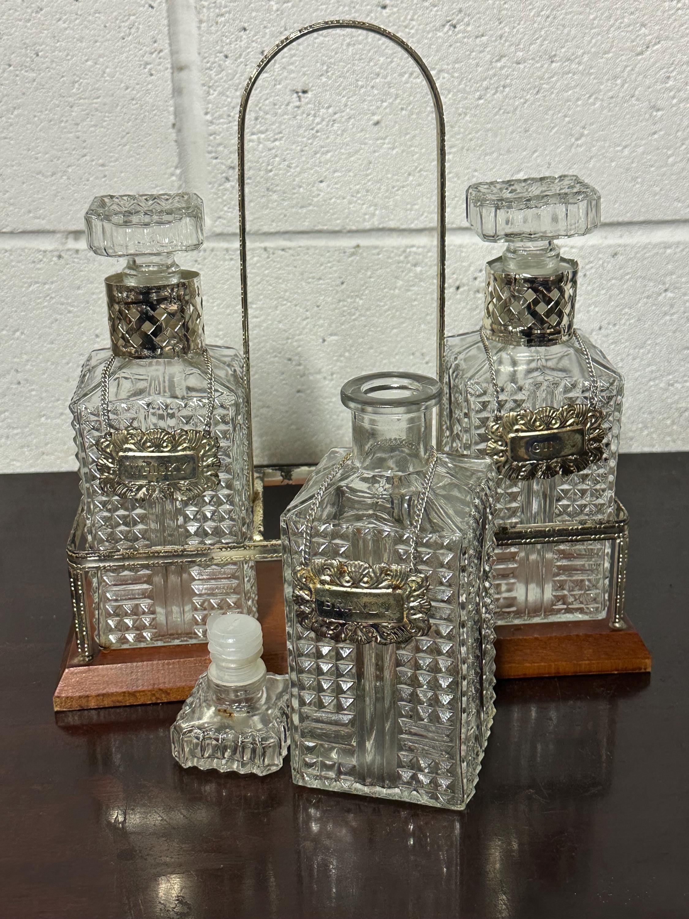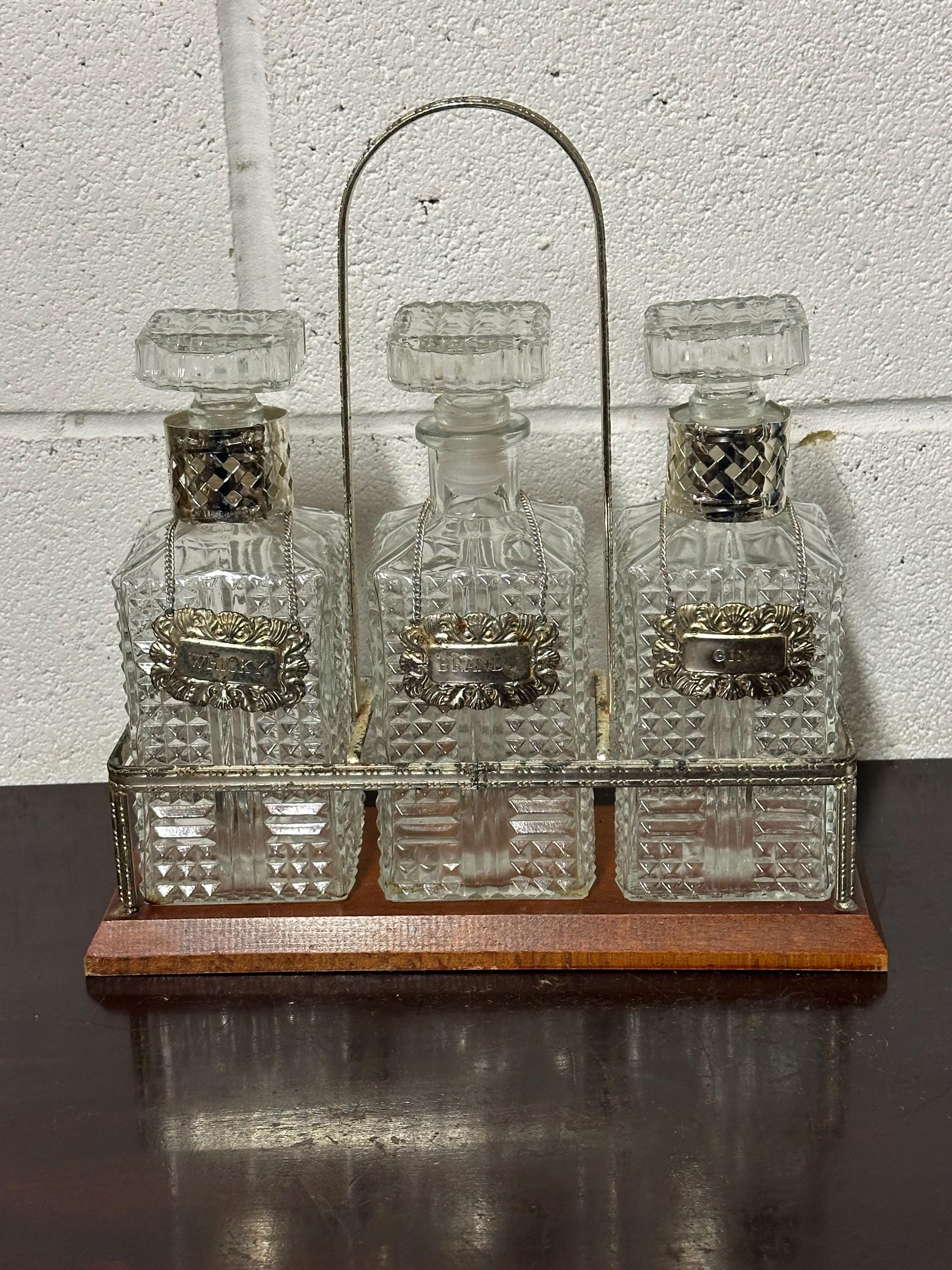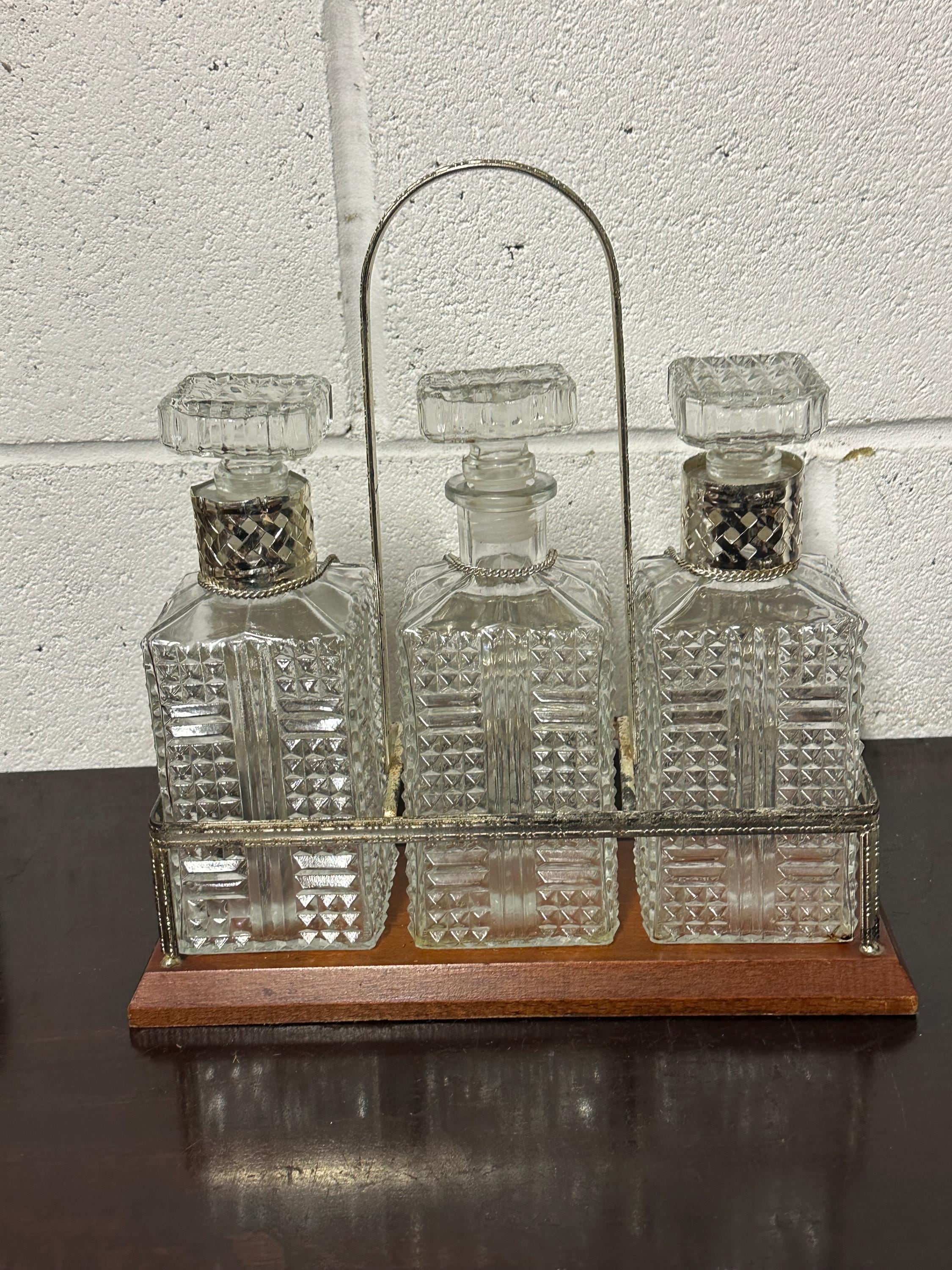 Vintage Cut Glass Tantalus Decanter Set with Silver Plated Carrier