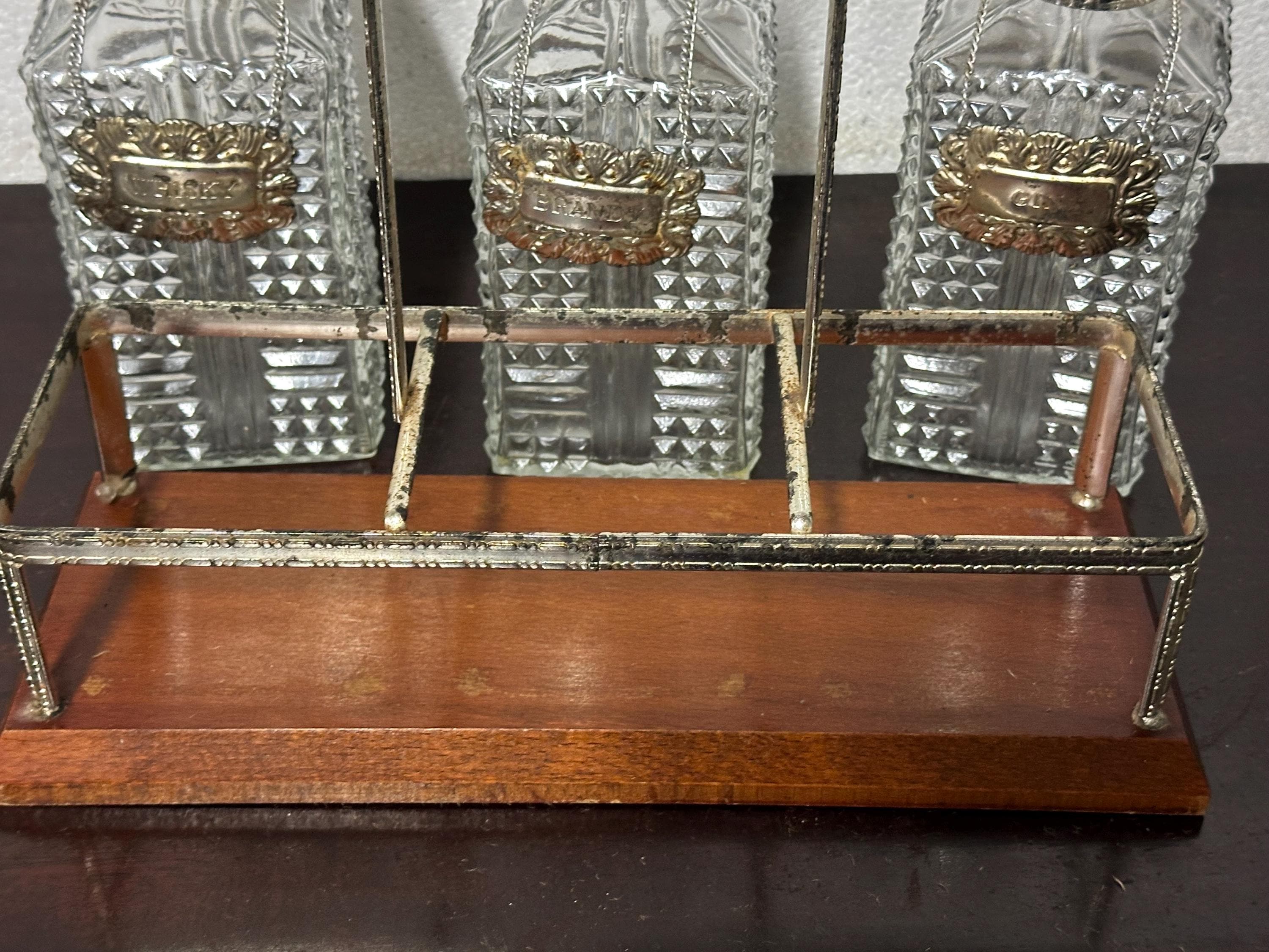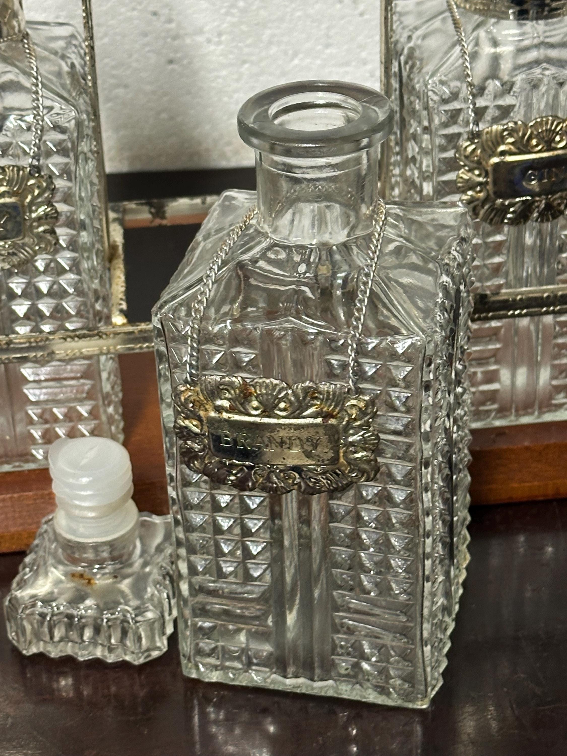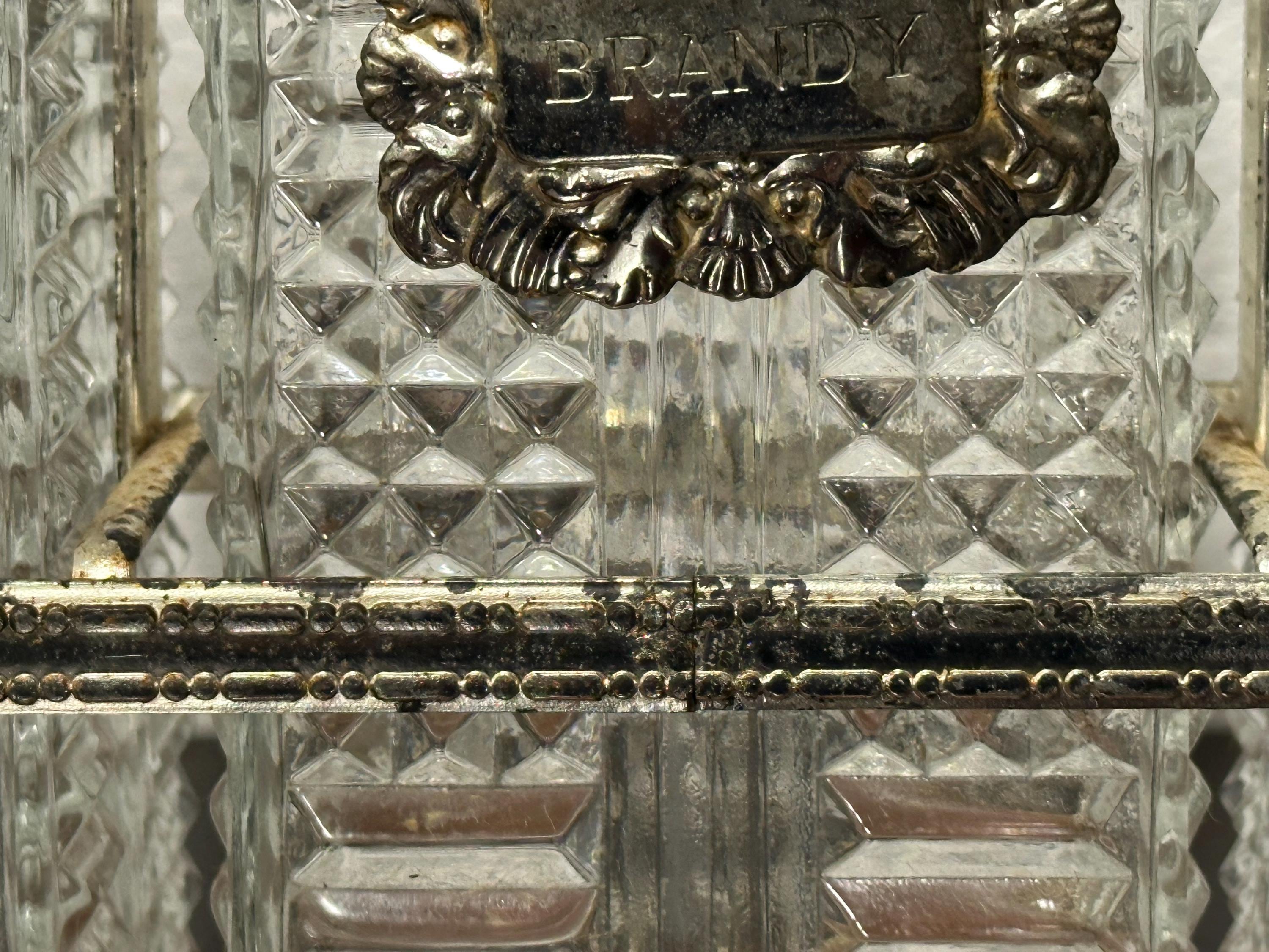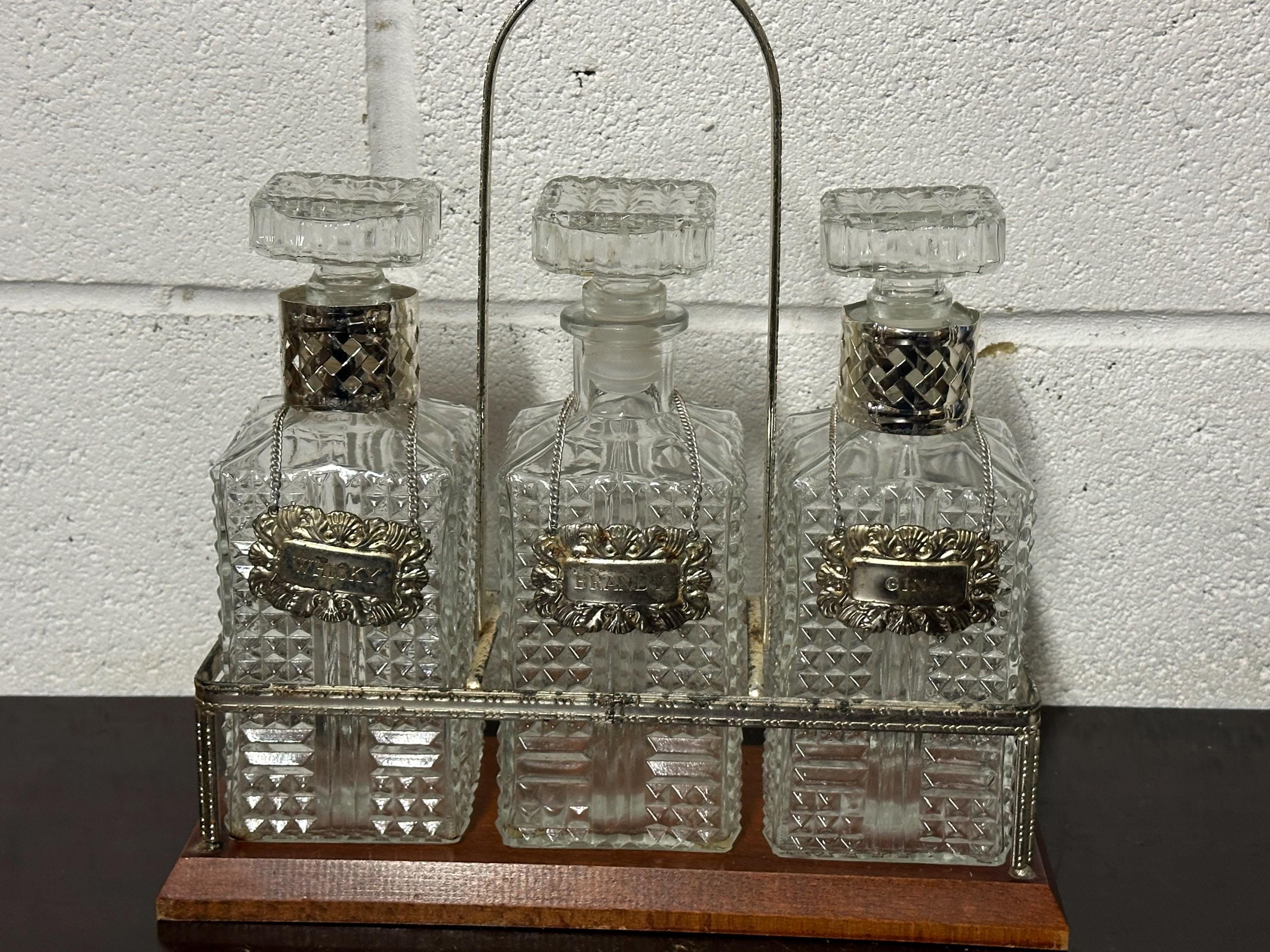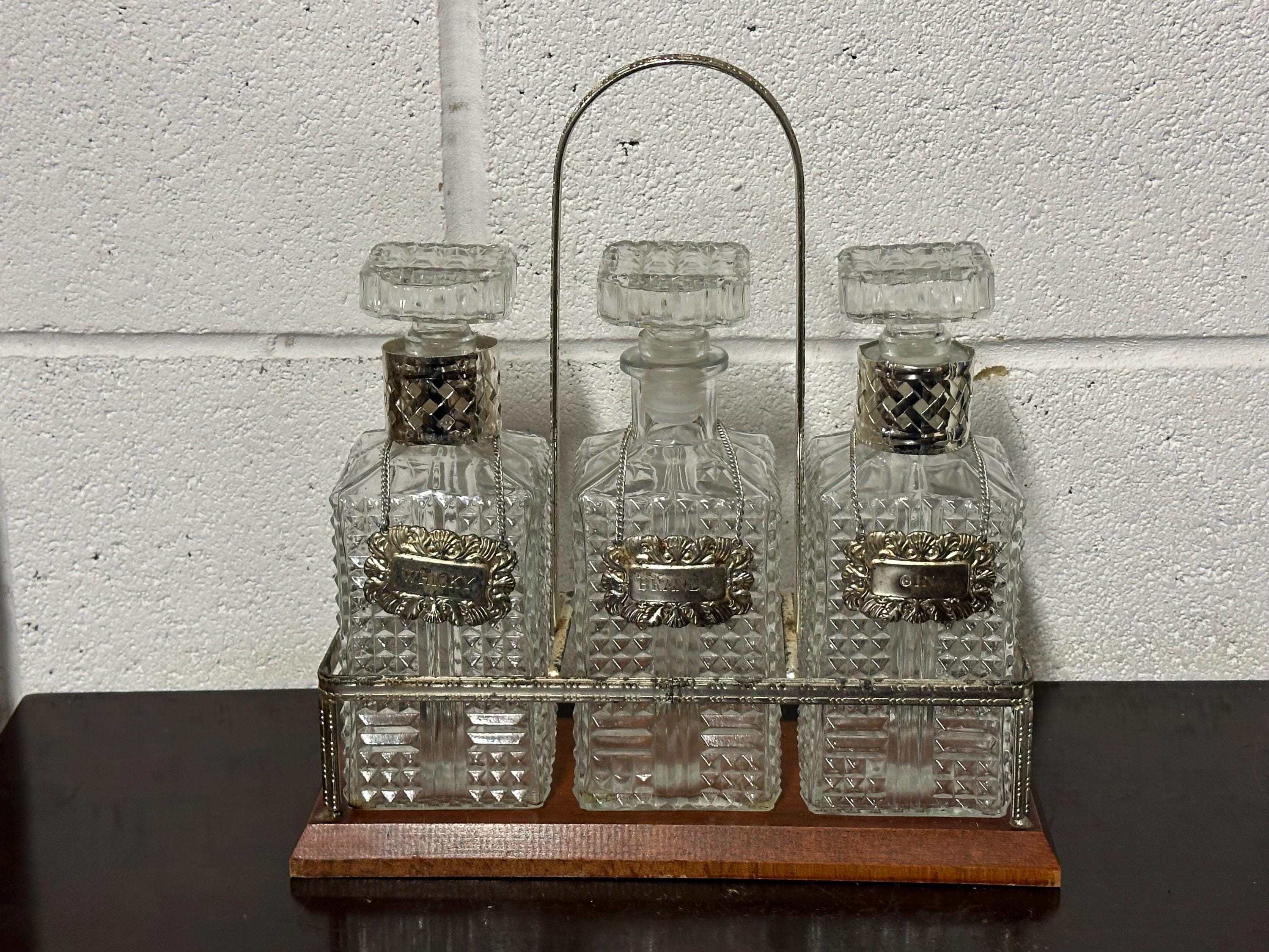 Vintage Cut Glass Tantalus Decanter Set with Silver Plated Carrier