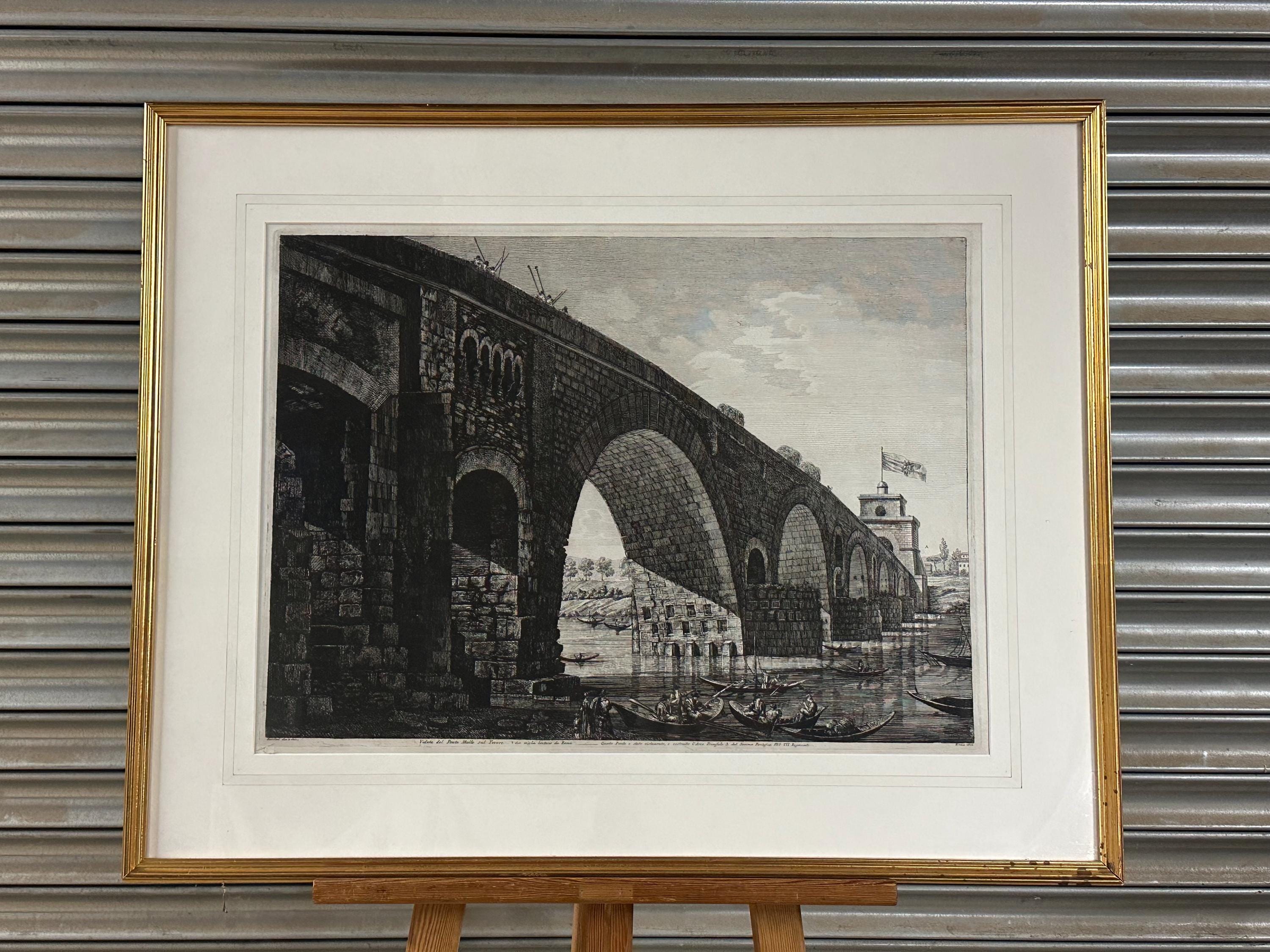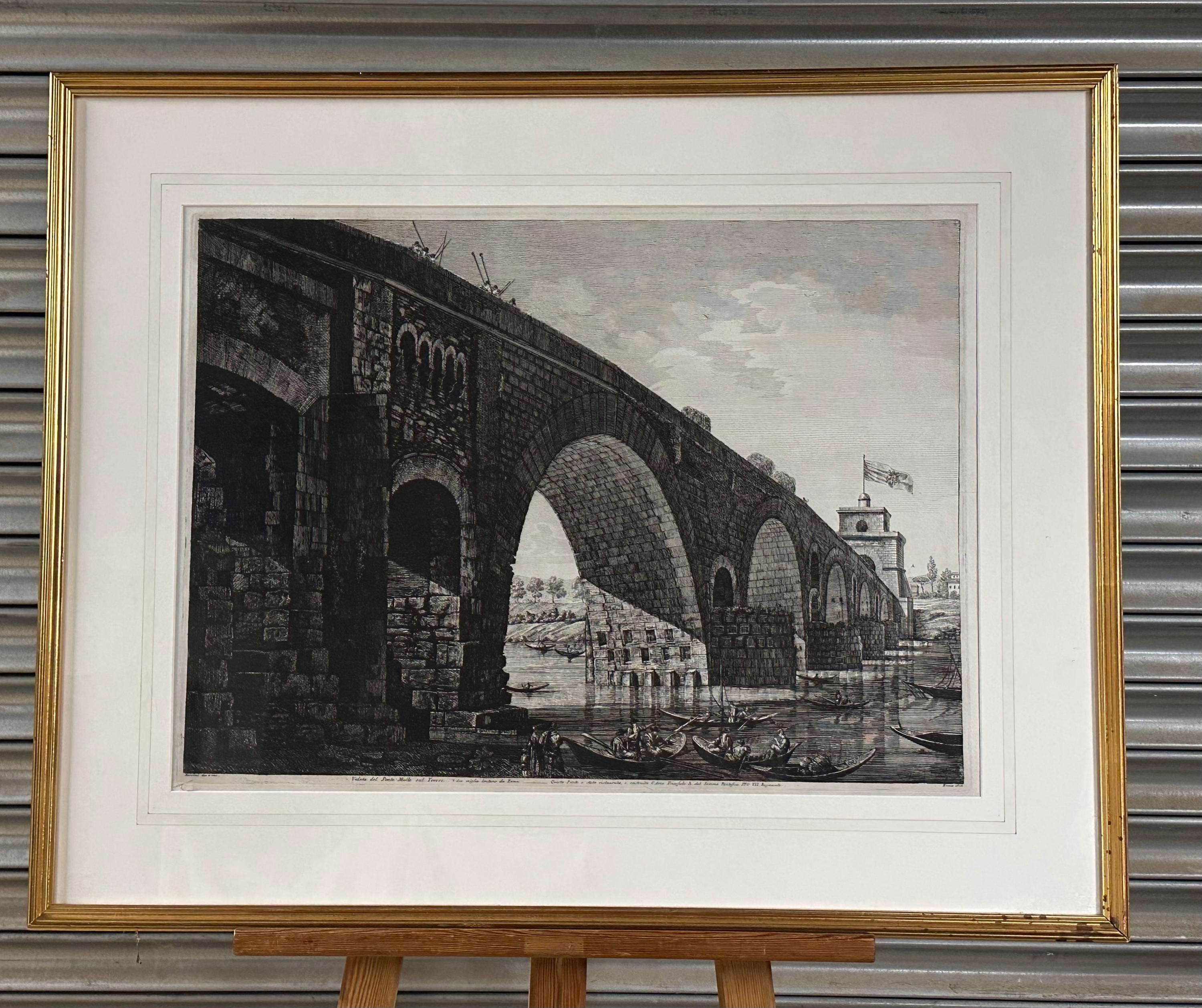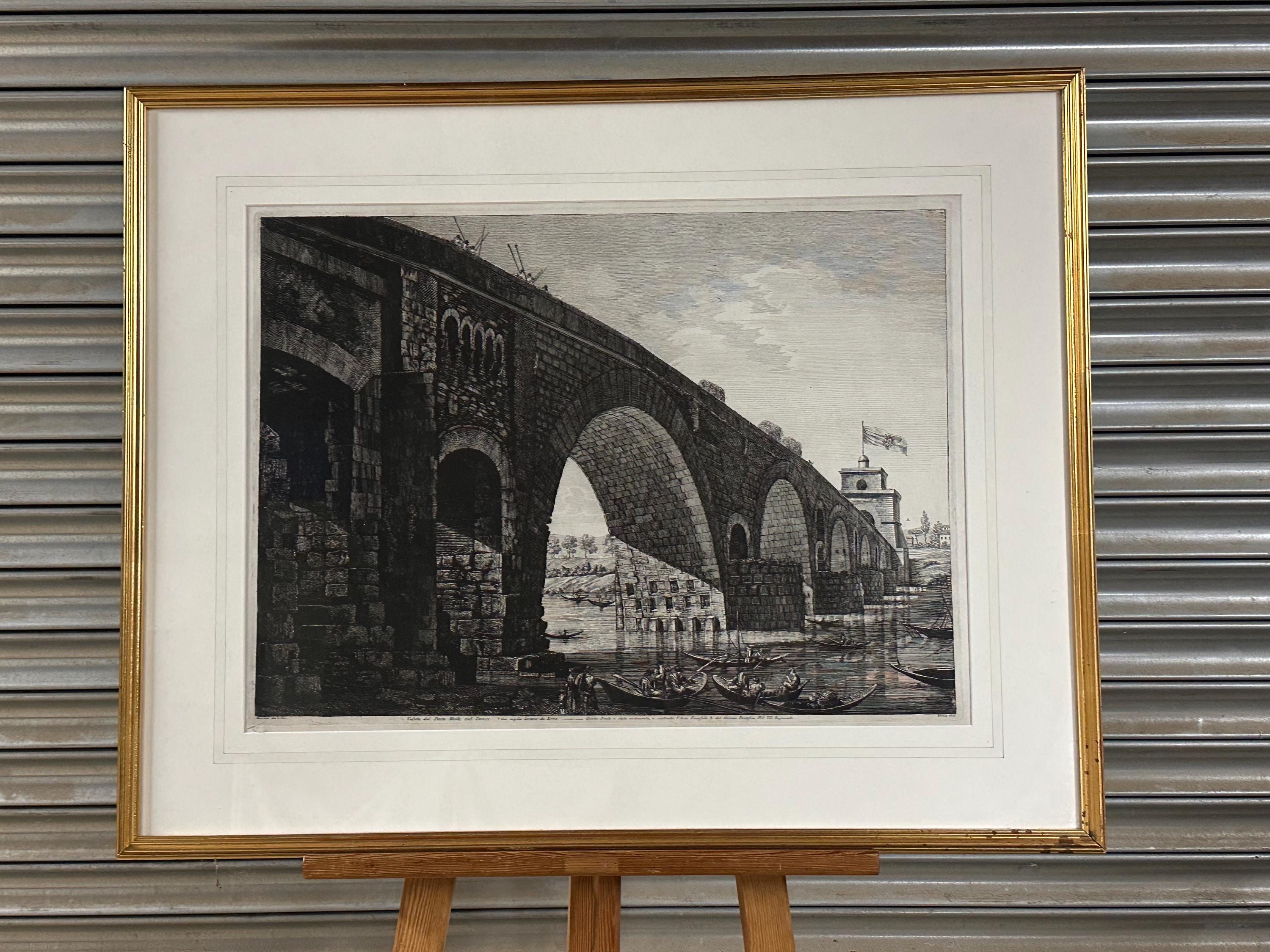 Rare Art ‘Veduta del Ponte Molle sul Tevere’ Engraving Art By Luigi Rossini 1822