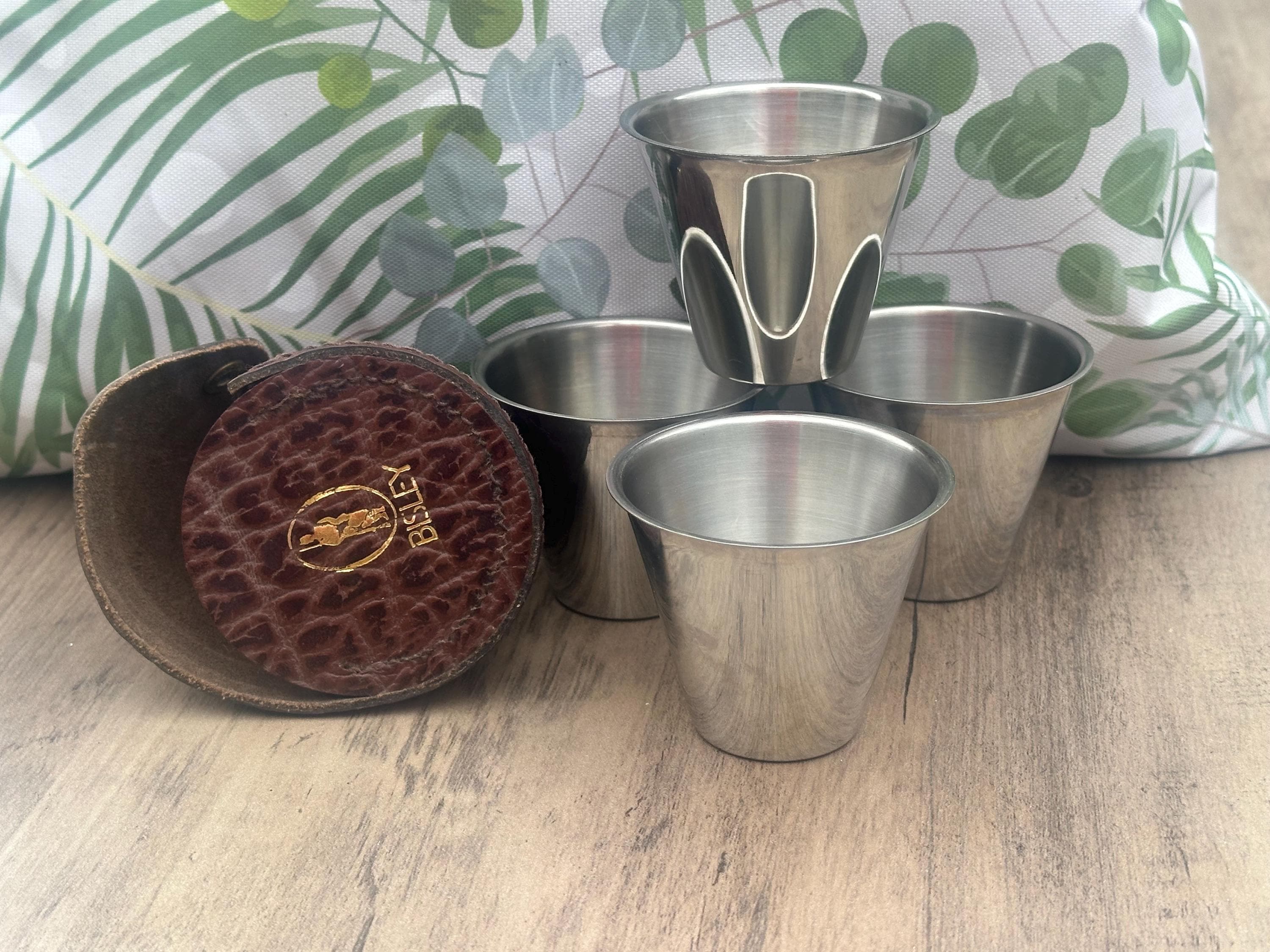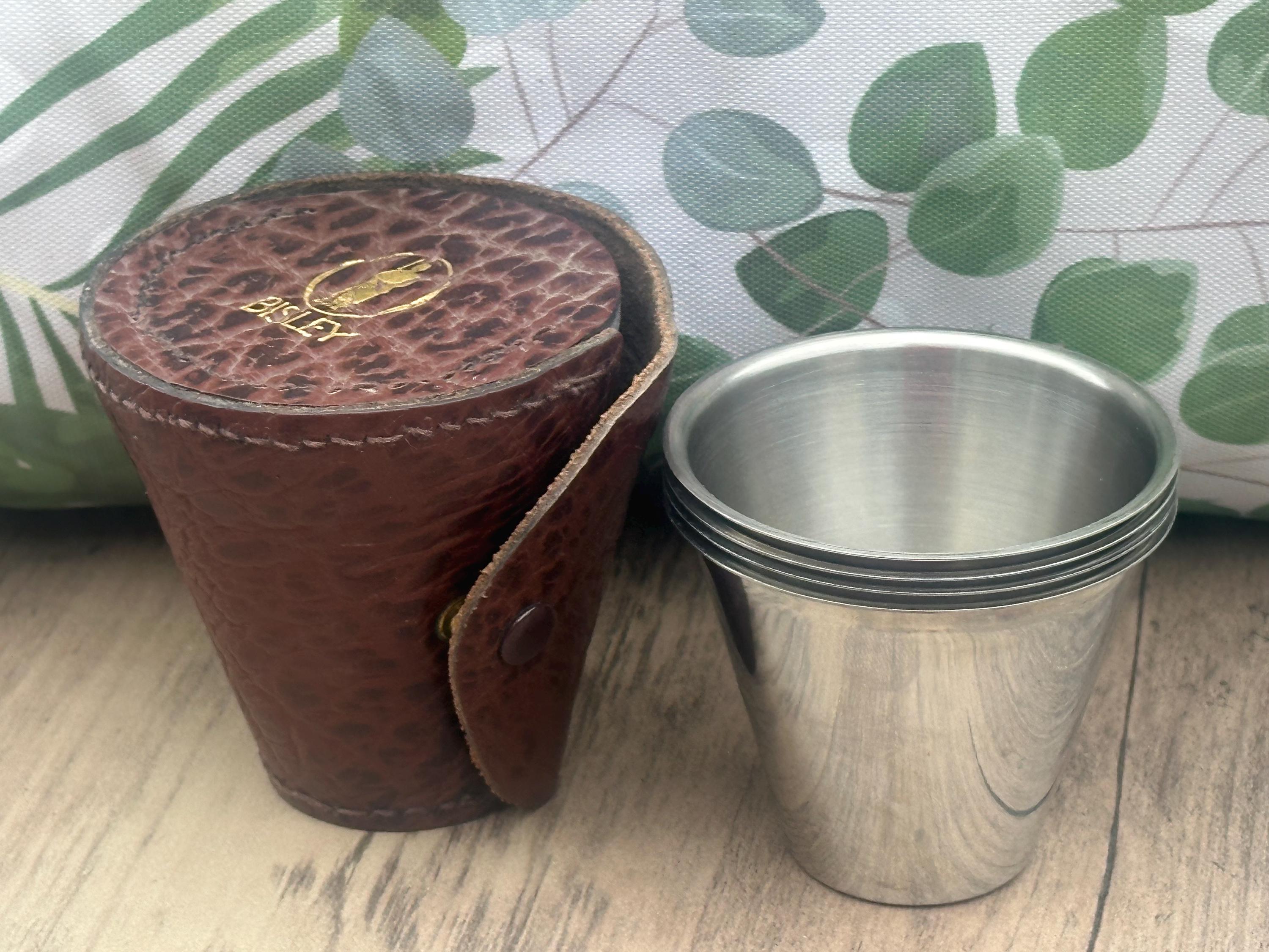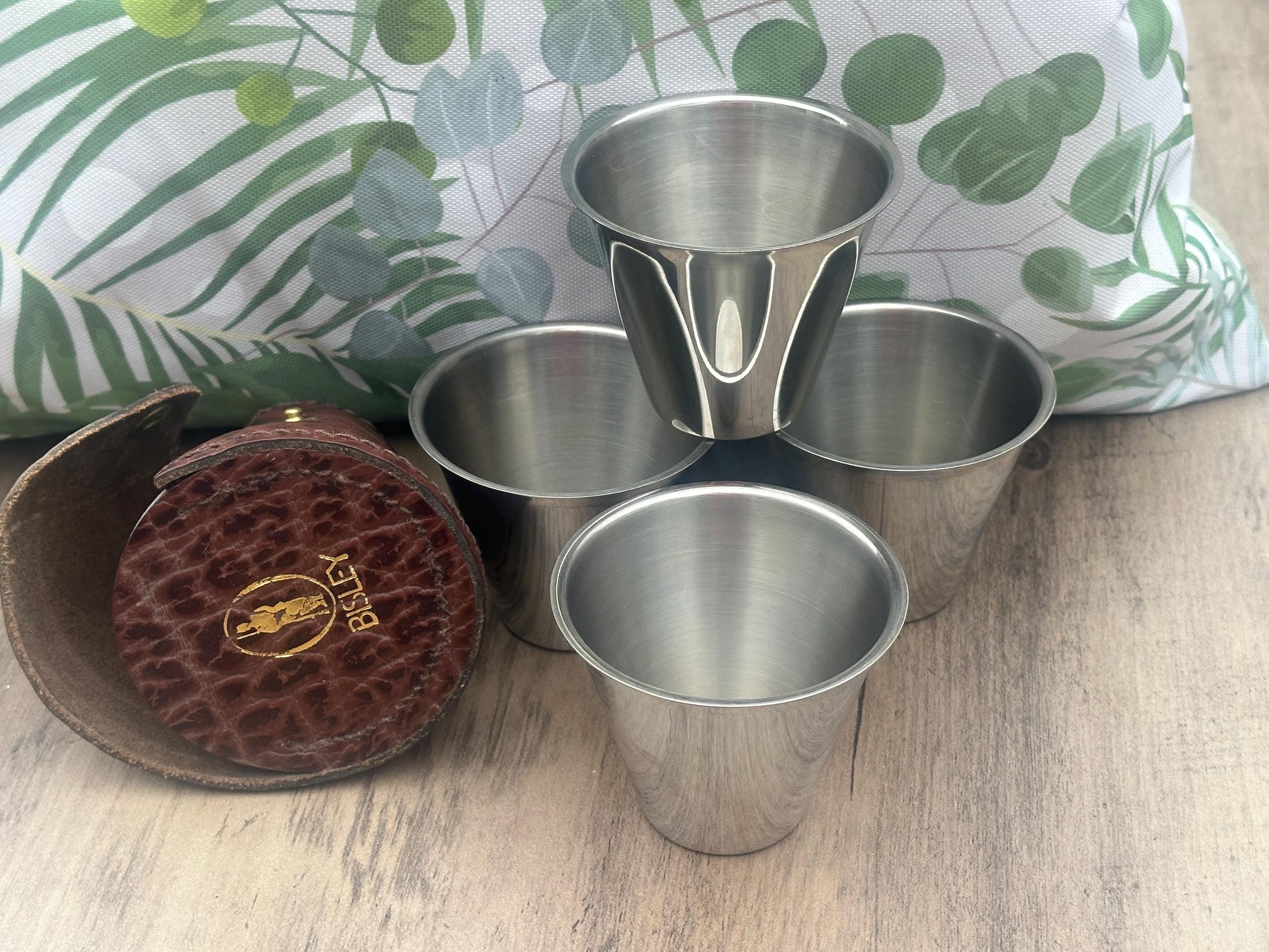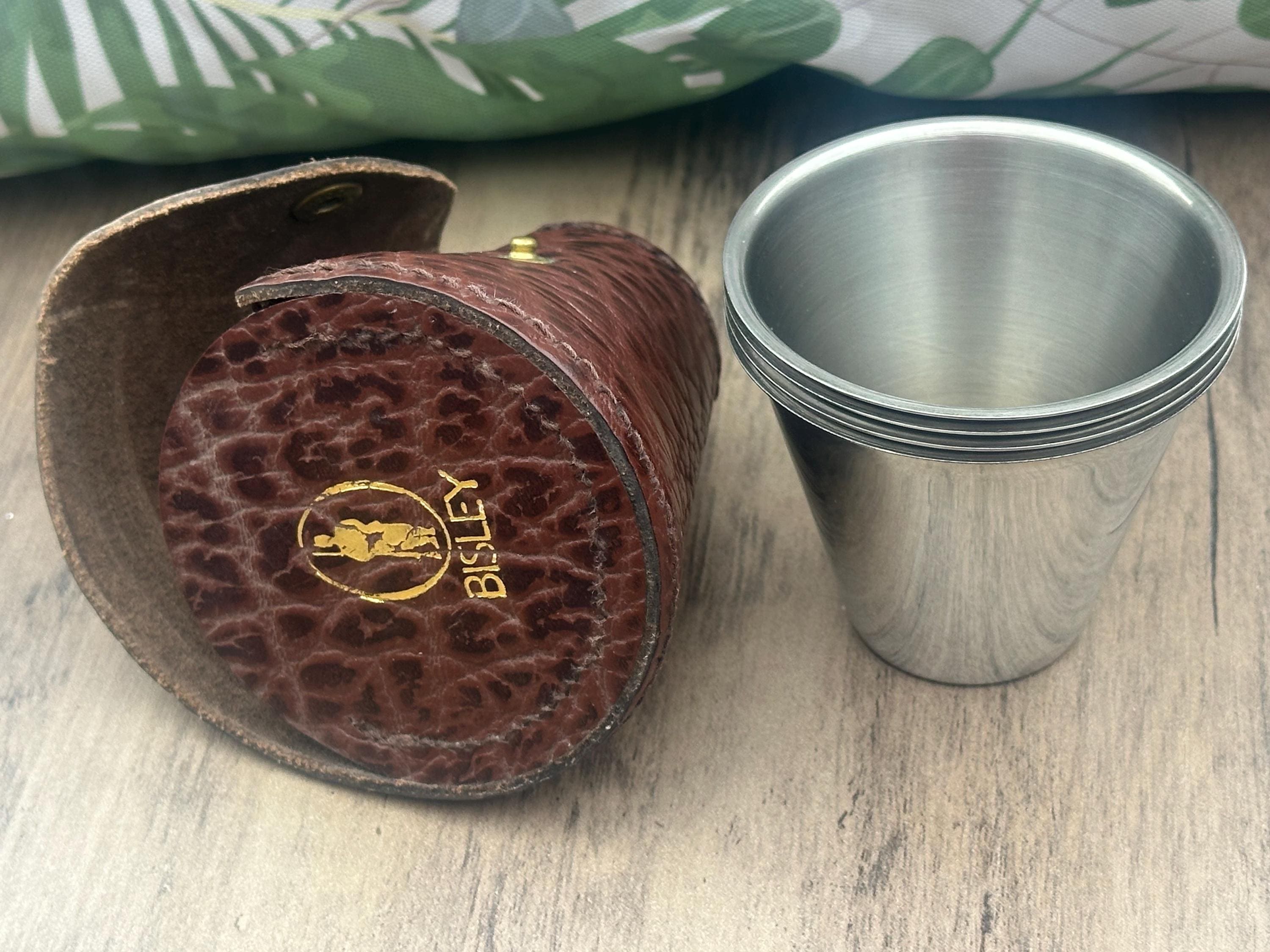 Bisley Set of 4 Stainless Steel Shot Cups in Leather Case – Vintage Outdoor Sporting Set