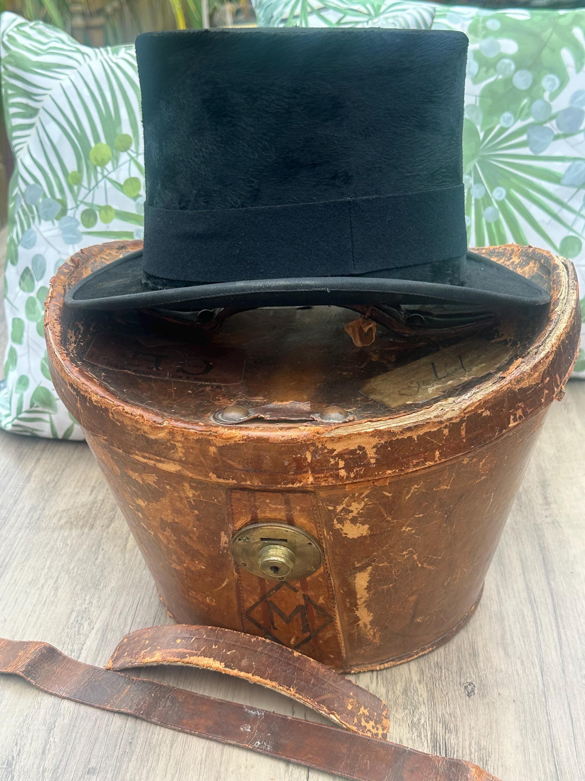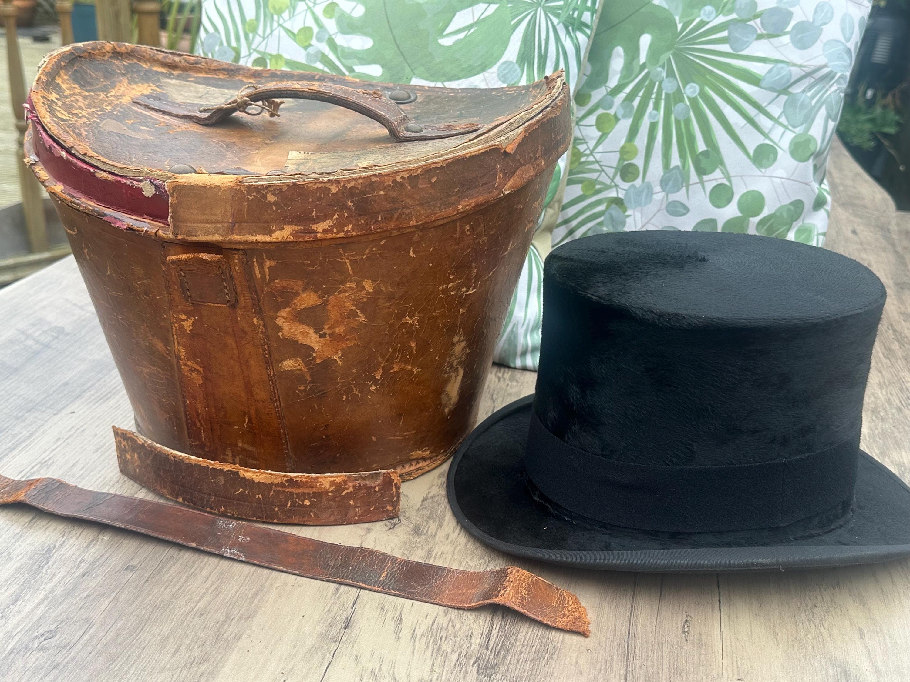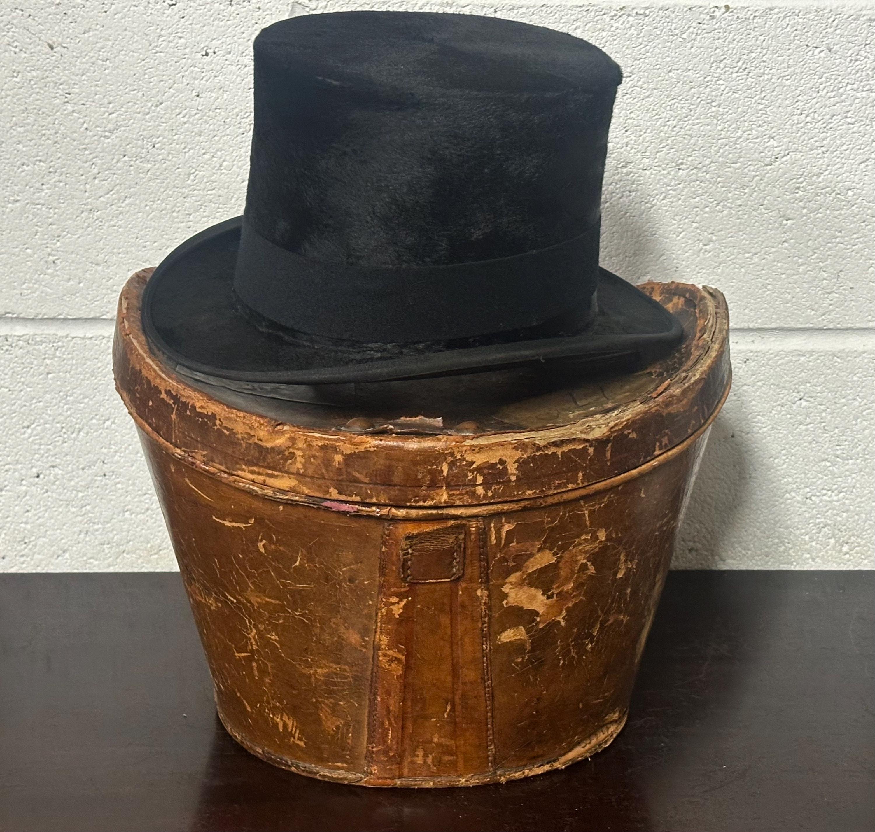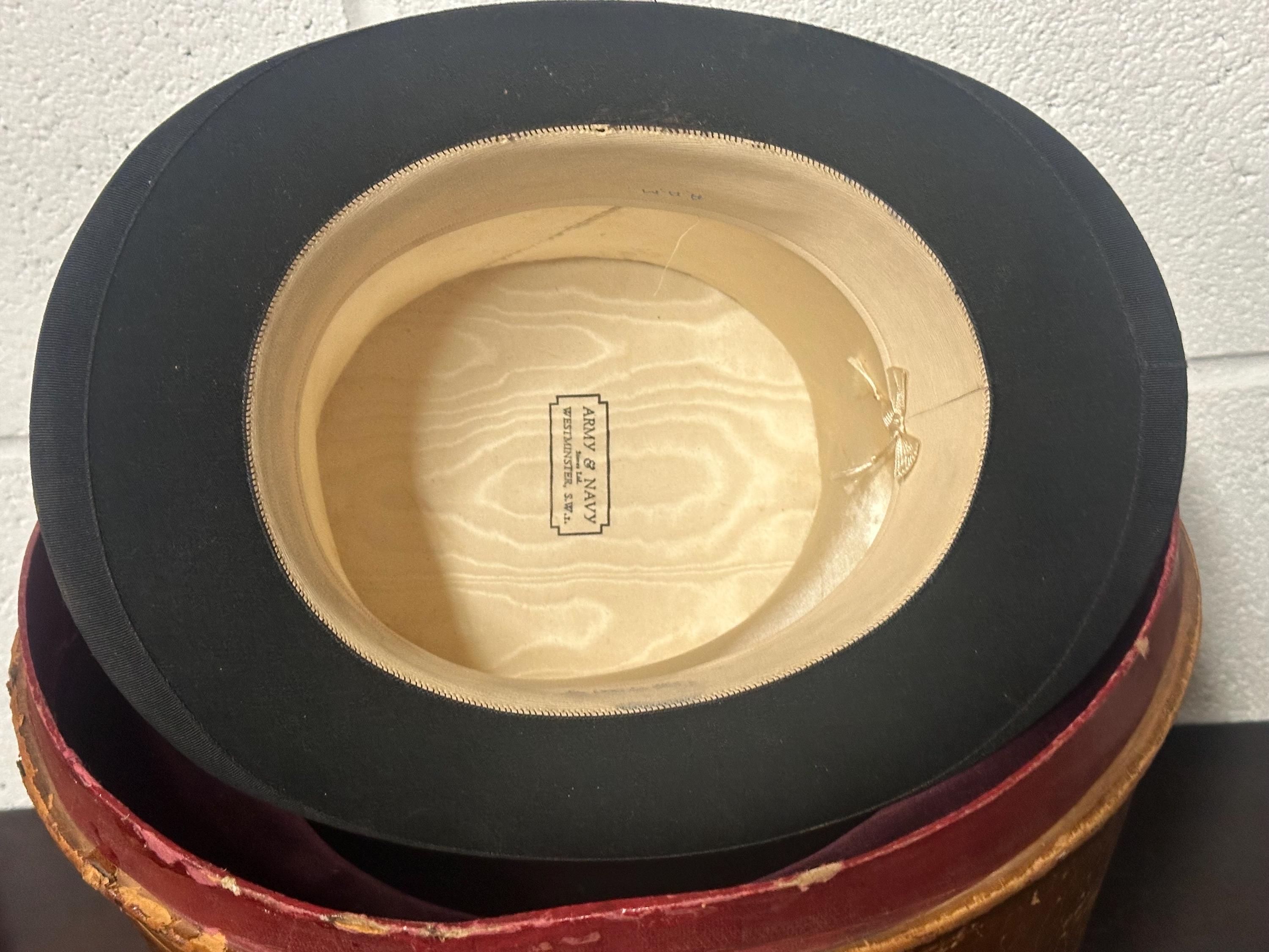 Antique Army & Navy Hat Makers Silk Top Hat with Original Leather Case – Early 20th Century