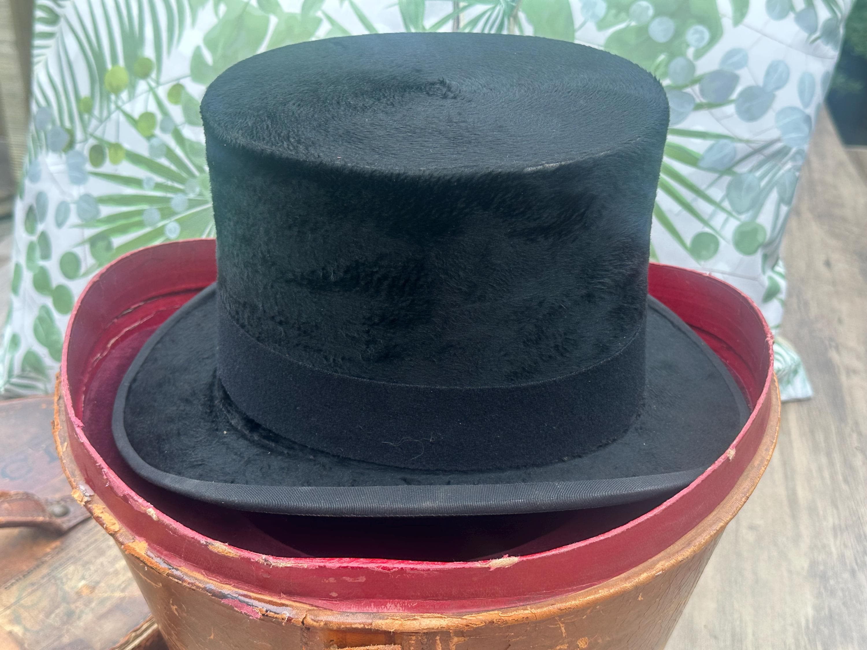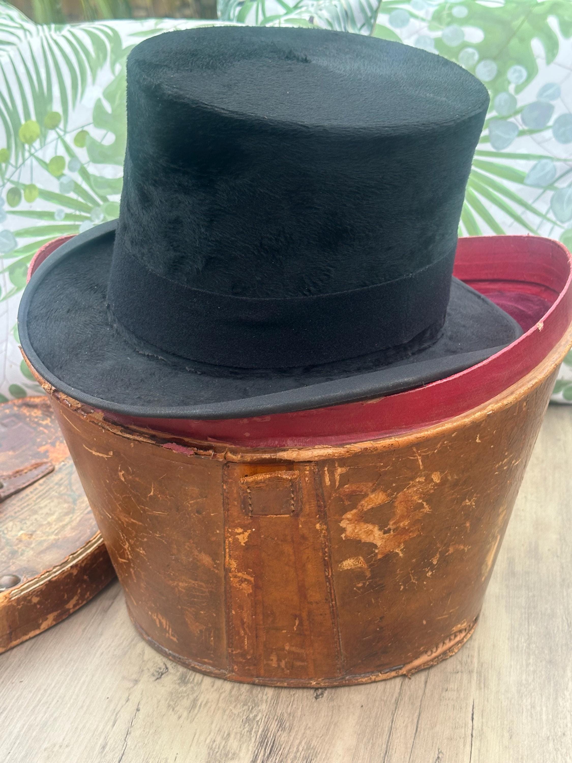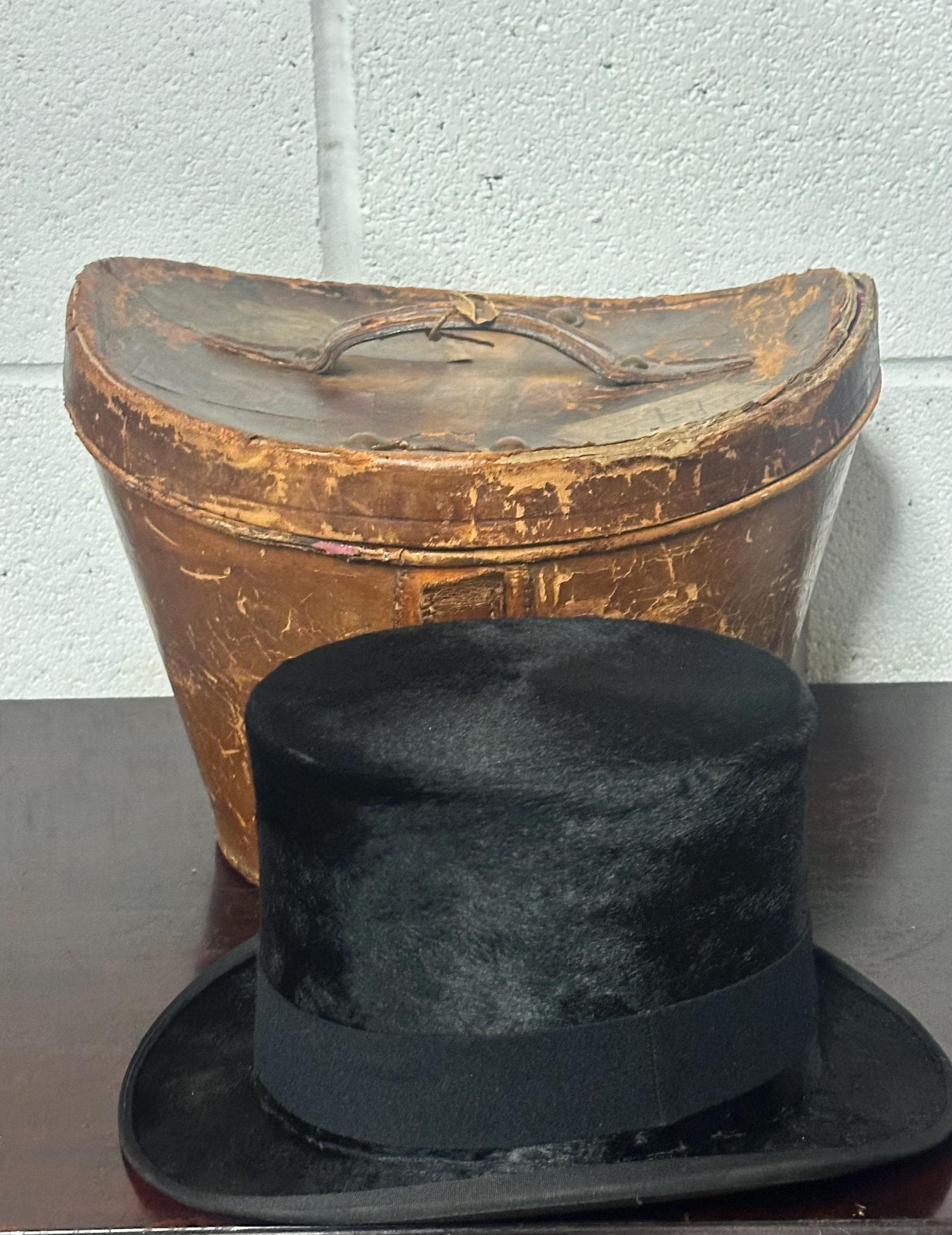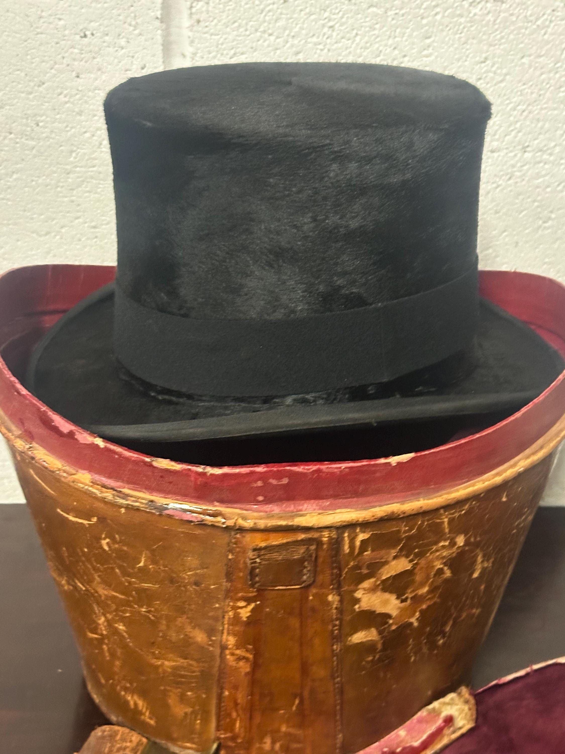 Antique Army & Navy Hat Makers Silk Top Hat with Original Leather Case – Early 20th Century